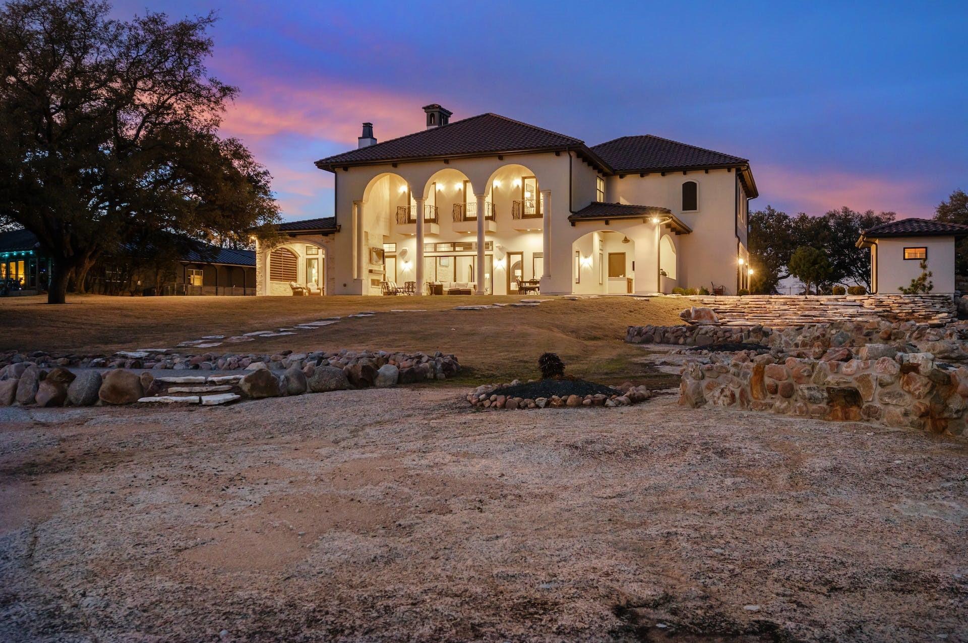 One-of-a-kind waterfront estate on Lake LBJ. 2018-built Luxurious Tuscan Villa situated on just over one acre of land with approx 200 feet of southern facing waterfront. Quality craftmanship and the finest finishes and selections can be seen throughout this Hill Country Masterpiece with no expenses sparred to create this dream Lake LBJ Getaway. 6 bedrooms, 7 baths, with owner's suite and additional guest suite on the main level, two laundry rooms, theatre, 3-car garage, detached worship, wine room, amazing and abundant outdoor living space plus boat dock and waverunner lifts with touch less covers. You will not find a home of this caliber, on a property of this size, anywhere on Lake LBJ. Opportunities like this are few and far between and there is no other home and/or property on Lake LBJ quite like this one. Hear me when I say that this one makes the list. Best of Lake LBJ Real Estate right here. Qualified buyers reach out for more information or to schedule a private tour.