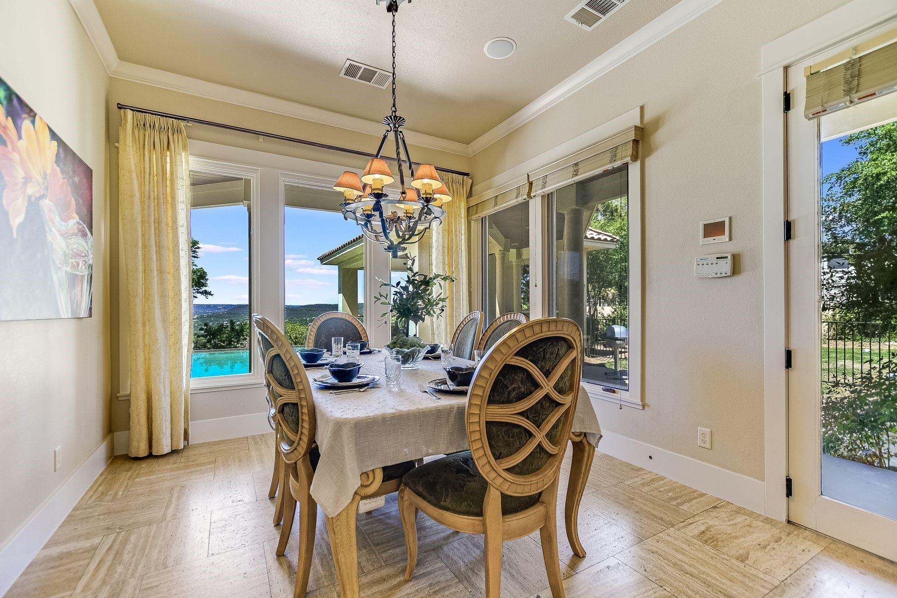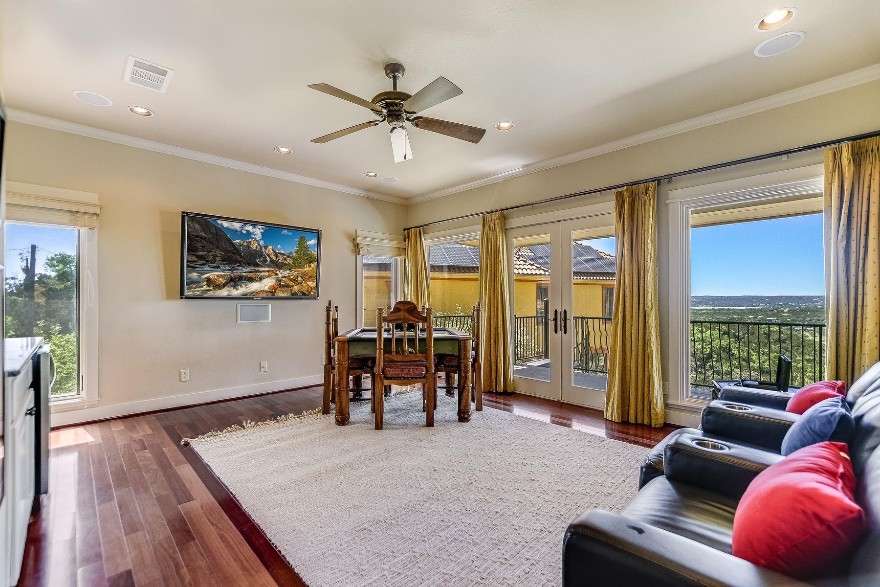 There is nothing like living by the lake! The minute you get west of RR 620 things just slow down a bit and get more relaxed. Leave city life behind and enjoy the view! This spacious home is located up on a ridge overlooking Lake Travis with miles of views. It has all the space and amenities that you desire: 4 bedrooms, gameroom, great room, office, bar, several balcones, patio, cabana, pool and hot - it even has an orchard!