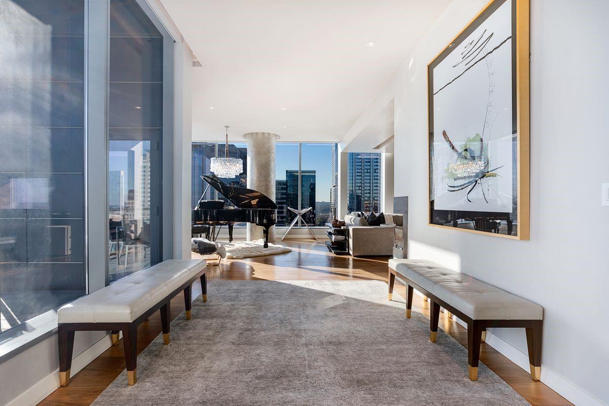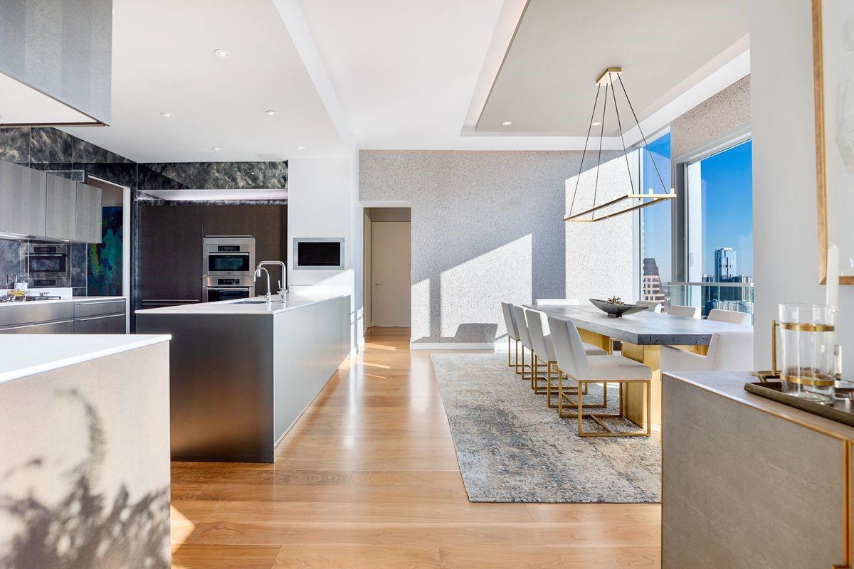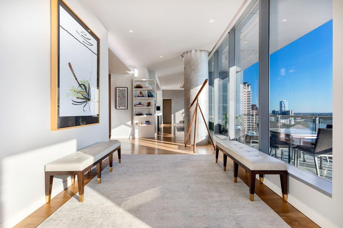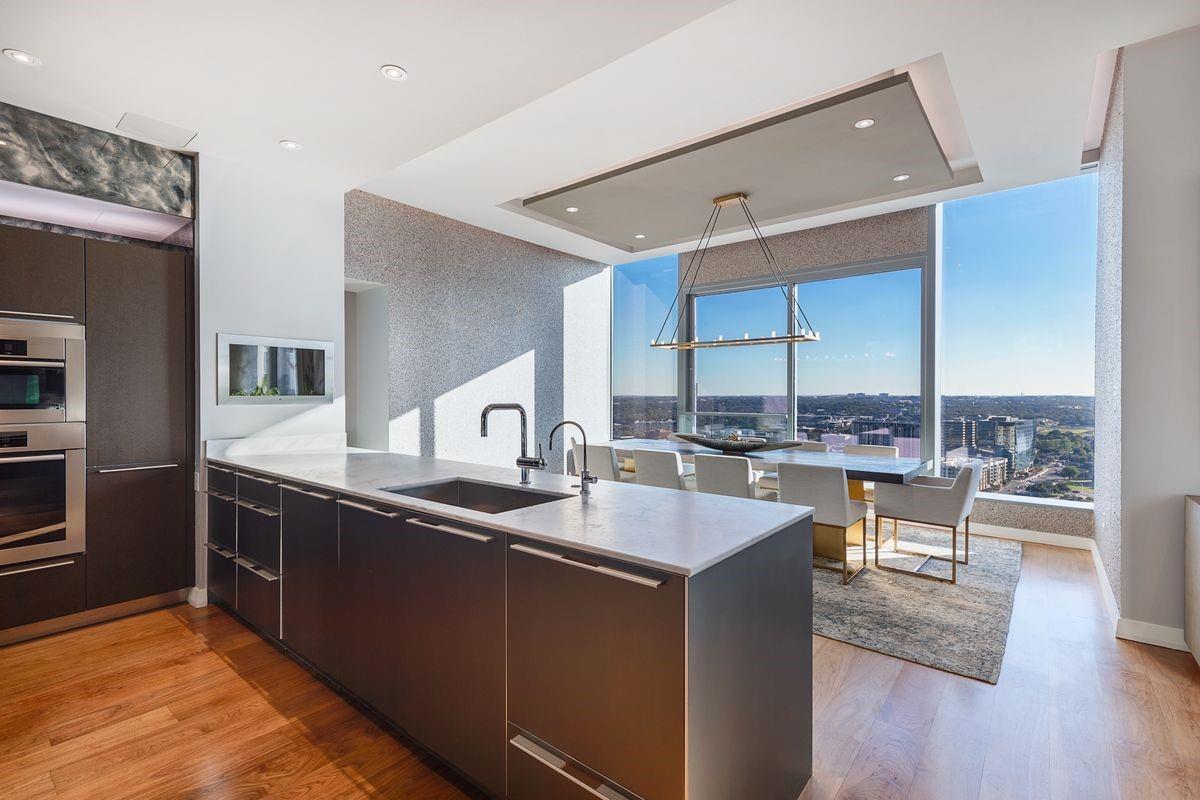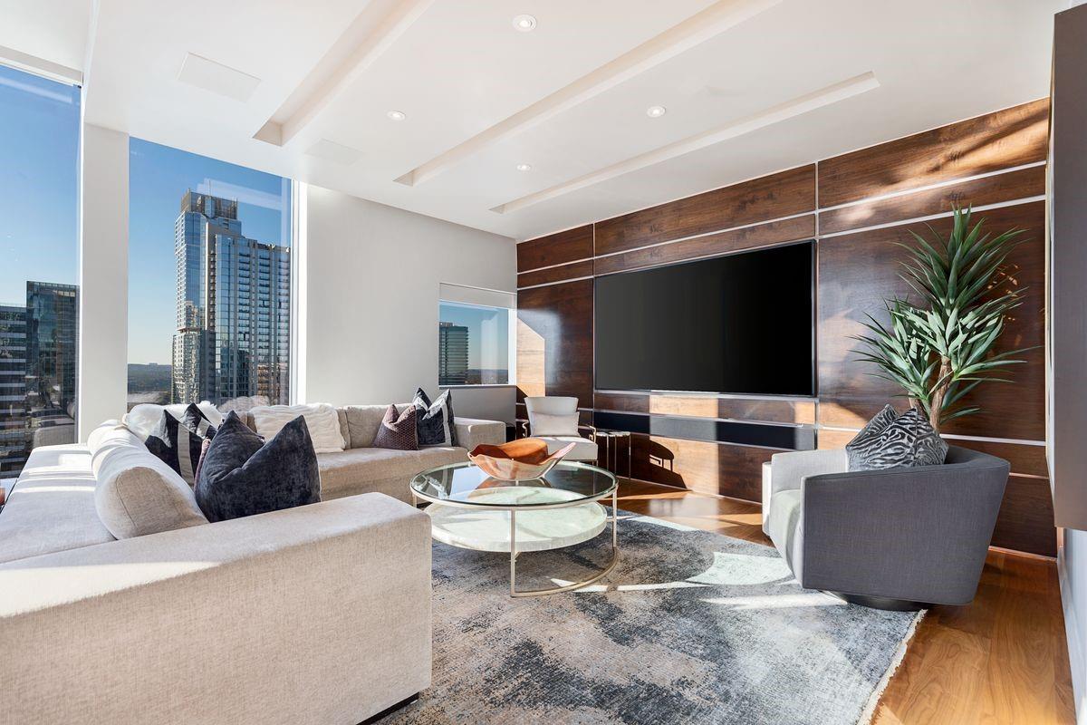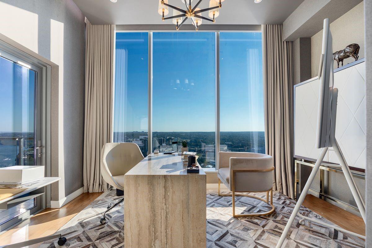 Welcome to the epitome of urban sophistication and modern luxury living at The W Residences, located in the heart of downtown Austin. Extensive renovations are underway at the W Residences & Hotel and next door ACL Live at the Moody Theater. A unique floor plan with custom high end styling and finishes, situated on the exclusive and highly desirable Southwest corner of the esteemed building, a 2 bedroom condominium with an office combines the serenity of sleek design, world-class amenities, and unparalleled convenience. Step into a world of contemporary elegance with bespoke designer-selected finishes and floor-to-ceiling windows showcasing unobstructed views of Town Lake and the cityscape. The expansive and light-filled living room seamlessly flows into the gourmet kitchen and dining area, creating an inviting atmosphere for social gatherings. The chef-inspired kitchen delights are equipped with top-of-the-line stainless steel appliances, granite countertops, and an oversized island that doubles as a breakfast bar. The primary suite is complete with a spa-like ensuite bathroom, double jacuzzi tub, steam shower, dual vanities, and a walk-in closet. Additional highlights include an award-winning $250K fully automated Crestron home control system, Lutron Lighting, audio sound in every room, hidden TV's in the bath, shower, and behind the mirrors, motorized shades, dynamic DMX accent lighting in a full spectrum of colors, a wine cellar, and 2 private balconies offering unobstructed vistas of Town Lake. The condo also offers 2 premium parking spots. The W Residences provide immediate access to the vibrant energy of downtown Austin. Walk to the finest restaurants, cultural attractions, Town Lake Hike and Bike Trail, and endless entertainment options. The building offers a 24/7 dedicated concierge, valet, secure parking garage, a resident-only salt water pool with cabanas, and a state-of-the-art gym.