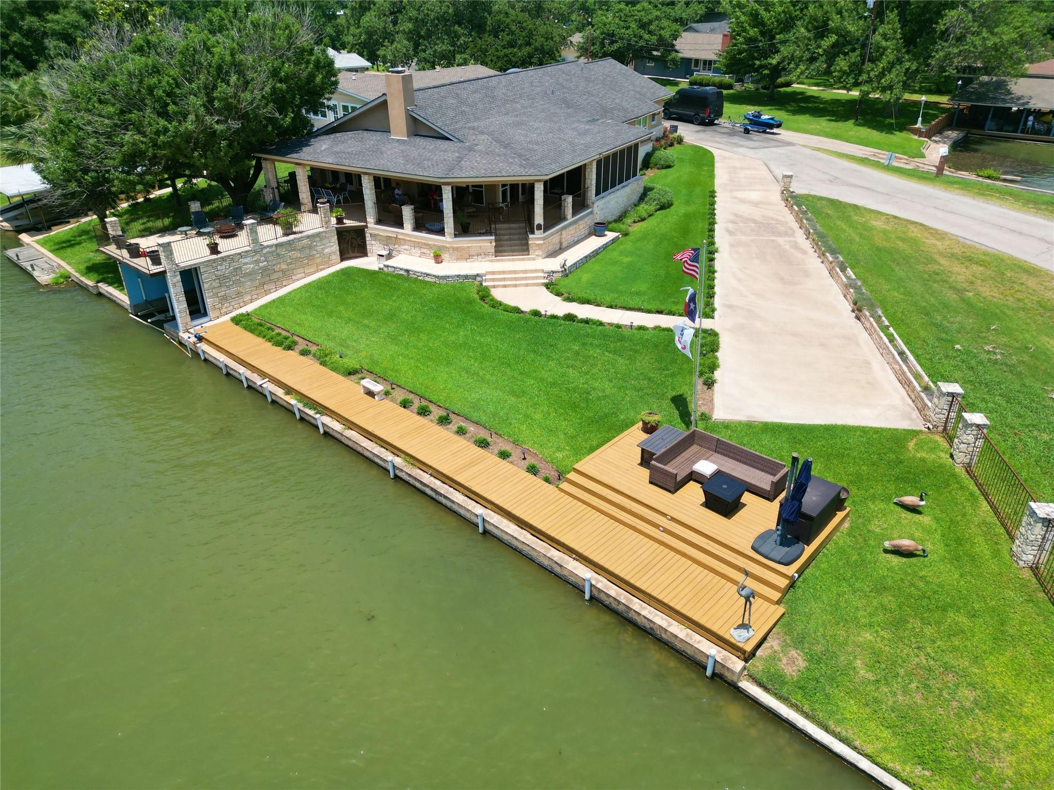 Welcome to your dream lakefront oasis just 7 miles from Marble Falls in Highland Haven, Texas! This rare gem is a single-story 4-bedroom, 3-bathroom home nestled on the shores of Lake LBJ, a constant level lake. Boasting 2,196 HVAC square feet of interior living space, this residence is a true waterfront paradise. As you step inside, you'll be captivated by the spaciousness and thoughtful design of this unique property. The home features a large kitchen that opens up to a great room adorned with a charming wood-burning fireplace, creating a cozy ambiance. The abundance of large windows floods the interior with natural light and offers breathtaking views of the surrounding lake. But the beauty doesn't stop indoors – multiple outdoor living areas beckon you to savor the serene lakeside atmosphere. Lounge on the expansive covered patio, unwind on the outdoor deck with a covered boathouse below, or relax in the screen porch with a hot tub, all while taking in the stunning lake views. A boardwalk and sitting area at the lake's edge complete the perfect setting for tranquility and enjoyment. With plenty of parking for both family and guests, this property ensures convenience and accessibility. The added bonus of being adjacent to Dove Park gives you the expansive feel of a larger property without the worry of extensive maintenance. Homes like this, with such expansive lake views in Highland Haven, are a rare find. Don't let this opportunity slip away – make this your dream house on Lake LBJ and embrace the enchanting lake life. Seize the chance to own a piece of paradise that rarely becomes available. Your waterfront haven awaits!