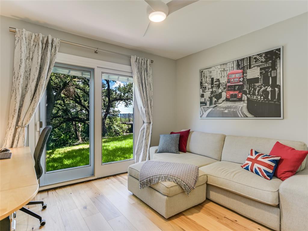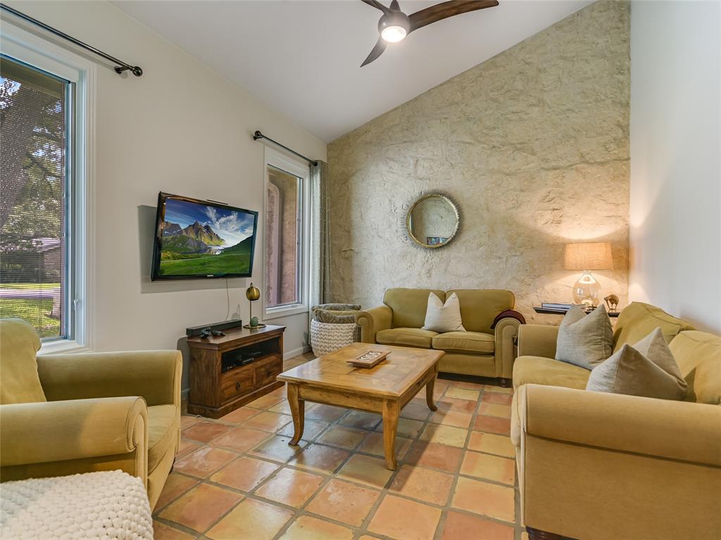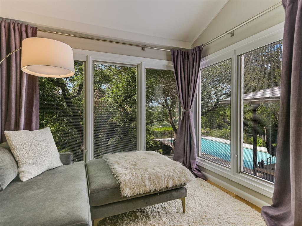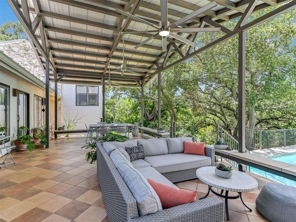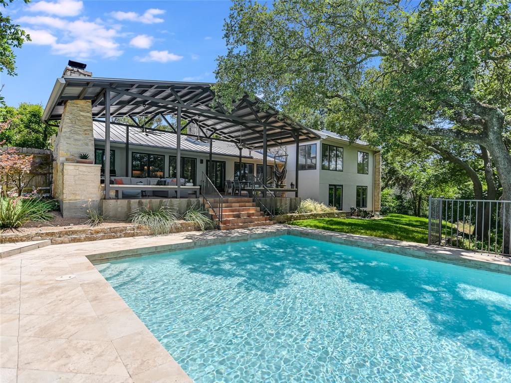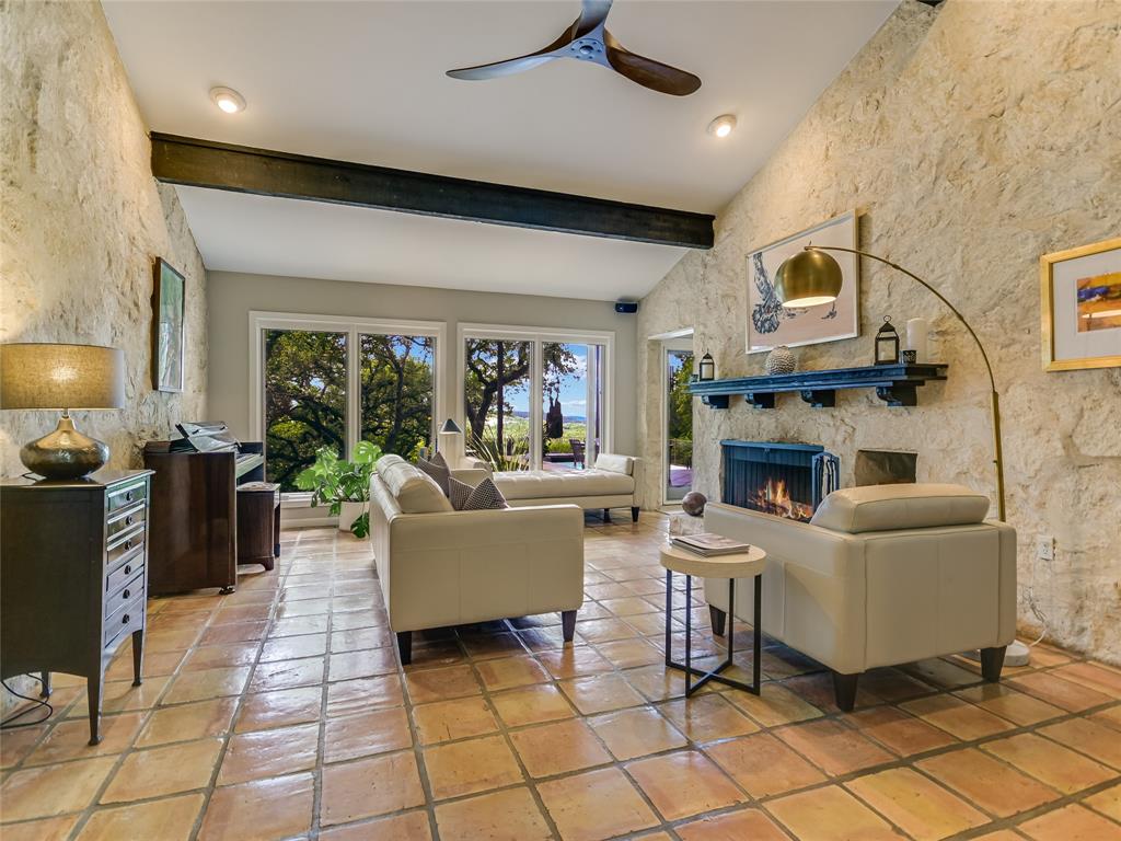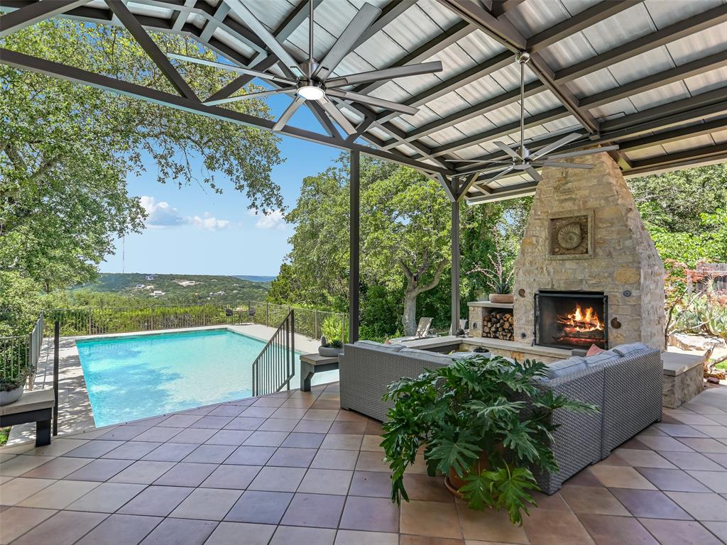 Located on one of Austin’s most renowned and highest hilltop streets, this inviting Westlake property is a beautiful serene retreat complete with distant Hill Country views and wonderful privacy. The charming and updated house lives almost like a single story with 4 bedrooms, 3 full bathrooms, 2 living areas, 2 dining spaces and an intimate backyard oasis. Luxurious primary suite situated on its own level encased in floor-to-ceiling windows overlooking the pool & treetops. Saltillo tile, ceramic tile and light hickory hardwood floors throughout. Gorgeous exposed stone fireplaces and stone accent walls in the living and kitchen areas. Beautifully remodeled kitchen with a large center island, custom cabinetry, breakfast/dining area and doors that open to the back patio for alfresco dining. Expansive covered back patio with a stunning outdoor fireplace and lounge area overlooking the pool and Hill Country. The 0.50 acre (TCAD) yard is very usable and mostly flat with a gentle slope in the back. Bridge Point Elementary, Hill Country MS and Westlake HS. Incredible location on a stunning street in the hills of Westlake!