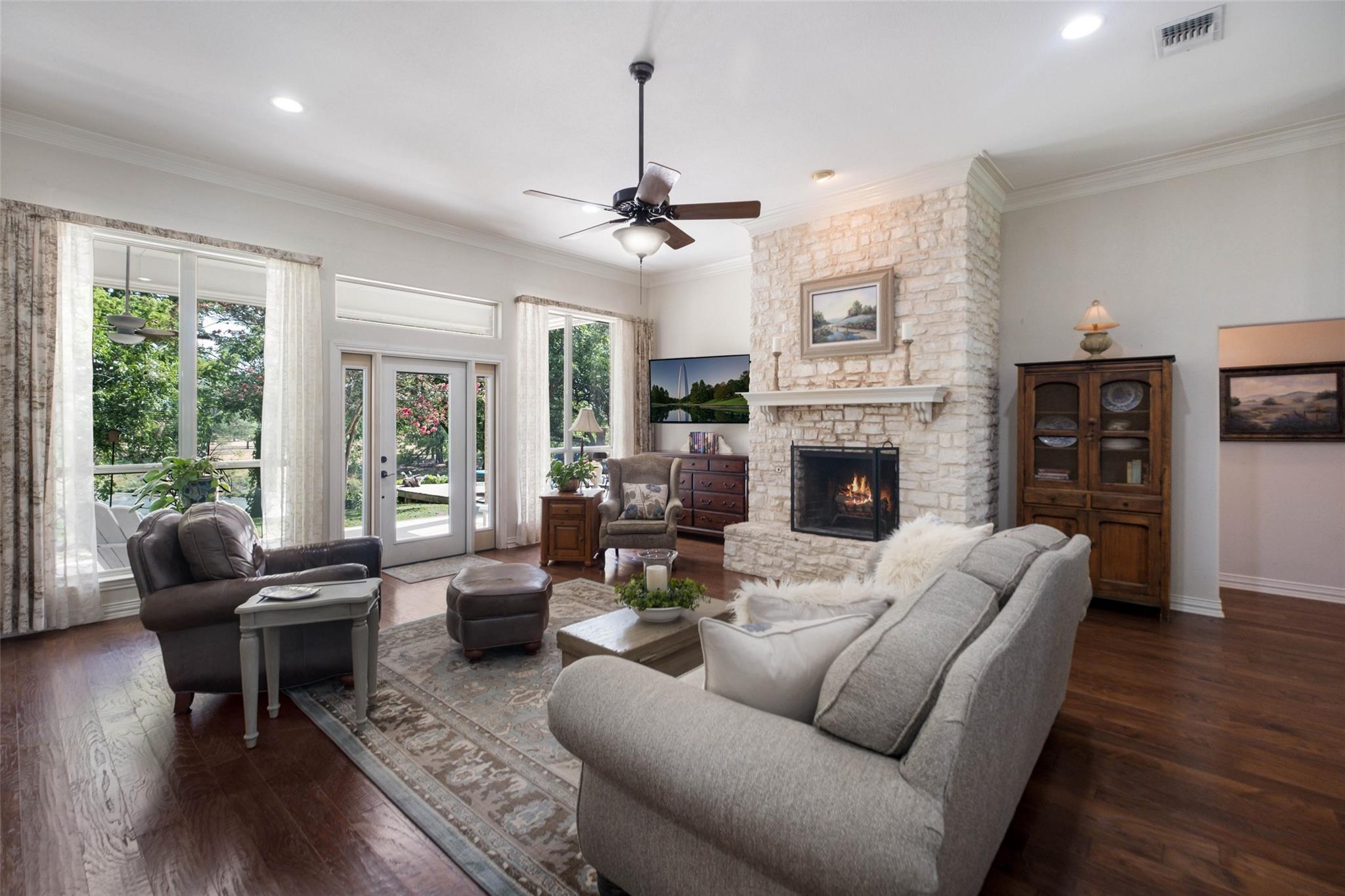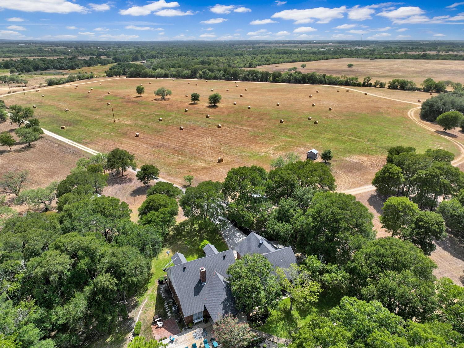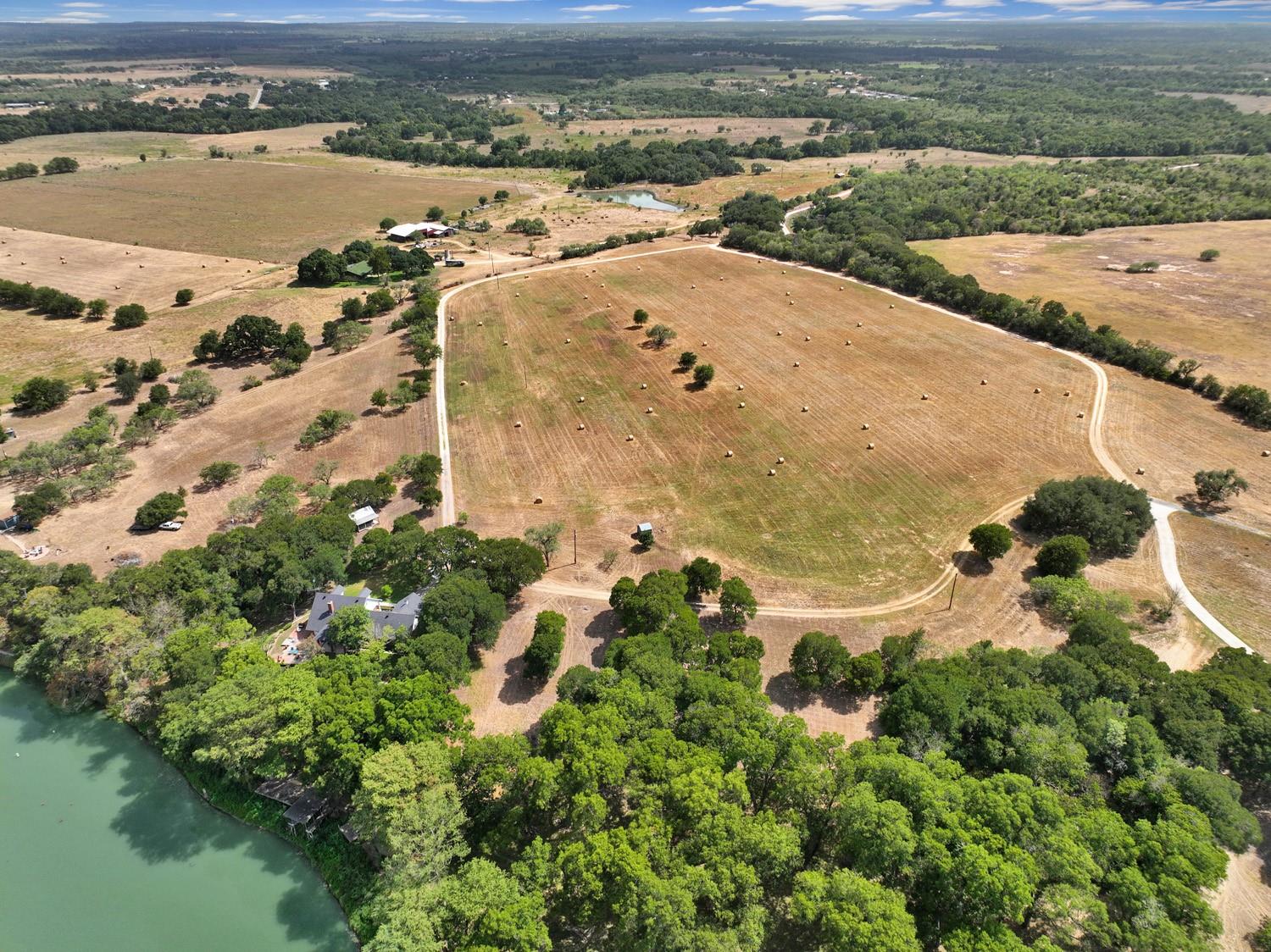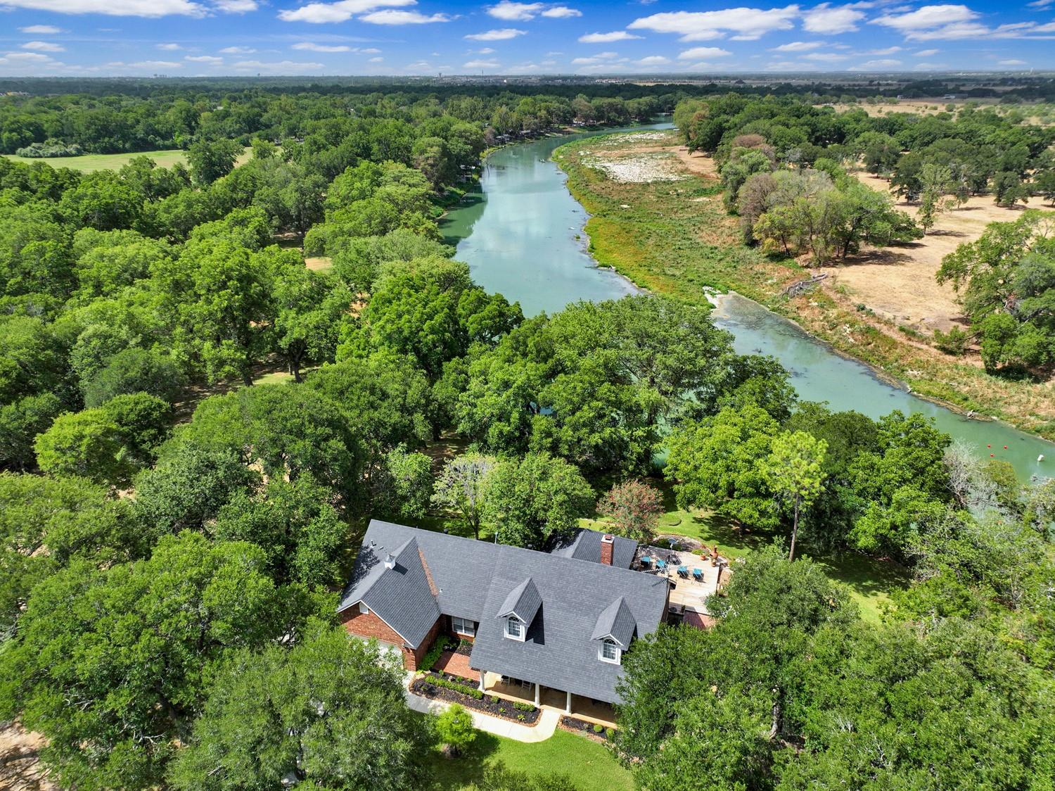 Waterfront Paradise tucked alongside the shores of Meadow Lake with over 600 ft of shoreline promising boundless aquatic delights. The boat lift and slip guarantees effortless water access, while a fish cleaning station caters to anglers. Even with reduced water levels, the Guadalupe River continues to flow through, inviting you to indulge in swimming, kayaking, and boating escapades. Positioned on 29 acres (with an optional 29 more), a meandering stone pathway guides you to the shoreline. The covered patio offers views of Meadow Lake and tranitiosn to a wooden deck and brick paver patio, creating an idyllic space for gatherings. Indoors the living room stands as the epicenter of the home with a beautiful fireplace that radiates warmth and offers breathtaking lake views. It connects to the covered patio, blurring the boundaries between indoor and outdoor living. The gourmet kitchen is a culinary masterpiece, outfitted with top-tier amenities, lustrous granite countertops, bar seating, and a substantial island. The dining room accommodates gatherings and seamlessly integrates with the living area. In the owner's suite you can bask in the soothing lake views. The en suite bathroom presents dual vanities, a sumptuous garden tub, and an artfully tiled walk-in shower. Additionally, the secondary bedrooms capture picturesque Meadow Lake vistas. This waterfront sanctuary is a rare fusion of country and lakeside living creating the ideal setting for endless days on Meadow Lake.