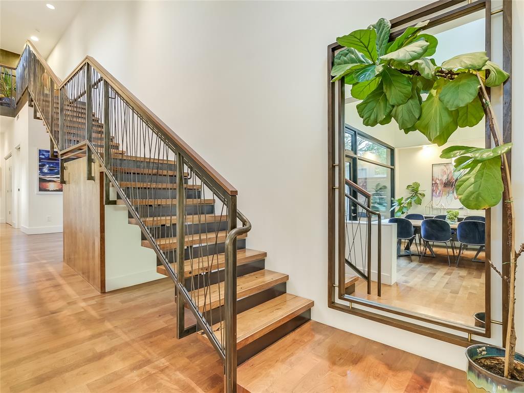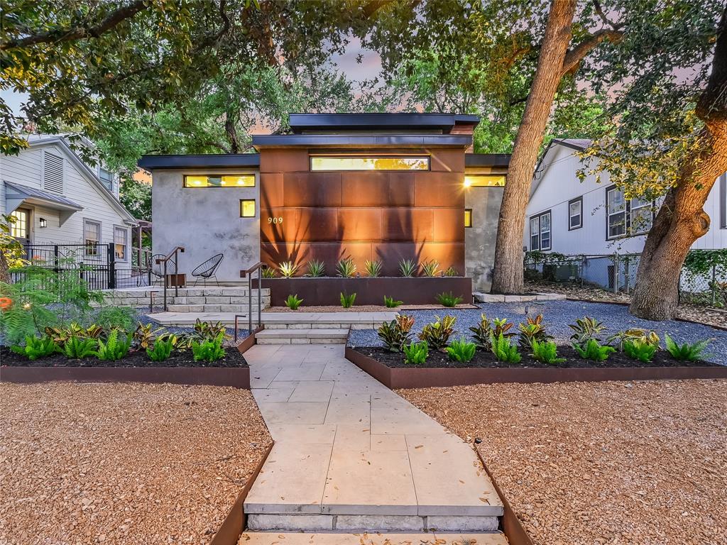 An immaculately designed property in historic Bouldin! From the jaw dropping curb appeal to the moment you enter this creatively thought out space you will be mesmerized by the collaboration efforts of Jobe Corral Architects & Pilgrim Building Company. 909 Post Oak invites you in to an open concept with tall ceilings and spaces wrapping all around a cozy, private courtyard. The main level master bath boasts high-end custom tile, and grants access to the courtyard featuring beautiful bamboo. On one of the most coveted streets, it is within walking distance to everything - Barton Springs Rd, Downtown, Lady Bird Lake, Hike and Bike trail, SOCO, and South Lamar. It is the perfect location to enjoy nature, dining, shopping, and nightlife. This can also be purchased with the neighboring house for expansion.