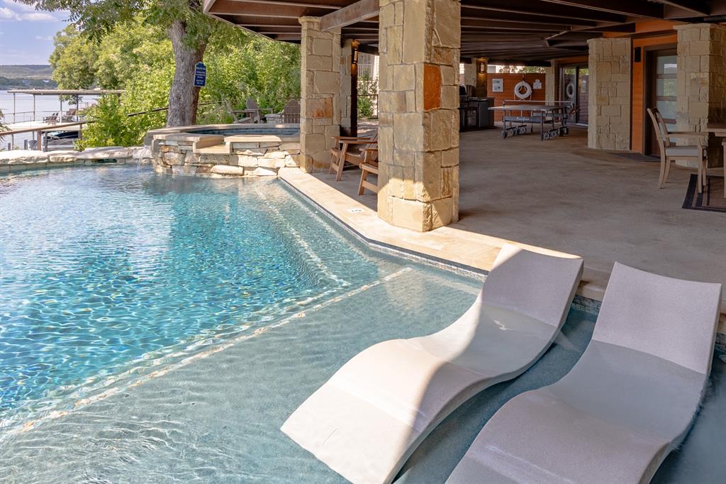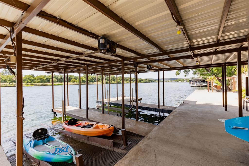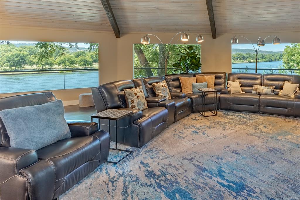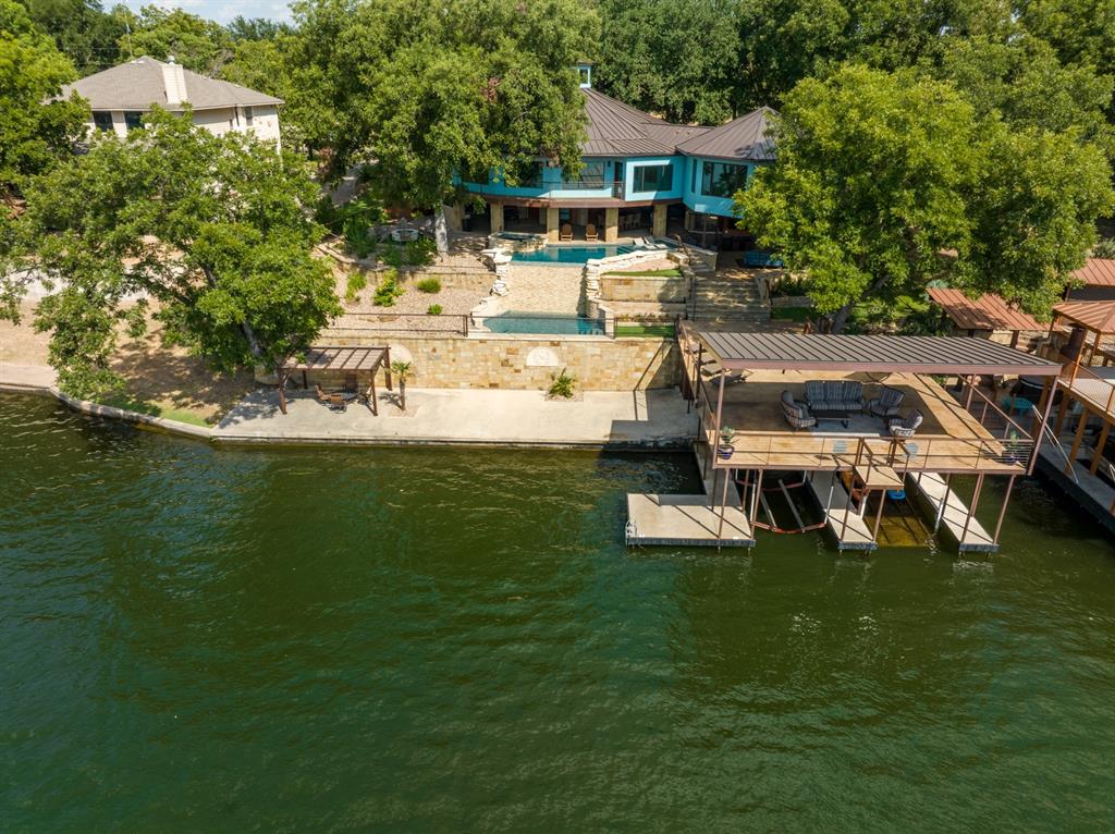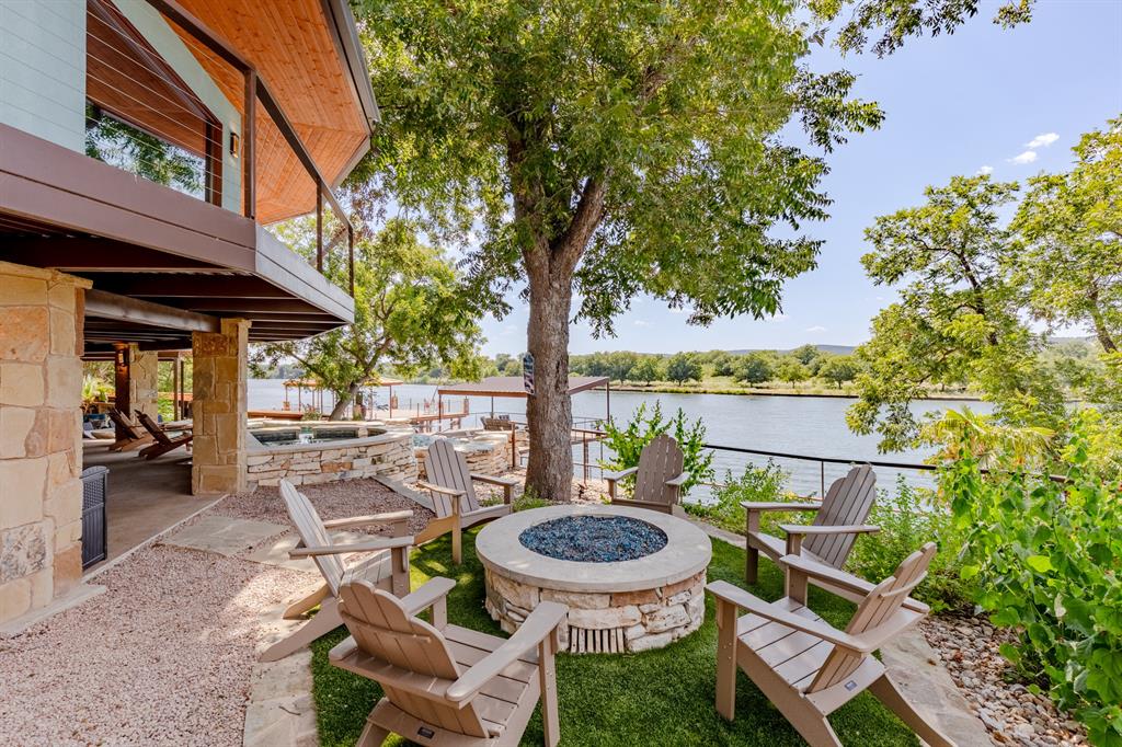 Welcome to your very own waterfront oasis, you won't find anything like this on Lake LBJ! There is over 5,400 sqft of indoor living space and 1,500+ square feet of outdoor living space across multiple patios/seating areas, complete with super comfy outdoor furniture. A Sonos speaker system is wired throughout the whole property ensuring whether guests are inside or on the dock they are sure to be entertained. There's also a built-in limestone fire pit overlooking the beautiful Colorado Arm of Lake LBJ. An outdoor kitchen fully outfitted with a Fire Magic gas grill and side burner/Power Burner that can handle any shrimp/crawfish boil also a sink, under-counter refrigerator and plenty of counter space for all those BBQ meat trays! Your indoor kitchen is fully outfitted with Cafe brand appliances and a separate wet bar area. You'll also find 5 spacious bedrooms (including 3 master suites) Each bedroom has its own en suite bathroom. What makes this property unique is the unobstructed panoramic views of the Upper Colorado River, situated across from a completely undeveloped ranch where black angus cattle roam everyday. Enjoy breathtaking sunsets behind the backdrop of Long Mountain. This home is already being rented on VRBO with several 5 star reviews! Whether you're looking for your personal lake house or an investment short term rental do not miss the chance at this one of a kind property! You also have a shop across the street for all your toys & additional parking.