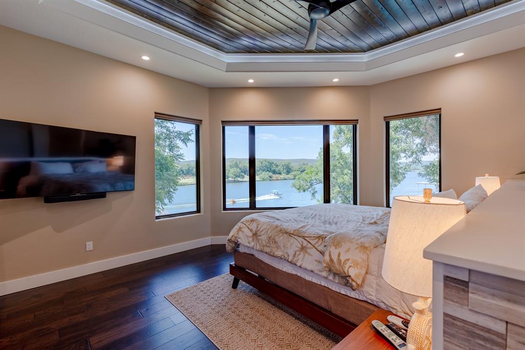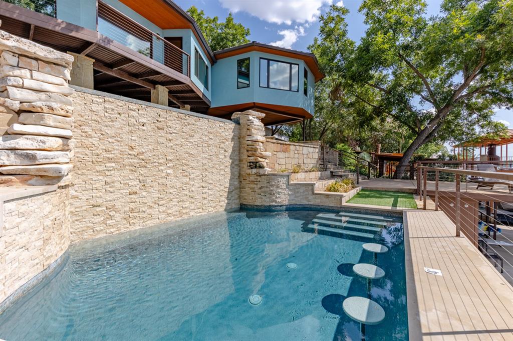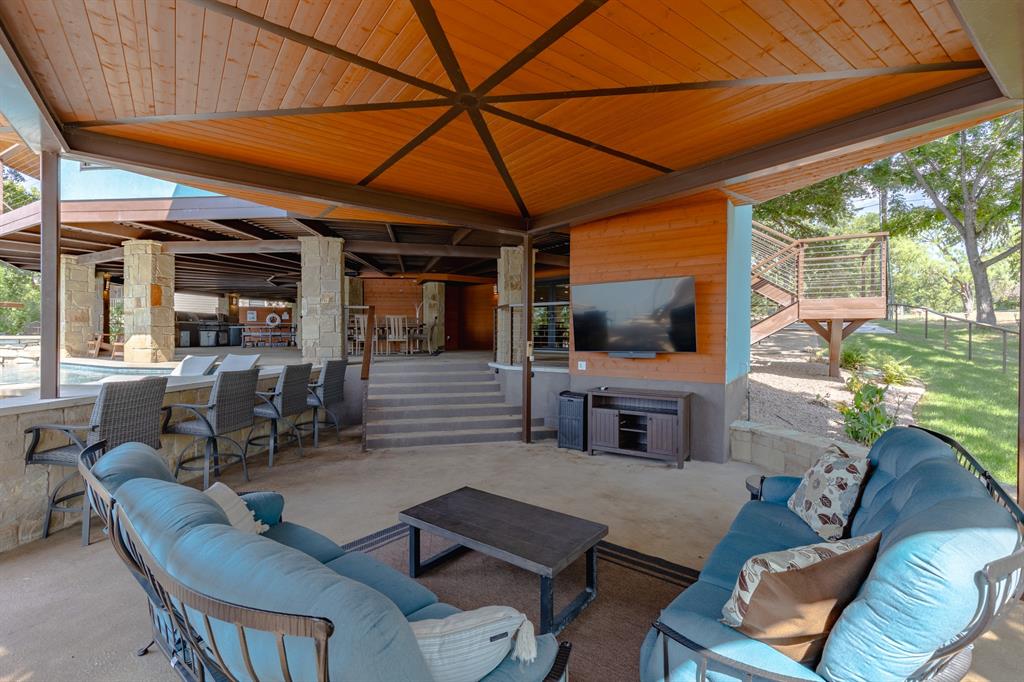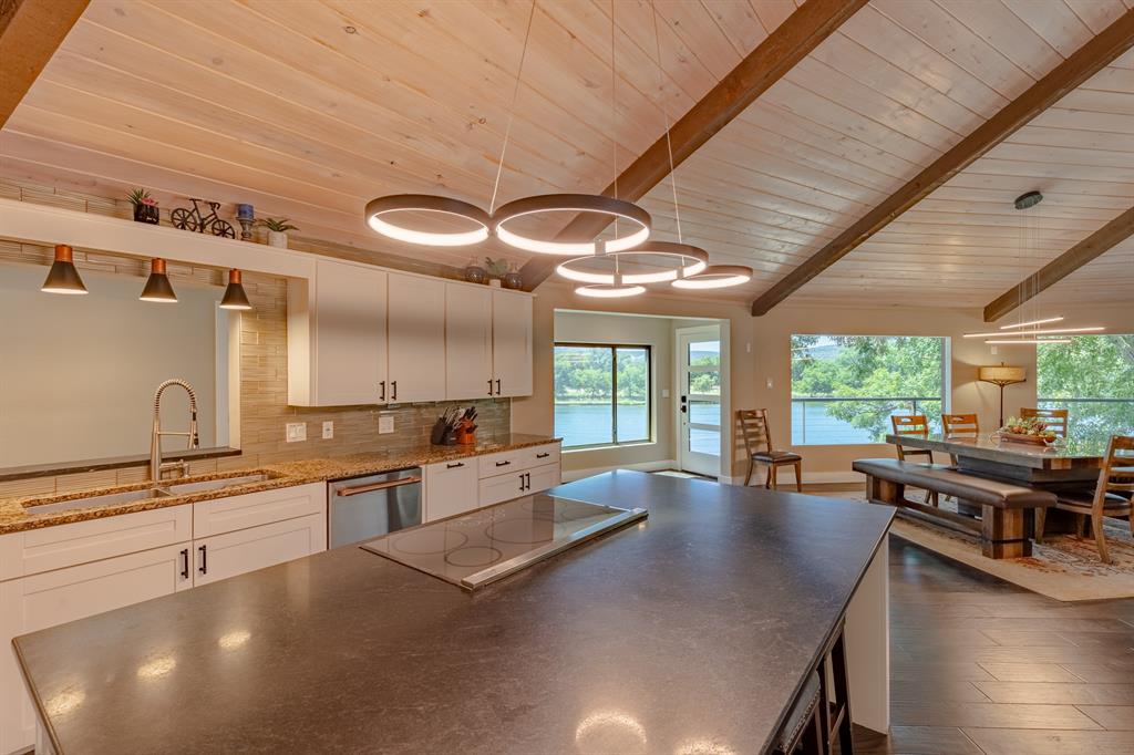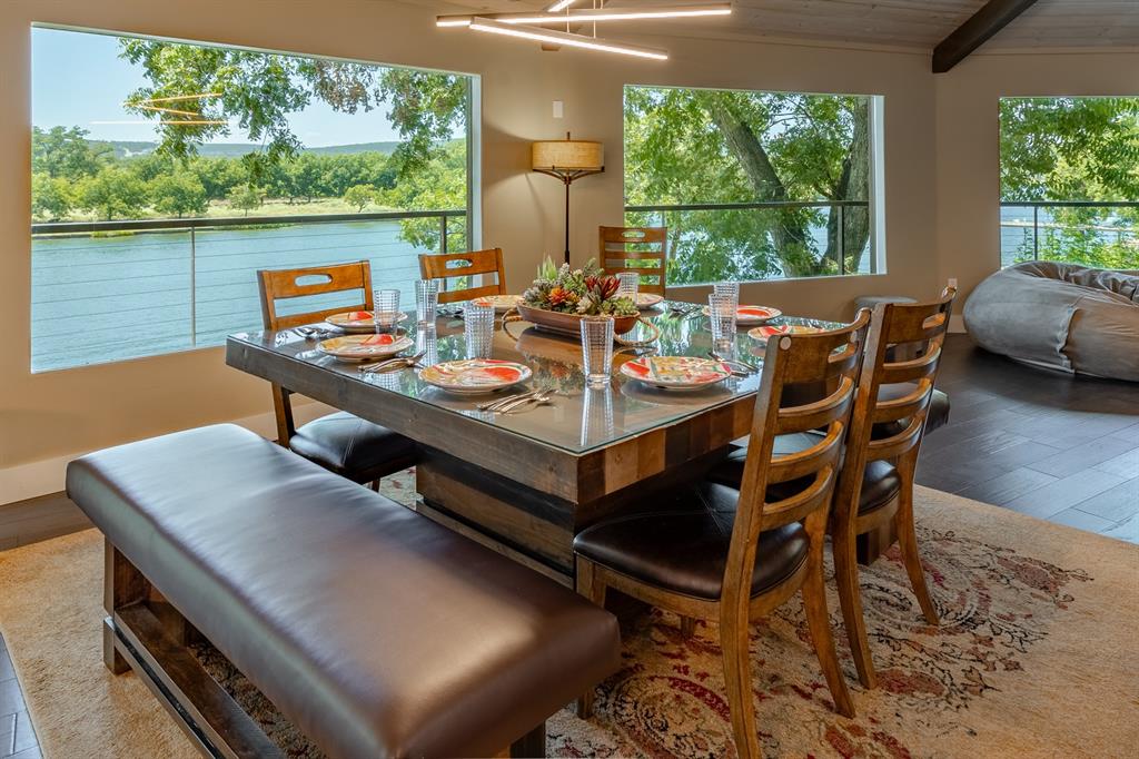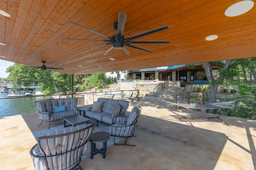 Welcome to your very own waterfront oasis, you won't find anything like this on Lake LBJ! There is over 5,400 sqft of indoor living space and 1,500+ square feet of outdoor living space across multiple patios/seating areas, complete with super comfy outdoor furniture. A Sonos speaker system is wired throughout the whole property ensuring whether guests are inside or on the dock they are sure to be entertained. There's also a built-in limestone fire pit overlooking the beautiful Colorado Arm of Lake LBJ. An outdoor kitchen fully outfitted with a Fire Magic gas grill and side burner/Power Burner that can handle any shrimp/crawfish boil also a sink, under-counter refrigerator and plenty of counter space for all those BBQ meat trays! Your indoor kitchen is fully outfitted with Cafe brand appliances and a separate wet bar area. You'll also find 5 spacious bedrooms (including 3 master suites) Each bedroom has its own en suite bathroom. What makes this property unique is the unobstructed panoramic views of the Upper Colorado River, situated across from a completely undeveloped ranch where black angus cattle roam everyday. Enjoy breathtaking sunsets behind the backdrop of Long Mountain. This home is already being rented on VRBO with several 5 star reviews! Whether you're looking for your personal lake house or an investment short term rental do not miss the chance at this one of a kind property! You also have a shop across the street for all your toys & additional parking.