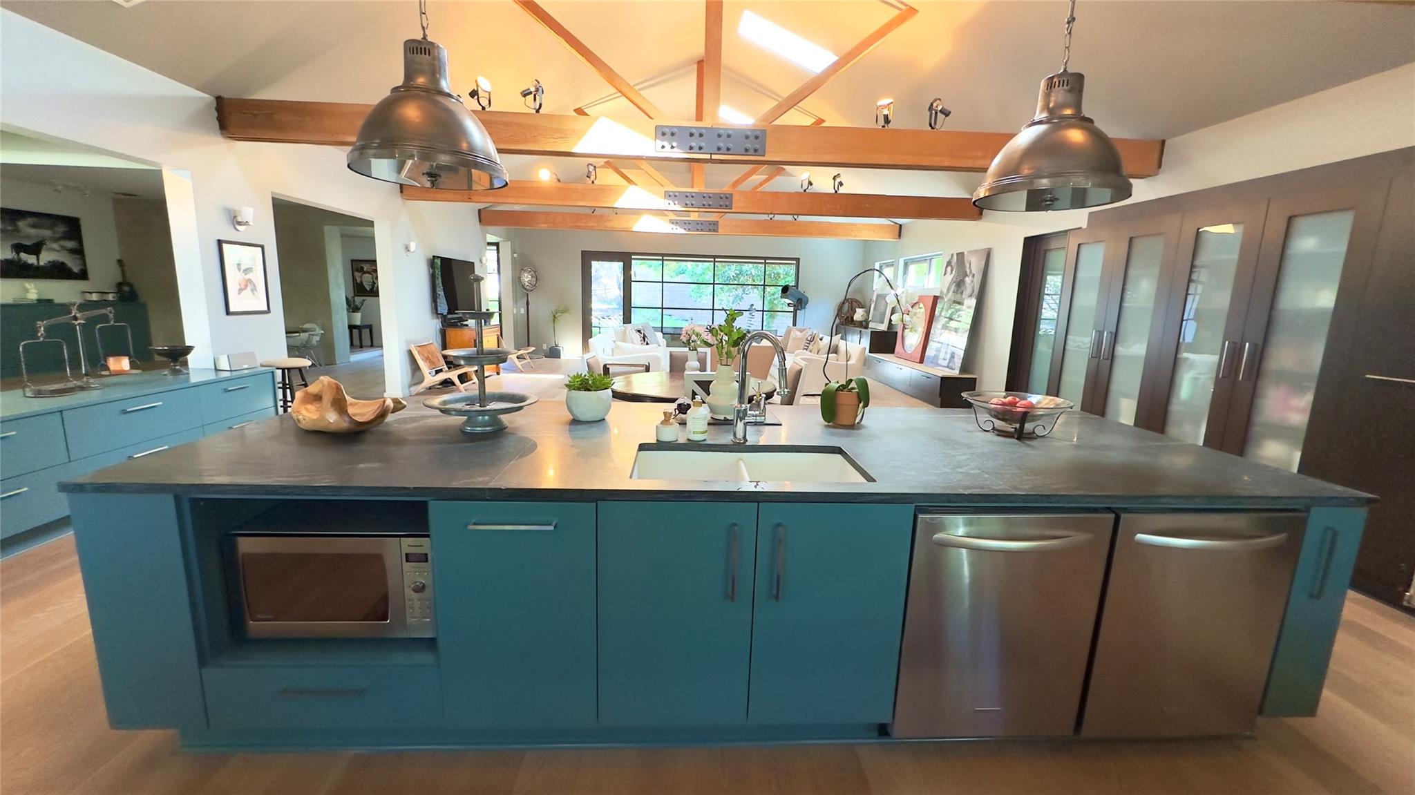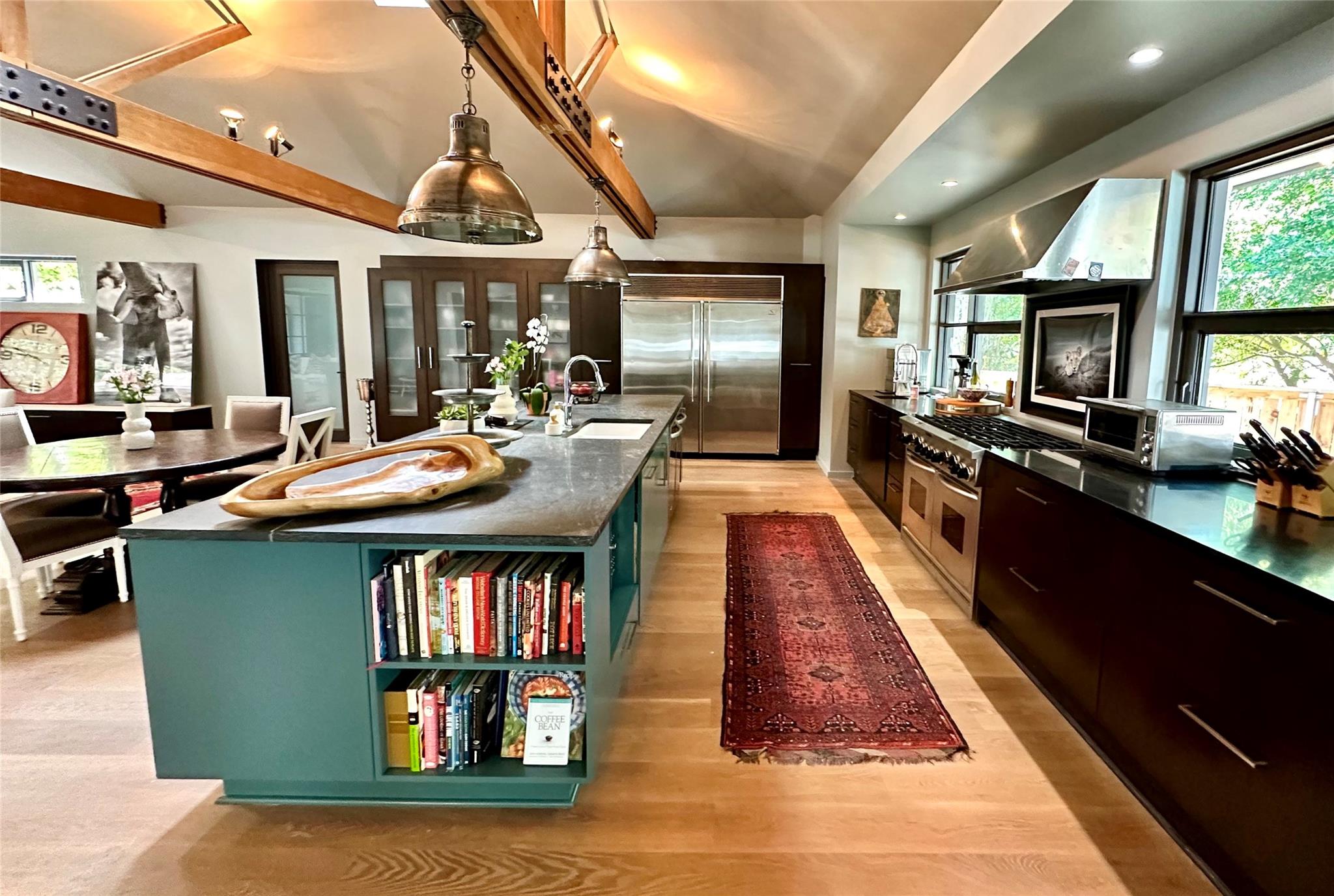 | Interior Features | Ceiling Fan(s), Beamed Ceilings, Cathedral Ceiling(s), High Ceilings, Stone Counters, Double Vanity, Electric Dryer Hookup, Gas Dryer Hookup, Eat-in Kitchen, Kitchen Island, Multiple Dining Areas, Multiple Living Areas, Open Floorplan, Primary Bedroom on Main, Recessed Lighting, Smart Thermostat, Soaking Tub, Track Lighting, Walk-In Closet(s), Washer Hookup, Wet Bar | |