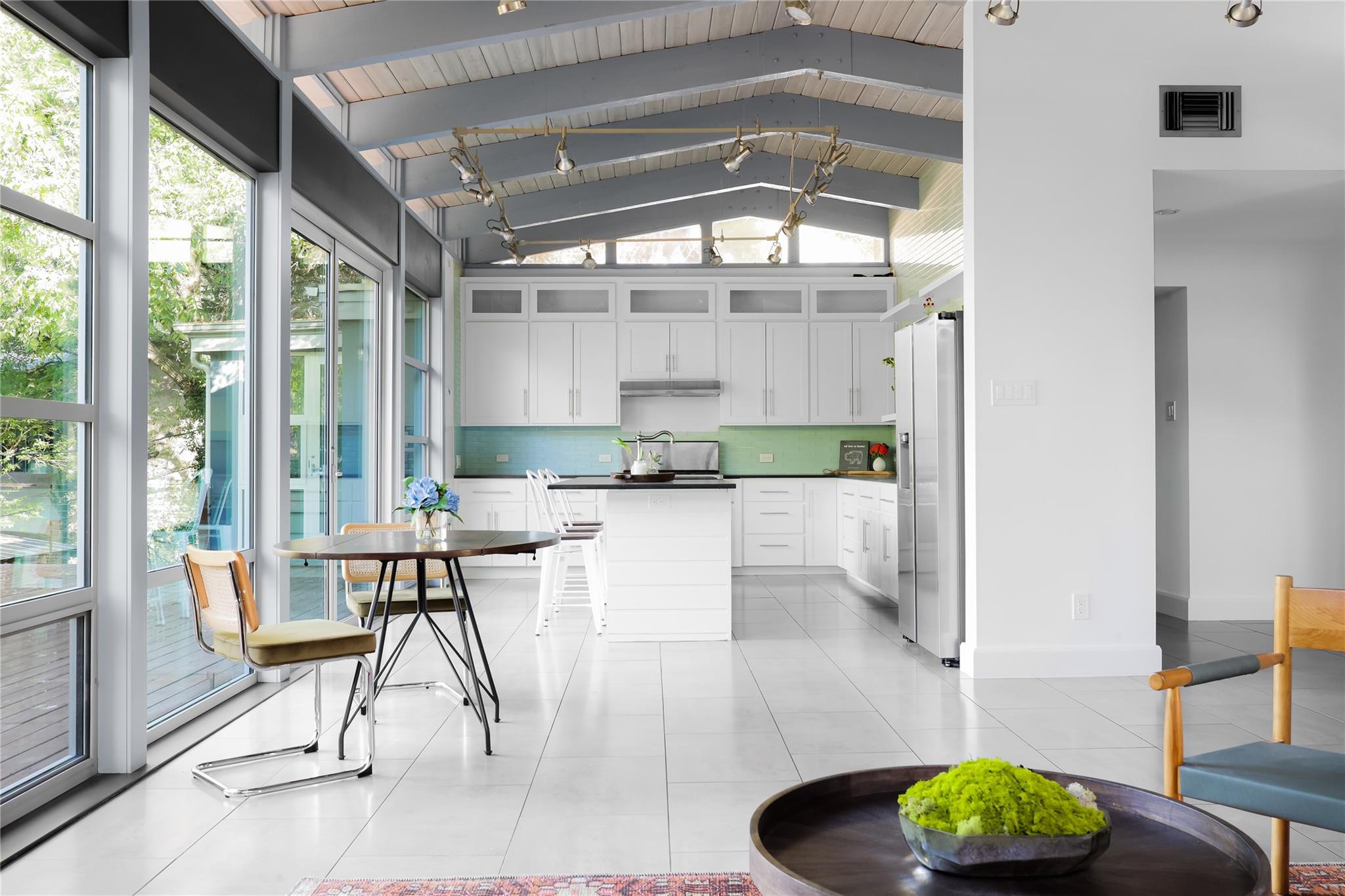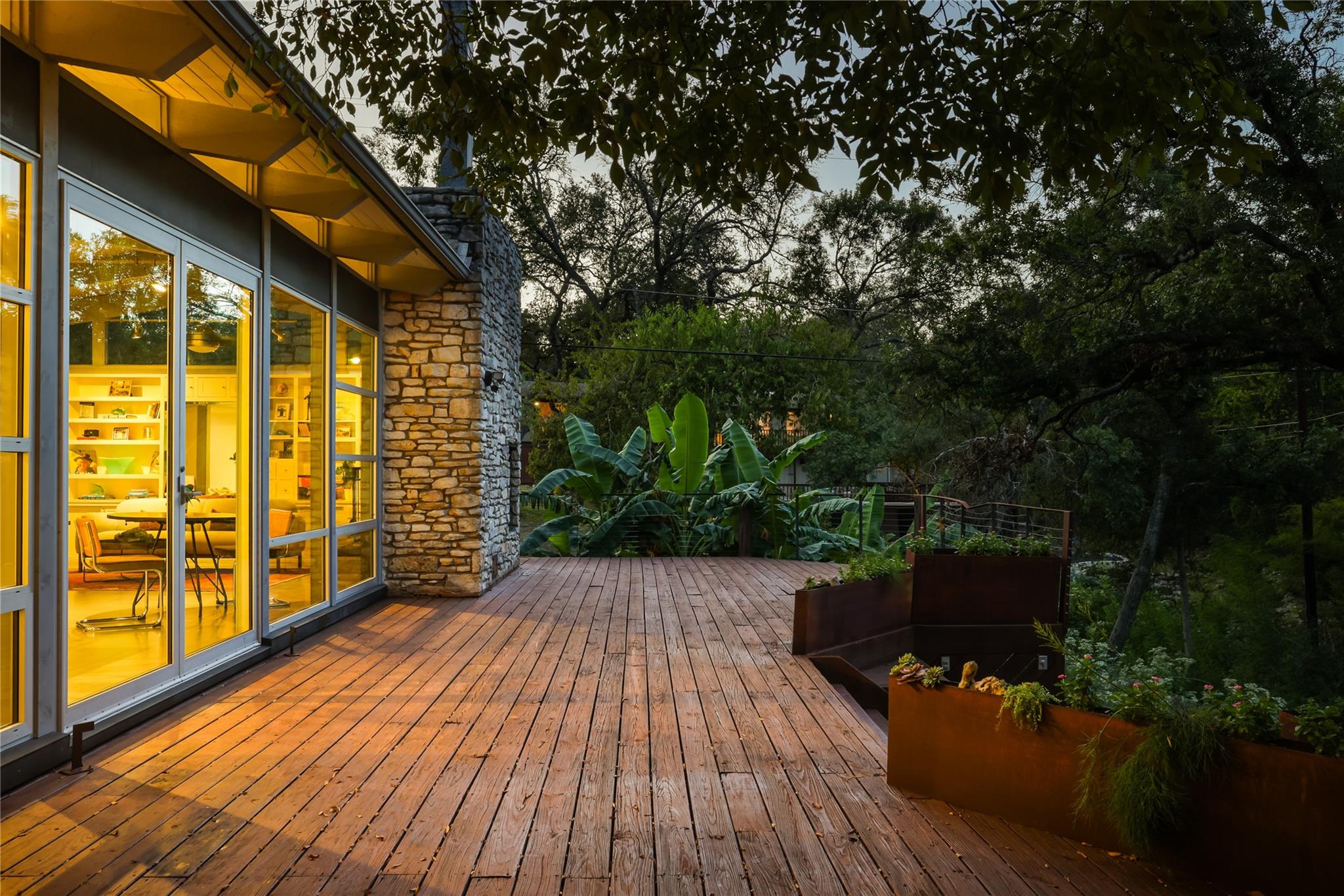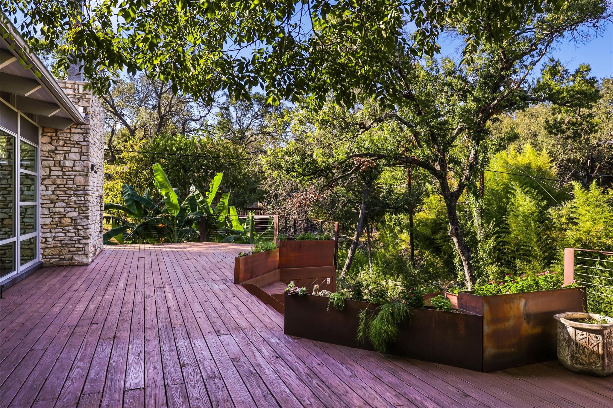 Tucked away in Eanes ISD’s coveted Westwood neighborhood – this mid-century modern home is a rare combination of natural privacy & neighborhood charm. Built in 1960 and beautifully updated in 2015, this authentic timepiece was designed to bring the outdoors…IN. Renovations include the open concept gourmet kitchen, luxurious primary suite and guest bedrooms. Perfect for dining al fresco with Fleetwood doors that graciously open onto a large deck with outdoor grill overlooking the private greenbelt and wet-weather creek. Mid-century features such as the of open floor plan living, vaulted ceilings and natural stone elements create a vibe that is effortlessly boho chic. Not included in the square footage is a separate HVAC’ed workshop/studio that is ready for your next creative venture! Located in the highly sought-after Eanes school district and feeds to Eanes Elementary, Hill Country Middle School & Westlake High School. LOW TAX RATE at 1.43% and less than 1/4 mile to local shops, restaurants such as Sway and Texas Honey Ham, Breed Hardware, Barton Springs Nursery, fitness gyms, yoga and so much more. Come enjoy the best that Westlake has to offer at 410 Brookhaven Trail!
