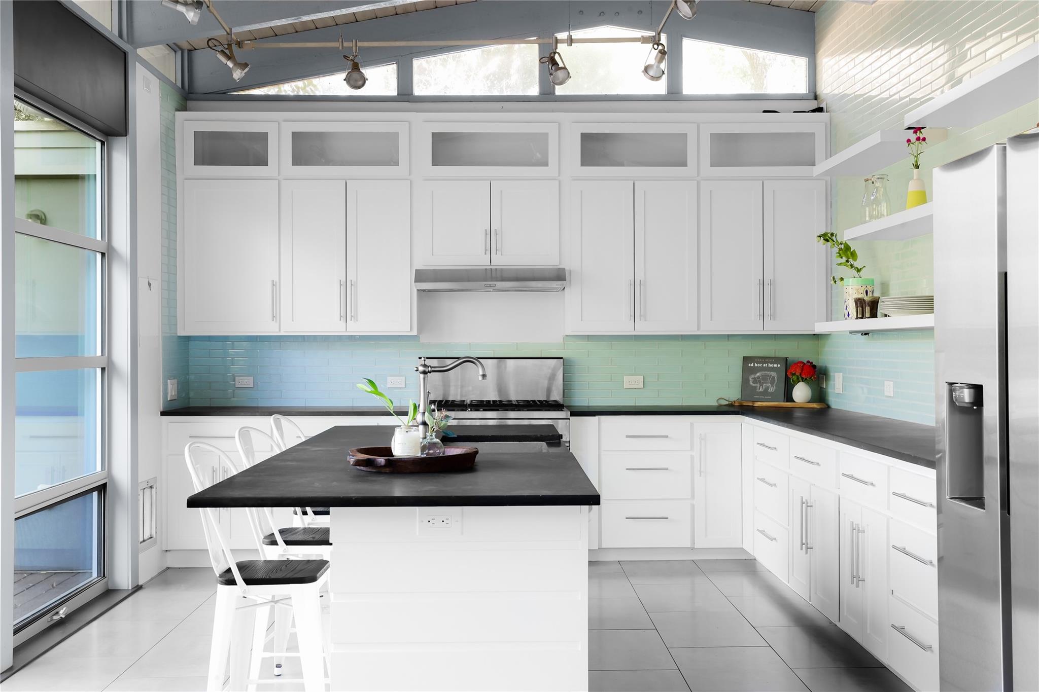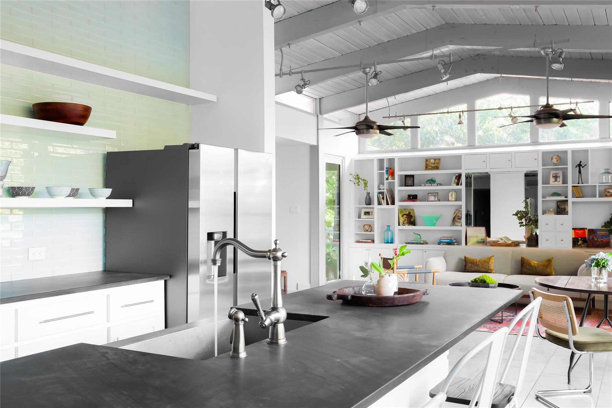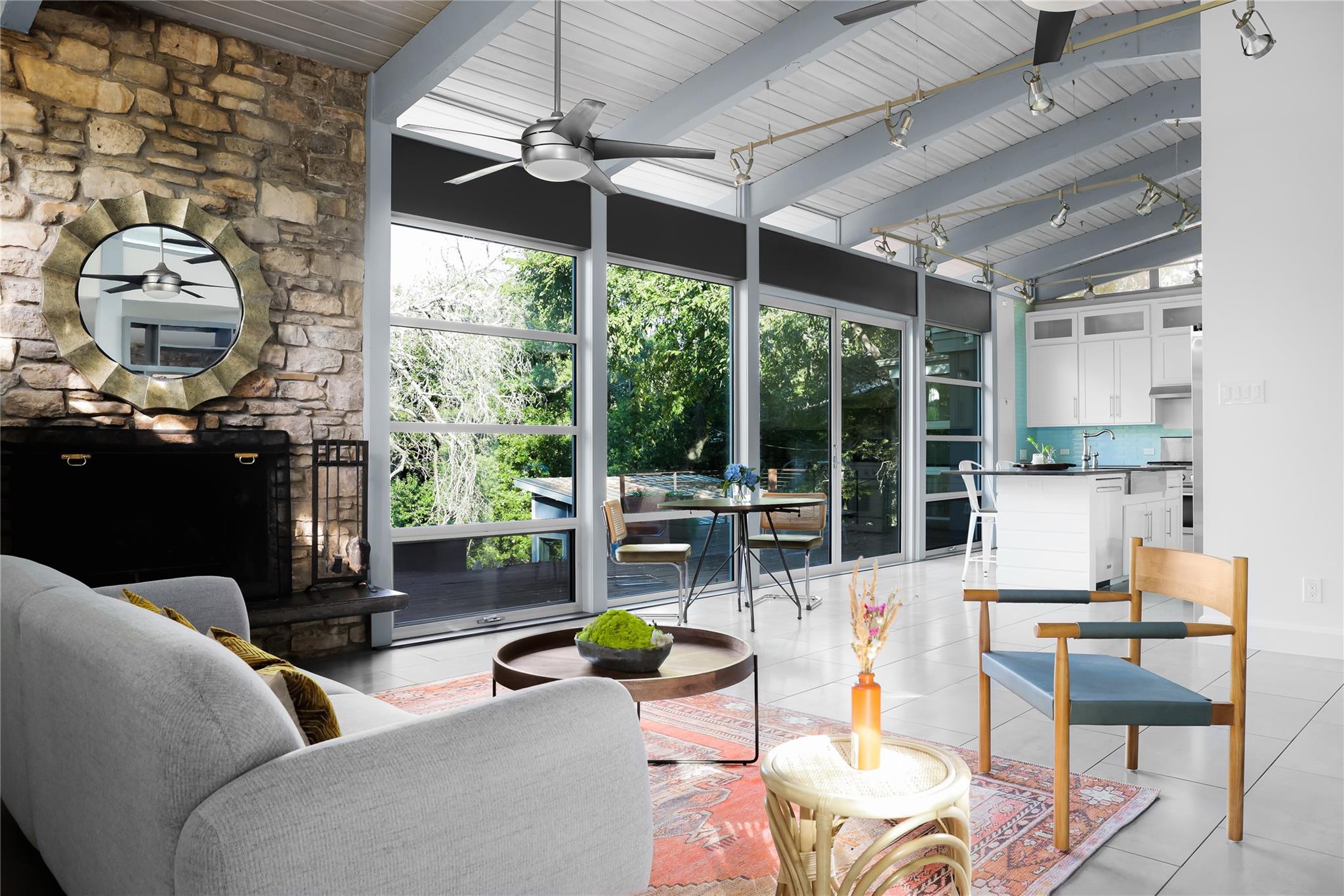 Tucked away in Eanes ISD’s coveted Westwood neighborhood – this mid-century modern home is a rare combination of natural privacy & neighborhood charm. Built in 1960 and beautifully updated in 2015, this authentic timepiece was designed to bring the outdoors…IN. Renovations include the open concept gourmet kitchen, luxurious primary suite and guest bedrooms. Perfect for dining al fresco with Fleetwood doors that graciously open onto a large deck with outdoor grill overlooking the private greenbelt and wet-weather creek. Mid-century features such as the of open floor plan living, vaulted ceilings and natural stone elements create a vibe that is effortlessly boho chic. Not included in the square footage is a separate HVAC’ed workshop/studio that is ready for your next creative venture! Located in the highly sought-after Eanes school district and feeds to Eanes Elementary, Hill Country Middle School & Westlake High School. LOW TAX RATE at 1.43% and less than 1/4 mile to local shops, restaurants such as Sway and Texas Honey Ham, Breed Hardware, Barton Springs Nursery, fitness gyms, yoga and so much more. Come enjoy the best that Westlake has to offer at 410 Brookhaven Trail!