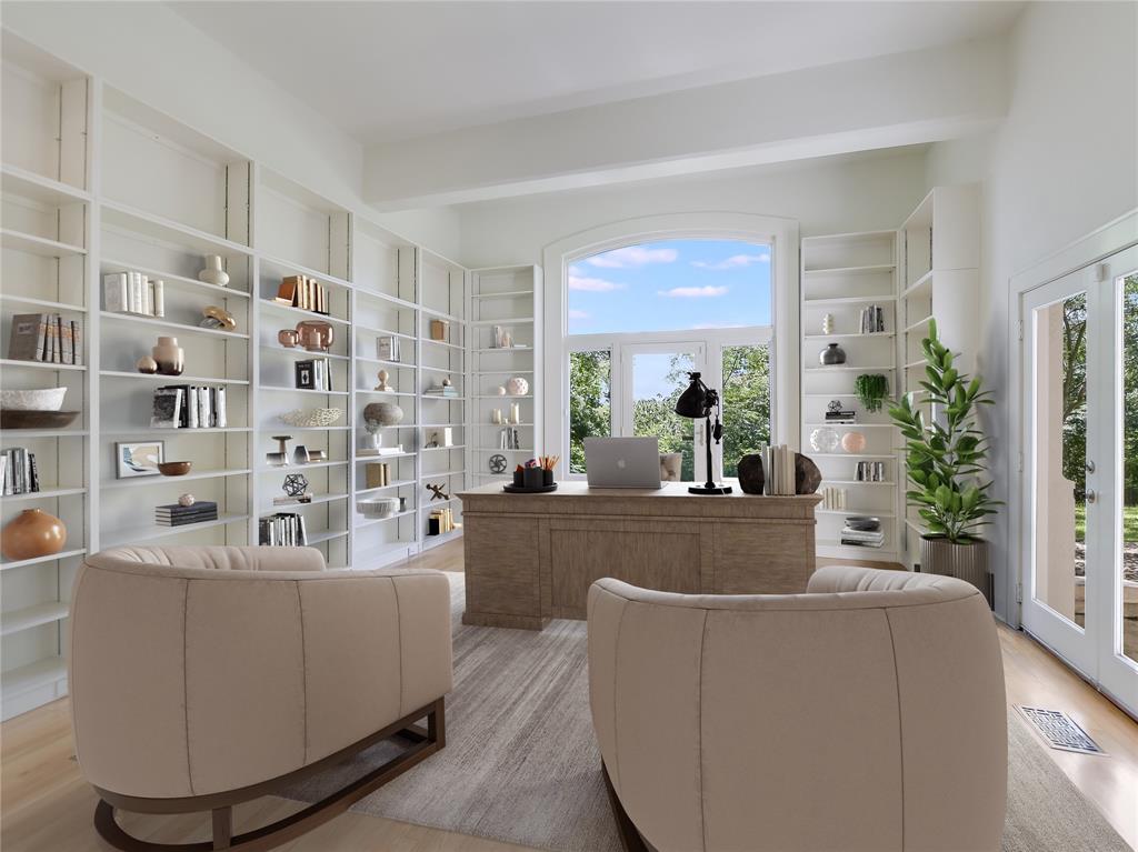 Large office downstairs w/custom adjustable bookshelves & could double as a