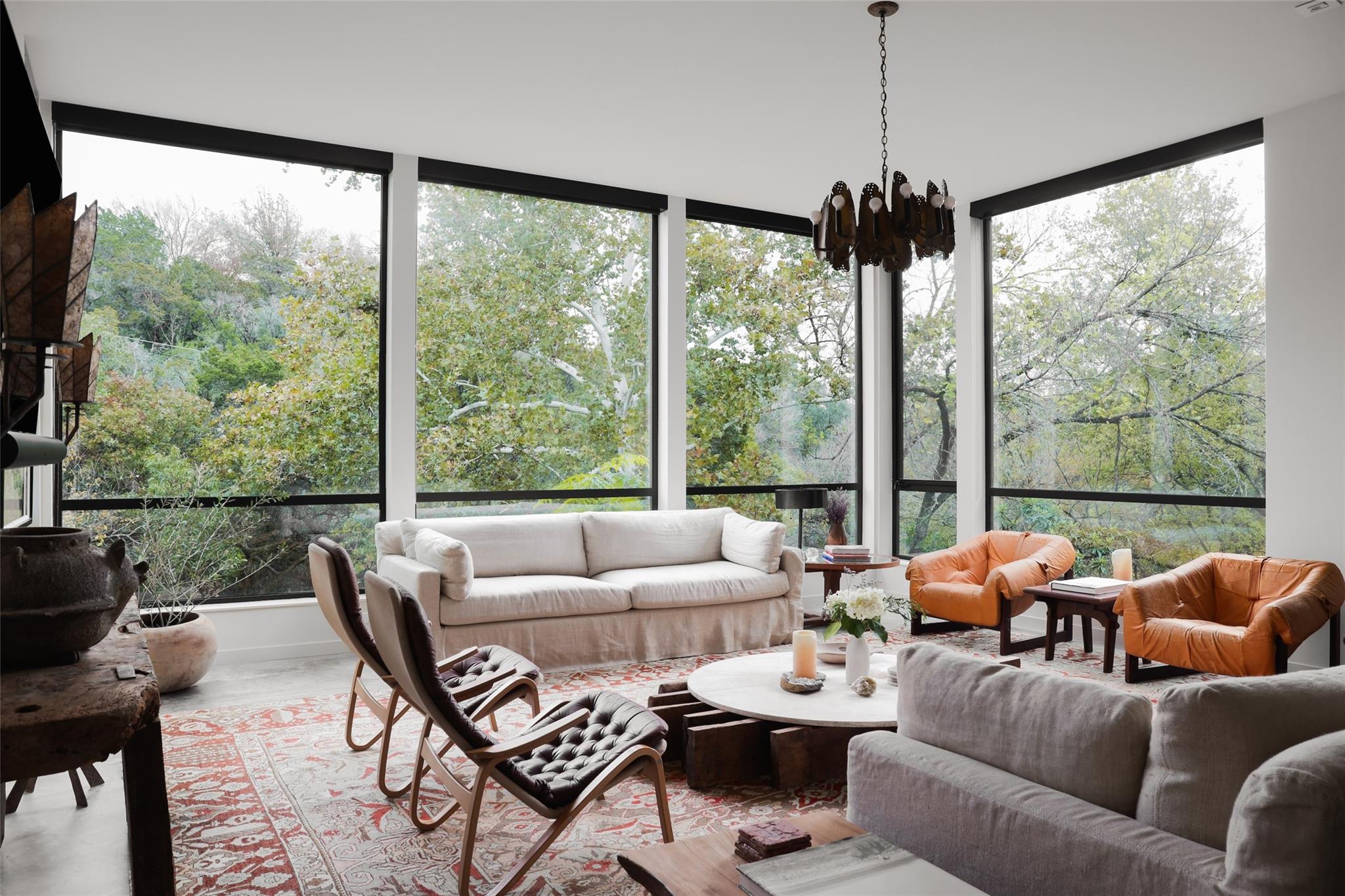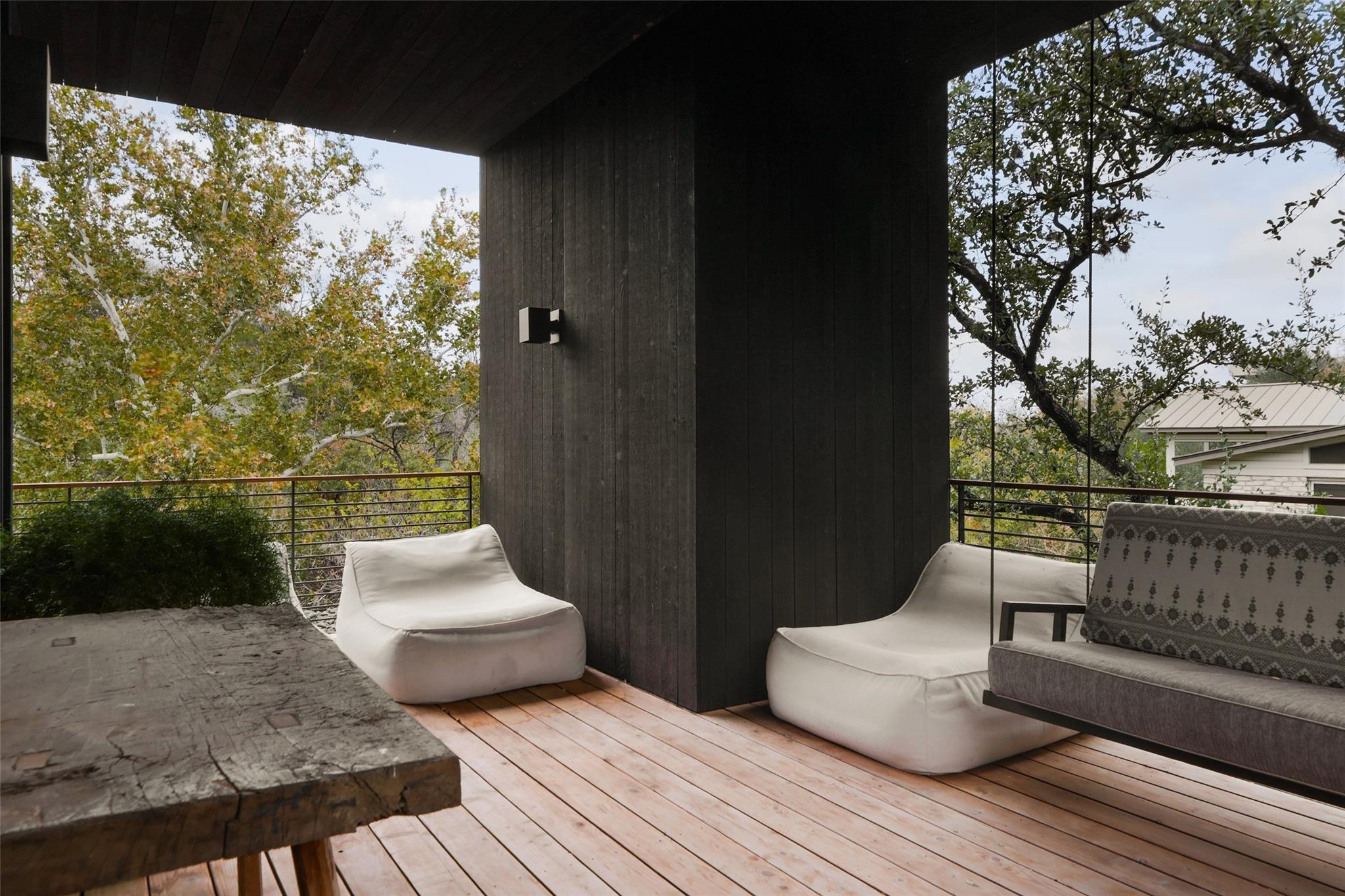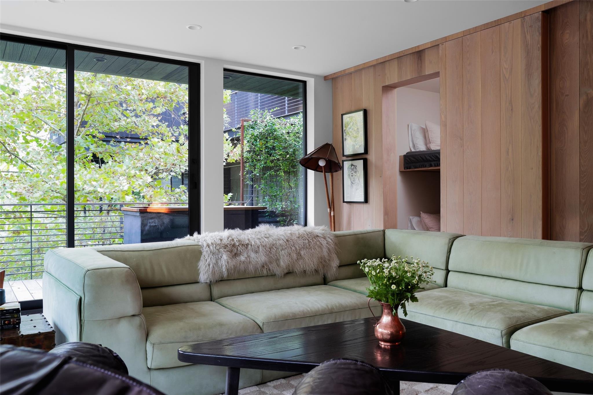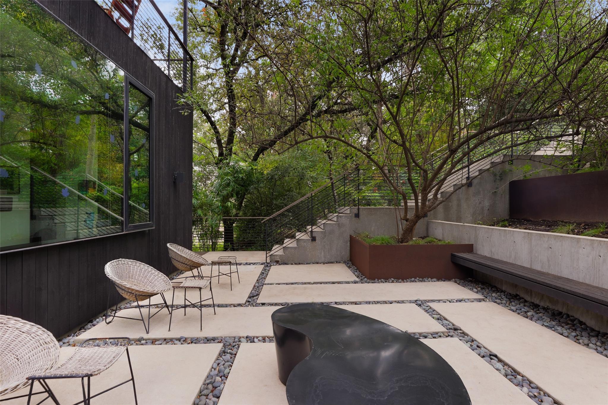 PROPERTY HAS BEEN LEASED. DO NOT CONTACT THE SELLER, CONTACT THE LISTING AGENT IF YOU HAVE AN INTERESTED BUYER OR QUESTIONS.This private residence designed by architect Matt Garcia stands as a testament to sophistication and refined living. The property's unique layout offers the perfect low-maintenance lock and leave lifestyle and the high-end furnishings are the perfect compliment to ease the next owner's transition for an additional fee. Natural light floods throughout the residence with floor-to-ceiling windows in every room creating a seamless connection to nature. The 3,488 SF property is uniquely designed between three structures, with the main living space, gourmet kitchen, dining, and primary suite offering 2,299 SF. The kitchen features Onyx countertops, Poliform cabinetry, stainless steel appliances including a Wolf six burner range, Cove dishwasher, Sub-Zero Pro refrigerator, and wine refrigerator. The primary suite resides upstairs with a walk-in closet, a large bathroom with double vanities, separate tub, walk-in shower, and a heavenly bedroom and sitting area that makes you want to relax upon entering. The primary suite also offers an outdoor patio equipped with a hanging porch swing. Two large guest rooms are located across the carport/breezeway from the main living space which allows guests to stay awhile or allows the homeowners to shut off the space when not in use. The outdoor patio is breathtaking complete with lush landscaping, and a peaceful water feature complimenting the large dining and sitting areas. A third living space is located beneath the patio which is the perfect game room, office, or 4th bedroom suite. Two custom built-in bunk beds and a full bathroom complete the room. White oak walls, cabinetry, and walls of glass continue the theme of bringing the outside world in. A cold plunge and outdoor shower are the perfect additions to this zen residence.