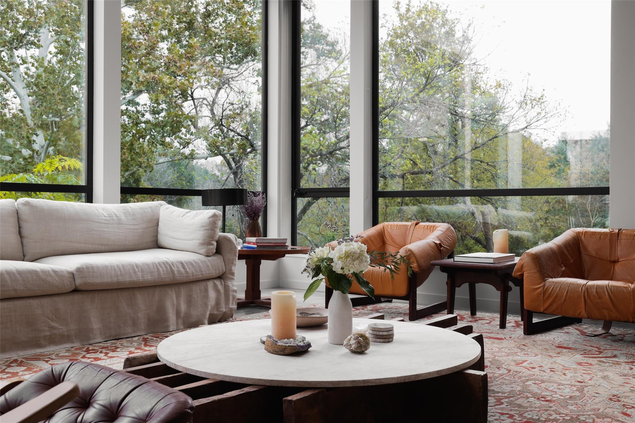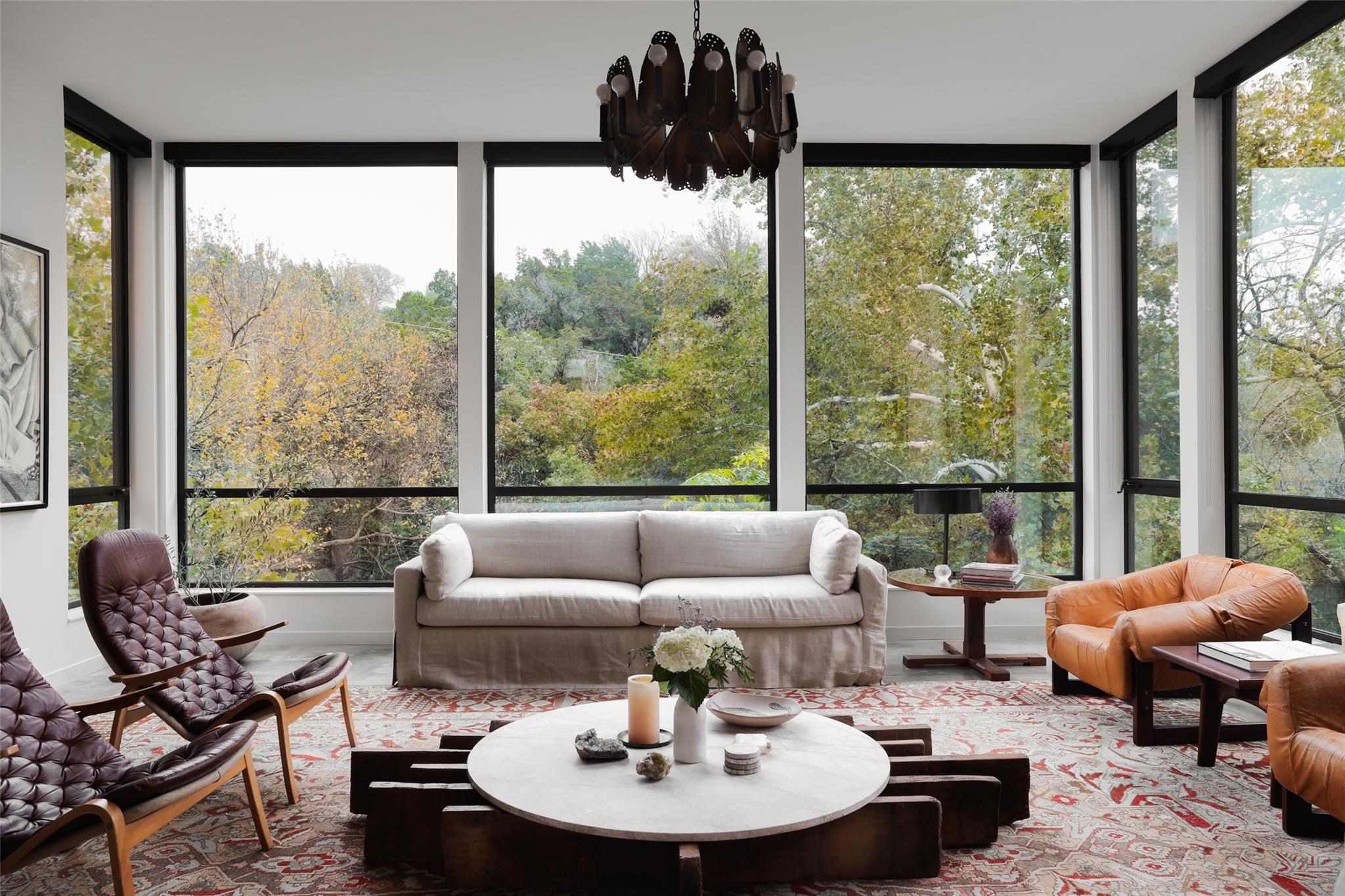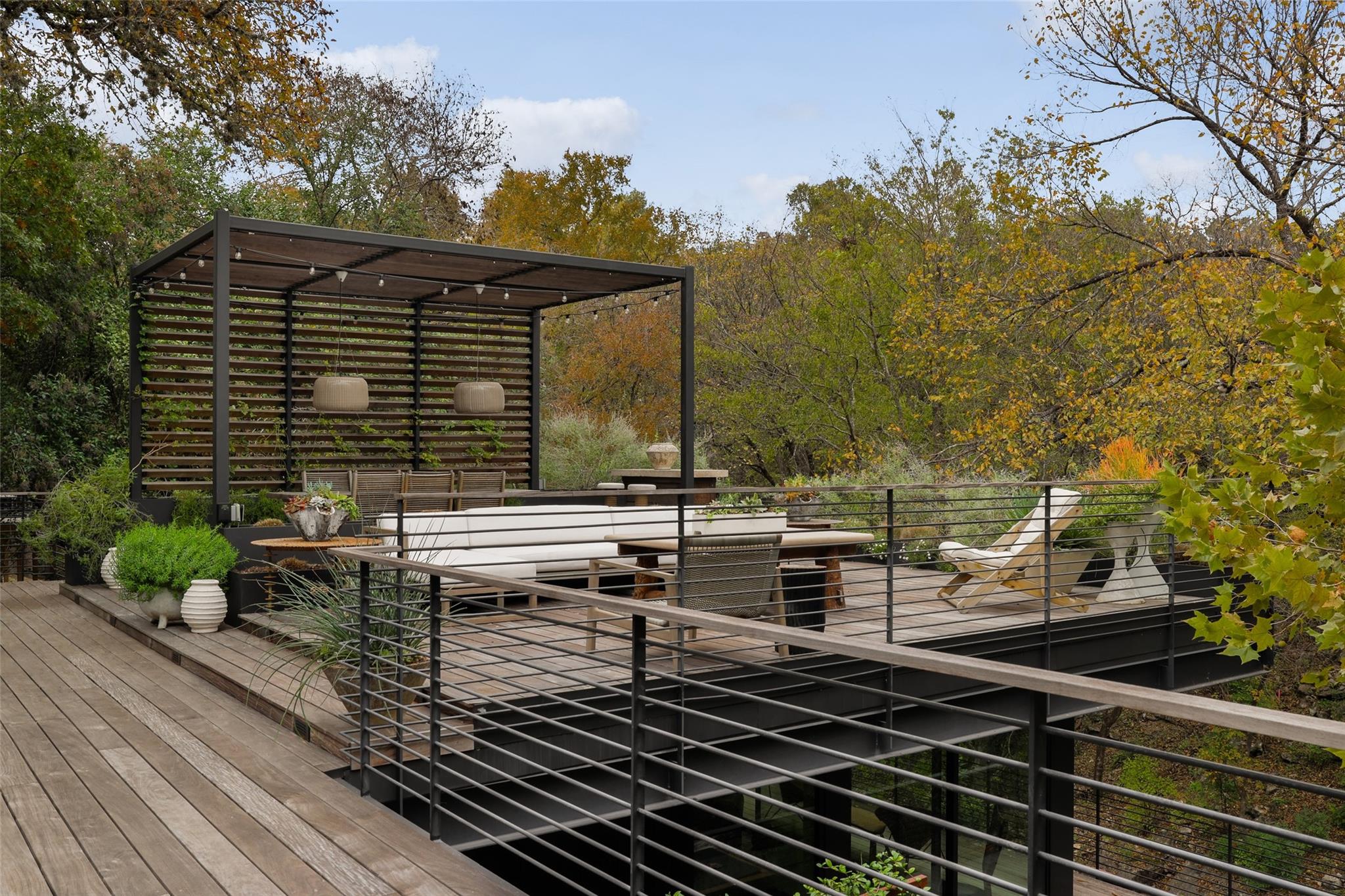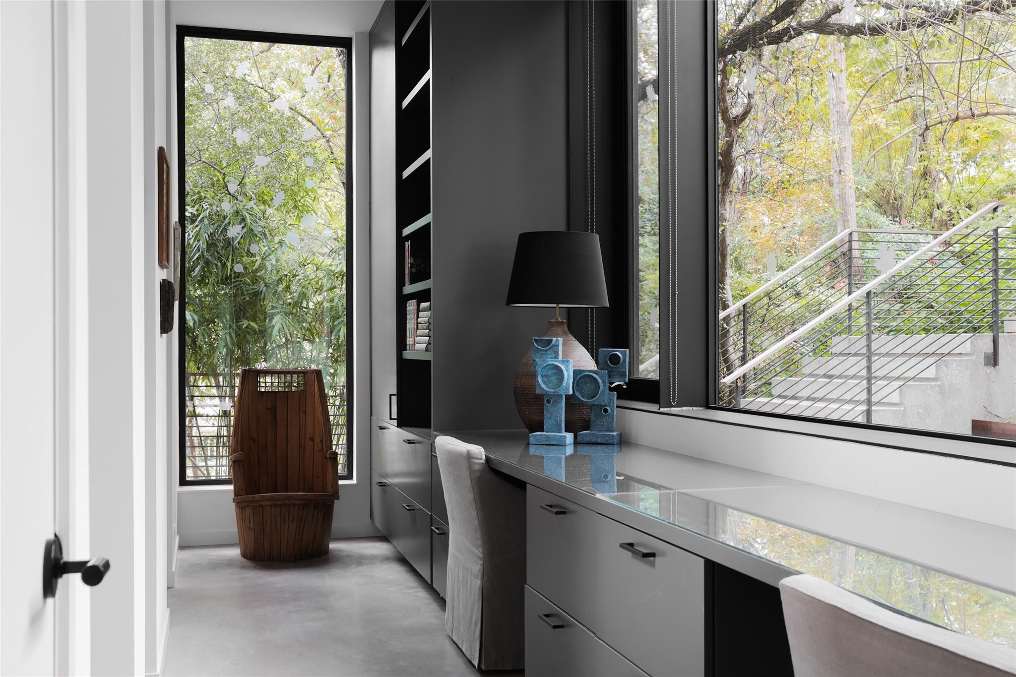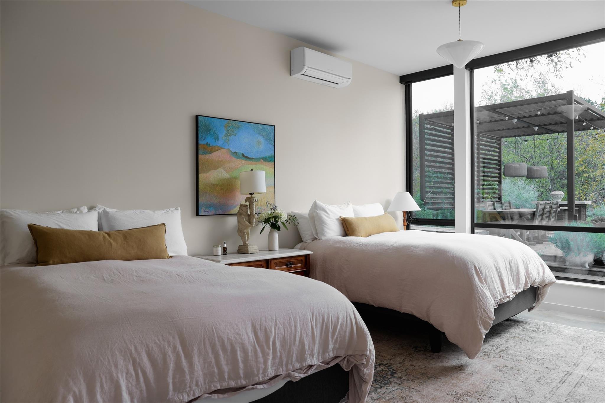 PROPERTY HAS BEEN LEASED. DO NOT CONTACT THE SELLER, CONTACT THE LISTING AGENT IF YOU HAVE AN INTERESTED BUYER OR QUESTIONS.This private residence designed by architect Matt Garcia stands as a testament to sophistication and refined living. The property's unique layout offers the perfect low-maintenance lock and leave lifestyle and the high-end furnishings are the perfect compliment to ease the next owner's transition for an additional fee. Natural light floods throughout the residence with floor-to-ceiling windows in every room creating a seamless connection to nature. The 3,488 SF property is uniquely designed between three structures, with the main living space, gourmet kitchen, dining, and primary suite offering 2,299 SF. The kitchen features Onyx countertops, Poliform cabinetry, stainless steel appliances including a Wolf six burner range, Cove dishwasher, Sub-Zero Pro refrigerator, and wine refrigerator. The primary suite resides upstairs with a walk-in closet, a large bathroom with double vanities, separate tub, walk-in shower, and a heavenly bedroom and sitting area that makes you want to relax upon entering. The primary suite also offers an outdoor patio equipped with a hanging porch swing. Two large guest rooms are located across the carport/breezeway from the main living space which allows guests to stay awhile or allows the homeowners to shut off the space when not in use. The outdoor patio is breathtaking complete with lush landscaping, and a peaceful water feature complimenting the large dining and sitting areas. A third living space is located beneath the patio which is the perfect game room, office, or 4th bedroom suite. Two custom built-in bunk beds and a full bathroom complete the room. White oak walls, cabinetry, and walls of glass continue the theme of bringing the outside world in. A cold plunge and outdoor shower are the perfect additions to this zen residence.