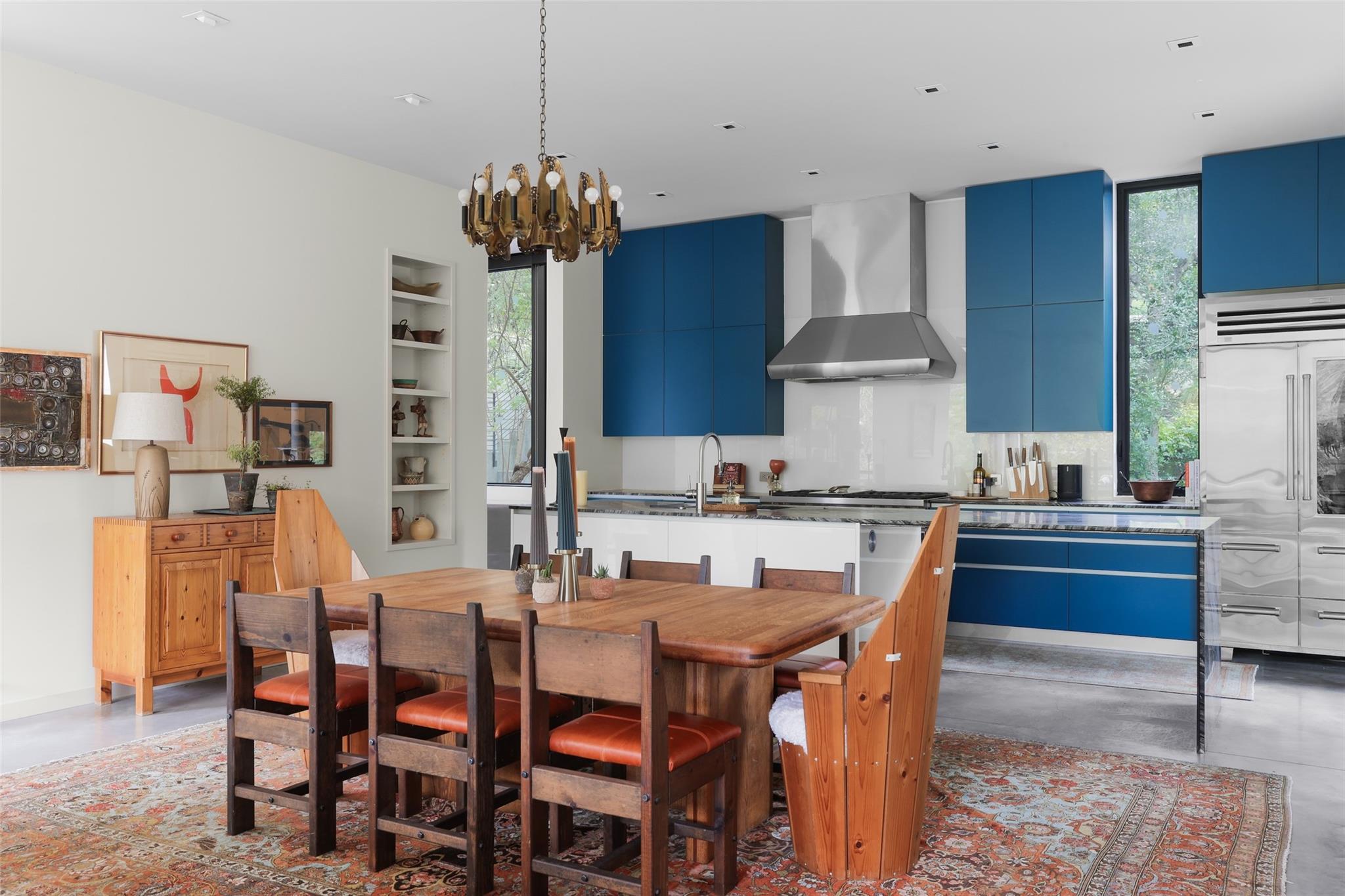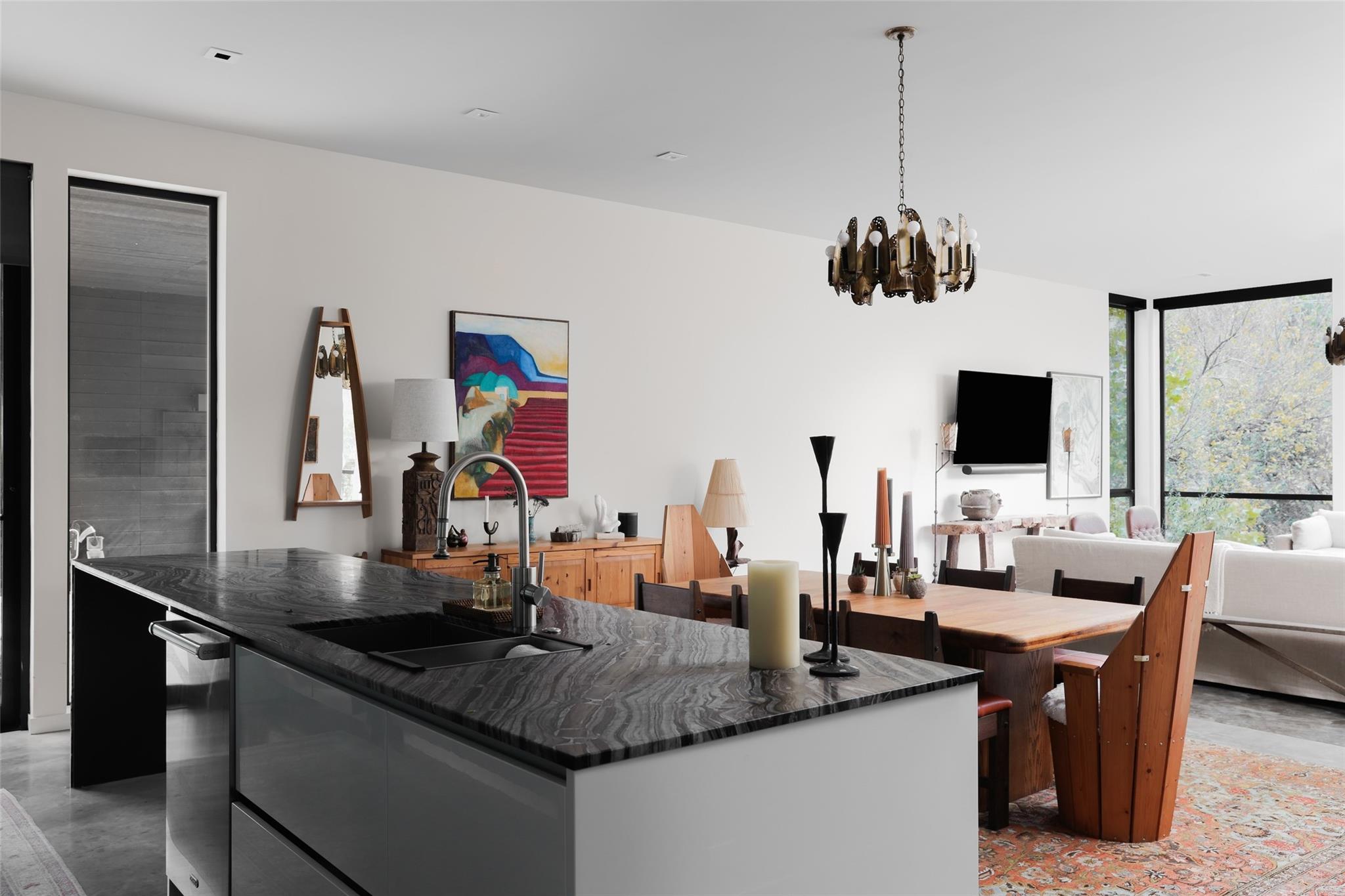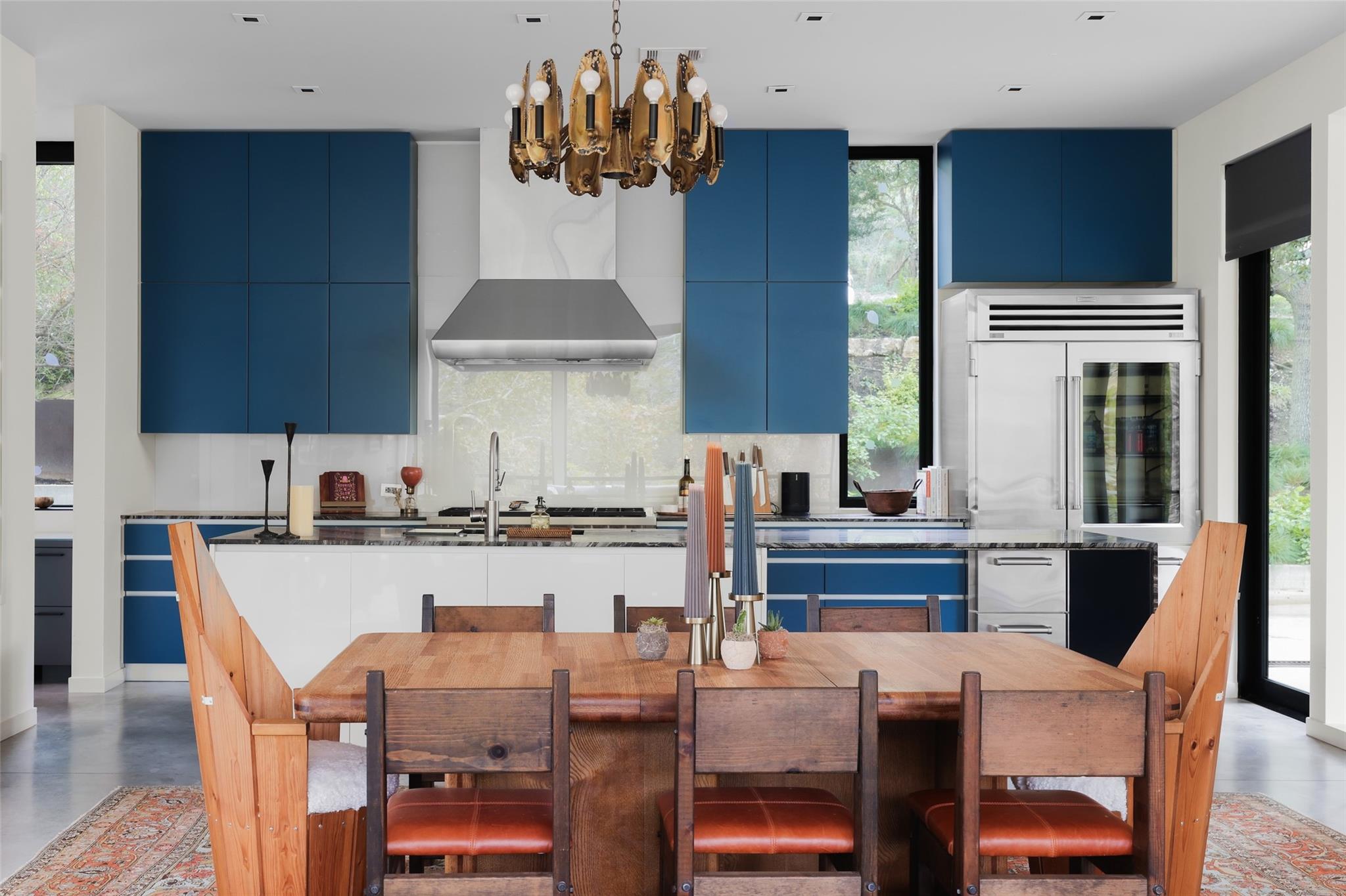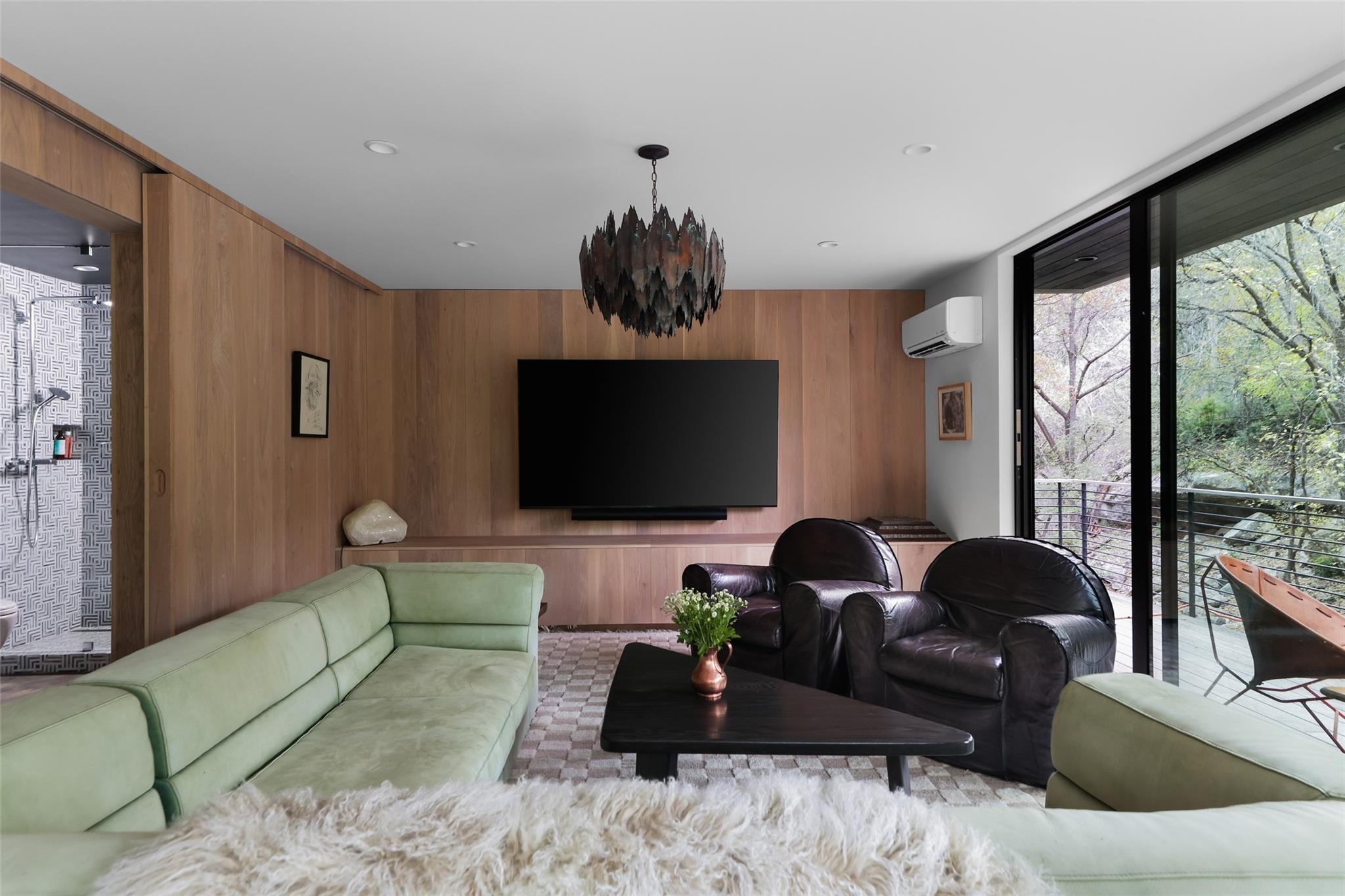 PROPERTY HAS BEEN LEASED. DO NOT CONTACT THE SELLER, CONTACT THE LISTING AGENT IF YOU HAVE AN INTERESTED BUYER OR QUESTIONS.This private residence designed by architect Matt Garcia stands as a testament to sophistication and refined living. The property's unique layout offers the perfect low-maintenance lock and leave lifestyle and the high-end furnishings are the perfect compliment to ease the next owner's transition for an additional fee. Natural light floods throughout the residence with floor-to-ceiling windows in every room creating a seamless connection to nature. The 3,488 SF property is uniquely designed between three structures, with the main living space, gourmet kitchen, dining, and primary suite offering 2,299 SF. The kitchen features Onyx countertops, Poliform cabinetry, stainless steel appliances including a Wolf six burner range, Cove dishwasher, Sub-Zero Pro refrigerator, and wine refrigerator. The primary suite resides upstairs with a walk-in closet, a large bathroom with double vanities, separate tub, walk-in shower, and a heavenly bedroom and sitting area that makes you want to relax upon entering. The primary suite also offers an outdoor patio equipped with a hanging porch swing. Two large guest rooms are located across the carport/breezeway from the main living space which allows guests to stay awhile or allows the homeowners to shut off the space when not in use. The outdoor patio is breathtaking complete with lush landscaping, and a peaceful water feature complimenting the large dining and sitting areas. A third living space is located beneath the patio which is the perfect game room, office, or 4th bedroom suite. Two custom built-in bunk beds and a full bathroom complete the room. White oak walls, cabinetry, and walls of glass continue the theme of bringing the outside world in. A cold plunge and outdoor shower are the perfect additions to this zen residence.