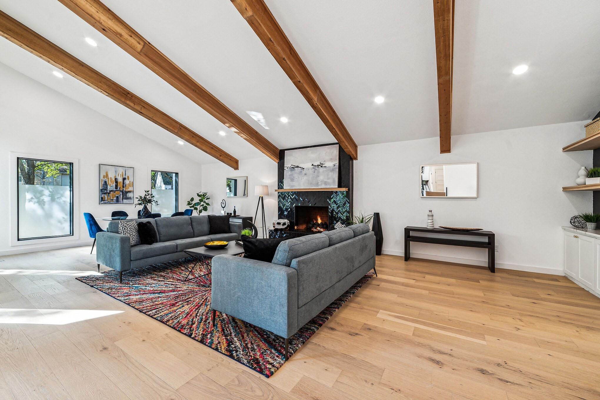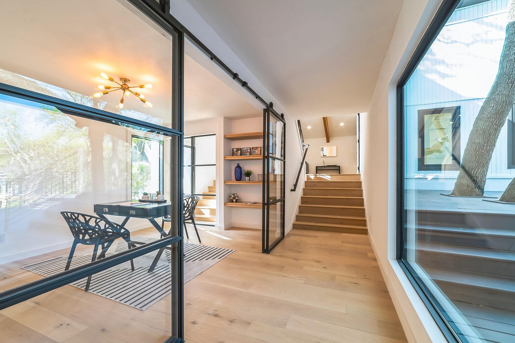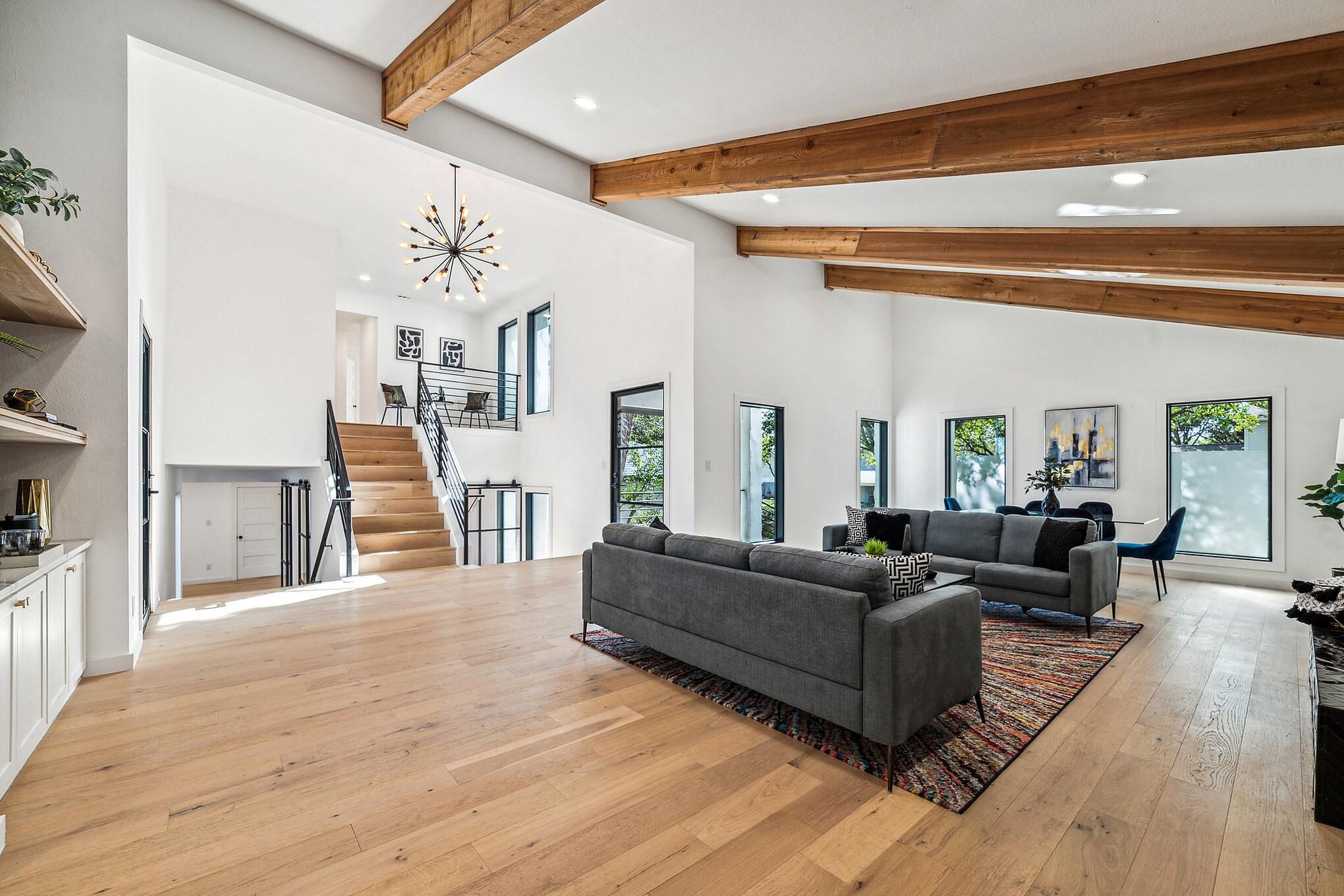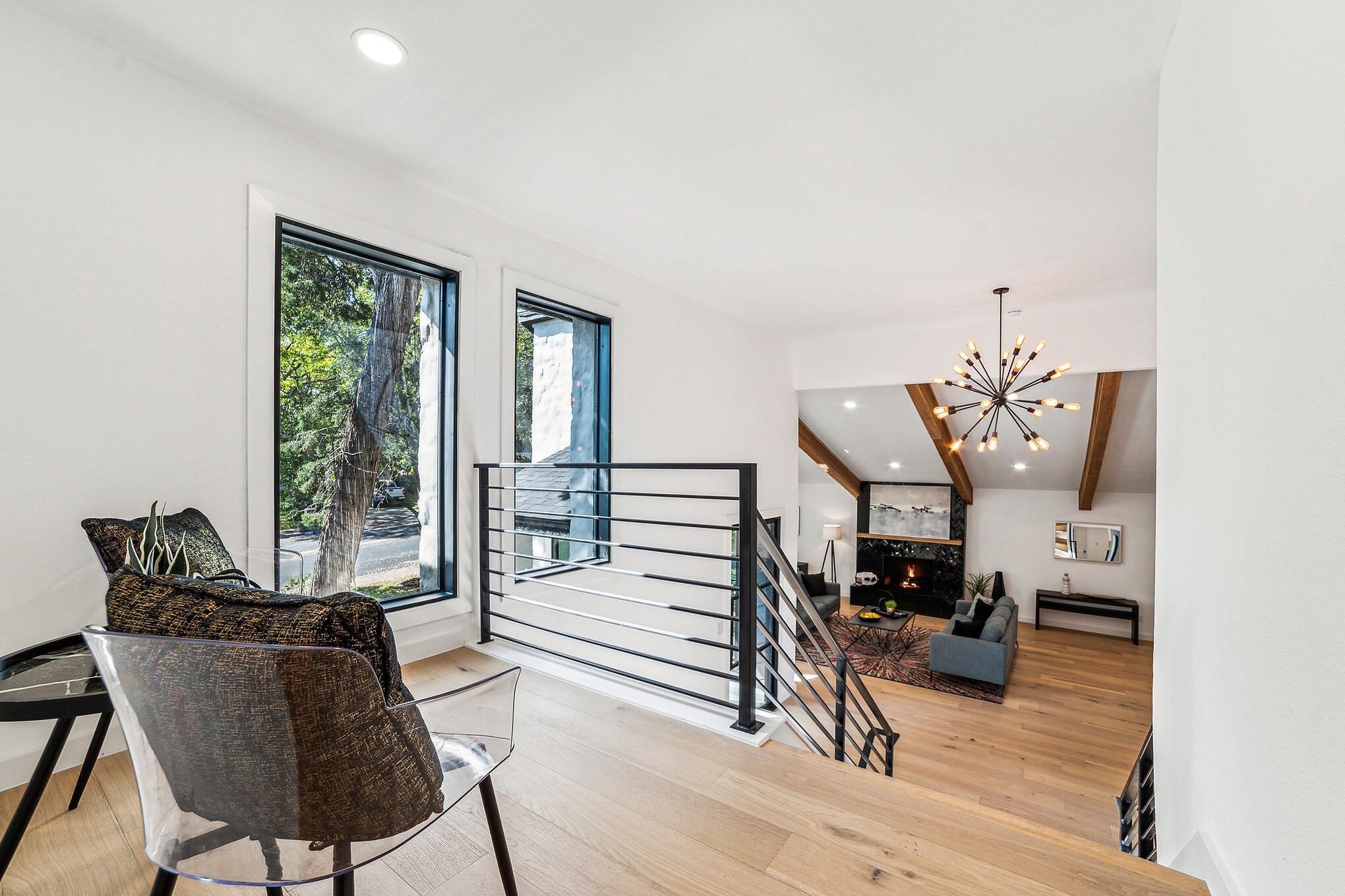 Generous .27-acre lot in close-in Eanes, this split-level home is a standout for modern living with its custom upgrades and 4 bedrooms +office and 3 bathrooms spread across 3,485 sqft.Close to Downtown,coffee shops,dining,farmers market,and walking distance to acclaimed Eanes ISD schools.Recent upgrades have transformed the home,including:new roof,windows,water heater,and 3 new HVAC systems,all new doors,all new White Oak plank flooring,all trim,deck,bathrooms,cabinets,appliances,a black marble fireplace,cedar wrapped beams,new,modern office with metal and glass wall system,built-in shelving and visually striking dual color kitchen cabinets.The exterior limestone finish has been revitalized with a mortar wash and has been freshly painted.