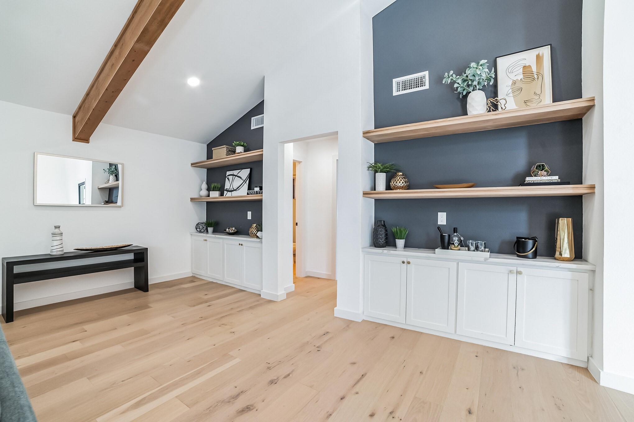 1,004 sqft attached rear outdoor entertainment area from the kitchen and living has the plumbing,electrical and gas all pre-installed.Backyard offers endless opportunities and has plenty of room for a pool.Privacy landscaping added including clumping Bamboo along the fence line and all new drought-resistant sod and landscaping.Fresh deck with added self-closing gate system for future potential pool safety(permitted pool plans convey).Freshly epoxied and oversized garage(695 sqft)has plenty of space for both 2 cars plus golf cart and storage.This home is turnkey and ready for immediate move-in