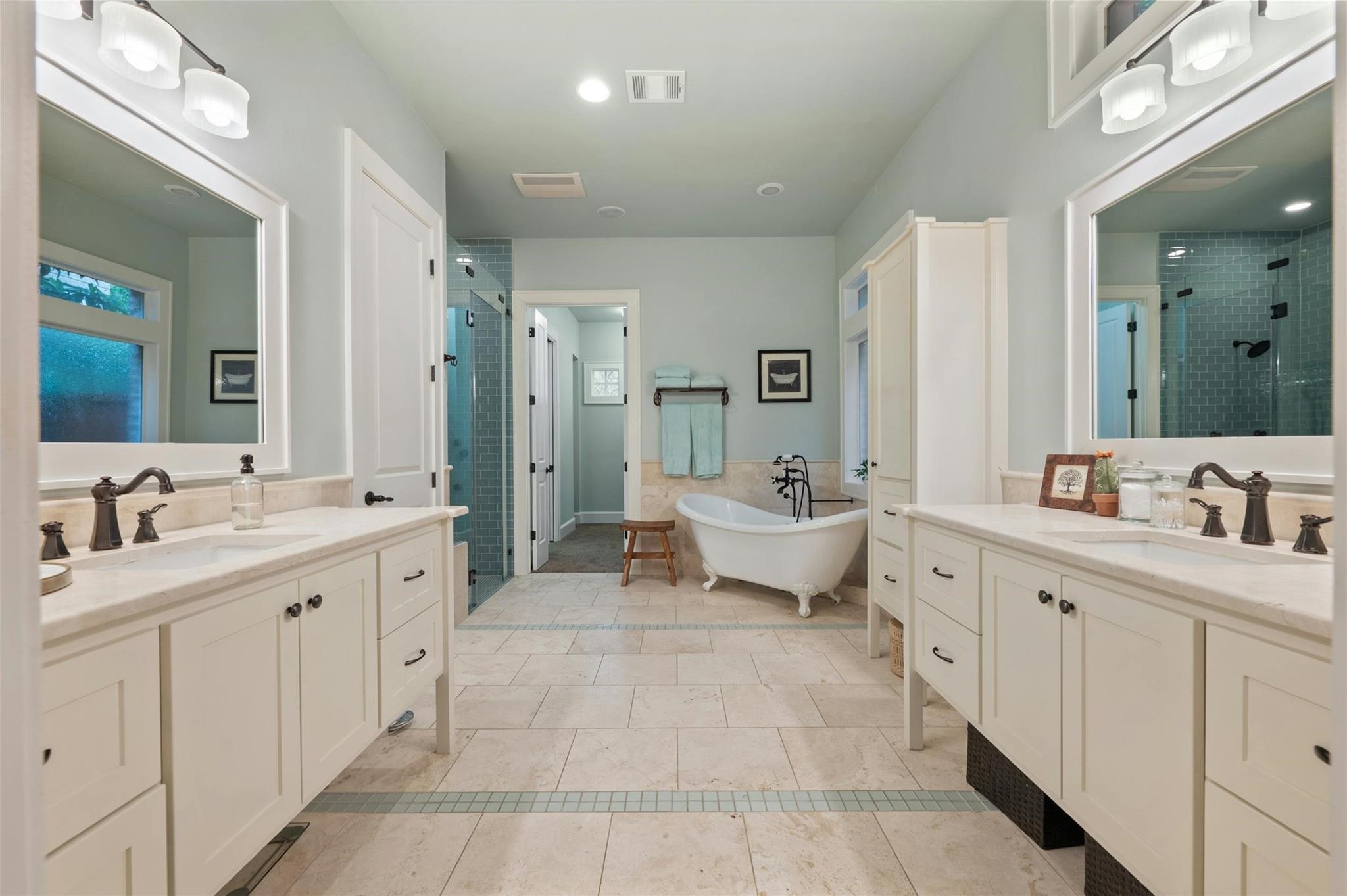 This exquisite 3-bedroom, 3.5-bathroom home was built in 2010 by Nalle Custom Homes and offers a generous 3,162 square feet of living space on a 0.146-acre lot. The architectural style is craftsman with a beautifully designed transitional interior, making it both timeless and contemporary. The thoughtfully designed floor plan features a spacious great room with a cozy fireplace on one end and a gourmet kitchen with a huge pantry on the other. The luxurious primary suite is also located downstairs, complete with a spa-like primary bath and a sumptuous closet. Upstairs, you’ll find two additional bedrooms, each with their own full baths, a family room, and a versatile flex space that can serve as a media room, office, bunk room/large bedroom, or studio. The laundry room is conveniently located downstairs next to the primary closet. The outdoor living space is equally impressive, with a long, covered porch at the back of the house, featuring a built-in grill on one end and a relaxing hot tub on the other. Parking is convenient with a single car garage and an adjacent carport equipped with an EV charging outlet. The house is tucked away in the heart of the oh-so-serene and walkable Deep Eddy neighborhood north of Lake Austin Blvd. You can visit restaurants along Lake Austin Boulevard, walk your students to school at O'Henry Middle, or visit HEB for a gallon of milk. Come See, you won't want to leave!