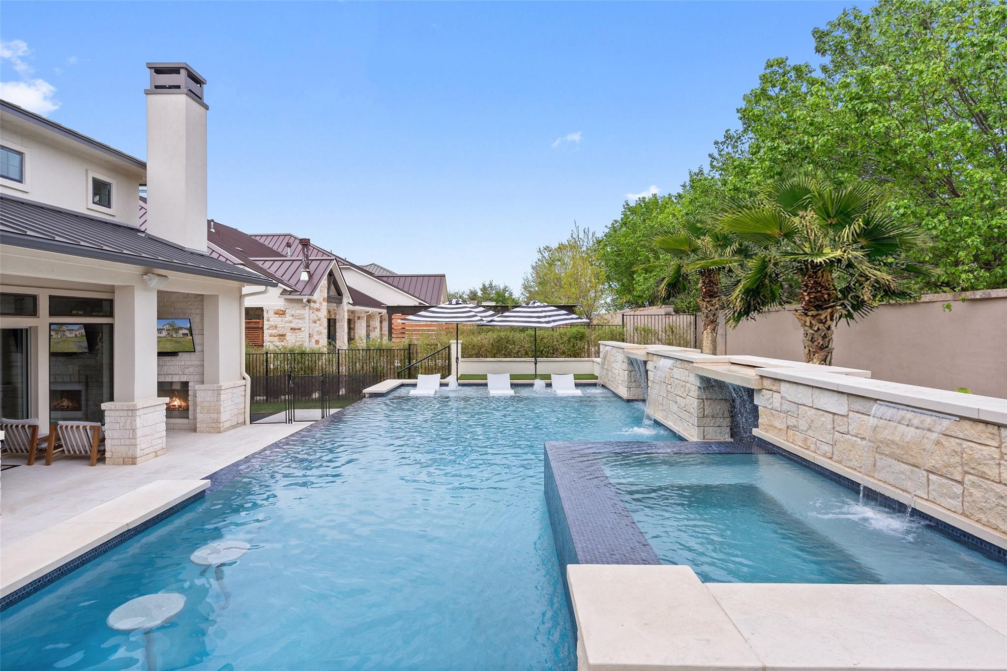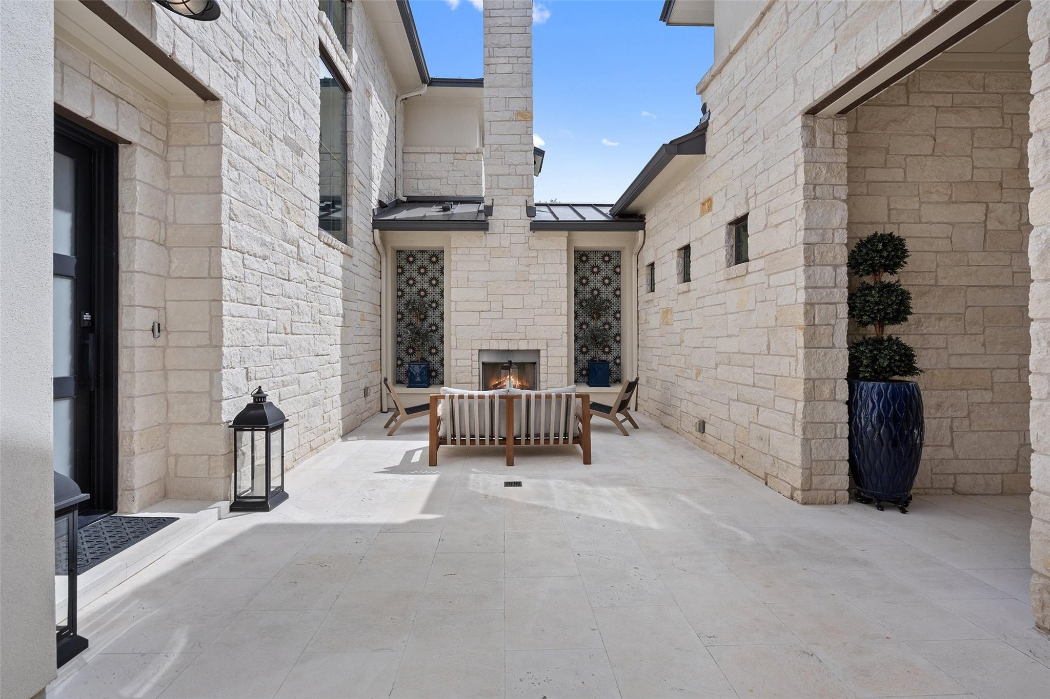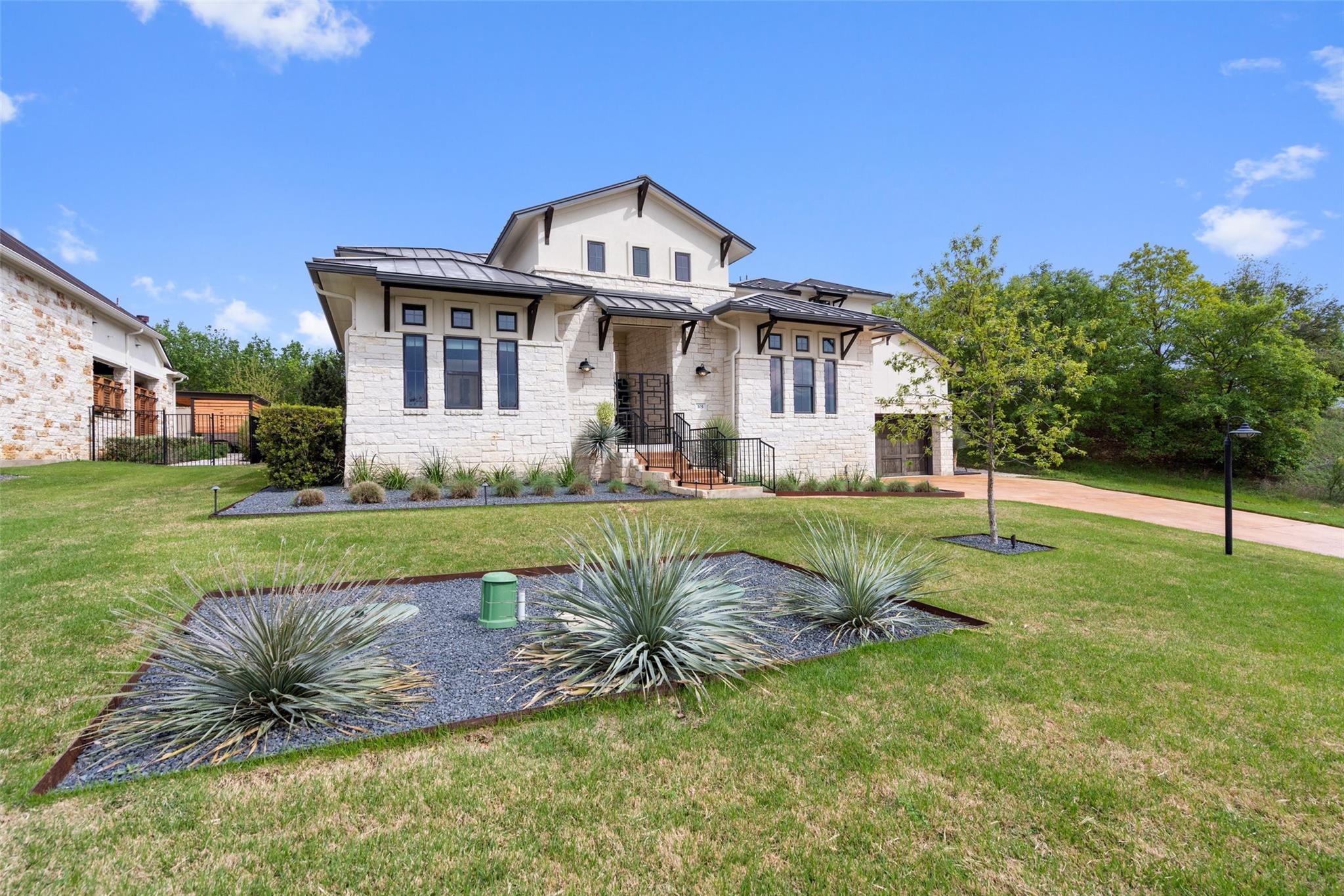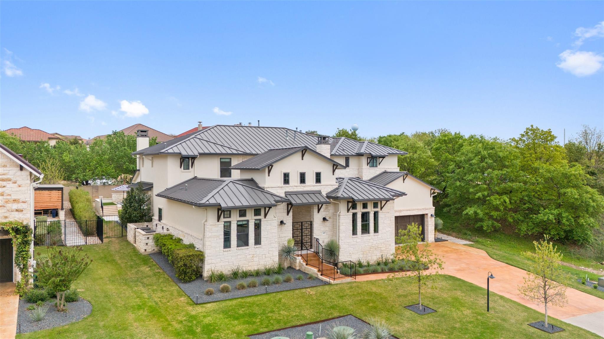***ASSUMABLE VA LOAN, if eligible*** Experience tranquility in Rough Hollow, situated on a serene circular drive. Welcoming you with grandeur, the exterior staircase leads to a captivating, enclosed courtyard boasting a fireplace flanked by stunning tiled accent walls, offering a perfect spot for relaxation. Additionally, a charming casita with a full bed, bathroom, coffee bar and microwave provides ideal accommodations for an au pair or in-laws. Inside, indulge in modern elegance with a seamless flow between the living, dining, and kitchen areas. The entire home is equipped with security and Sonos wiring, with outdoor speakers enhancing the backyard ambiance. The living room showcases a propane fireplace set within a floor-to-ceiling stone accent wall, exuding sophistication, while a spacious home office offers an ideal workspace with ample natural light. Step outside to your private oasis, where an infinity-edge pool awaits, inviting you to unwind in bliss. A seamlessly integrated grilling station, alongside dining and living areas, creates the perfect setting for entertaining. Complete with a pool, hot tub, and turfed yard, this outdoor haven provides a refreshing escape from the Texas heat.The primary ensuite boasts luxurious features including a striking emerald green accent wall, floor-to-ceiling windows, a freestanding bathtub, walk-in shower, and a show-stopping oversized closet with built-in dressers. Upstairs, three additional bedrooms and bathrooms are connected by a living space, home theater, and balcony, offering versatility and comfort. Conveniently located within walking distance to Serene Hills Elementary and a short trip to Rough Hollow Marina, this home provides access to a variety of amenities including pools, a lazy river, walking trails, The Hills Country Club, Canyon Grille, and Lake Travis. Don't miss one!!