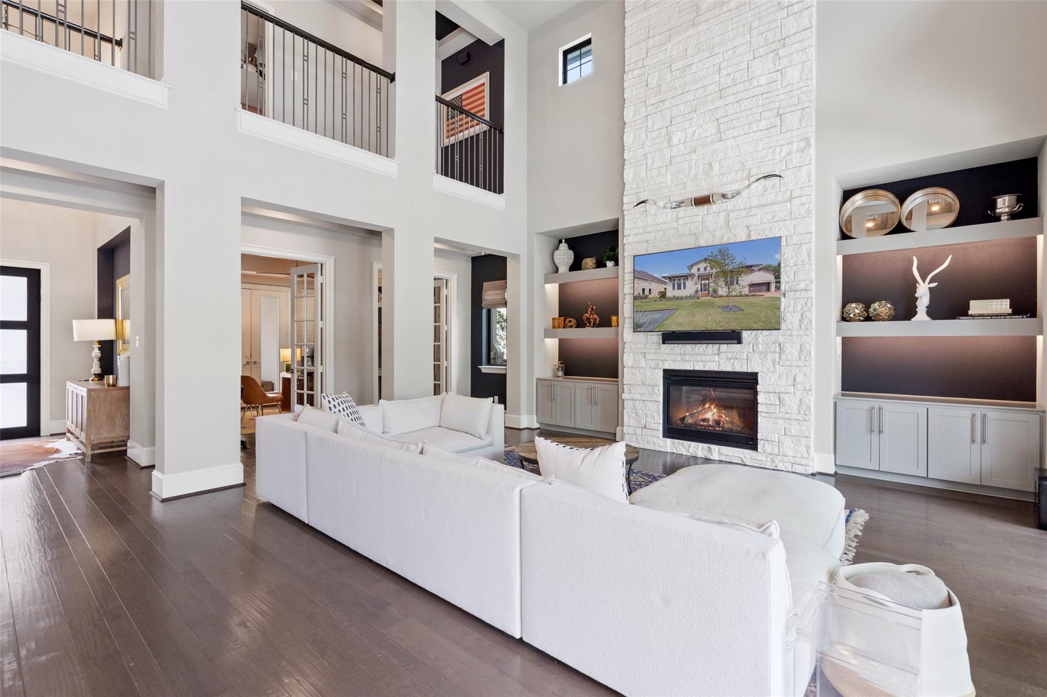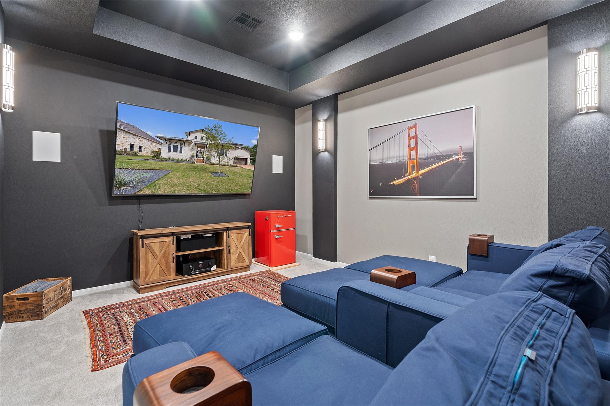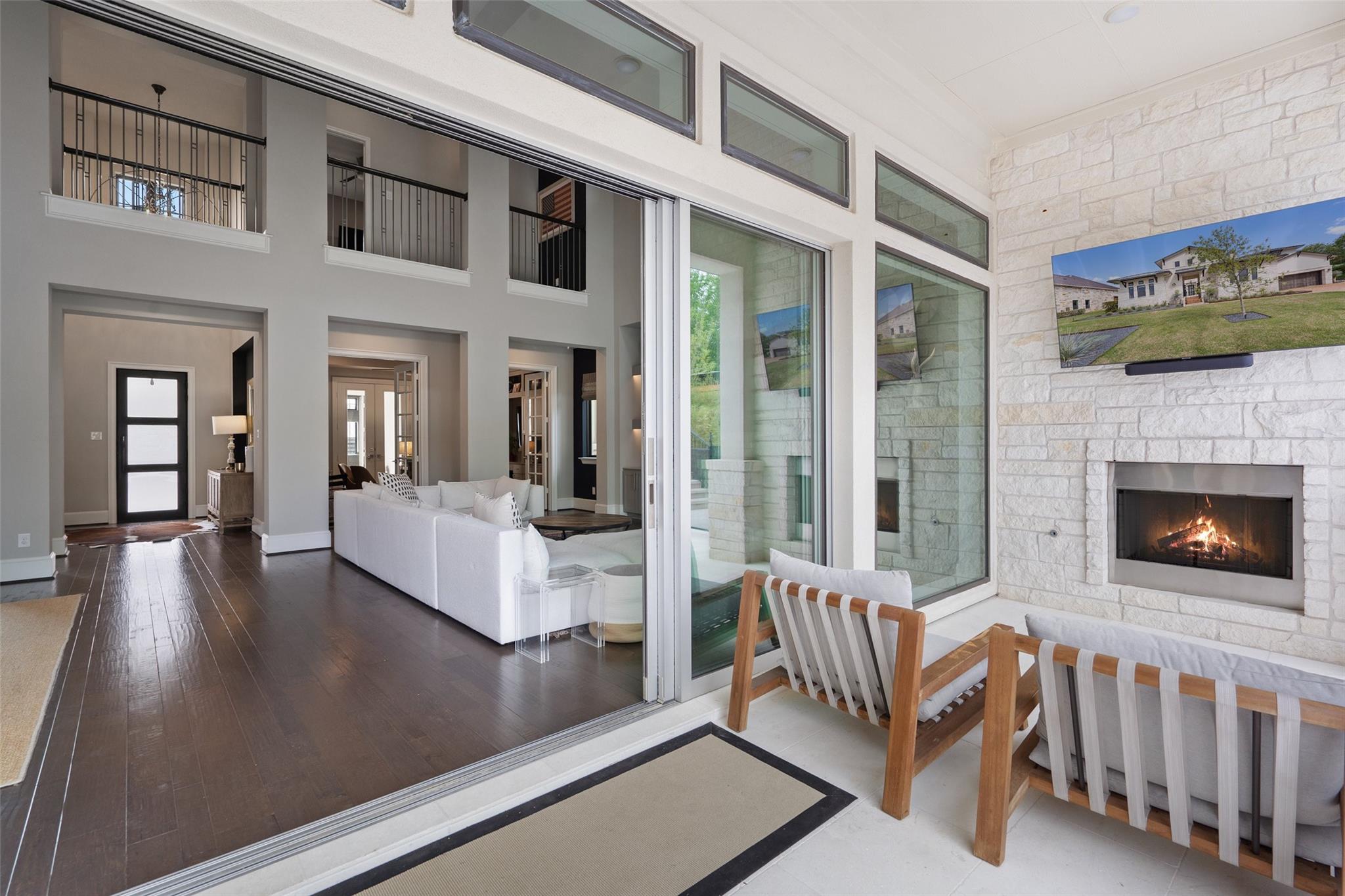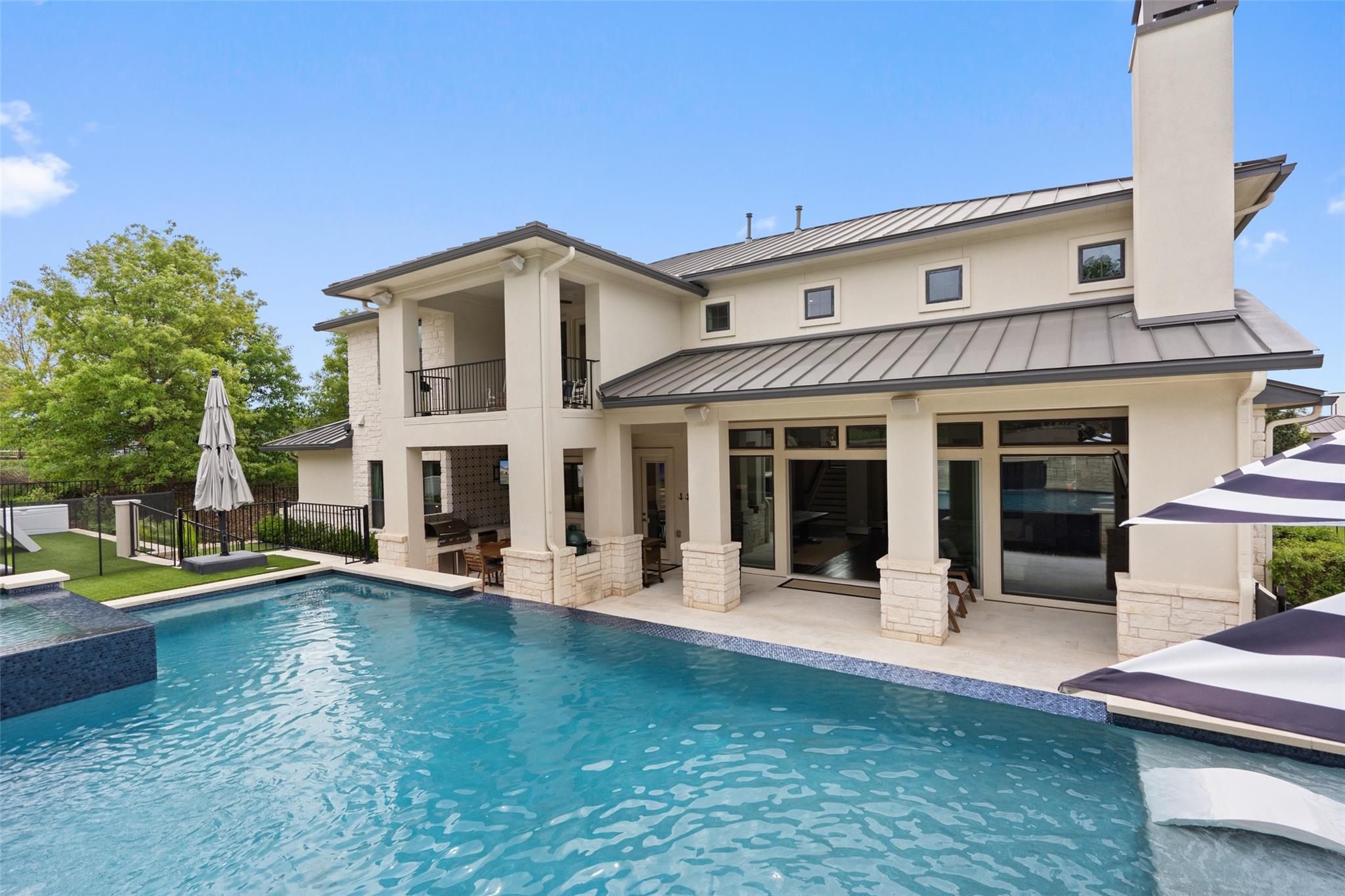 ***ASSUMABLE VA LOAN, if eligible*** Experience tranquility in Rough Hollow, situated on a serene circular drive. Welcoming you with grandeur, the exterior staircase leads to a captivating, enclosed courtyard boasting a fireplace flanked by stunning tiled accent walls, offering a perfect spot for relaxation. Additionally, a charming casita with a full bed, bathroom, coffee bar and microwave provides ideal accommodations for an au pair or in-laws. Inside, indulge in modern elegance with a seamless flow between the living, dining, and kitchen areas. The entire home is equipped with security and Sonos wiring, with outdoor speakers enhancing the backyard ambiance. The living room showcases a propane fireplace set within a floor-to-ceiling stone accent wall, exuding sophistication, while a spacious home office offers an ideal workspace with ample natural light. Step outside to your private oasis, where an infinity-edge pool awaits, inviting you to unwind in bliss. A seamlessly integrated grilling station, alongside dining and living areas, creates the perfect setting for entertaining. Complete with a pool, hot tub, and turfed yard, this outdoor haven provides a refreshing escape from the Texas heat.The primary ensuite boasts luxurious features including a striking emerald green accent wall, floor-to-ceiling windows, a freestanding bathtub, walk-in shower, and a show-stopping oversized closet with built-in dressers. Upstairs, three additional bedrooms and bathrooms are connected by a living space, home theater, and balcony, offering versatility and comfort. Conveniently located within walking distance to Serene Hills Elementary and a short trip to Rough Hollow Marina, this home provides access to a variety of amenities including pools, a lazy river, walking trails, The Hills Country Club, Canyon Grille, and Lake Travis. Don't miss one!!