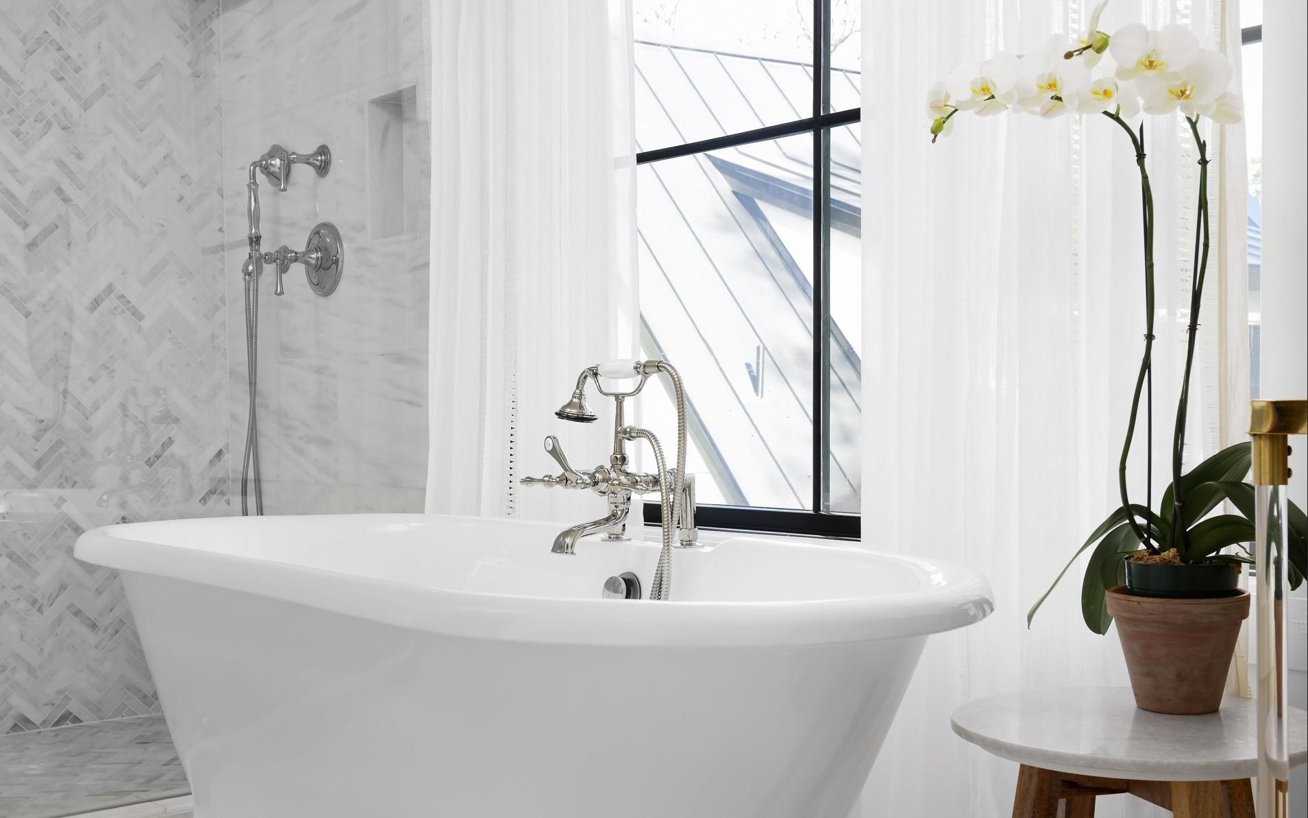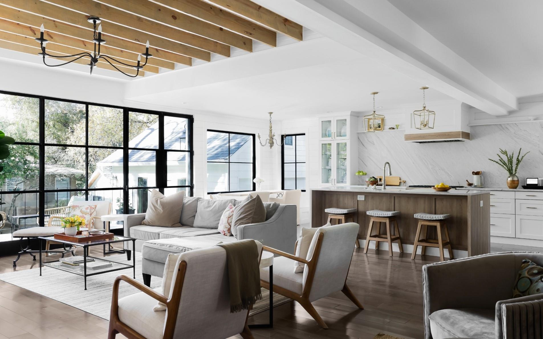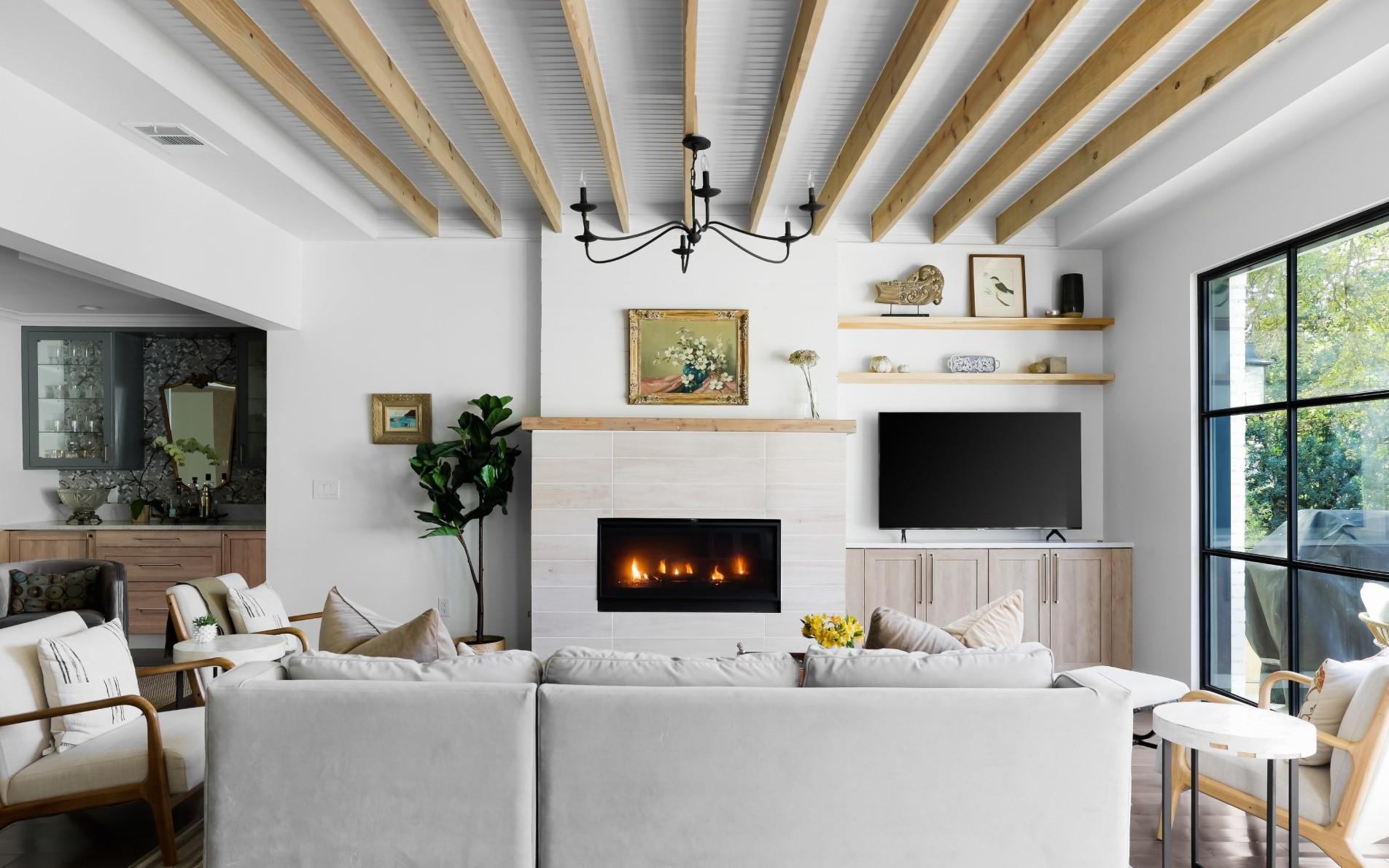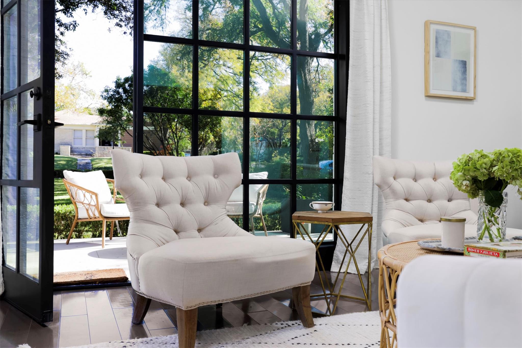 Generously set back on a distinguished tree-lined street, this elegant home offers quiet luxury in the heart of Tarrytown. Beautifully remodeled and added onto in 2021, it features updated plumbing, electrical and mechanical systems, as well as all-new interior and exterior finishes. Expansive steel windows and doors and an open floor plan create a light-filled and abundant space for entertaining and everyday living. Guests are greeted in the gracious foyer entry, with grand staircase and formal living and dining areas. The stylish kitchen features marble backsplash and countertops, Thermador appliances, dining banquette, butler's pantry and mudroom. The adjoining living room features exposed beams, gas fireplace, an elegant bar area and glass doors leading out to a limestone patio overlooking the pool. Upstairs are four bedrooms, each with en-suite bathrooms, including a fantastic primary suite, with vaulted ceiling, living area and a spa-like primary bath with white marble, double shower, and freestanding soaking tub. The lush backyard features a pool, spa, and a heated and cooled detached pool house, which can be used as an office, guest space, studio or entertaining.