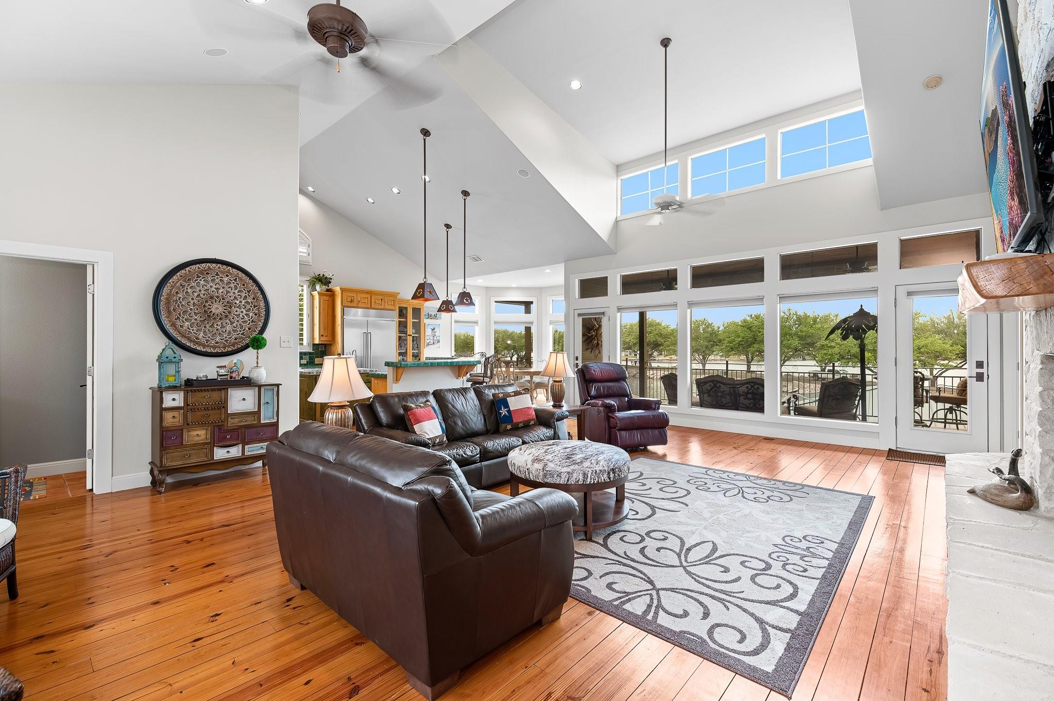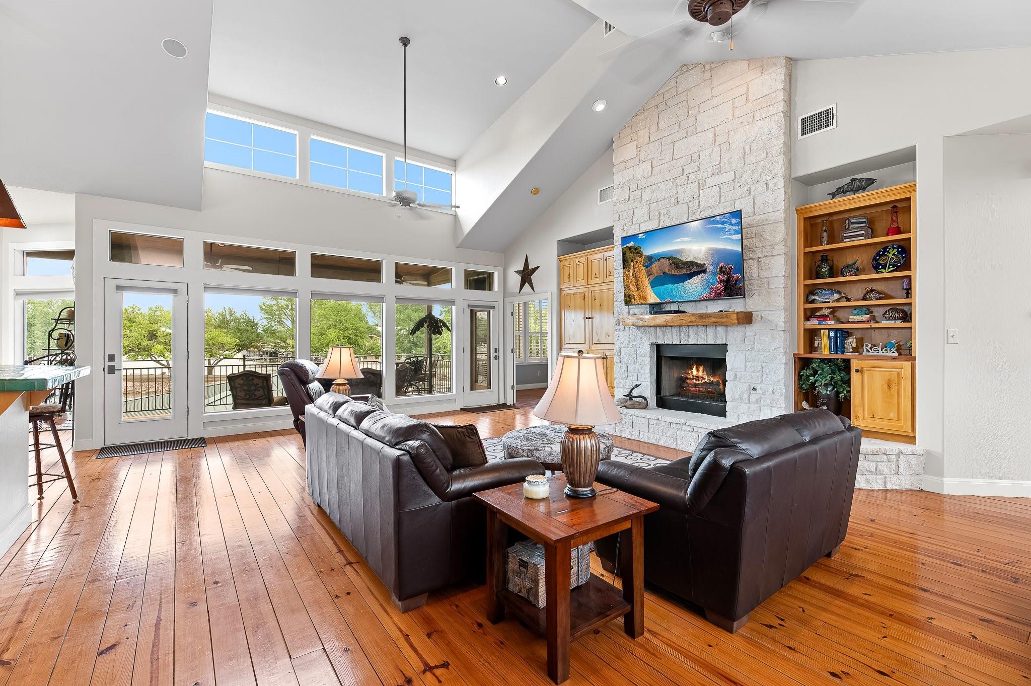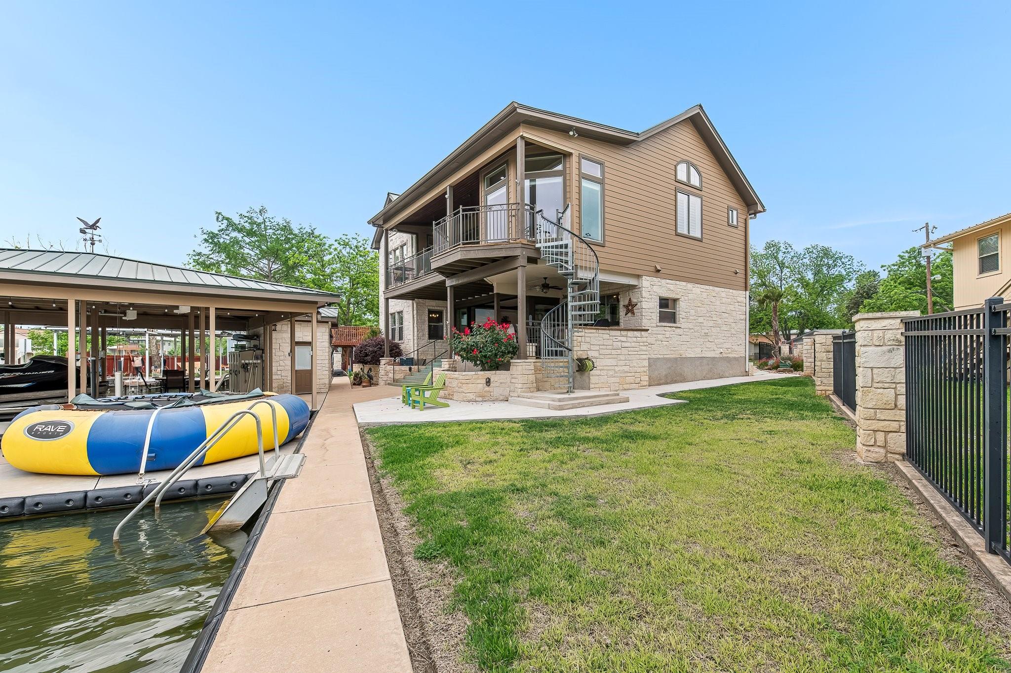 SELLING FULLY FURNISHED. SHORT TERM RENTALS ALLOWED. This home HAS IT ALL! Located on a quiet culdesac with prime lake views, this home is perfect for hosting large gatherings and entertaining. From the game room downstairs to the spacious upstairs areas, this home has PLENTY of space for relaxation. Many upgrades have been added to the home, including a private electric gate, stained concrete, new boathouse and an enclosed entertainment area downstairs. You don't want to miss this one! Exterior cameras located at front door and back porch. Buyer to verify all information.