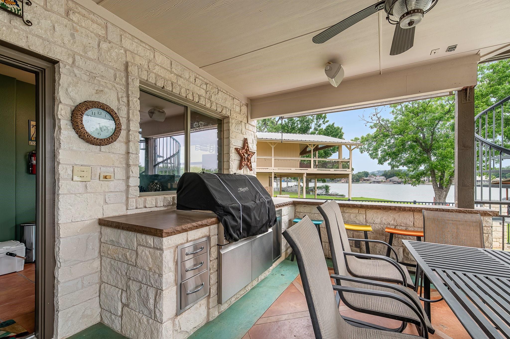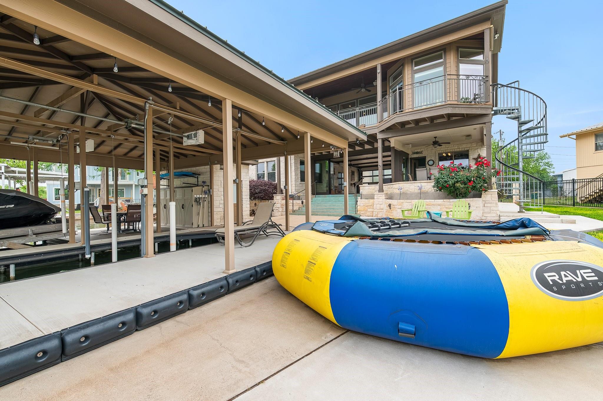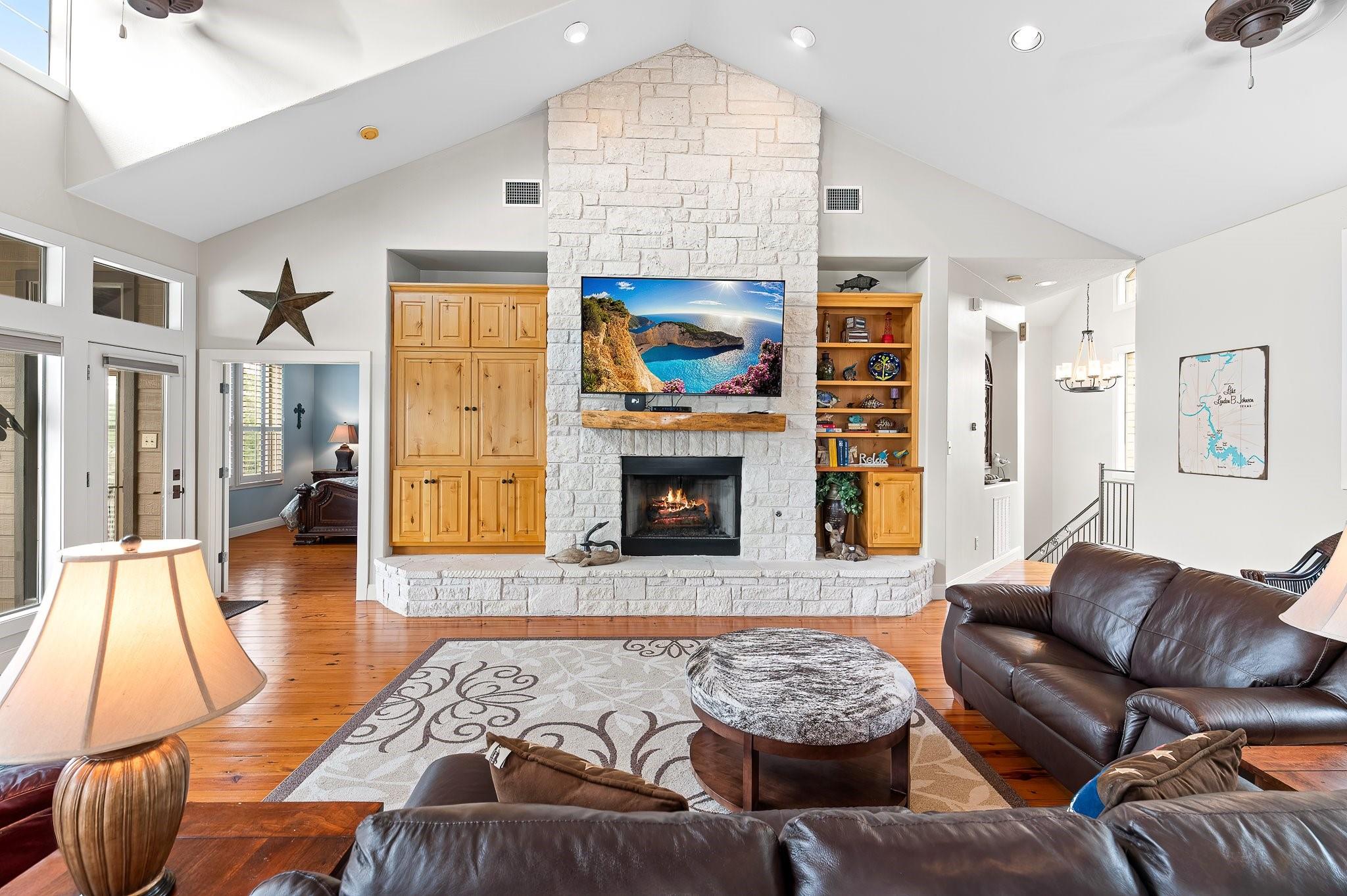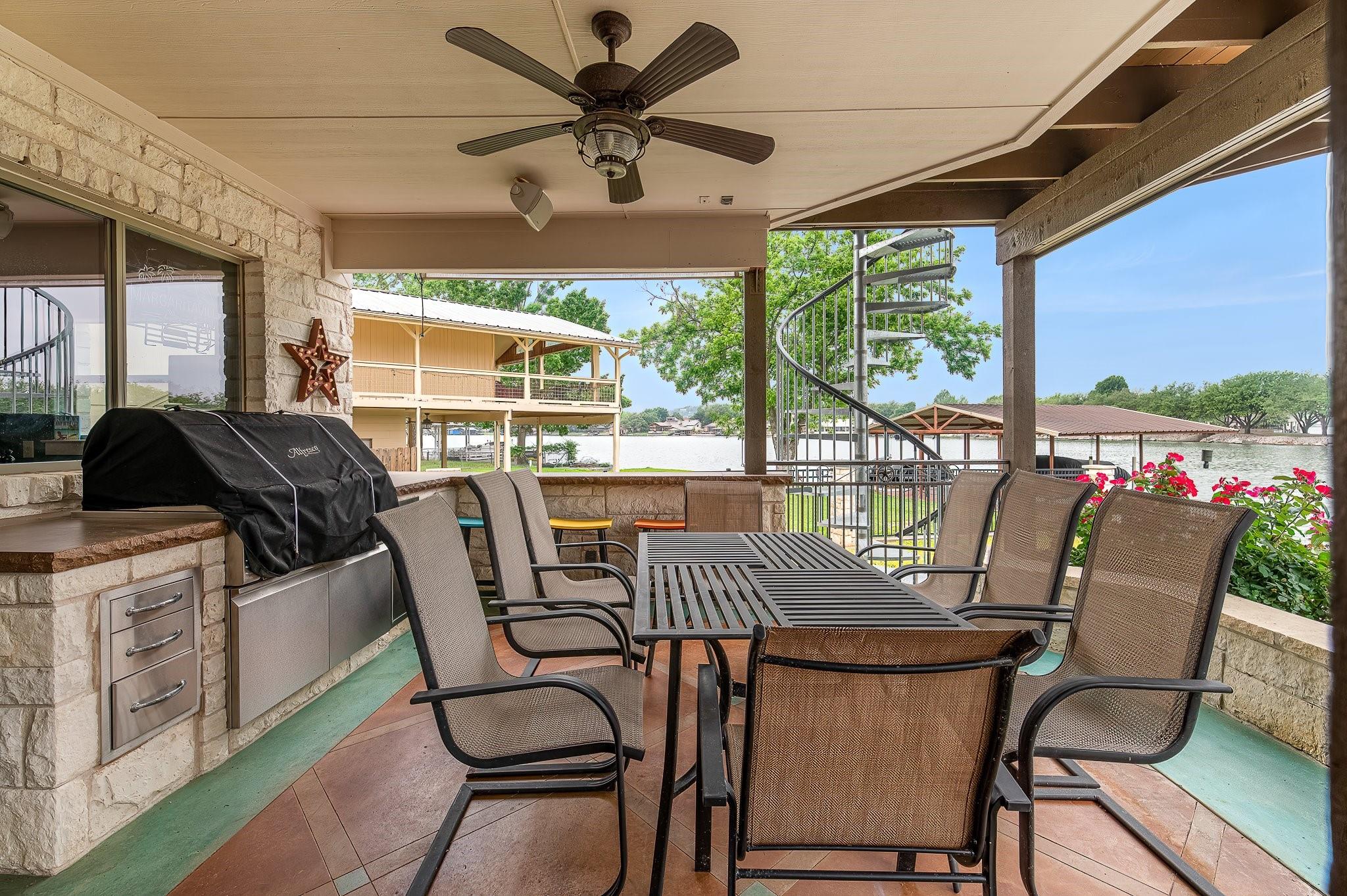 SELLING FULLY FURNISHED. SHORT TERM RENTALS ALLOWED. This home HAS IT ALL! Located on a quiet culdesac with prime lake views, this home is perfect for hosting large gatherings and entertaining. From the game room downstairs to the spacious upstairs areas, this home has PLENTY of space for relaxation. Many upgrades have been added to the home, including a private electric gate, stained concrete, new boathouse and an enclosed entertainment area downstairs. You don't want to miss this one! Exterior cameras located at front door and back porch. Buyer to verify all information.