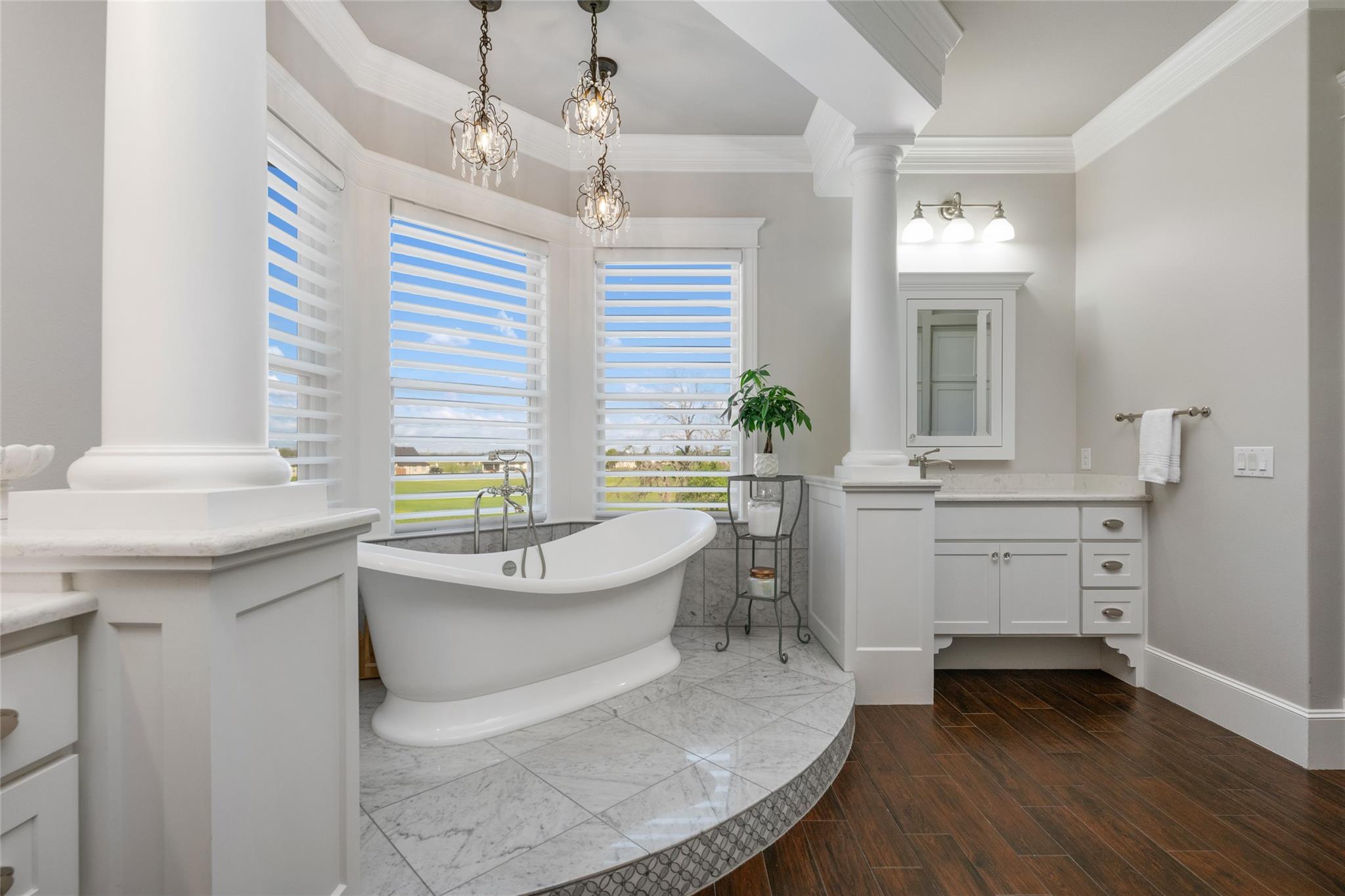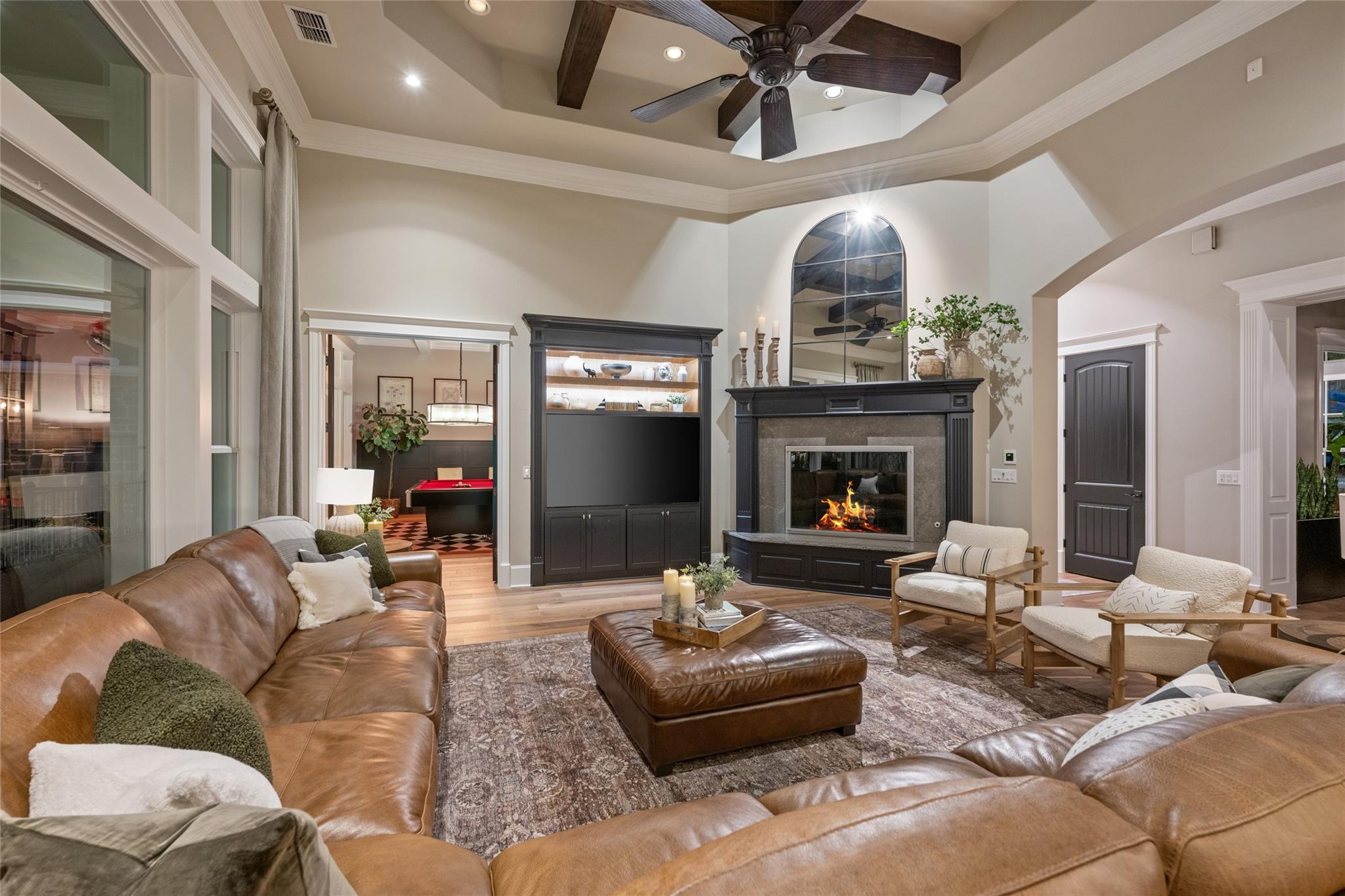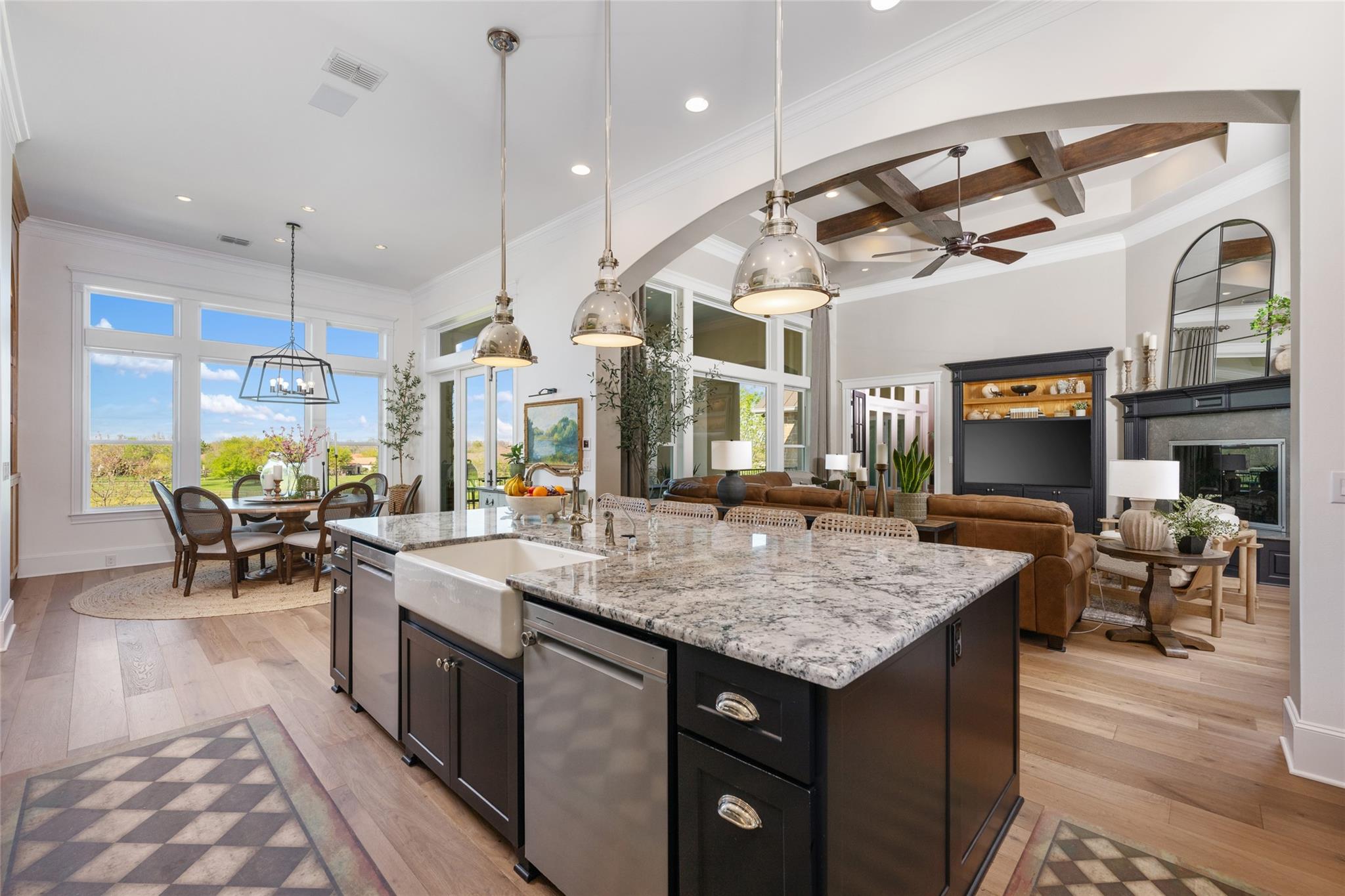 | Interior Features | Bookcases, Breakfast Bar, Built-in Features, Beamed Ceilings, High Ceilings, Granite Counters, Crown Molding, Double Vanity, In-Law Floorplan, Interior Steps, Kitchen Island, Multiple Living Areas, Open Floorplan, Pantry, Primary Bedroom on Main, Recessed Lighting, Smart Thermostat, Soaking Tub, Walk-In Closet(s), Wired for Sound | |