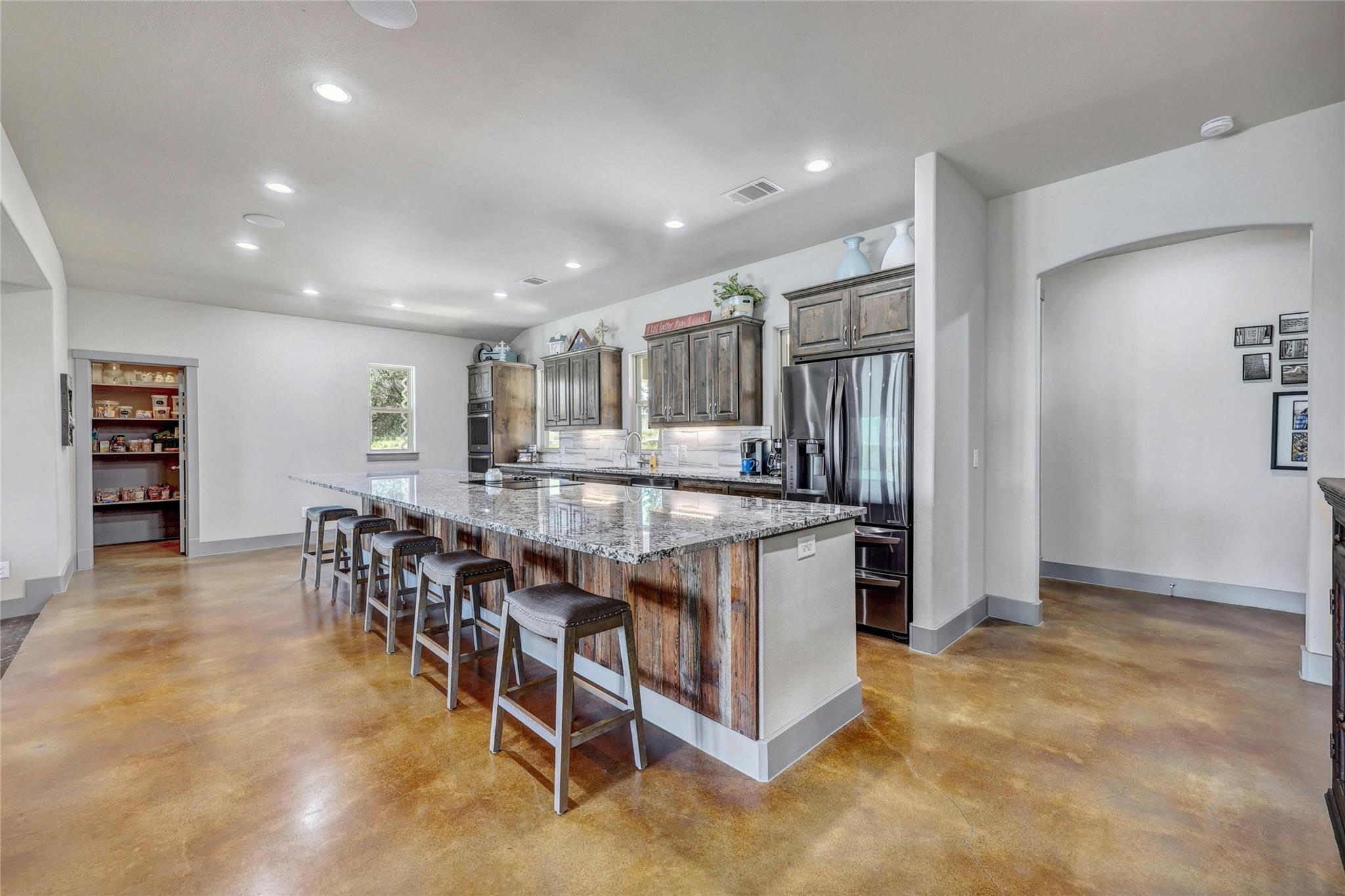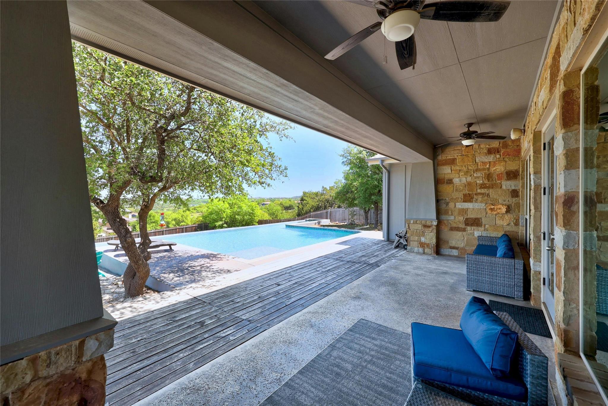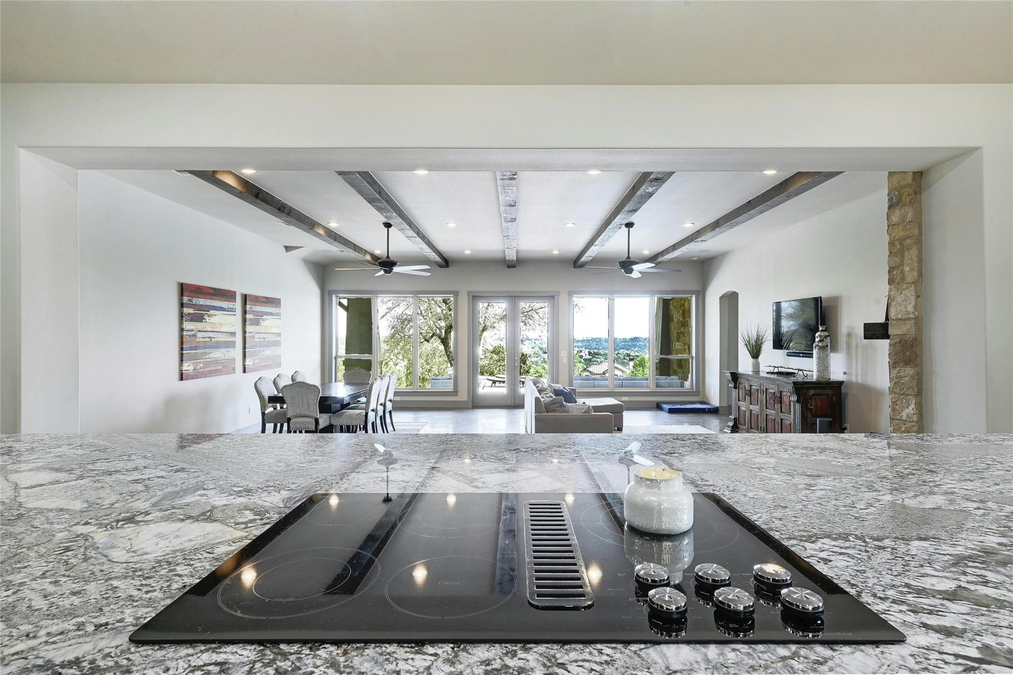 3.1+ acre retreat nestled in the most COVETED enclave of Spicewood, Travis Settlement! Just minutes from the back side of Lakeway and Rough Hollow, this immaculate home enjoys world class views from a breezy hilltop that go as far as the eye can see. This protected area now includes the 1504 acre RGK park that will MAXIMIZE views and green space while minimalizing future traffic! Once inside, you will be drawn to the wall of windows that overlook the sparkling pool and more picturesque views of the Hill Country. The kitchen, dining, and family rooms are united into one space that all take equal advantage of this RARE setting. This home lives like a single story with the majority of the square footage, including all 4 bedrooms and 3 full bathrooms, on the main level. Upstairs, you will find an additional living room, ideal for teens and guests. The oversized garage and ample driveway space provide all the room you will need for cars and storage. Polished and durable concrete floors keep utilities low in the summer while giving a timeless appeal. Bring your paddleboard or your boat – Travis Settlement has private access to Lake Travis for residents only. You may never want to come inside from the stunning and sparkling POOL that includes a 60’ lap lane. The views surround you both day and night…morning sunrises paint the sky each morning over the pool while the sun sets on the other side of the house keeping the outdoor living areas pleasant all summer long. Fireworks light up the sky from various venues during 4th of July, get ready to entertain and make a lifetime of memories with your family! Enjoy gardening, wildlife, and making this SERENE and PRISTINE setting all yours while being just an arm’s length to Lakeway, exemplary schools, and the Hill Country Galleria. A LOW tax rate that saves HUNDREDS of dollars each month. This stunning home, convenient location, serene setting, and sweeping views are not able to be duplicated!