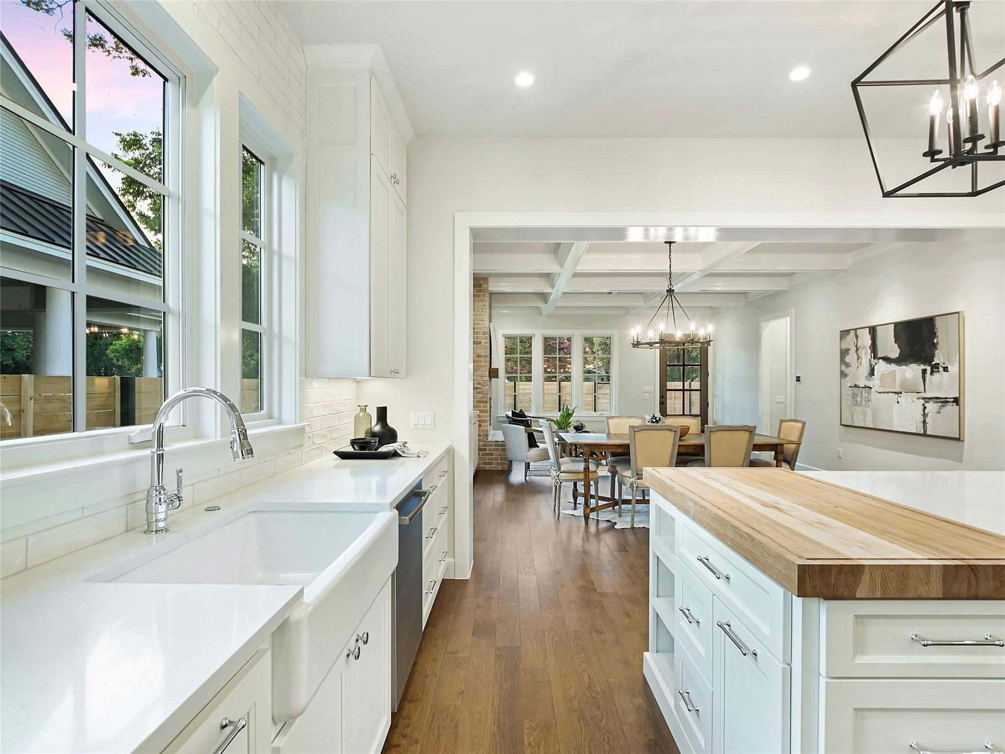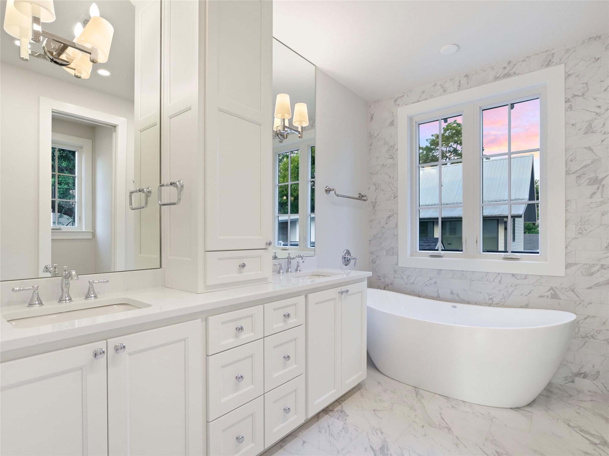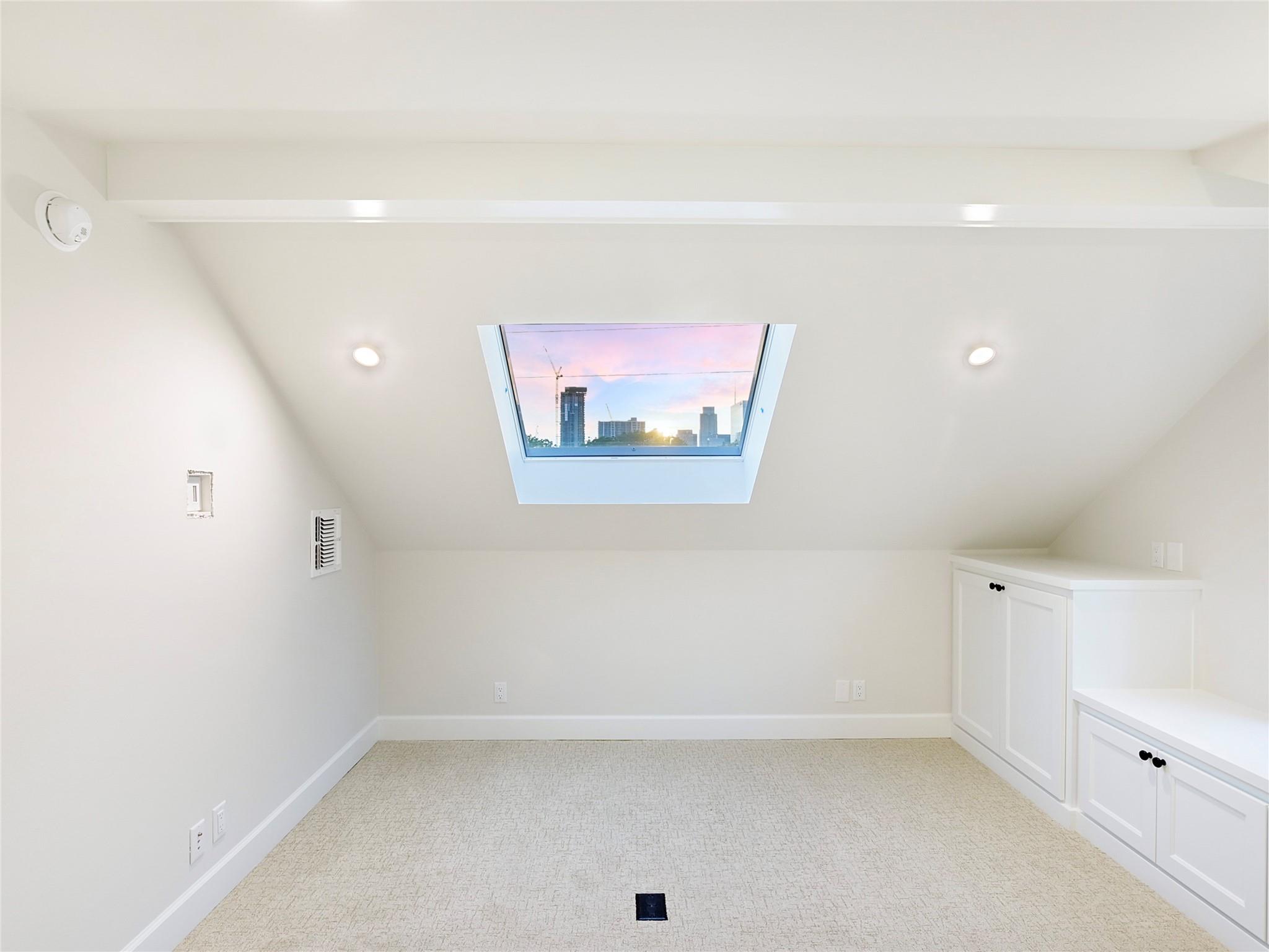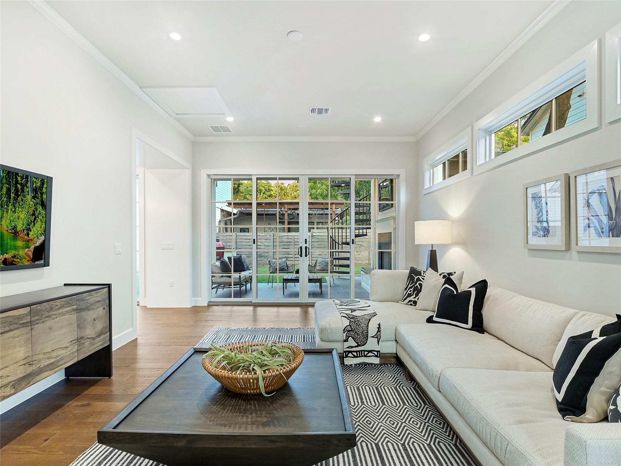Welcome to this stunning custom home in the Holly District. Experience premium location 4 blocks downtown and convenient access to Ladybird Lake, the Hike & Bike Trail, and nearby restaurants/establishments. This meticulously designed space includes 5 bedrooms, 4 1/2 bathrooms, and a view of downtown from the top level. The flex space on the main level could also be used as an additional bedroom with an ensuite bathroom. Prepare meals in the gourmet kitchen complete with a farmhouse sink, XL Wolf Range with custom vent hood and pot filler, Bosch dishwasher, and Sub-Zero Fridge. Beautiful custom cabinetry not only in the kitchen but throughout the home. The huge center island also features a dual-temperature wine/beverage fridge. Don't miss the incredible woodwork in the living/dining ceiling when entering the home. Entertain in the covered outdoor space next to the fireplace while grilling your best BBQ in the outdoor kitchen equipped with a Kamadojoe, gas grill and sink. Retire to the primary suite on the 2nd floor outfitted with 2 walk-in closets and a bathroom featuring a walk-in shower, soaking tub, and dual vanities. Enjoy morning coffee on the large balcony that extends off the 2nd level. The 4 secondary bedrooms located on the upper floors share a full bathroom on each floor. The entire property is fully fenced for privacy and includes a motorized gate in front. The detached extended garage connects to the home by a covered breezeway and is wired for an EV charger. The hand-scraped wood floors are European White Oak. House is pre-wried for security system. New LG ThinQ washer and dryer included.