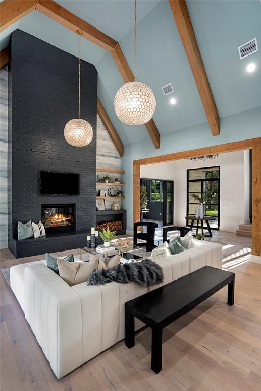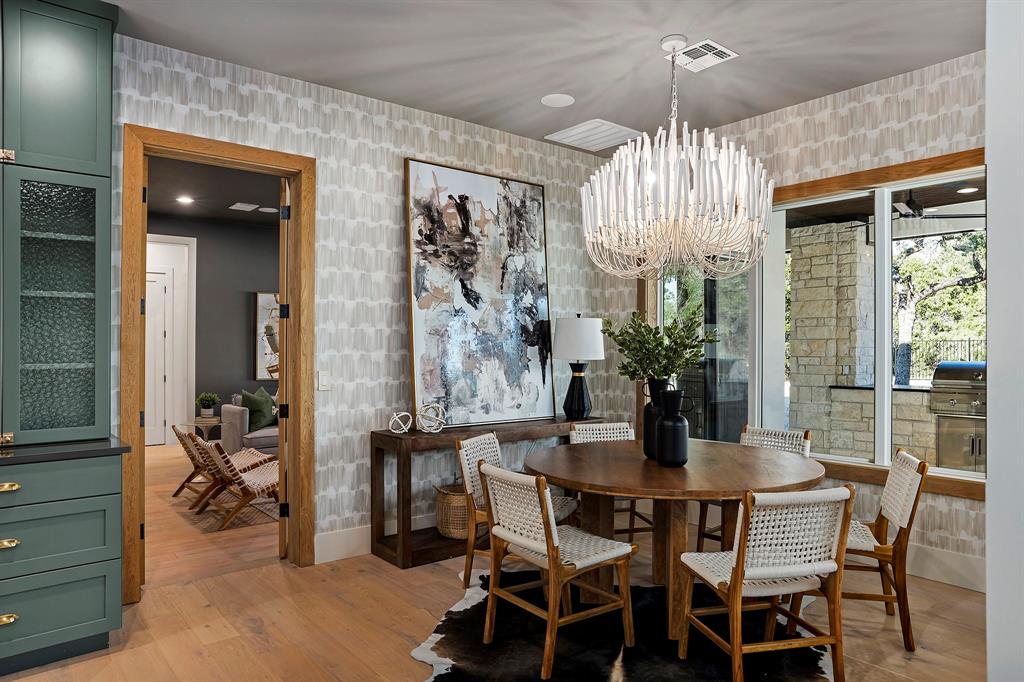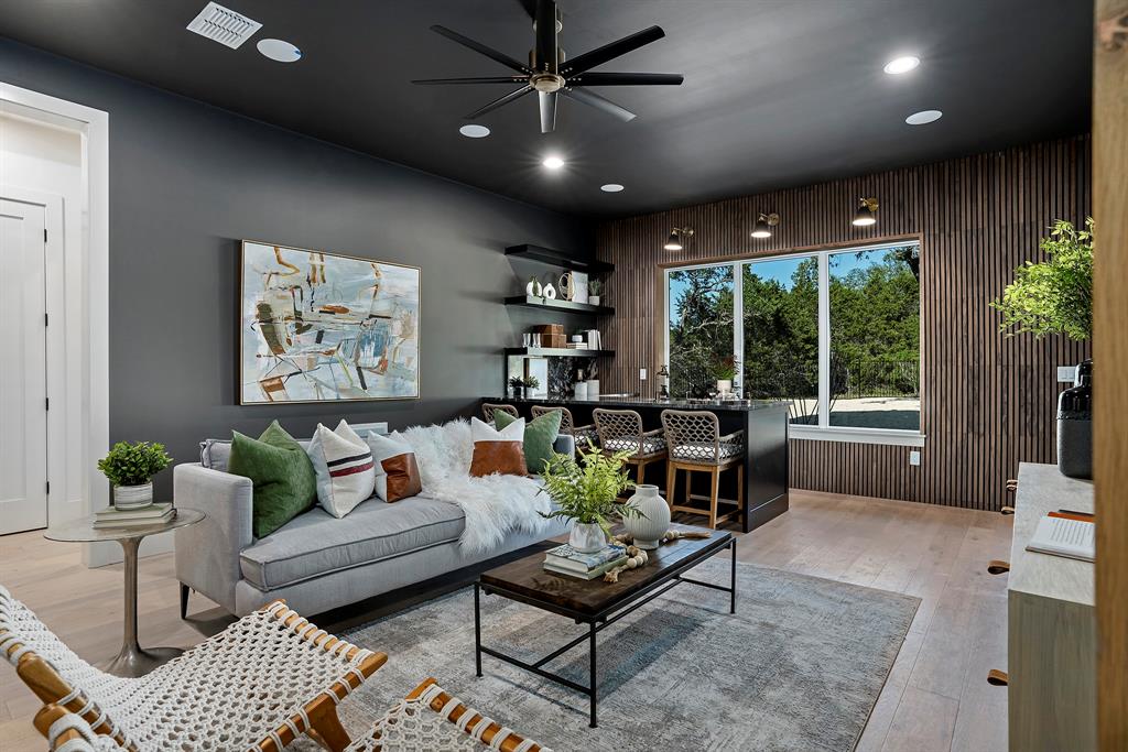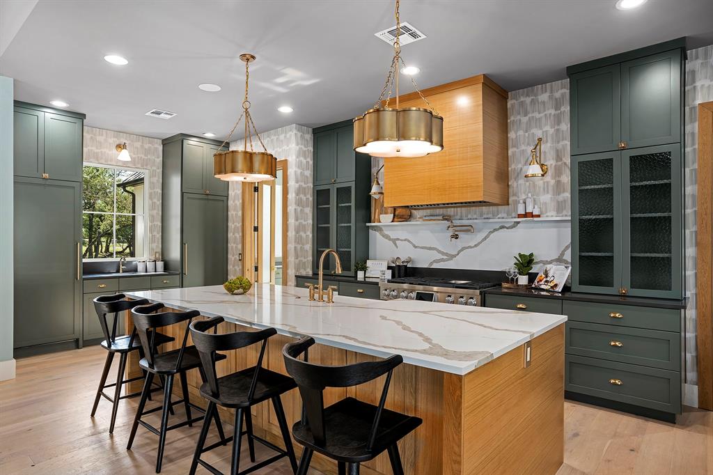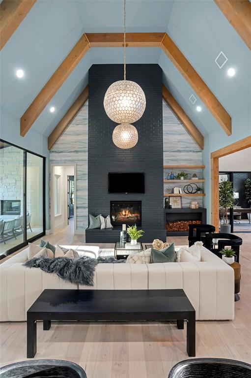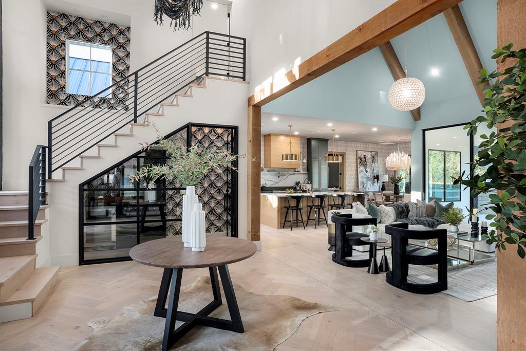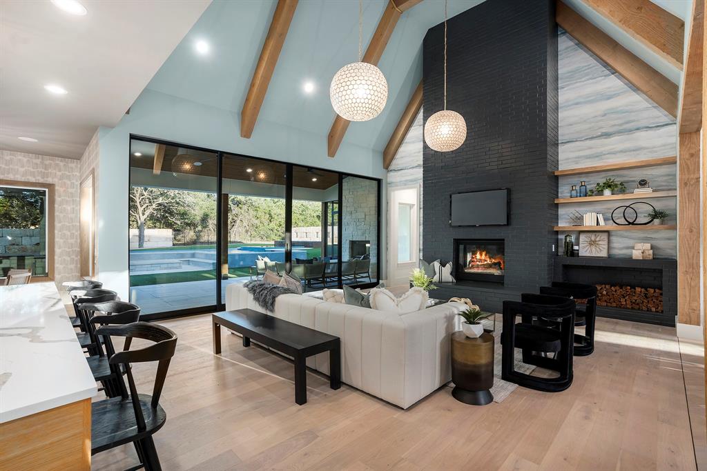 | Interior Features | Two Primary Suties, Breakfast Bar, Ceiling Fan(s), Beamed Ceilings, High Ceilings, Vaulted Ceiling(s), Chandelier, Quartz Counters, Double Vanity, Electric Dryer Hookup, Gas Dryer Hookup, Kitchen Island, Multiple Living Areas, Open Floorplan, Pantry, Primary Bedroom on Main, Recessed Lighting, Smart Thermostat, Wired for Data, Wired for Sound | |