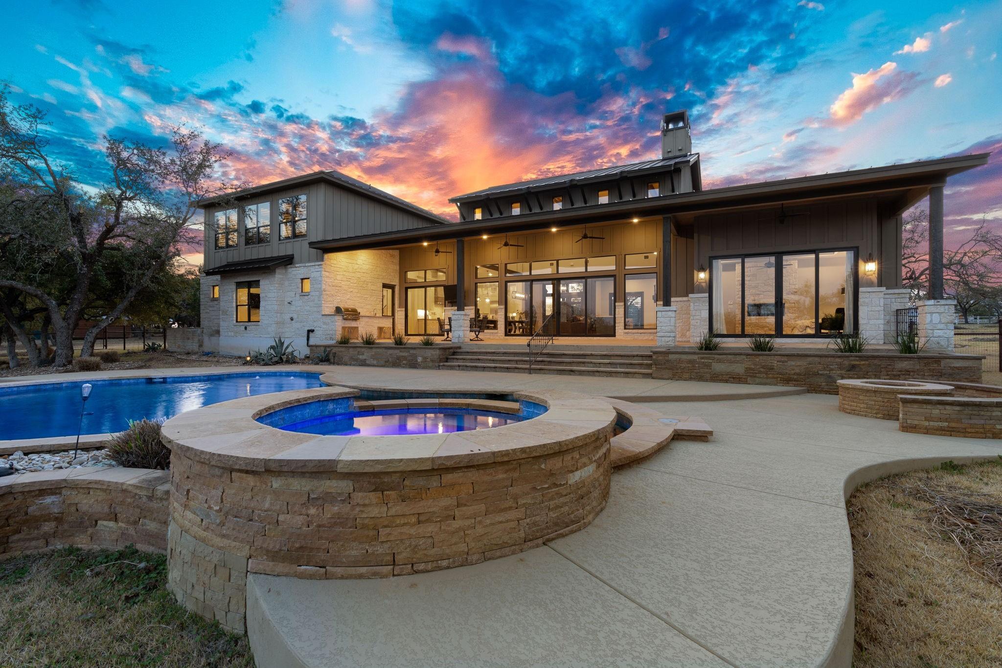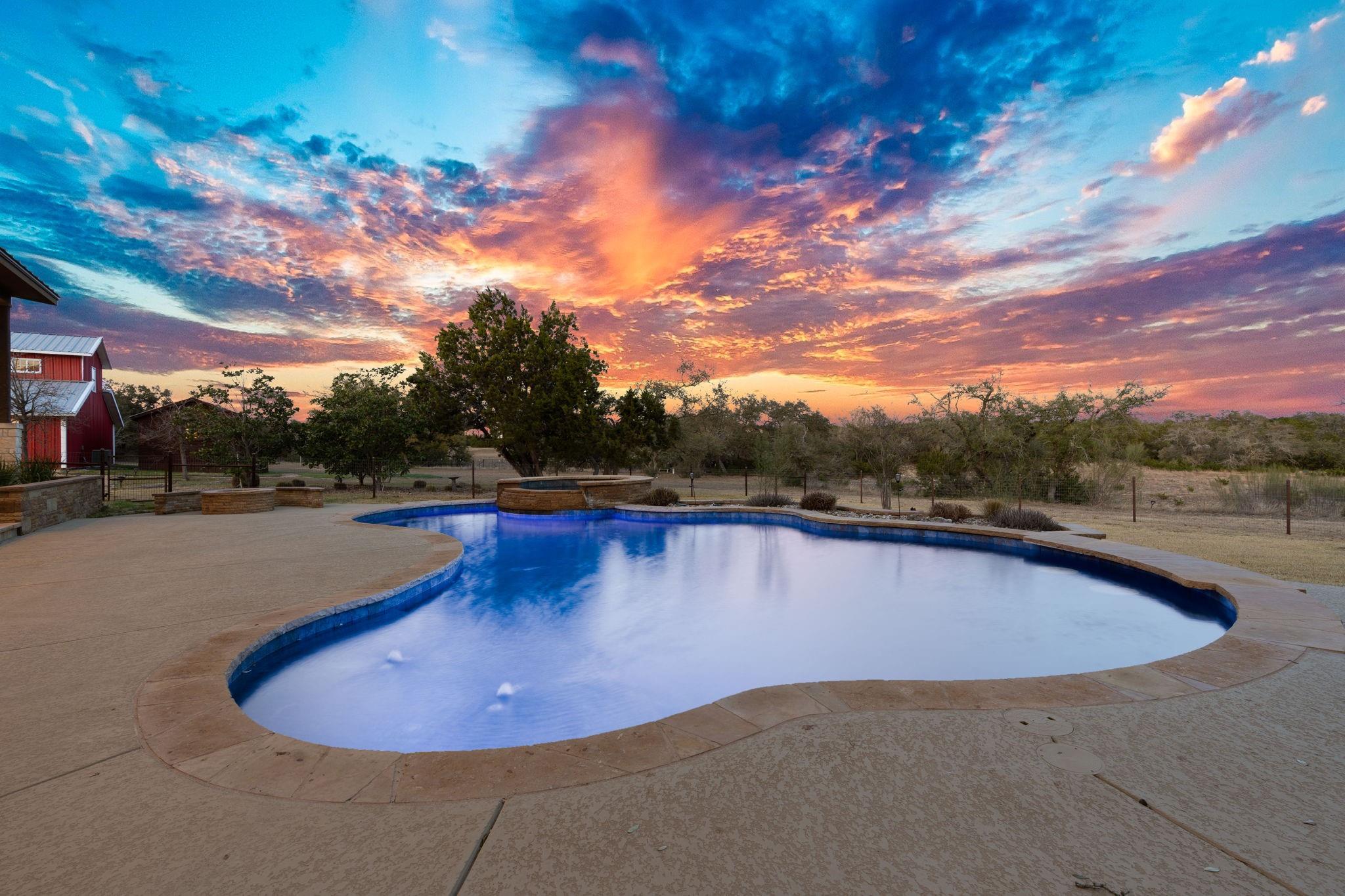 Amazing gated estate with ag exemption in the heart of Dripping Springs Hill Country. The main House sq ft is 4,725and has extensive custom design features including a chef kitchen, dedicated pool bath and double sliders onto the pool. This home offers 3 bedrooms on main floor, 4th bedroom located upstairs with a large game room and every bedroom has ensuite baths. Project desk areas and large pantry are a bonus for any family. Barn sq ft is 582 features living space, kitchenette, bedroom and bath located second floor of barn and has a private drive and entrance. GuestCabin sq ft is 344 and features bedroom and bath and private entrance.