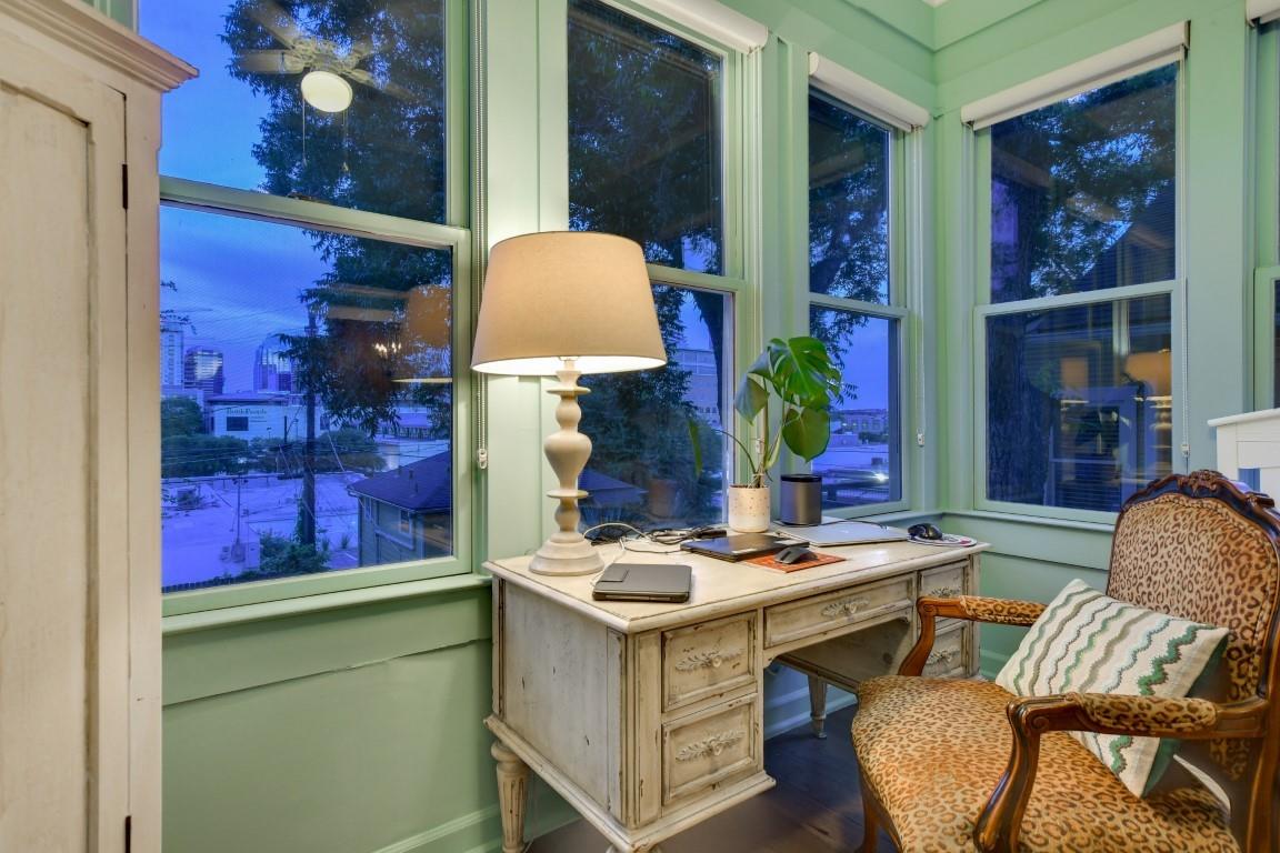Step outside to discover the true marvel of this property – an MF4 zoned oversized lot; the home presents a multitude of expansion possibilities, allowing you to tailor this space to your unique vision. Seize the opportunity to own a piece of Austin's esteemed history with this classic residence in Clarksville with panoramic Downtown views. This home stands as a testament to the timeless era that so many people seek in Old West Austin, seamlessly integrating modern updates with its historic charm. As you step inside, you're welcomed by the architecturally charming living room, wood-burning fireplace, and sitting room. The eleven-foot ceilings are adorned with traditional wainscoting to create an atmosphere of charm. The long-leaf pine floors add a touch of historical elegance, guiding you through the main level. The primary bedroom offers idyllic skyline views. Nestled just two blocks from Whole Foods and the vibrant downtown scene, this home offers a rare blend of tranquility and accessibility. Enjoy rare ally access just blocks from all Austin has to offer.