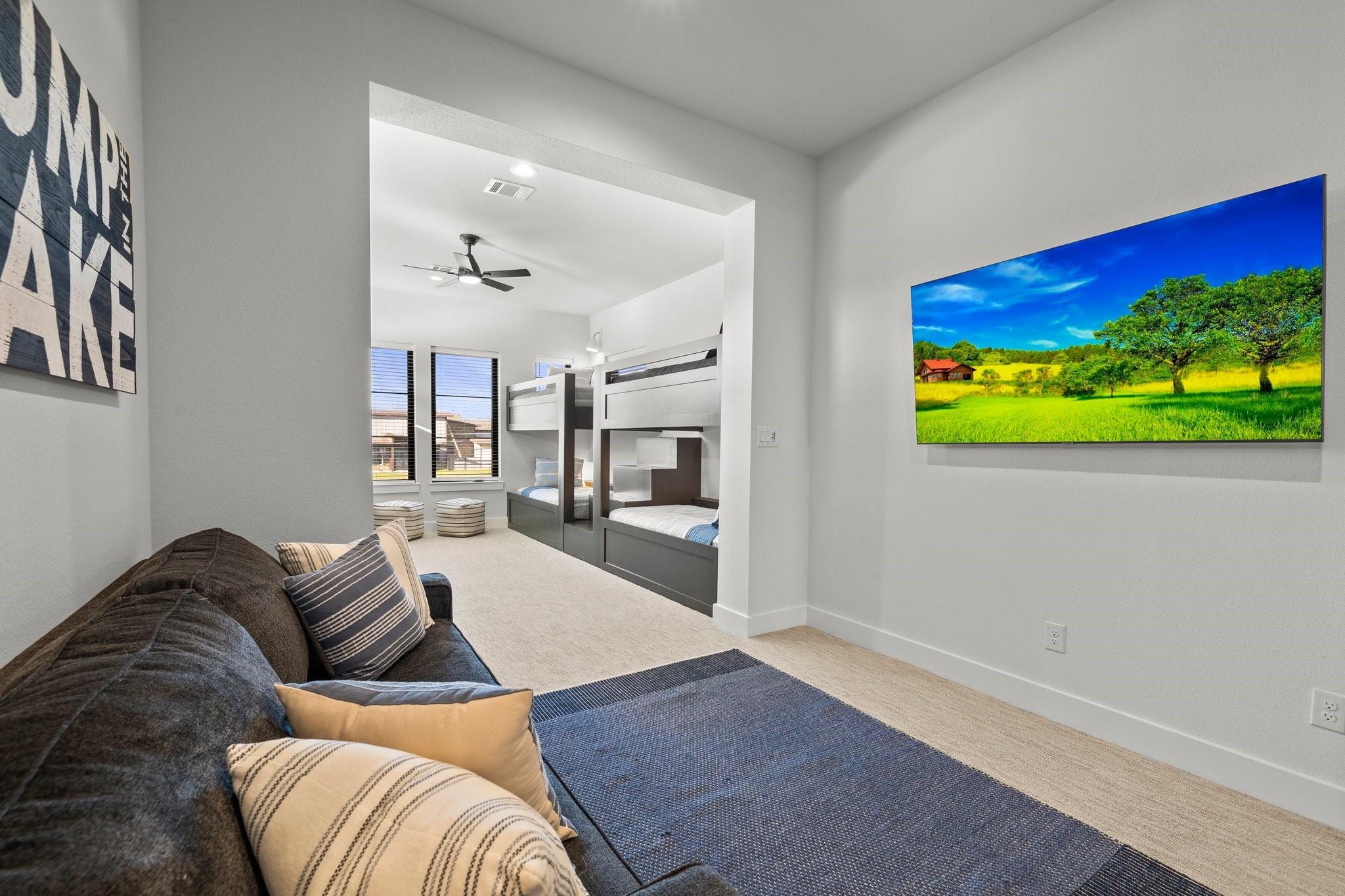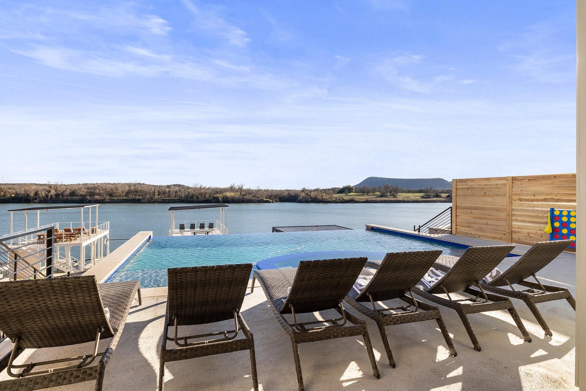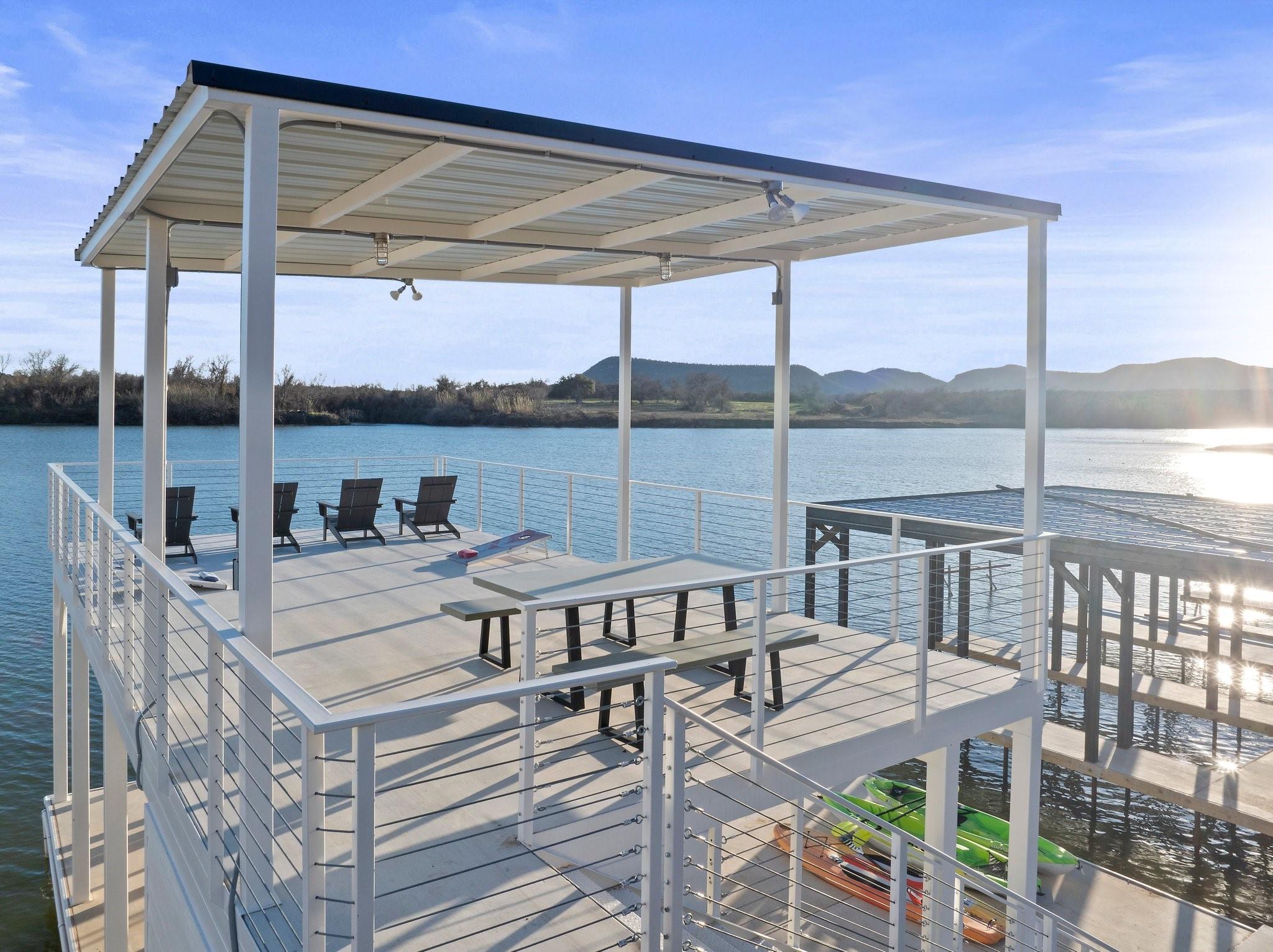 Special Financing Available at 2% Below Prime Rate on this brand-new custom-built contemporary style 4634 sq ft home located on the nicest part of the Llano River Arm of Lake LBJ. High-end features and design throughout shout out fabulous taste! Enjoy luxury vinyl plank floors, quartz & granite counter tops, specialty lighting throughout the house and gorgeous kitchen appliances. The floorplan works especially well for large families and friends. THIS IS A GREAT VRBO.THAT IS BOOKING UP QUICKLY! IMMEDIATE CASH FLOW THE DAY OF CLOSING. Five bedrooms with 51/2 baths includes cleverly placed bunk areas, a games room/ media room/ second living large poolside patio with outdoor kitchen. Enjoy beautiful sunrise & sunset views up and down the lake on excellent water with little boat traffic allowing for swimming, paddle board, kayaking, and the best white bass fishing in early Spring. House plans are in the associated documents of this listing.
