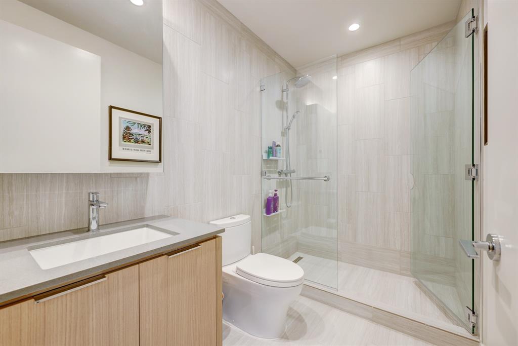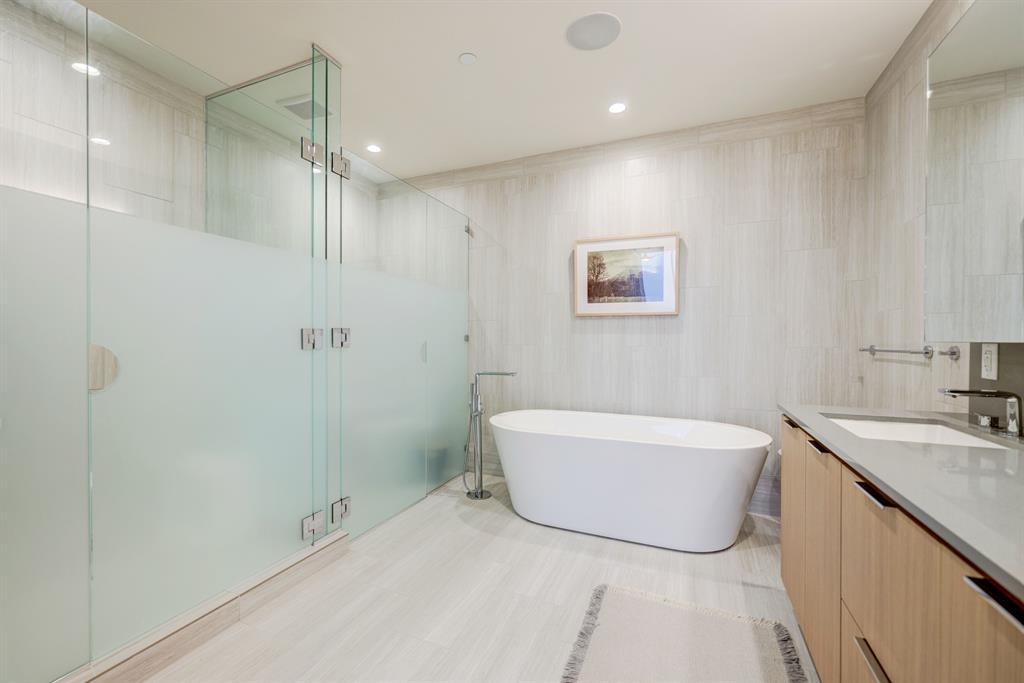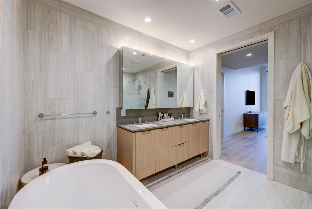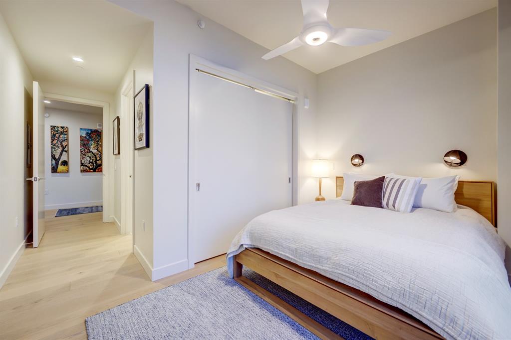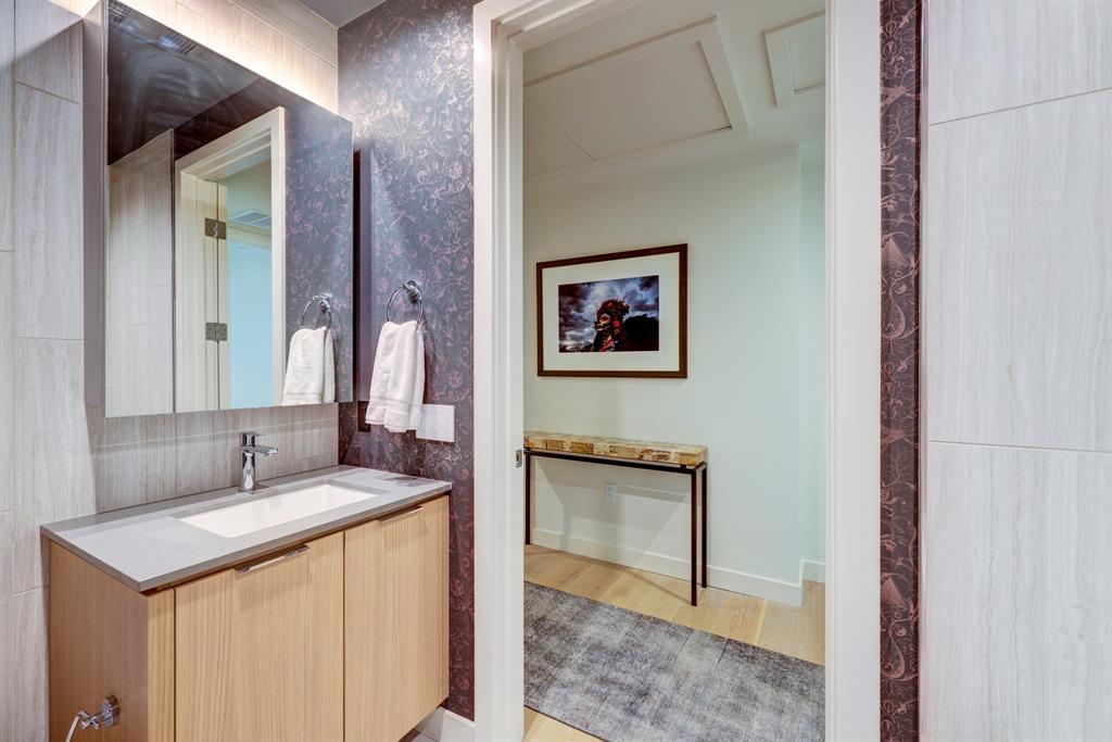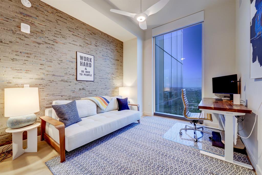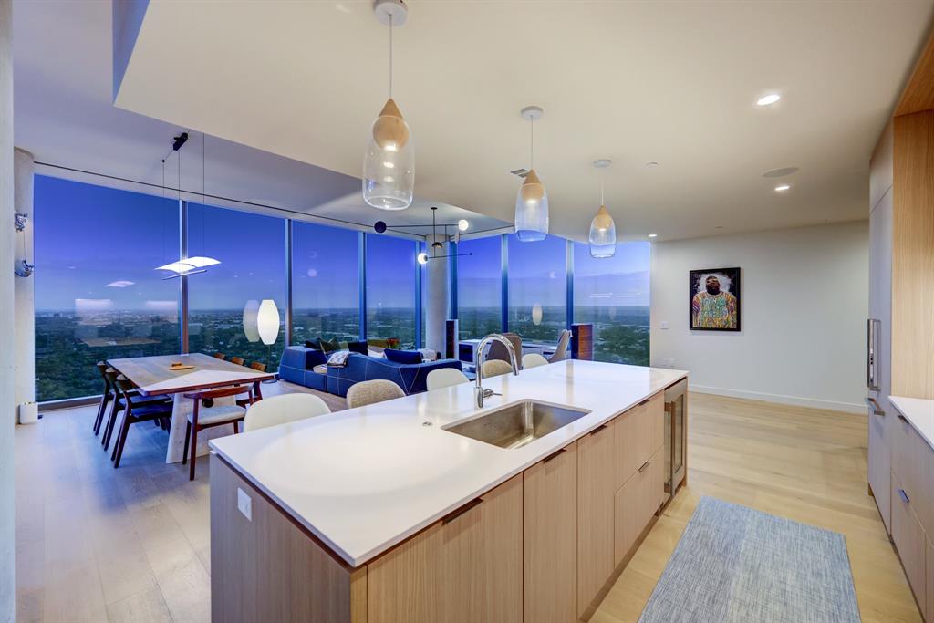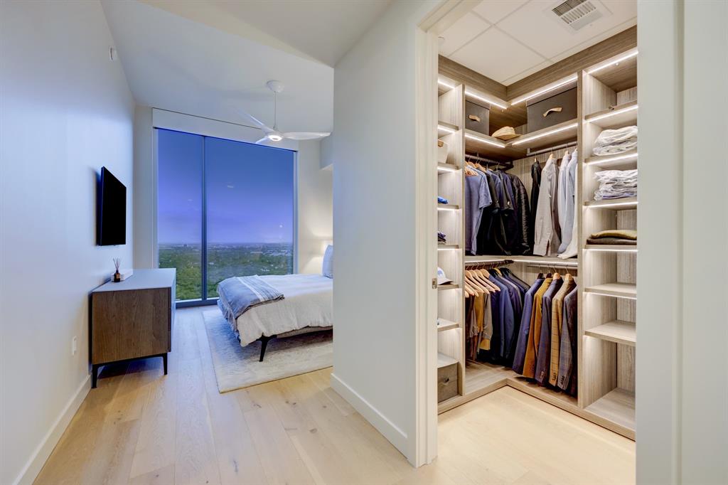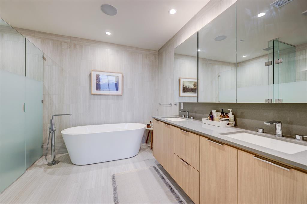 Luxurious urban living meets the vibrant heart of Austin in this exquisite 3 bedroom condo at 44 East Ave. Nestled at the quieter end of Rainey St on the shores of Lady Bird Lake, this prime location steps away from the city's renowned hike and bike trail. Filled with natural light from three sides of impressive 11-foot floor-to-ceiling windows, the living room offers a stunning 180-degree panorama of Lady Bird Lake's glistening waters. The kitchen seamlessly merges with the living area, showcasing the elegant design that revolves around an expansive kitchen island. This culinary haven boasts Italian cabinetry with soft-close cabinets, sleek quartz countertops, top-of-the-line Bosch appliances, including a paneled dishwasher & a built-in refrigerator, and an under-counter Thermador wine fridge. The spacious primary suite features a custom walk-in closet adorned with custom lighting and the adjoining bathroom exudes luxury with dual vanity sinks, a free-standing soaking tub, and a frameless glass shower. Other high-end finishes include white oak hardwood floors, custom designer wallpaper, Italian custom closet upgrades, built-ins and more. Smart full home technology including automated solar shades, lighting, door locks, video door bell, and integrated Sonos audio system in every room. Perched on the 44th floor, this residence affords the rare privilege of relishing both breathtaking sunrises and awe-inspiring sunsets over Lady Bird Lake. Residence 4406 includes 2 parking spaces with a rare EV charger. The building offers an array of exceptional amenities that encompass 13,000 square feet of communal spaces on the 11th and 37th floors. Amenities include a 24-hour concierge, cenote-style pool, an inviting outdoor lounge complete with gas grills, an outdoor dog park and a dog lounge with a spa, a state-of-the-art fitness center, a yoga studio, conference rooms, a great room adorned with TVs, a caterer's kitchen, and two well-appointed guest suites.
