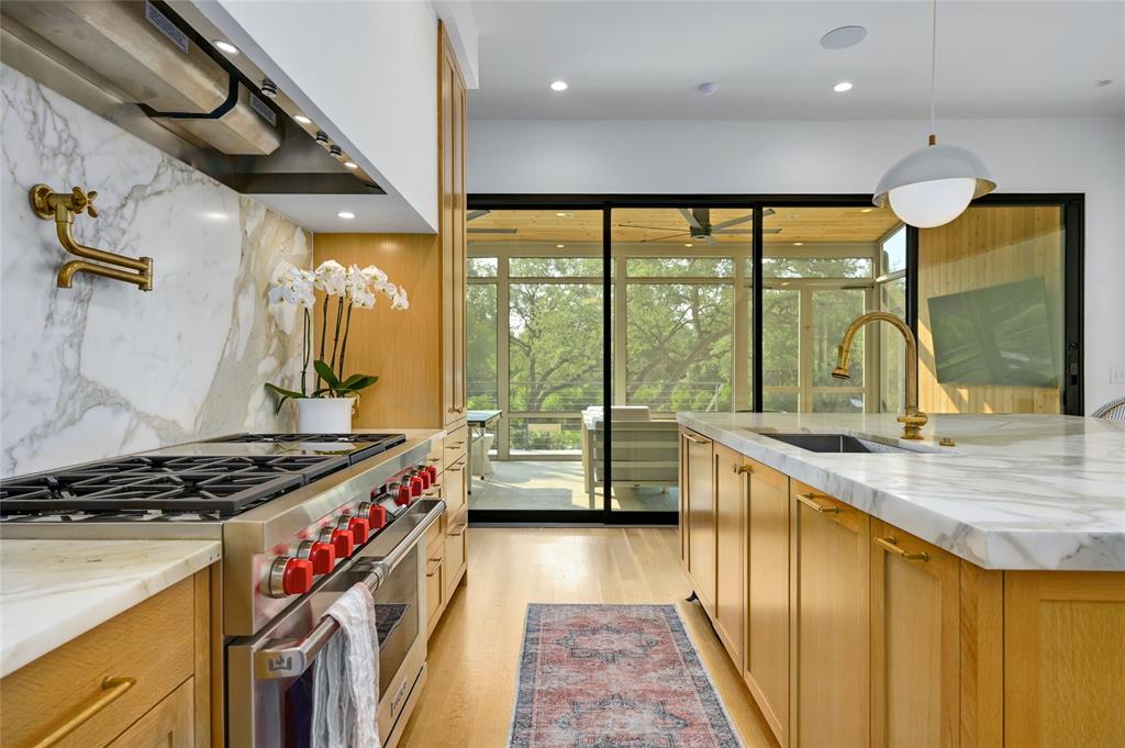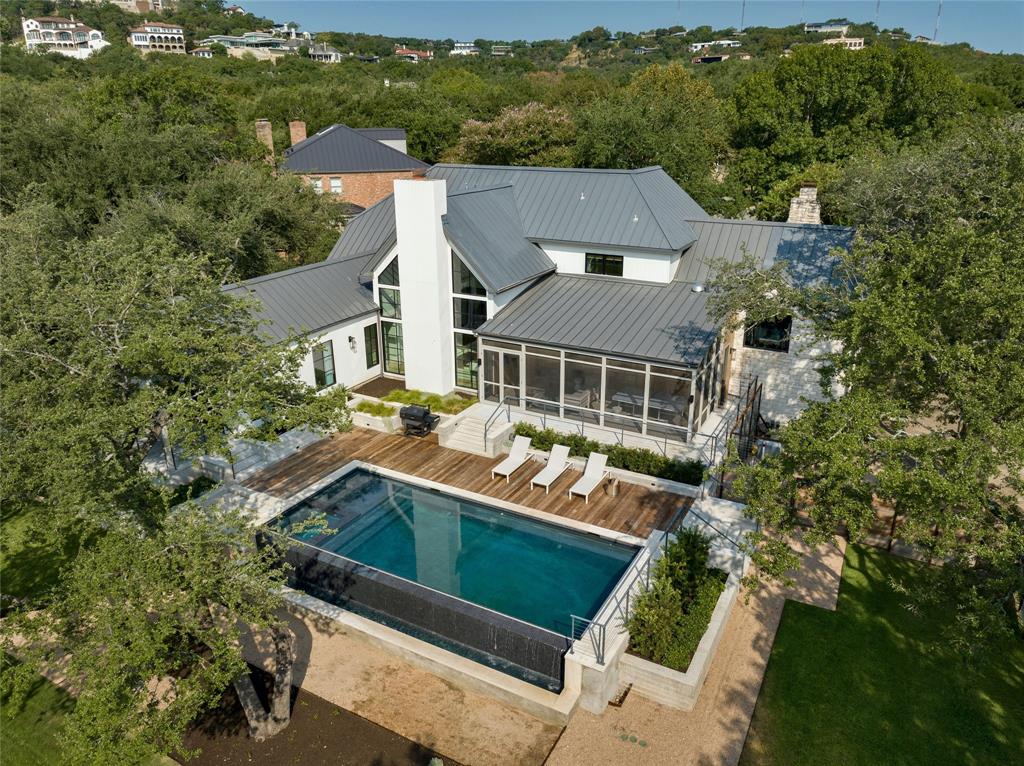 Nestled at the end of a quaint cul-de-sac within the coveted West Rim neighborhood of Westlake, this residence stands as an embodiment of luxurious living and timeless elegance. This residence offers a refined retreat in the heart of 78746, enriched by the esteemed Eanes ISD. Boasting five bedrooms, four full bathrooms, a powder room with pool access, and two living spaces, the house offers an inviting ambiance to either retreat with family or host friends for all types of gatherings. The recent first-floor renovation and addition, completed in 2022, brought a fresh dimension to the property. Most notably, the home features a 500-square-foot primary bedroom and bathroom addition. With vaulted ceilings, white oak floors, and French doors opening onto a private patio, the suite is a lesson in simple elegance and escapism. The primary suite features elegant marble tile and countertops, a white oak double vanity and a multi-head steam shower. The floor to ceiling custom closet carpentry rounds out this elegant primary suite. The home’s kitchen, dining and indoor/outdoor living areas are an entertainer’s dream, featuring a 48†dual fuel Wolf range, SubZero refrigerator and freezer, Calacatta gold countertops and 1,000+ bottle temperature-controlled wine cellar. The 4-way Fleetwood sliding door opens to an all-season screened porch, and unlacquered brass fixtures, custom lighting and new Lincoln windows add to the home’s elevated aesthetic. Among other notable additions are a Generac natural gas generator, a SONOS-compatible sound system, whole property video surveillance and security system, tankless water heaters, landscape lighting, a private well for irrigation and recent infinity edge pool with a built-in spa. Enjoy exclusive access to a gated waterfront park, which comes complete with a wealth of amenities. Tax and assessed values are estimates for illustration purposes only. All figures should be independently verified. 24-Hr Showing Notice.