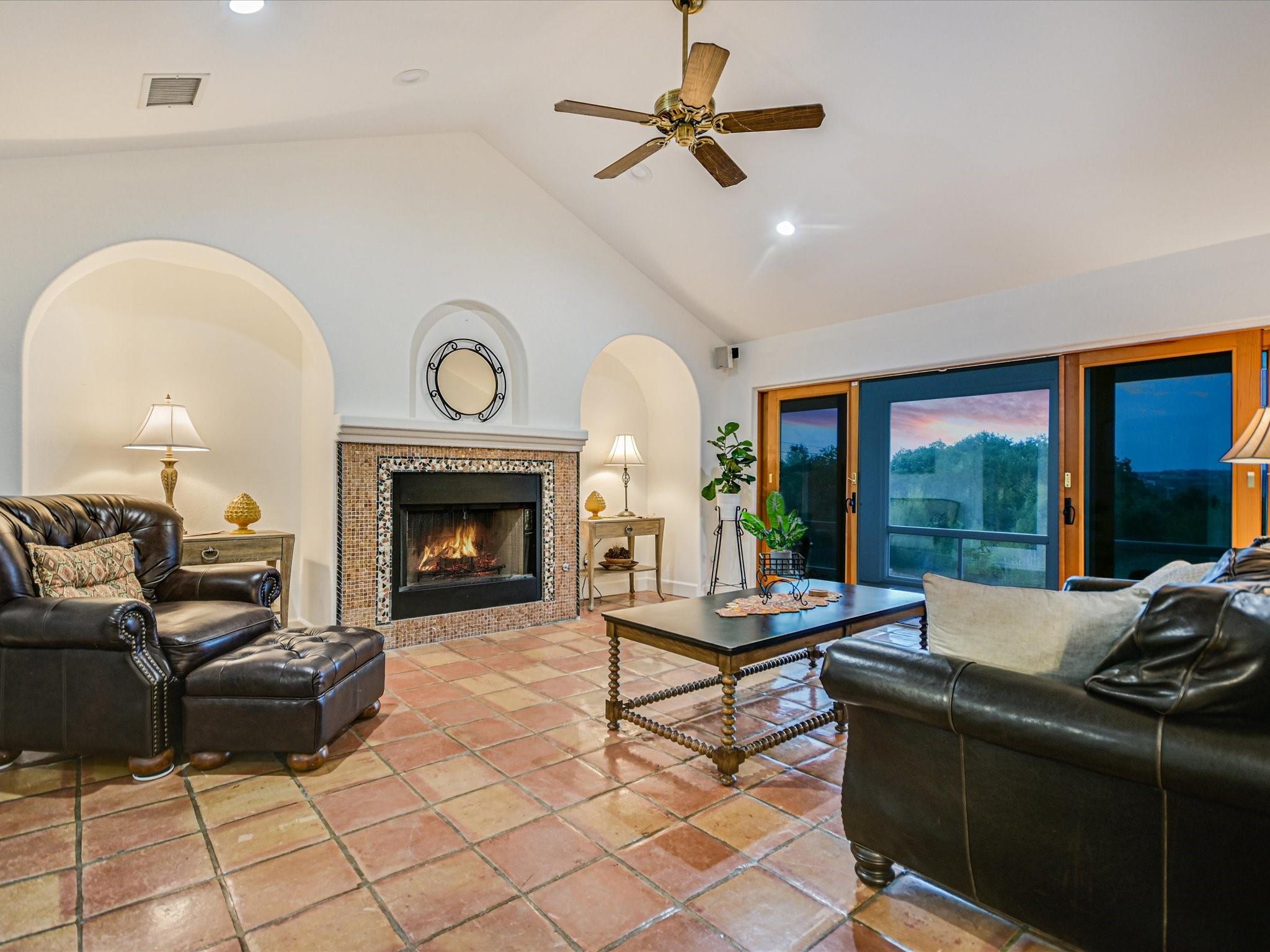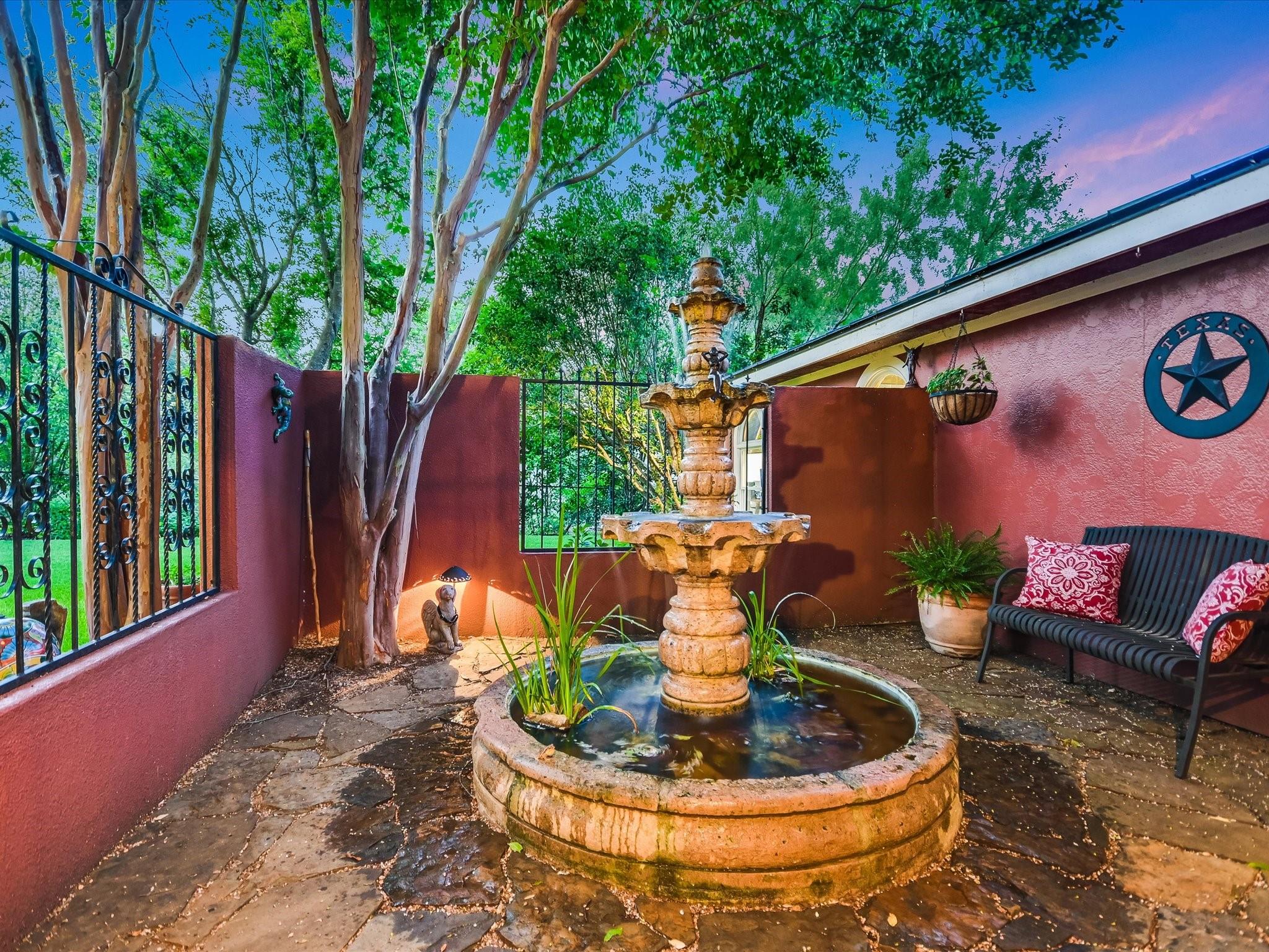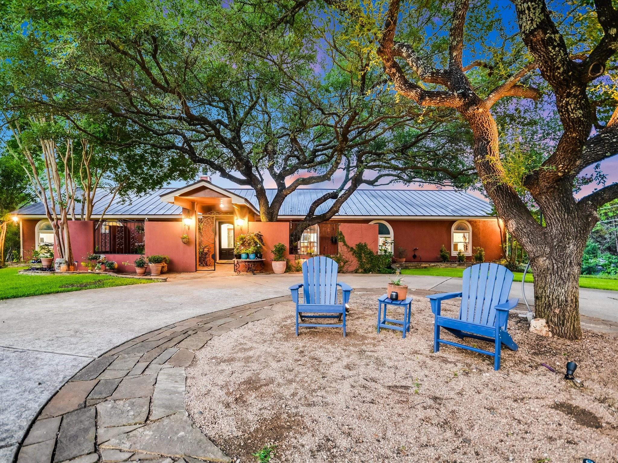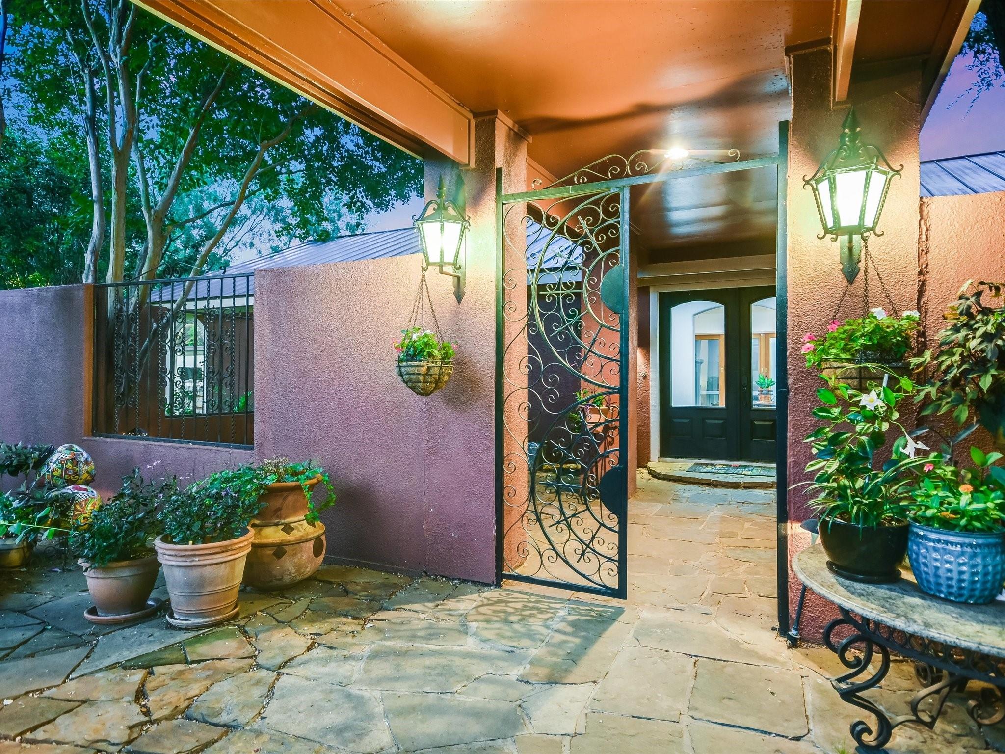 Introducing a captivating new listing overlooking the pristine waters of Lake Austin! This enchanting Spanish-style Hacienda, nestled amidst mature live oak trees and professional landscaping, offers serene waterfront living. Drive through the stunning hand-crafted entrance gate and follow the winding circular drive that leads to this updated 3-bedroom, 3-bathroom home. The courtyard entrance boasts custom ironwork and a tranquil fountain, setting a tone of elegance. Inside, double glass doors reveal a spacious foyer leading to a living area with a wood-burning fireplace, exquisite Saltillo tile floors, graceful arches, and vaulted ceilings. The updated gourmet kitchen features quartz counters and natural wood cabinetry, while sliding glass doors showcase Hill Country views from the spacious living room. Retreat to the luxurious main bedroom retreat, where a palatial closet complete with an island and washer/dryer awaits. Indulge in the sumptuous primary bath featuring a freestanding soaking tub, updated shower, dual sinks, and a captivating window wall overlooking the verdant backyard and views beyond. Entertainment abounds in the unbelievable media theatre room, accompanied by a dry bar area and ample space for game tables, perfect for hosting unforgettable gatherings with friends and family. Enjoy lake access via a private gated entrance, exclusive to waterfront owners. Approximately 130 feet of private waterfrontage includes a beach-like area and a pavilion. Experience the ease of irrigation with a sprinkler system fed directly from the lake via a permitted pump, ensuring lush greenery throughout the expansive yard and waterfront areas. This extraordinary property offers a rare chance to own a waterfront estate at an exceptional value. All information provided is deemed reliable but not guaranteed and should be verified. Some photos have been digitally enhanced. Don't miss out on this enchanting opportunity—schedule your private viewing today!