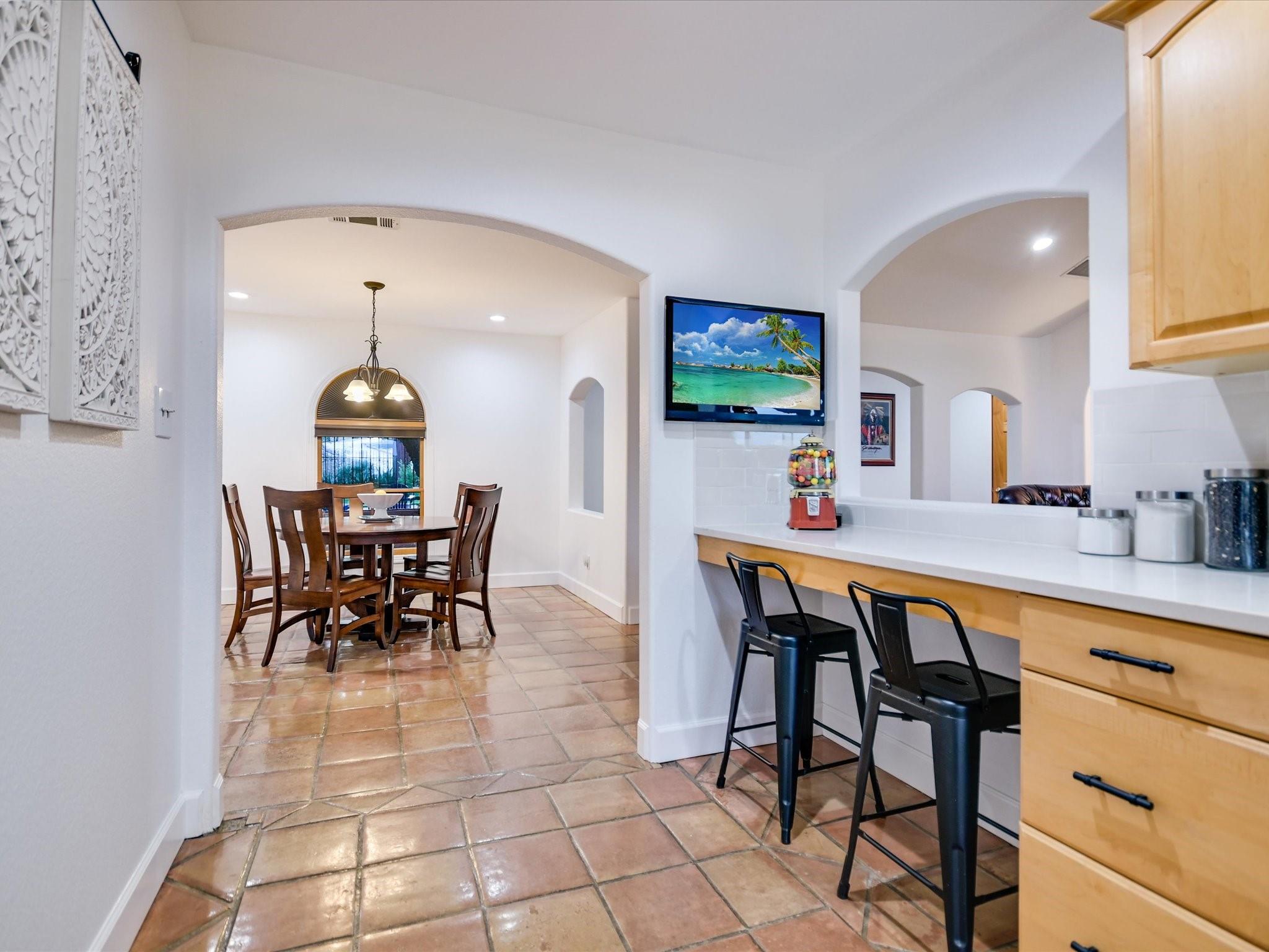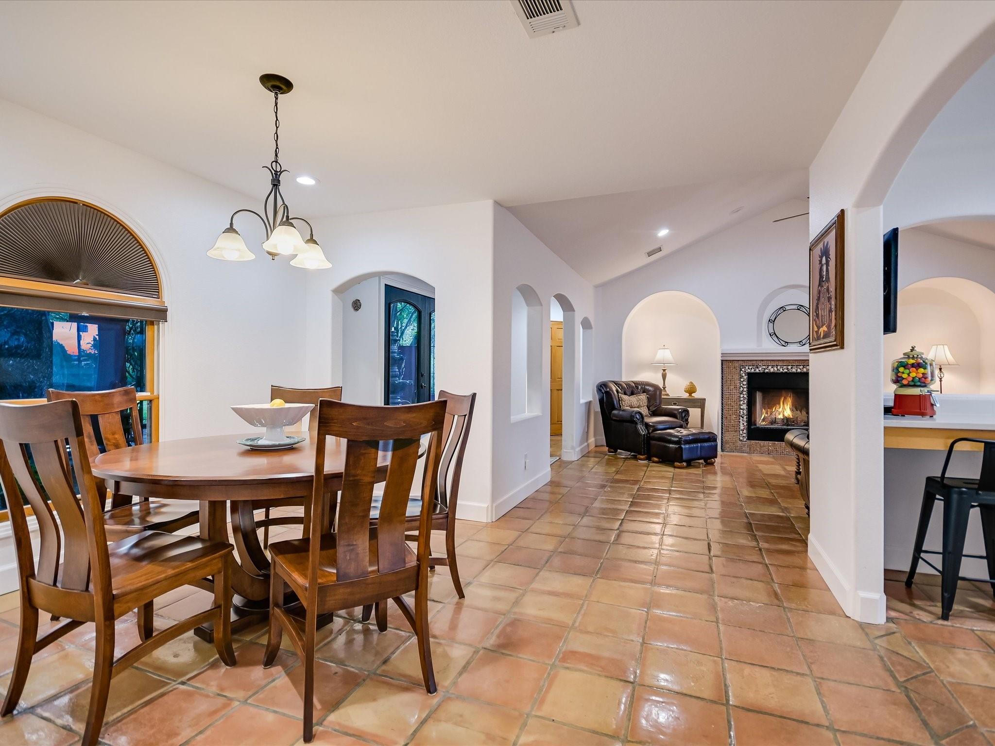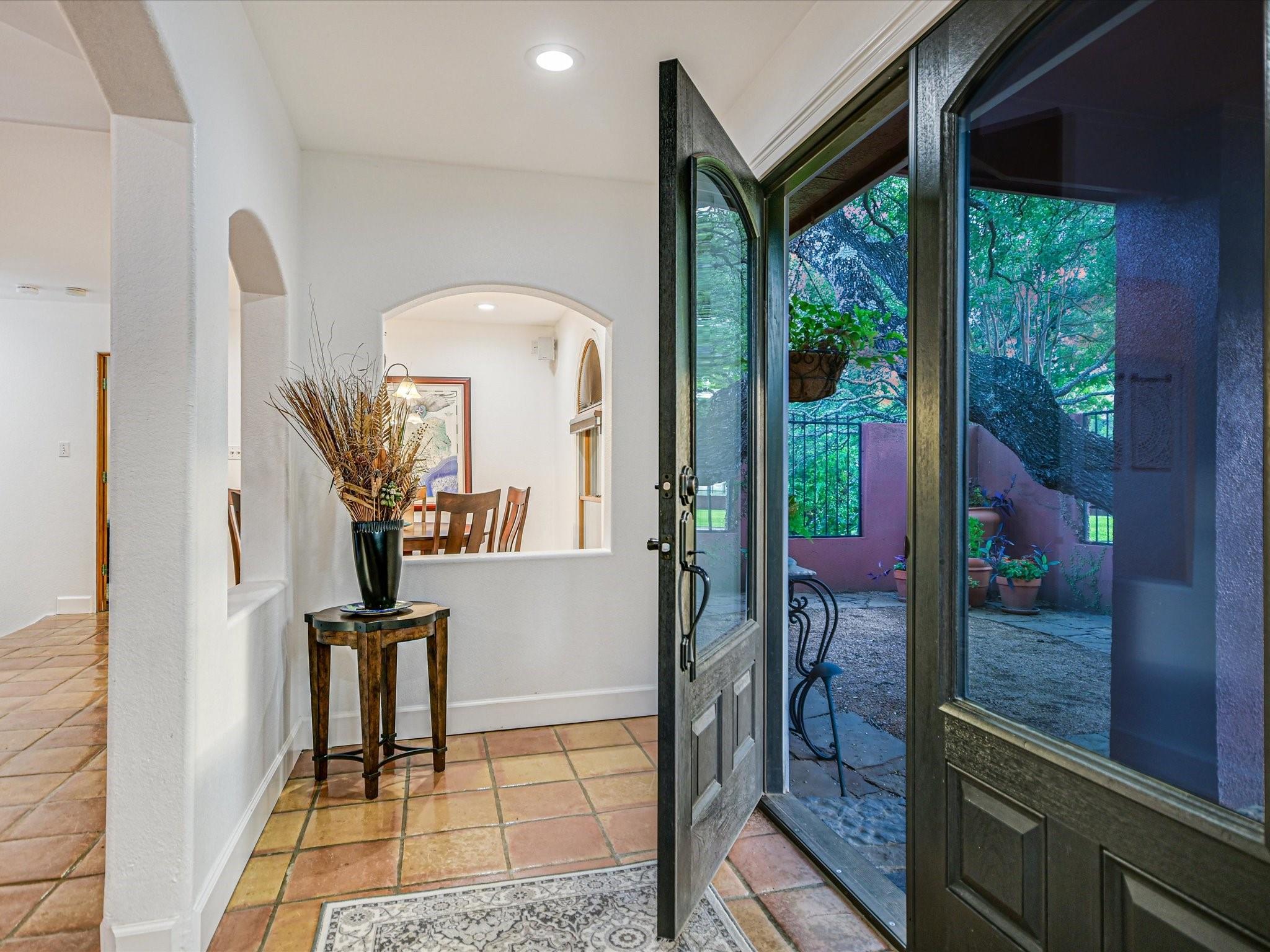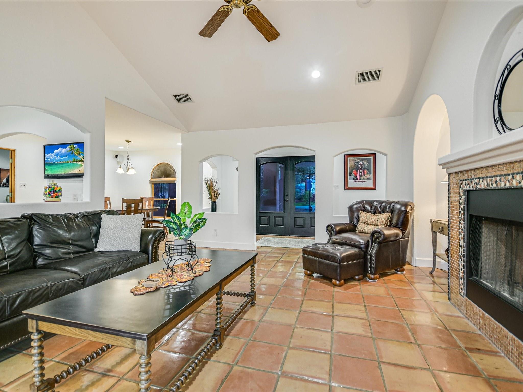 Introducing a captivating new listing overlooking the pristine waters of Lake Austin! This enchanting Spanish-style Hacienda, nestled amidst mature live oak trees and professional landscaping, offers serene waterfront living. Drive through the stunning hand-crafted entrance gate and follow the winding circular drive that leads to this updated 3-bedroom, 3-bathroom home. The courtyard entrance boasts custom ironwork and a tranquil fountain, setting a tone of elegance. Inside, double glass doors reveal a spacious foyer leading to a living area with a wood-burning fireplace, exquisite Saltillo tile floors, graceful arches, and vaulted ceilings. The updated gourmet kitchen features quartz counters and natural wood cabinetry, while sliding glass doors showcase Hill Country views from the spacious living room. Retreat to the luxurious main bedroom retreat, where a palatial closet complete with an island and washer/dryer awaits. Indulge in the sumptuous primary bath featuring a freestanding soaking tub, updated shower, dual sinks, and a captivating window wall overlooking the verdant backyard and views beyond. Entertainment abounds in the unbelievable media theatre room, accompanied by a dry bar area and ample space for game tables, perfect for hosting unforgettable gatherings with friends and family. Enjoy lake access via a private gated entrance, exclusive to waterfront owners. Approximately 130 feet of private waterfrontage includes a beach-like area and a pavilion. Experience the ease of irrigation with a sprinkler system fed directly from the lake via a permitted pump, ensuring lush greenery throughout the expansive yard and waterfront areas. This extraordinary property offers a rare chance to own a waterfront estate at an exceptional value. All information provided is deemed reliable but not guaranteed and should be verified. Some photos have been digitally enhanced. Don't miss out on this enchanting opportunity—schedule your private viewing today!