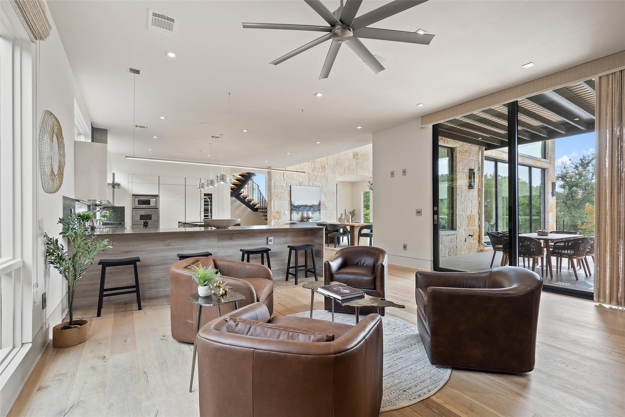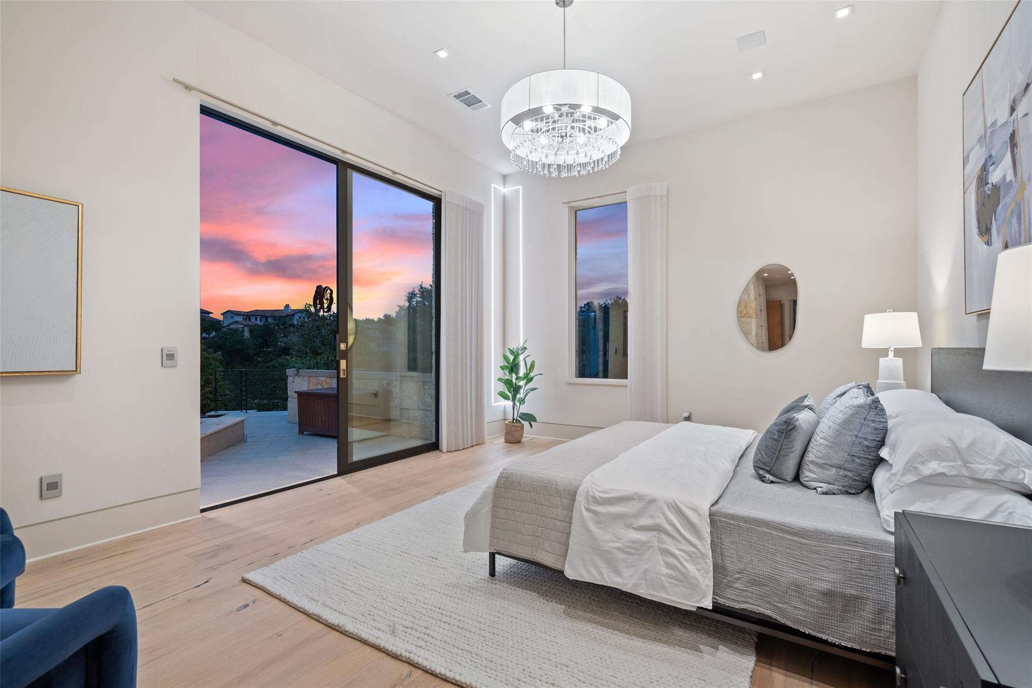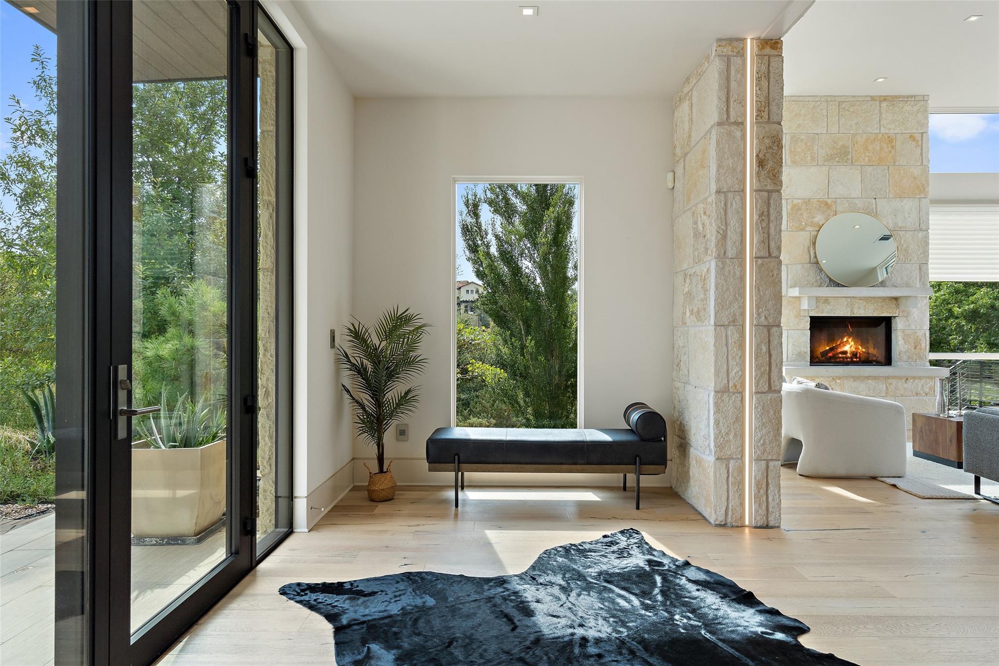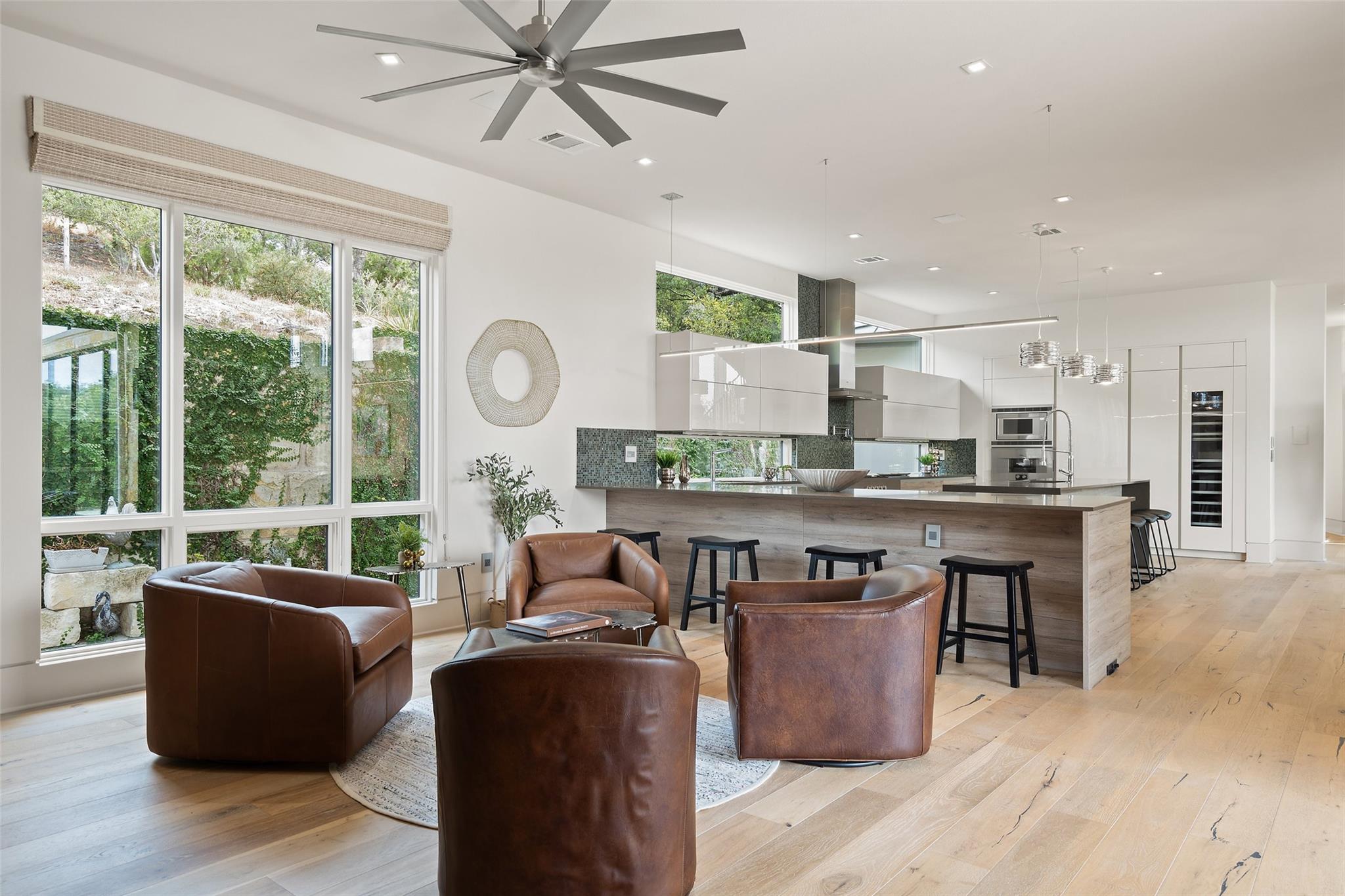 Welcome to this remarkable private, gated estate, nestled at the end of a cul-de-sac with panoramic views that stretch for miles. This property offers a tranquil retreat with its stunning negative edge pool, relaxing spa, and an inviting open concept floorplan. Every inch of this home is adorned with customized, designer details, catering to even the most discerning of tastes. What sets this property apart is its harmonious blend of contemporary design and natural elements. Expansive walls of windows seamlessly integrate the outdoors, flooding the interior with serene views and abundant natural light. The result is a quiet and peaceful sanctuary, perfect for those seeking respite from the hustle and bustle of daily life. The heart of this home is a chef's dream – a well-appointed kitchen featuring top-of-the-line appliances, custom cabinetry, Cesarstone countertops, and a functional layout for both culinary enthusiasts and entertainers alike. Conveniently located on the main floor, the primary suite offers a private getaway for unwinding with a spa-like bath that includes a walk-in shower, stand-alone tub and a closet that will be the envy of your friends. The main level also features a private study and a comfortable guest room which opens to the pool and spa. There are three additional bedrooms upstairs, each with en-suite full baths and walk-in closets along with a third living area providing a versatile space for gathering family and friends. Outside, the landscaping skillfully combines custom design elements with the natural beauty of the Texas hill country. The result is an oasis that feels miles away from the city yet is conveniently close to everything that makes Austin so desirable. Located in the esteemed Eanes ISD and with a low tax rate, this remarkable estate provides the ideal blend of comfort, practicality, tranquility and luxury.