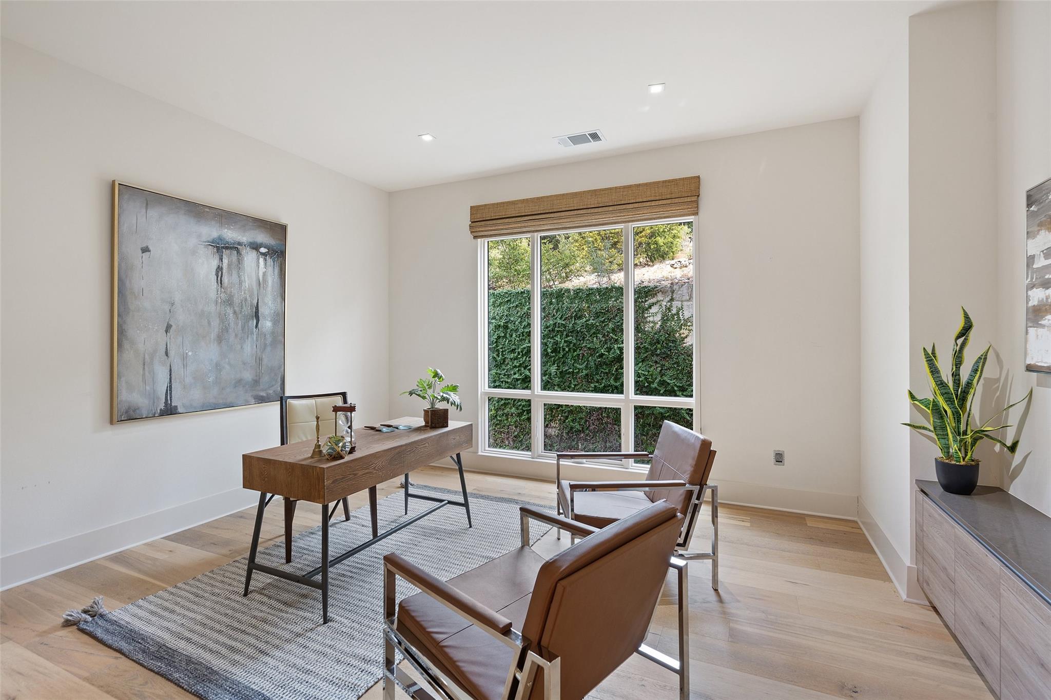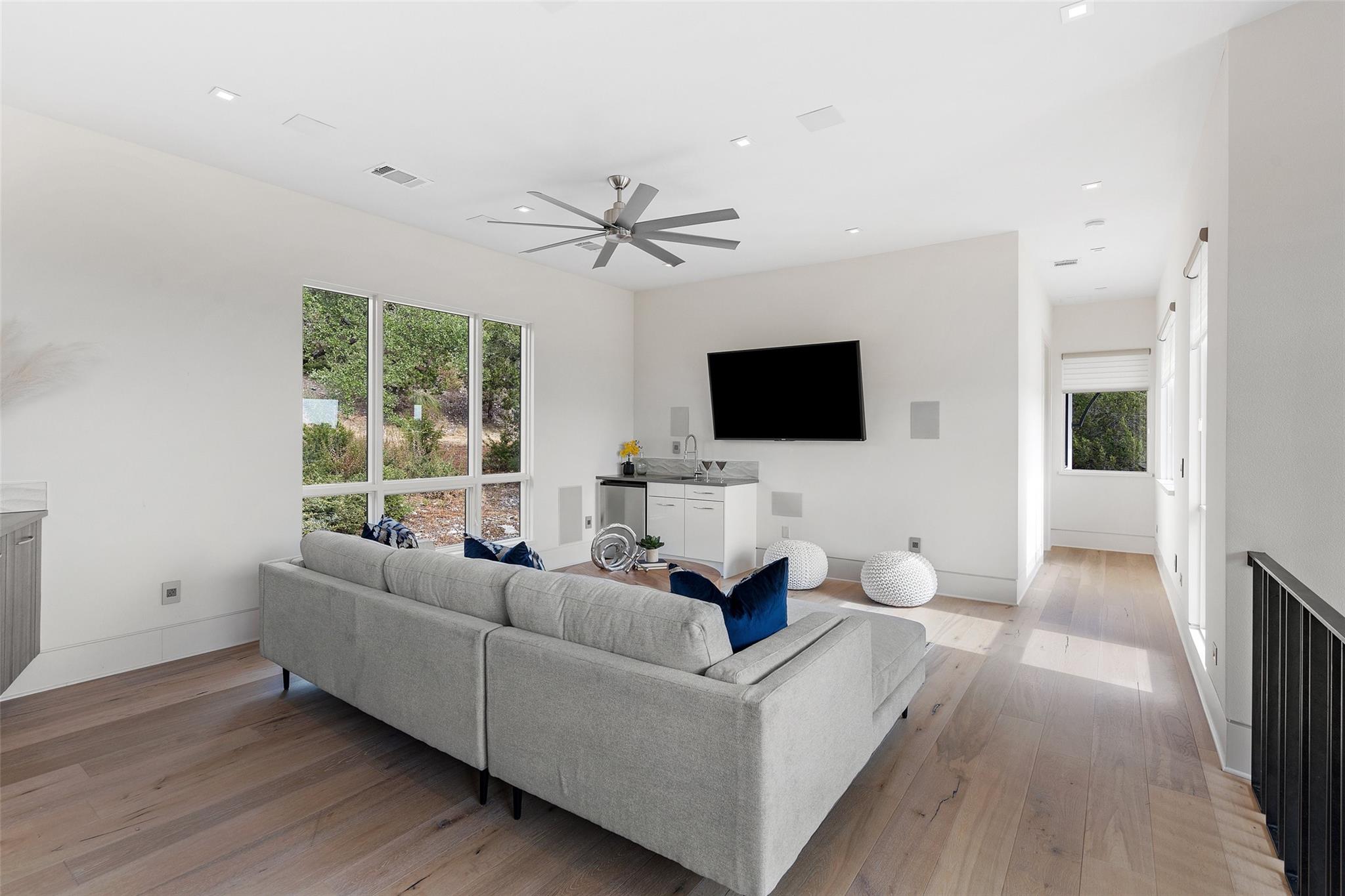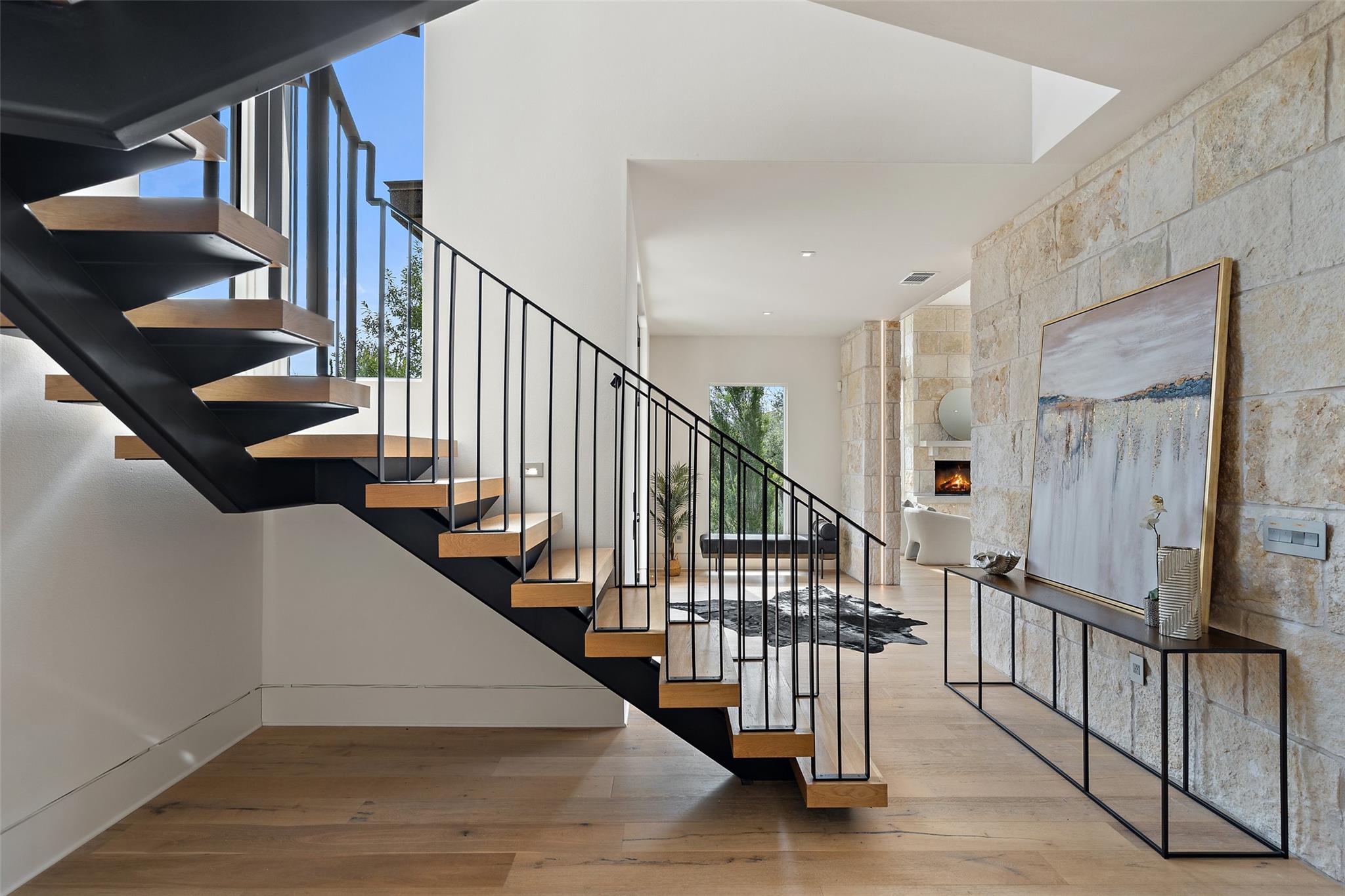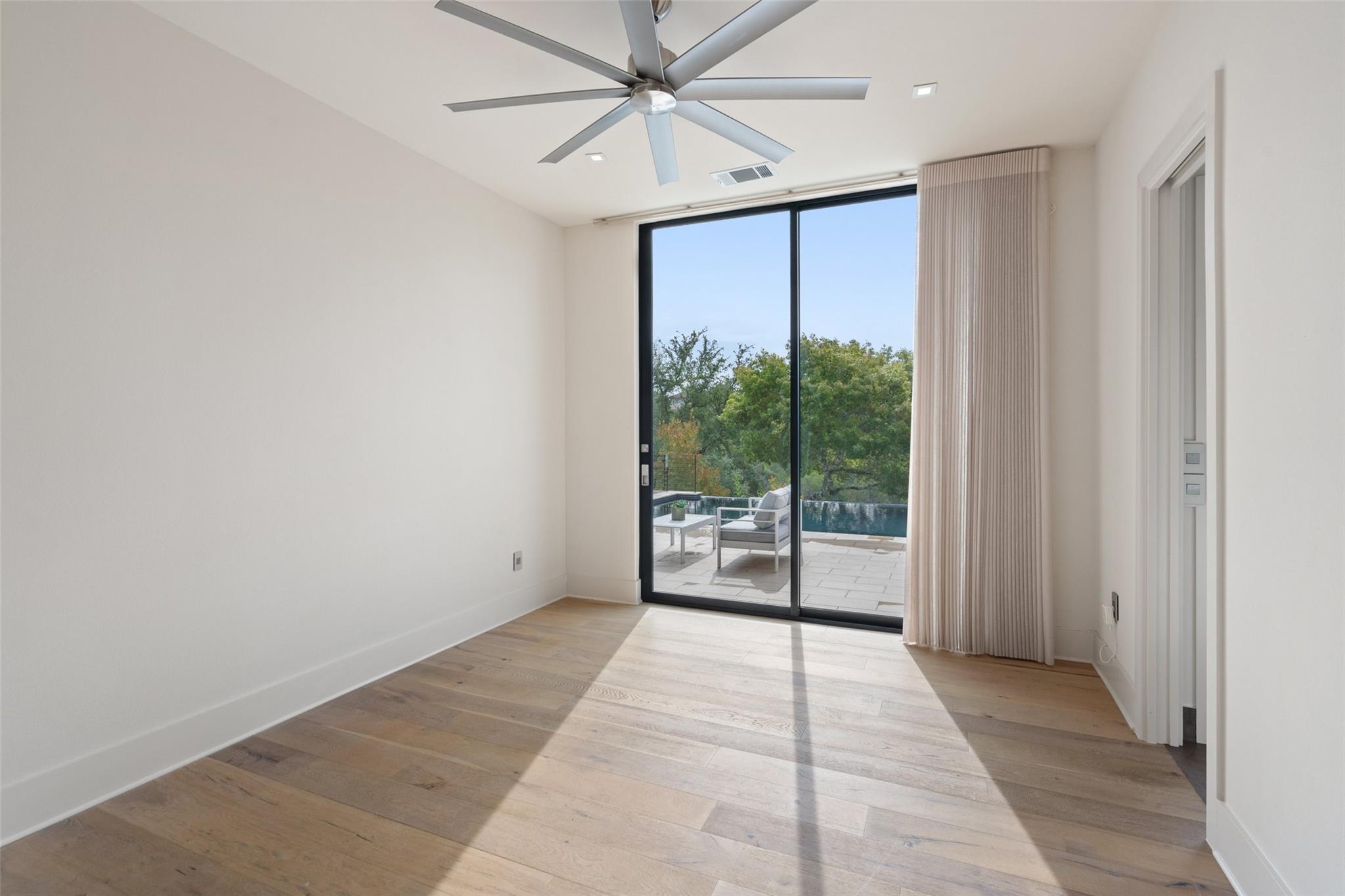 Welcome to this remarkable private, gated estate, nestled at the end of a cul-de-sac with panoramic views that stretch for miles. This property offers a tranquil retreat with its stunning negative edge pool, relaxing spa, and an inviting open concept floorplan. Every inch of this home is adorned with customized, designer details, catering to even the most discerning of tastes. What sets this property apart is its harmonious blend of contemporary design and natural elements. Expansive walls of windows seamlessly integrate the outdoors, flooding the interior with serene views and abundant natural light. The result is a quiet and peaceful sanctuary, perfect for those seeking respite from the hustle and bustle of daily life. The heart of this home is a chef's dream – a well-appointed kitchen featuring top-of-the-line appliances, custom cabinetry, Cesarstone countertops, and a functional layout for both culinary enthusiasts and entertainers alike. Conveniently located on the main floor, the primary suite offers a private getaway for unwinding with a spa-like bath that includes a walk-in shower, stand-alone tub and a closet that will be the envy of your friends. The main level also features a private study and a comfortable guest room which opens to the pool and spa. There are three additional bedrooms upstairs, each with en-suite full baths and walk-in closets along with a third living area providing a versatile space for gathering family and friends. Outside, the landscaping skillfully combines custom design elements with the natural beauty of the Texas hill country. The result is an oasis that feels miles away from the city yet is conveniently close to everything that makes Austin so desirable. Located in the esteemed Eanes ISD and with a low tax rate, this remarkable estate provides the ideal blend of comfort, practicality, tranquility and luxury.