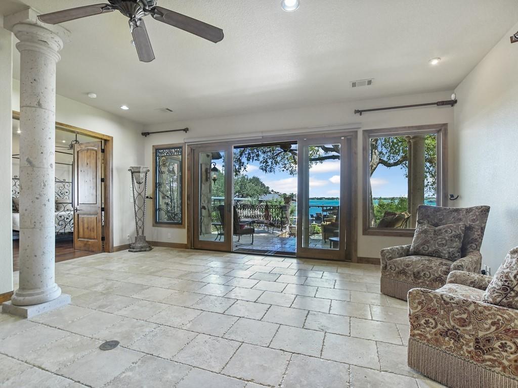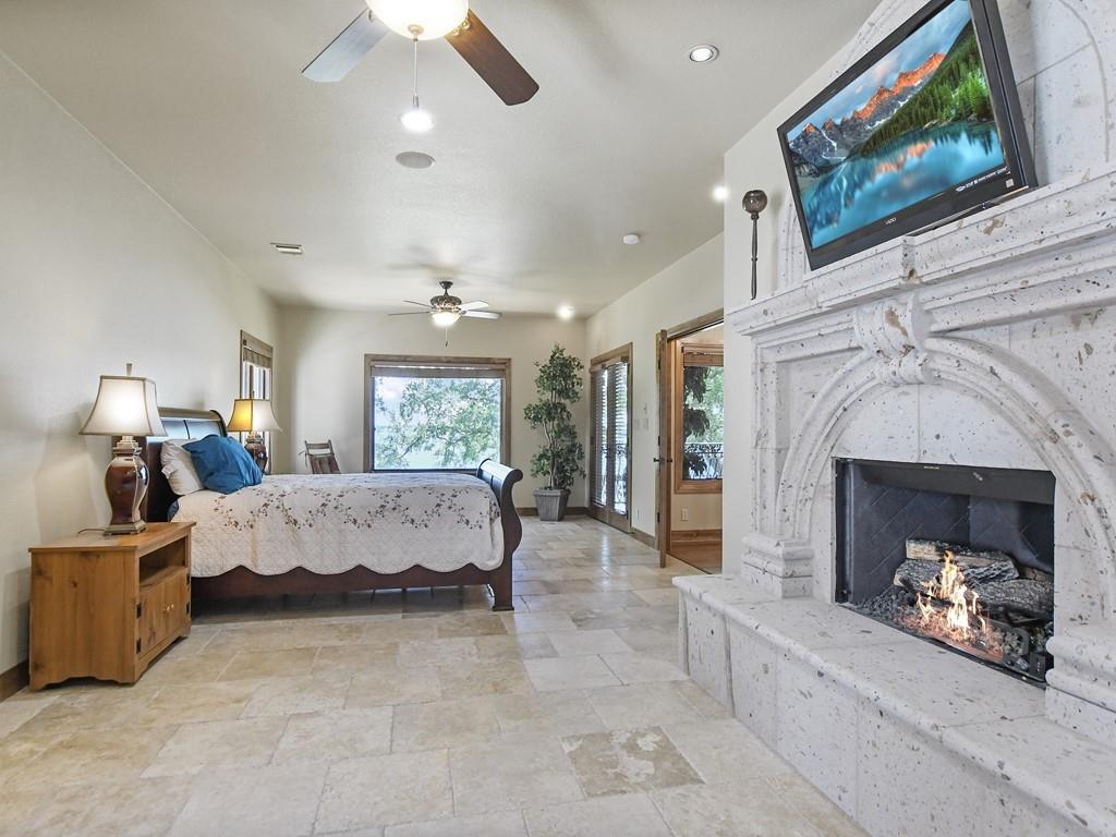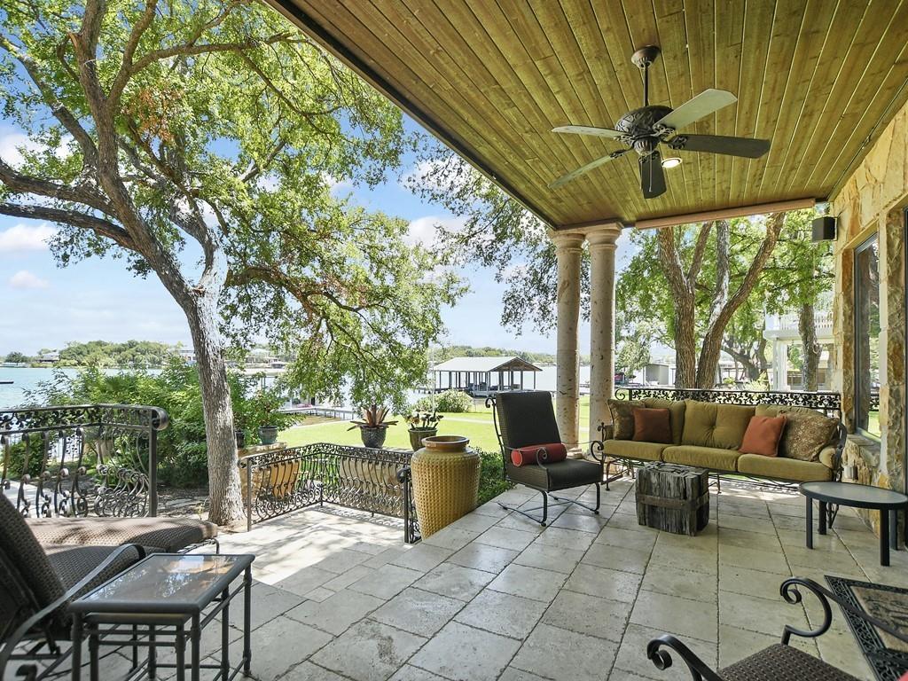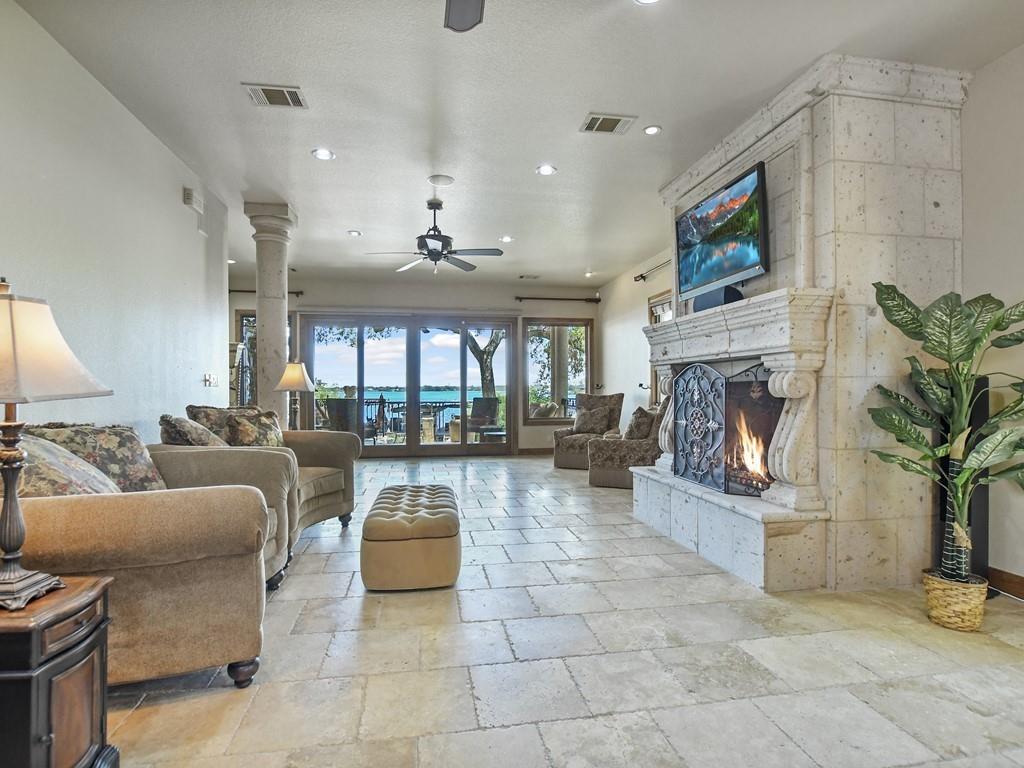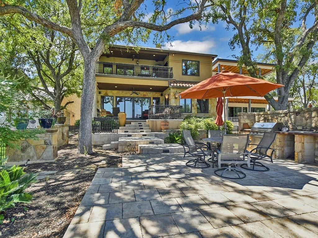 Welcome to 507 Sandy Mountain Drive, a lakefront paradise with unobstructed northeast facing views nestled in an enclave on Lake LBJ. The 3,617 sq. ft. home offers 50 feet of incredible open waterfront, 3 bedrooms, 3.5 baths and architectural details that set it apart from most lake houses. Enter through the custom gates and courtyard then step inside where you're greeted by an open living area that boasts 10' ceilings, a gas fireplace and floor-to-ceiling windows that showcase the lake and hill country vistas. The gourmet kitchen finds stainless steel appliances, granite countertops, a Fisher & Paykel gas range, corner pantry & wine closet with a 100-bottle cooler. The main level master suite boasts patio access and an en-suite bath featuring a walk-in shower, whirlpool bath & California closet system. Two large suites upstairs will be inviting retreats for your guests, each with gas fireplaces, walk-in closets and en-suite baths plus access to the upstairs veranda. Outside you will find multiple outdoor living areas – unwind on the covered patio or entertain family and friends from the outdoor kitchen and seating area where you can enjoy the outdoor fireplace and soothing sounds of the lakeside water feature. The covered boat dock with high performance Trex boards features a covered entertaining area plus a swimming & fishing dock, insect misting system, a covered boat slip & PWC lifts, both with Touchless covers. Savant smart home system with security cameras provides convenience and peace of mind.