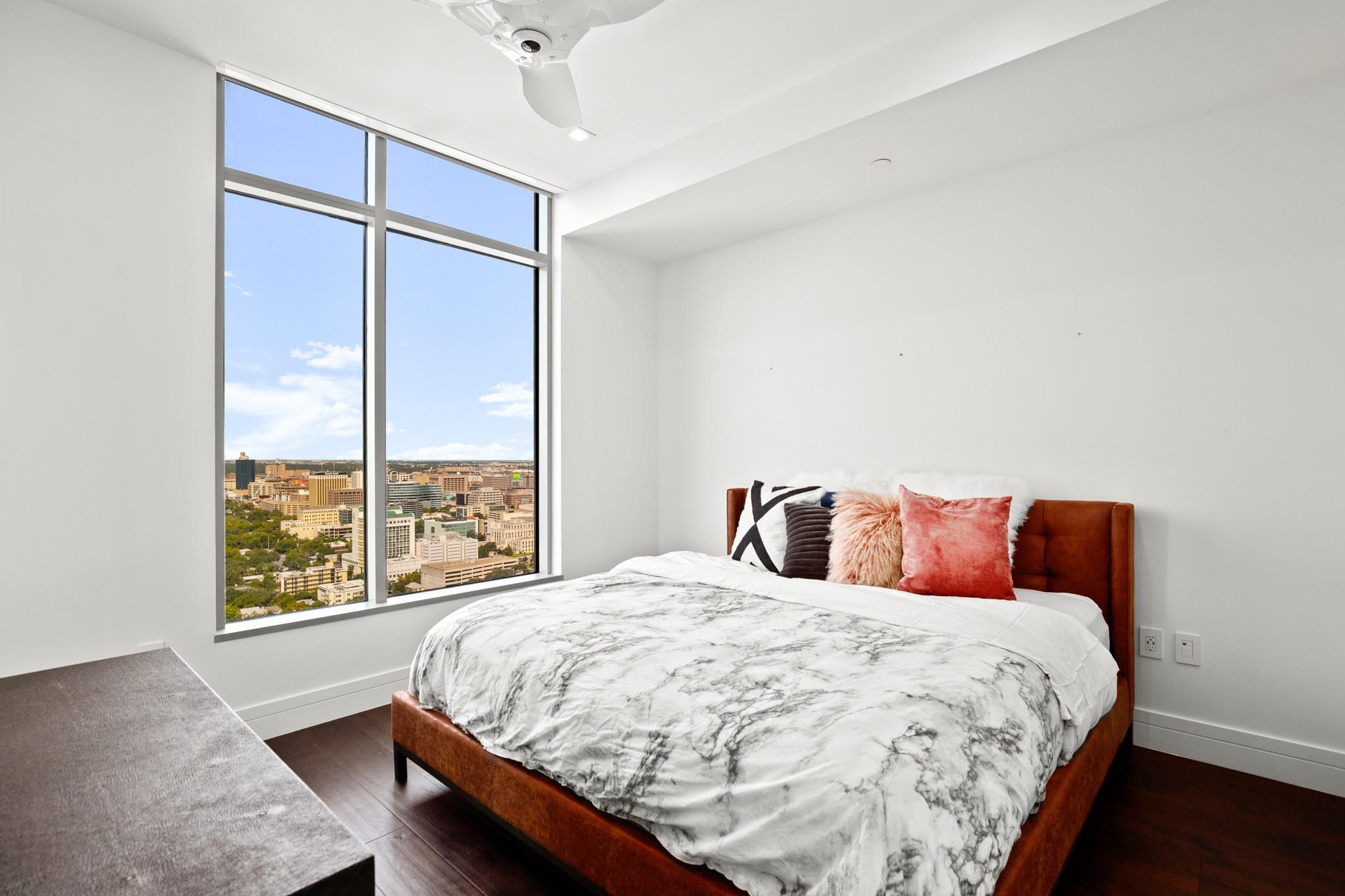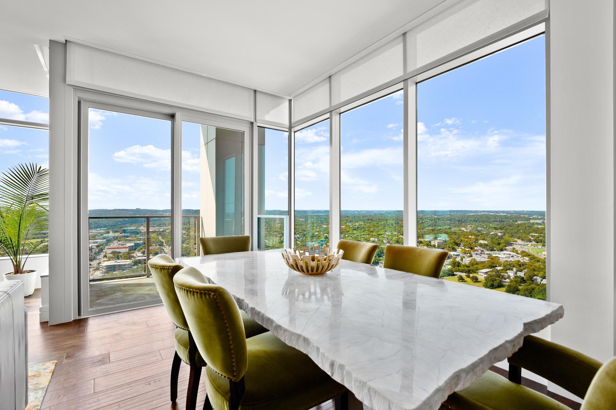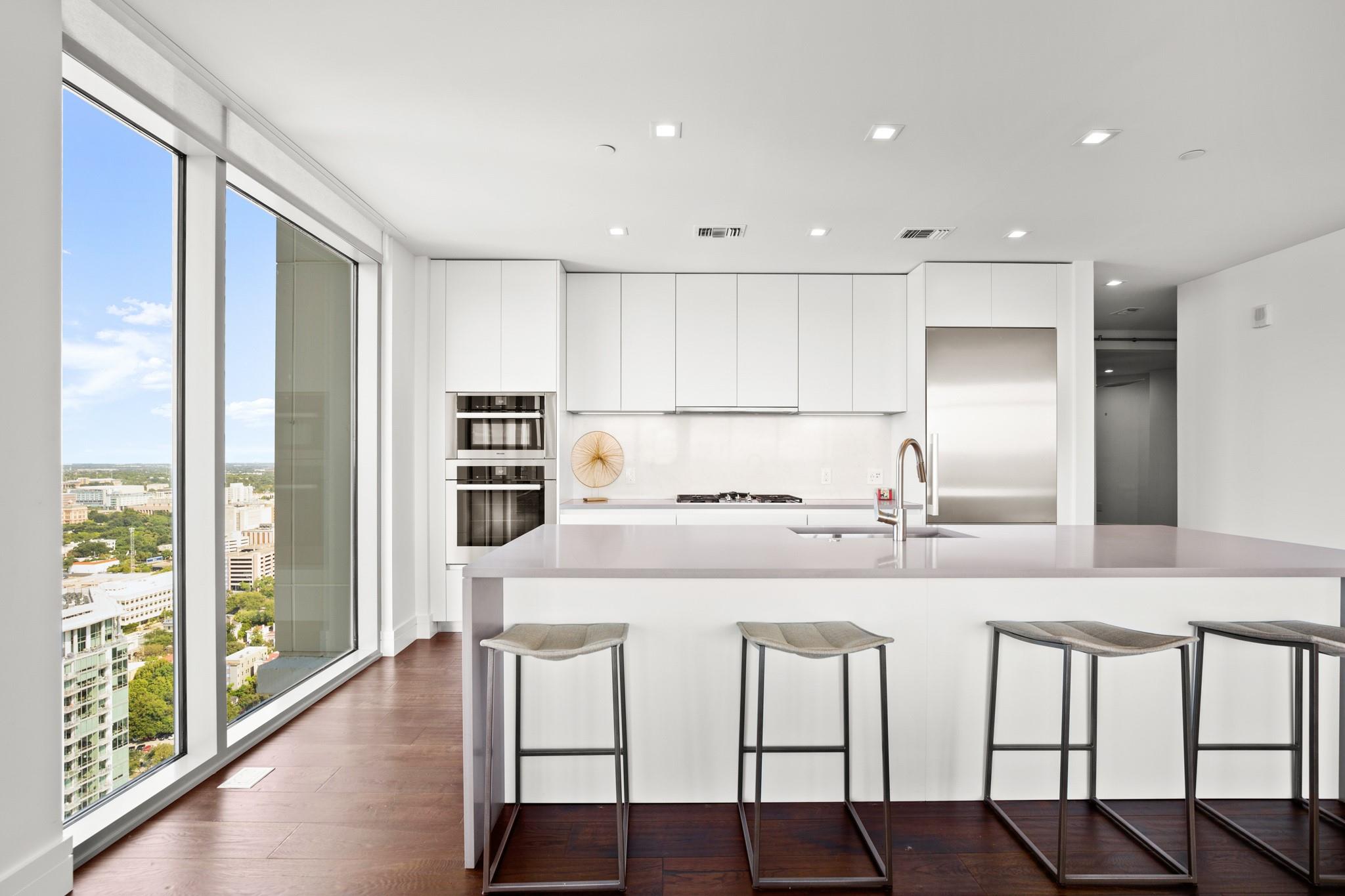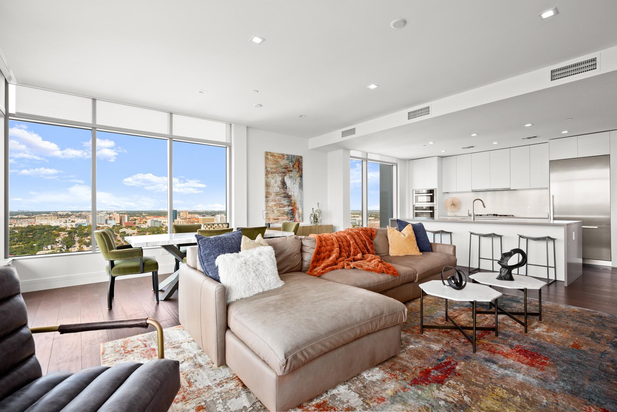 This prestigious high-rise residence at 5th and West is a sanctuary for those who appreciate the best in life and is one of the most highly sought-after high-rise towers in Downtown Austin. The triangular shape of the building was intentionally designed for the permanent Capitol View Corridor, ensuring that residents will enjoy their views for years to come. This building and unit are the epitome of urban living and modern luxury. Elevate your lifestyle in this exceptional 3-bedroom, 3-bathroom residence. From the kitchen, you can enjoy the large living space and dining room with floor-to-ceiling windows. Gorgeous hardwood floors lead you from the common areas of the home to the private bedrooms. The primary suite features large windows, an exceptionally spacious primary bathroom with a double vanity, a walk-in shower, a separate oversized bathtub, and a walk-in closet. The home also includes a large pantry and in-unit laundry closet. The residences were thoughtfully produced for everyday living, rather than just a weekend retreat. Enjoy breathtaking panoramic views from every room, featuring the dazzling lights of downtown, the tranquil river, and the rolling hills of the Texas Hill Country. This is living at its finest, where each glance out your window is a masterpiece of art. While residents have the luxury of not sharing the tower with a hotel and its guests, there are everyday, private amenities in the Fifth & West tower that set it apart from the other high rises downtown that are typically attached to hotels. The 5th and West offers an array of amenities, including a shimmering pool, fitness/yoga studio, indoor dog park, and pet spa, multiple business conference rooms, an event center, and beautifully landscaped common areas. Your new life of luxury begins here!