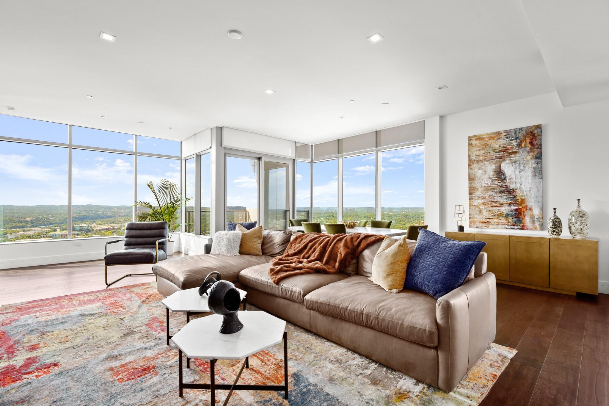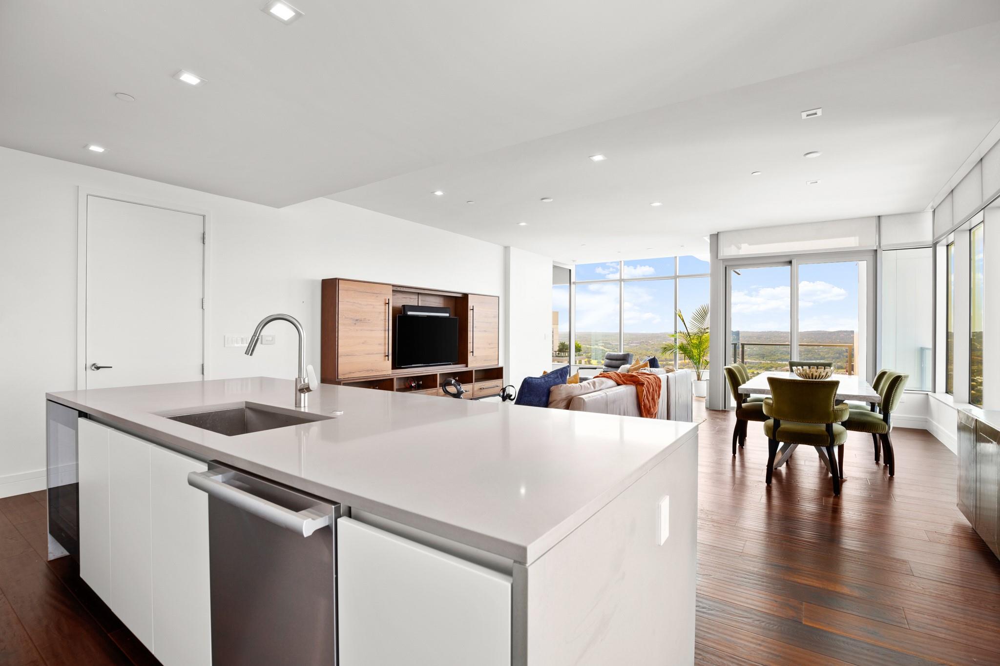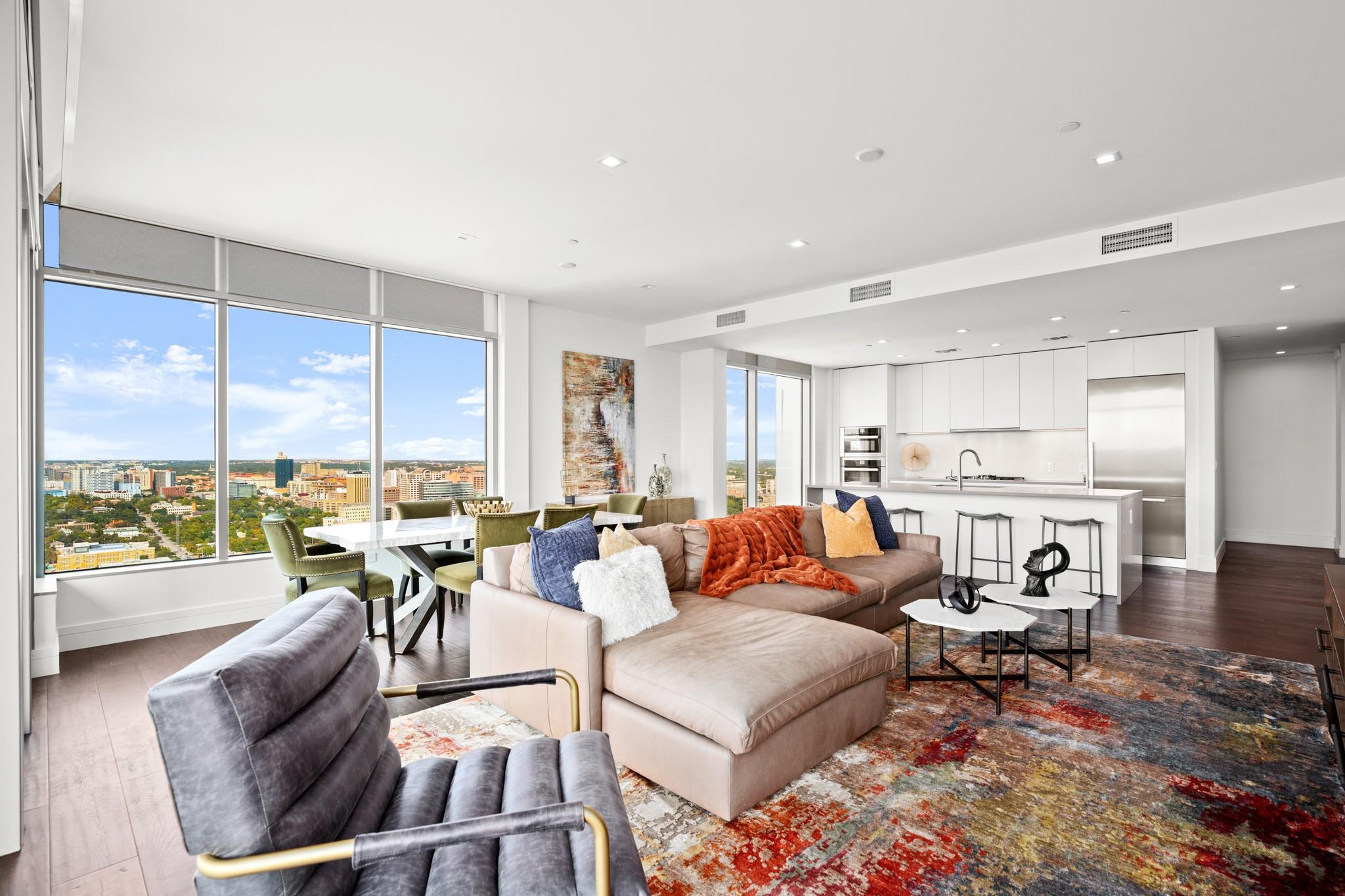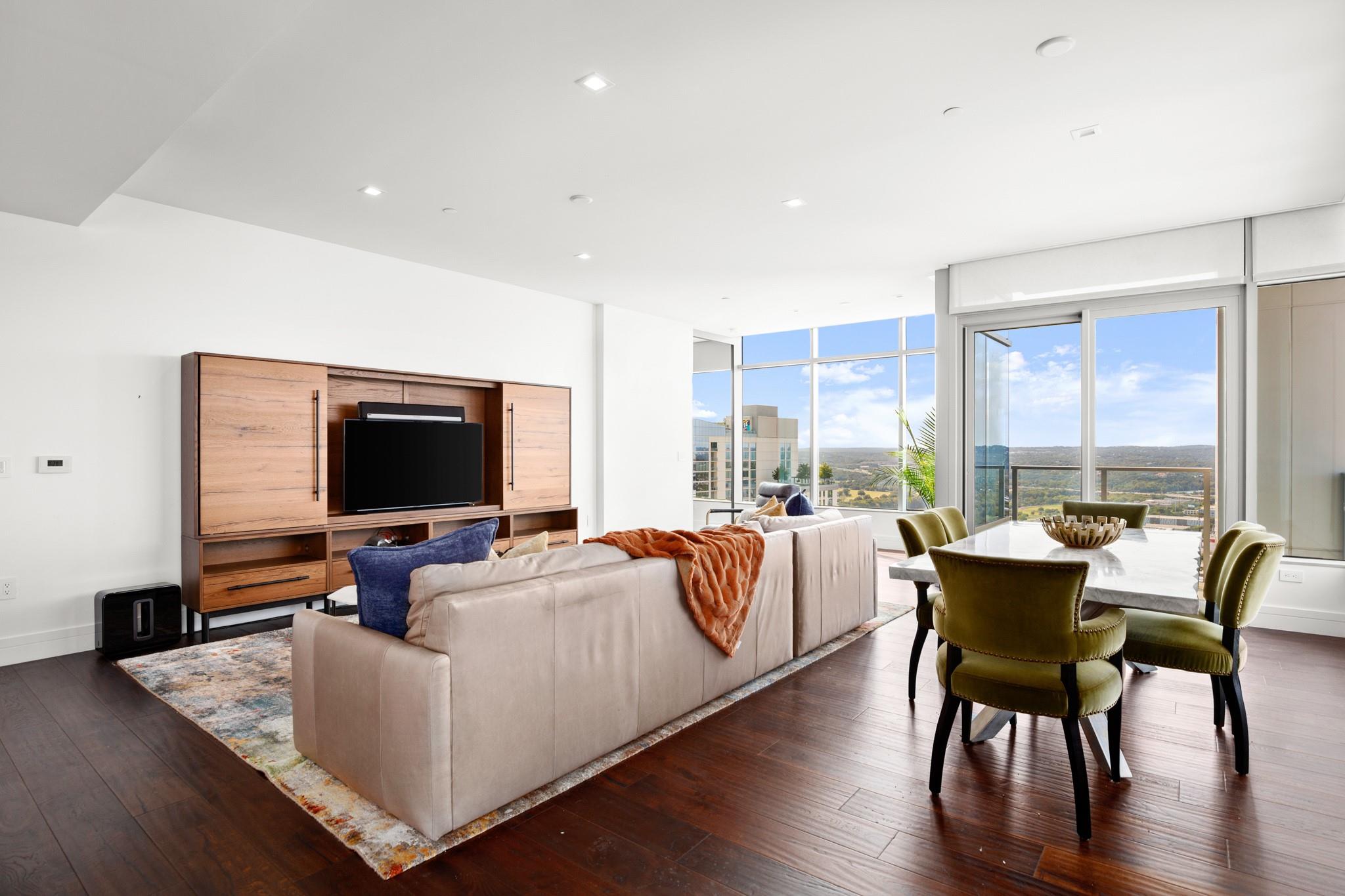 This prestigious high-rise residence at 5th and West is a sanctuary for those who appreciate the best in life and is one of the most highly sought-after high-rise towers in Downtown Austin. The triangular shape of the building was intentionally designed for the permanent Capitol View Corridor, ensuring that residents will enjoy their views for years to come. This building and unit are the epitome of urban living and modern luxury. Elevate your lifestyle in this exceptional 3-bedroom, 3-bathroom residence. From the kitchen, you can enjoy the large living space and dining room with floor-to-ceiling windows. Gorgeous hardwood floors lead you from the common areas of the home to the private bedrooms. The primary suite features large windows, an exceptionally spacious primary bathroom with a double vanity, a walk-in shower, a separate oversized bathtub, and a walk-in closet. The home also includes a large pantry and in-unit laundry closet. The residences were thoughtfully produced for everyday living, rather than just a weekend retreat. Enjoy breathtaking panoramic views from every room, featuring the dazzling lights of downtown, the tranquil river, and the rolling hills of the Texas Hill Country. This is living at its finest, where each glance out your window is a masterpiece of art. While residents have the luxury of not sharing the tower with a hotel and its guests, there are everyday, private amenities in the Fifth & West tower that set it apart from the other high rises downtown that are typically attached to hotels. The 5th and West offers an array of amenities, including a shimmering pool, fitness/yoga studio, indoor dog park, and pet spa, multiple business conference rooms, an event center, and beautifully landscaped common areas. Your new life of luxury begins here!