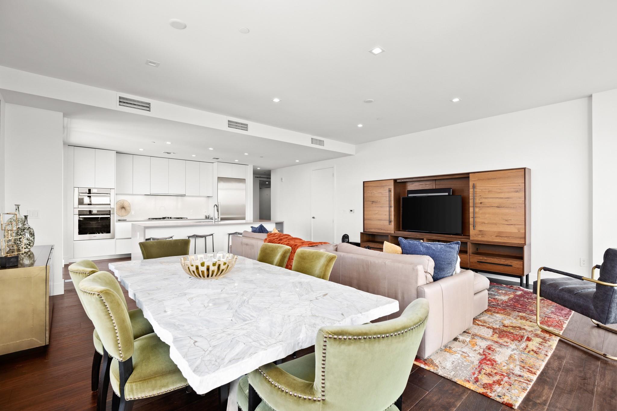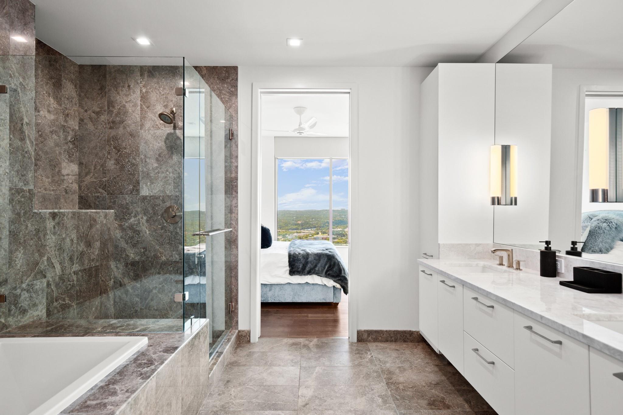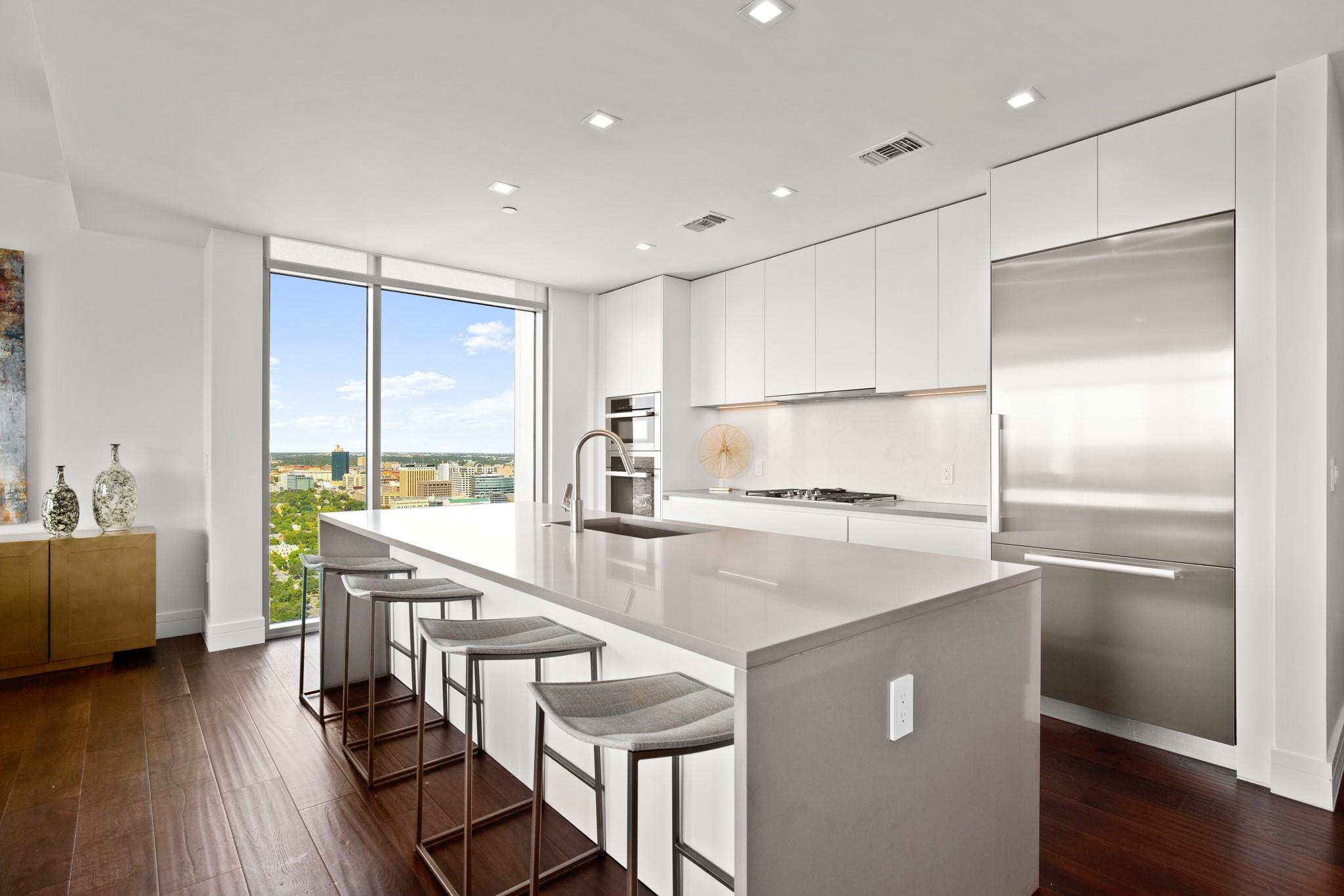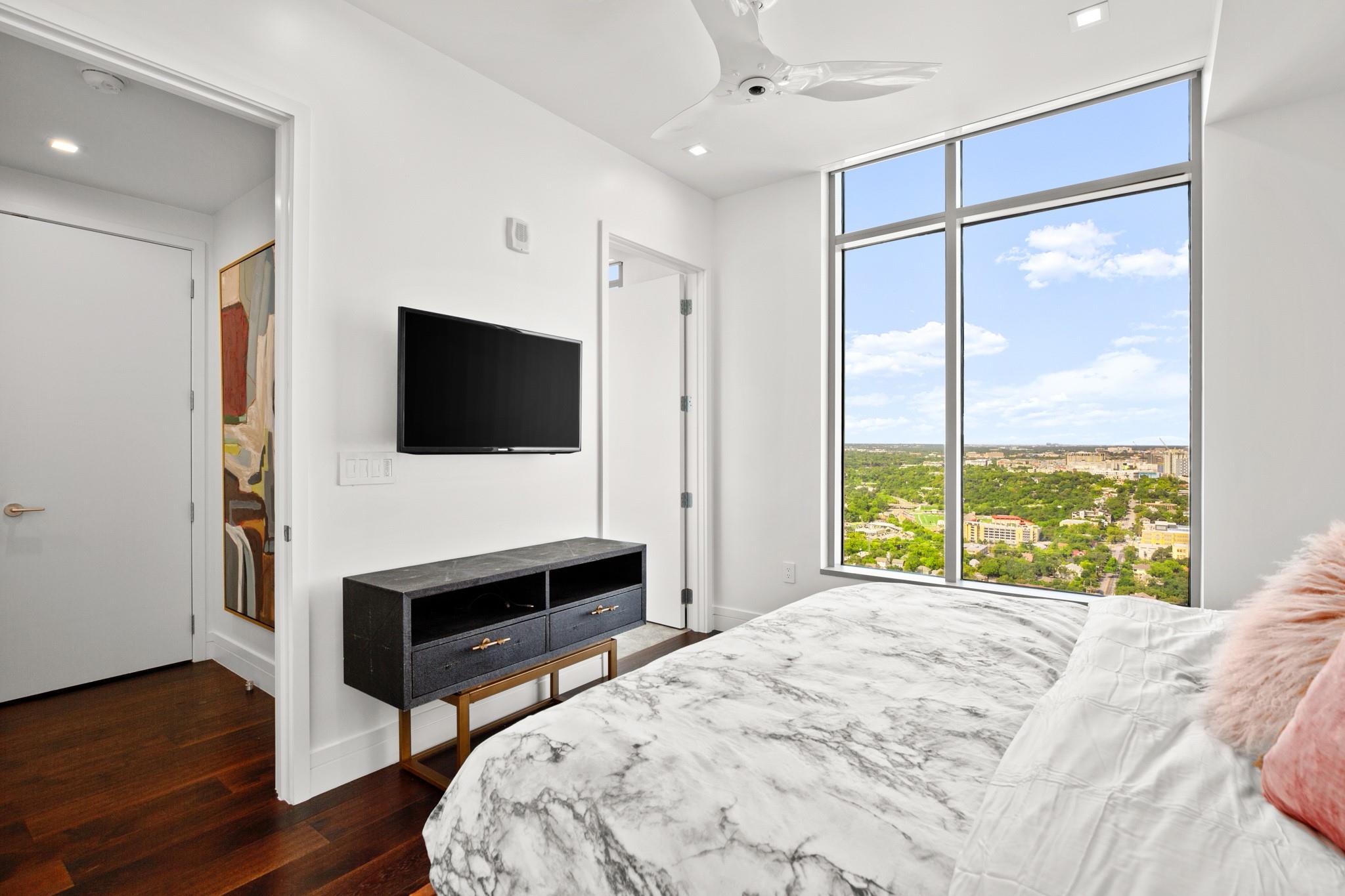 This prestigious high-rise residence at 5th and West is a sanctuary for those who appreciate the best in life and is one of the most highly sought-after high-rise towers in Downtown Austin. The triangular shape of the building was intentionally designed for the permanent Capitol View Corridor, ensuring that residents will enjoy their views for years to come. This building and unit are the epitome of urban living and modern luxury. Elevate your lifestyle in this exceptional 3-bedroom, 3-bathroom residence. From the kitchen, you can enjoy the large living space and dining room with floor-to-ceiling windows. Gorgeous hardwood floors lead you from the common areas of the home to the private bedrooms. The primary suite features large windows, an exceptionally spacious primary bathroom with a double vanity, a walk-in shower, a separate oversized bathtub, and a walk-in closet. The home also includes a large pantry and in-unit laundry closet. The residences were thoughtfully produced for everyday living, rather than just a weekend retreat. Enjoy breathtaking panoramic views from every room, featuring the dazzling lights of downtown, the tranquil river, and the rolling hills of the Texas Hill Country. This is living at its finest, where each glance out your window is a masterpiece of art. While residents have the luxury of not sharing the tower with a hotel and its guests, there are everyday, private amenities in the Fifth & West tower that set it apart from the other high rises downtown that are typically attached to hotels. The 5th and West offers an array of amenities, including a shimmering pool, fitness/yoga studio, indoor dog park, and pet spa, multiple business conference rooms, an event center, and beautifully landscaped common areas. Your new life of luxury begins here!