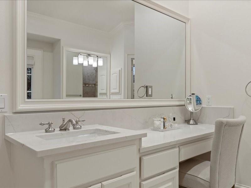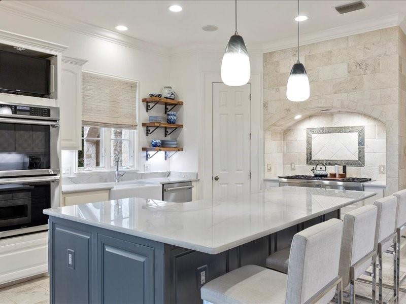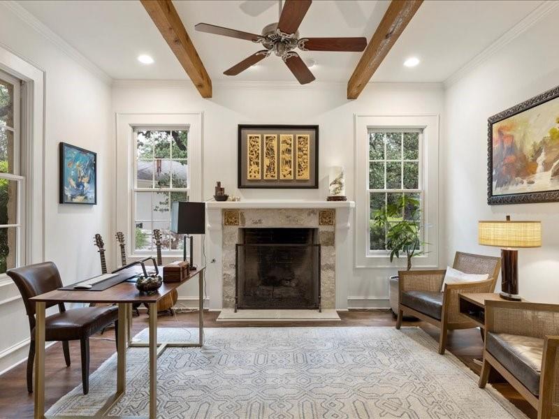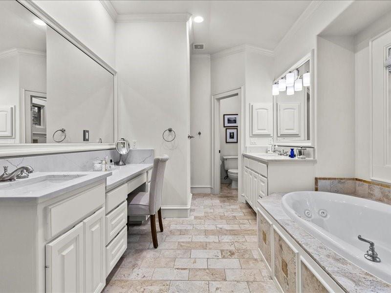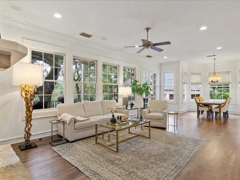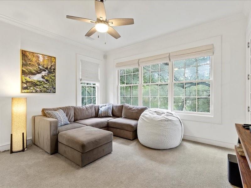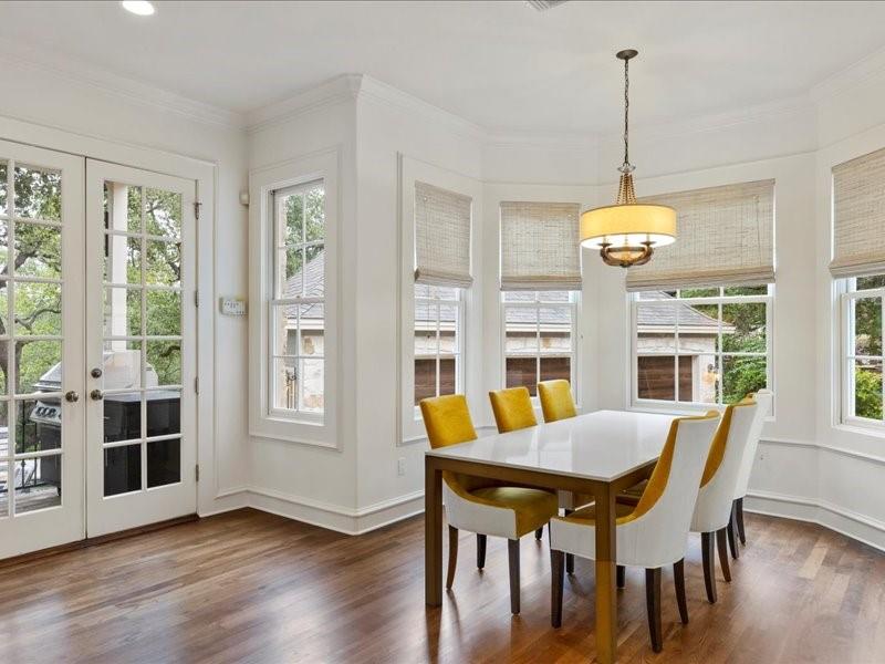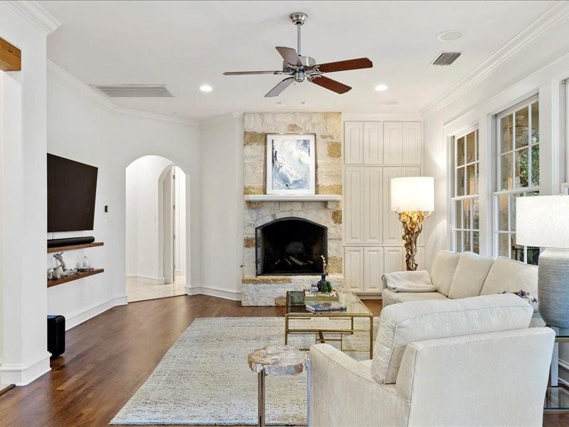 This Westlake Charmer is a contemporary GEM offering the luxury of space and serenity, nestled on a private, sprawling, amazing .81-acre lot at the heart of cul-de-sac. Boasting approximately 4000 sq ft of living area, it's akin to a private treehouse retreat, exuding both elegance and tranquility. From the moment you step inside, the meticulous care, attention to detail & 20 ft ceilings feel very grand. The open floorplan seamlessly connects the great room, dining area, and kitchen, creating inviting space for gatherings & entertainment. Large bedrooms, wide hallways, and ample storage contribute to the sense of spaciousness & functionality. The updated kitchen is a chef's delight, featuring quartzite countertops, top-of-the-line Thermador appliances, & 48” range top. A bonus alcove serves as a versatile space for music and computer use, while a cedar closet adds practicality. The main floor hosts a large office/den with a cozy wood-burning fireplace, perfect for those quiet evenings. Additionally, a flexible bedroom/living area offers the potential for an in-law suite w/private door to patio. Upstairs, a flex bedroom adjacent to primary suite provides endless possibilities--nursery, sitting room, study, crafts room, or exercise area. All bedrooms generously sized ensure comfort. This home boasts numerous extras, including 2 full-sized wood-burning masonry fireplaces, wood windows, & porte-cochere for convenient access to kitchen. A detached three-car garage, fully insulated with epoxy flooring, offers abundant attic storage. Wired for A/V & Cat V internet, with speakers both indoors & outdoors, it's equipped for modern living. Outside, the expansive backyard captivates with lush landscaping, a tranquil dry creek, and an inviting pool and jacuzzi—creating a haven for relaxation. With its thoughtful design, impeccable maintenance, & abundance of amenities, this property offers nurturing environment for a growing family to thrive. Epitome of contemporary living.