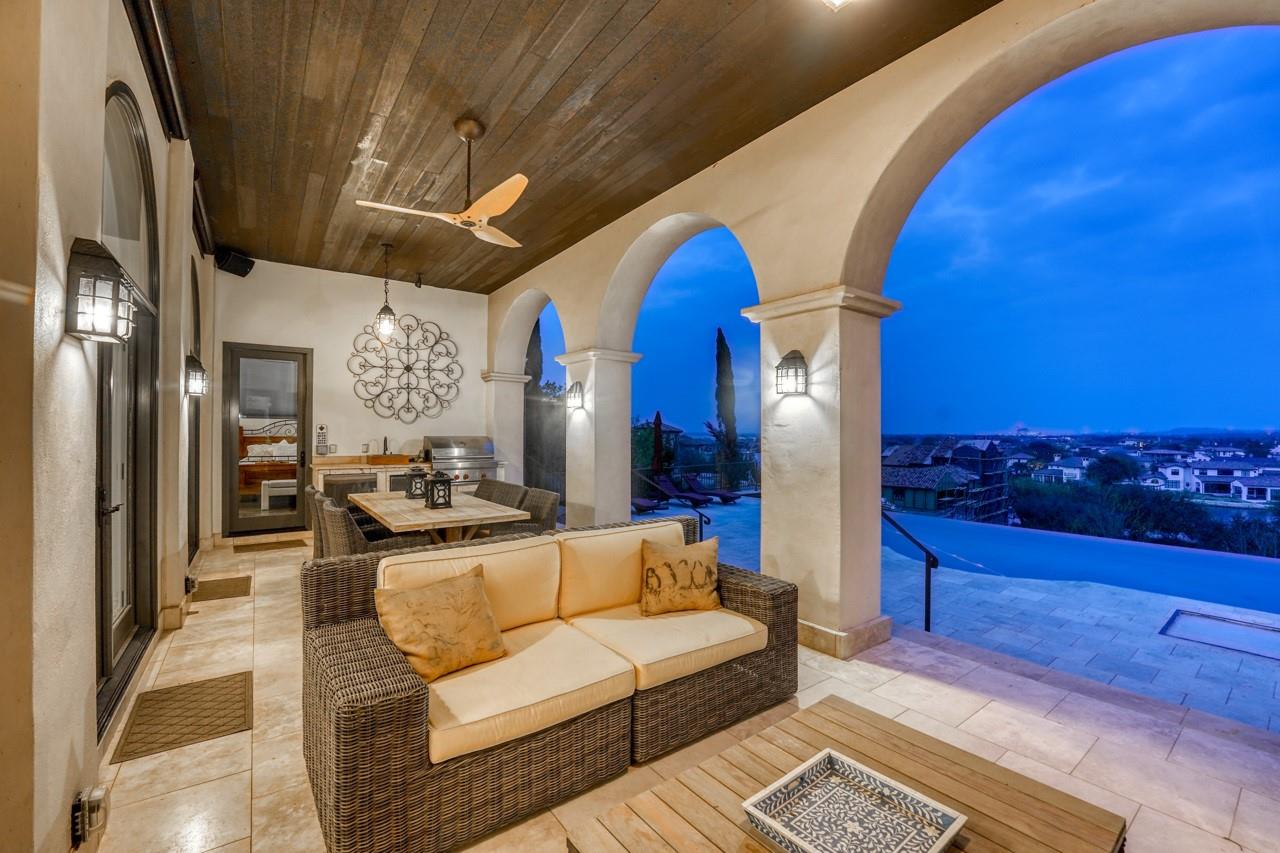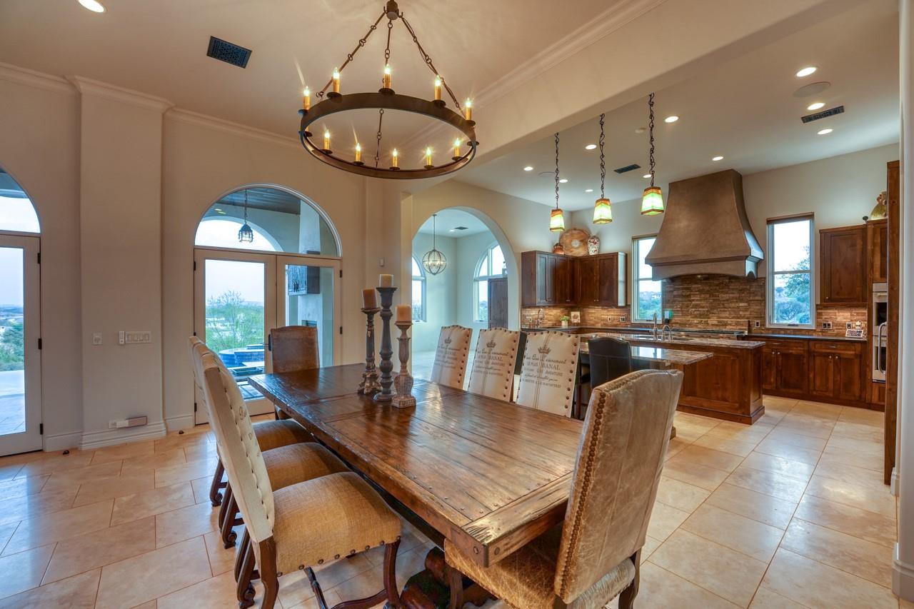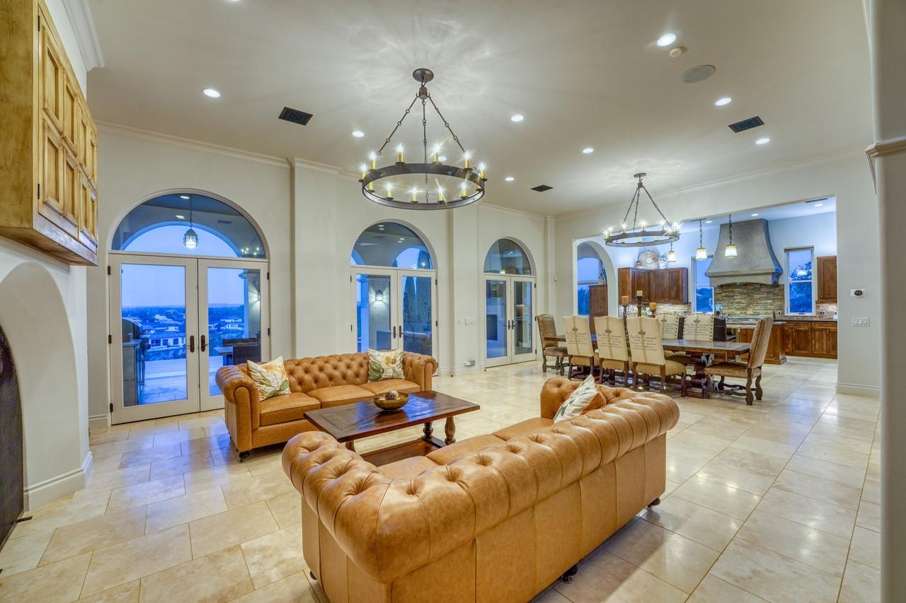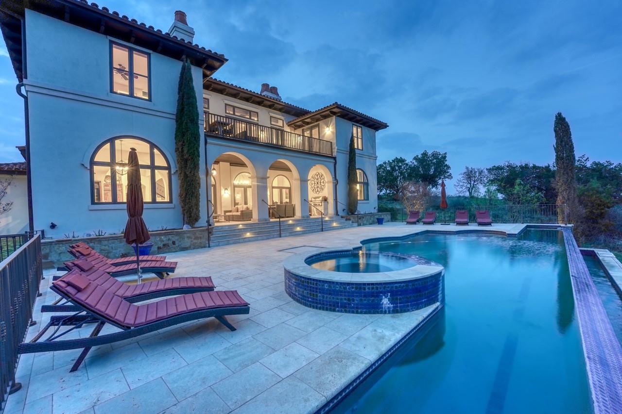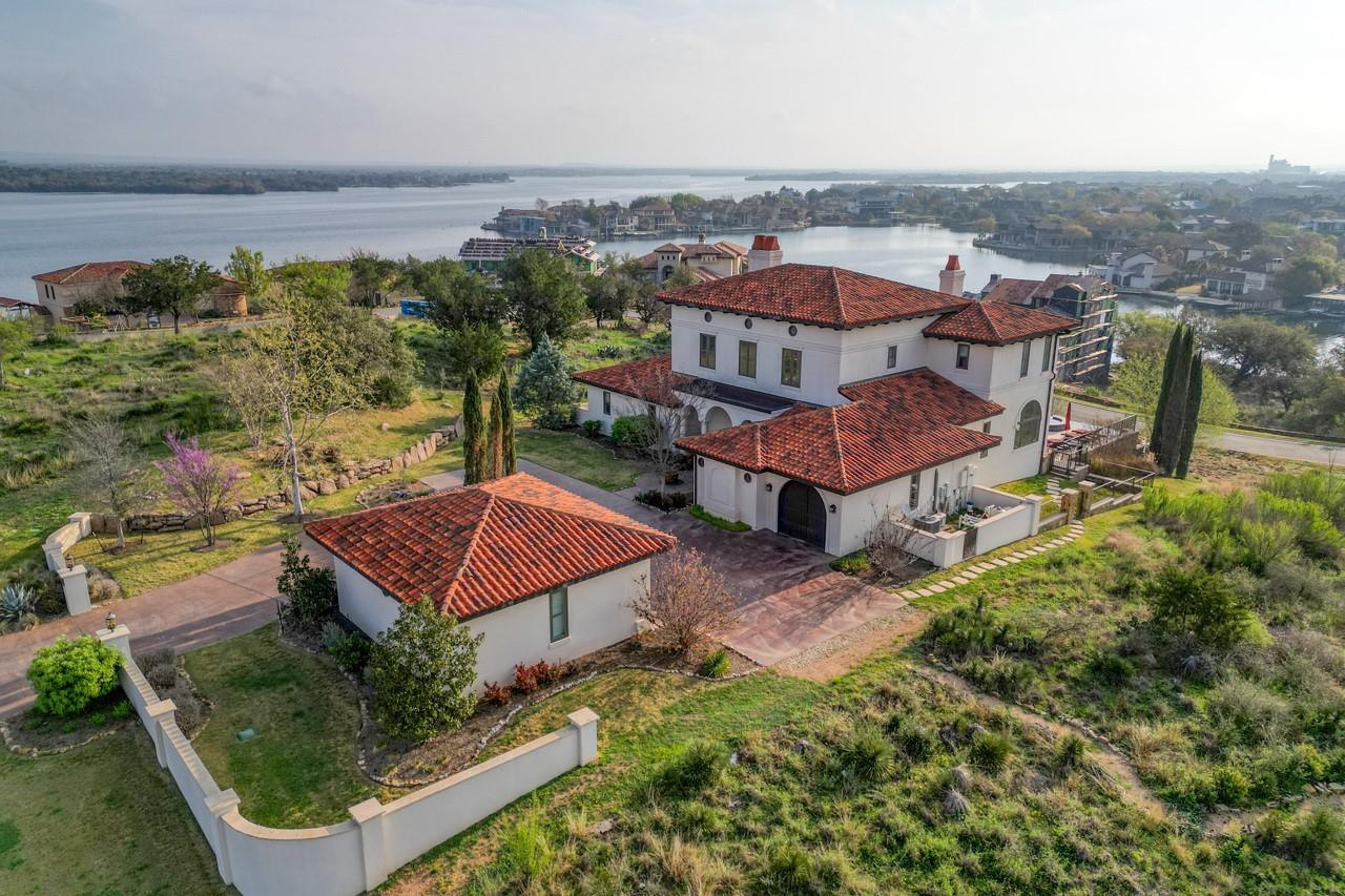 A jewel on the hillside of Lago Escondido overlooking the sparkling waters of Lake LBJ, this majestic 4-bedroom Mediterranean-style home blends modern luxury with natural beauty. An entertainer's dream, this stunning retreat offers a heated infinity pool with a cascading waterfall, sweeping views from the veranda and balcony, an elegant primary suite with spa bathroom, and 3 additional bedrooms (including a bunk room that sleeps six) to host family and friends galore in an exclusive golf & lake-club community! Additionally, comes fully furnished with few exceptions. An open, airy floor plan invites you to enjoy the best of luxury-lake life with soaring ceilings, welcoming fireplaces, and natural sunlight, making it the perfect place to unwind after a day spent golfing or boating. The gourmet kitchen is a chef's dream, with top-of-the-line appliances, granite countertops, a wine refrigerator, and ample storage space, while the dining area and breakfast nook boast panoramic lake views. A detached boat house offers direct access to the water just 500 yards from your front door, making it easy to store and launch your watercraft, or simply fish from the dock. Whether you're looking for a peaceful escape from the hustle and bustle of everyday life or an action-packed adventure, this lakeside gem offers everything to make unforgettable memories. Membership into the private club, Escondido, is required for all Lago Escondido homeowners. SELLER will pay transfer fee.