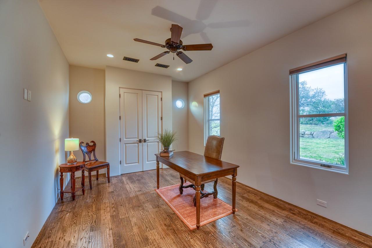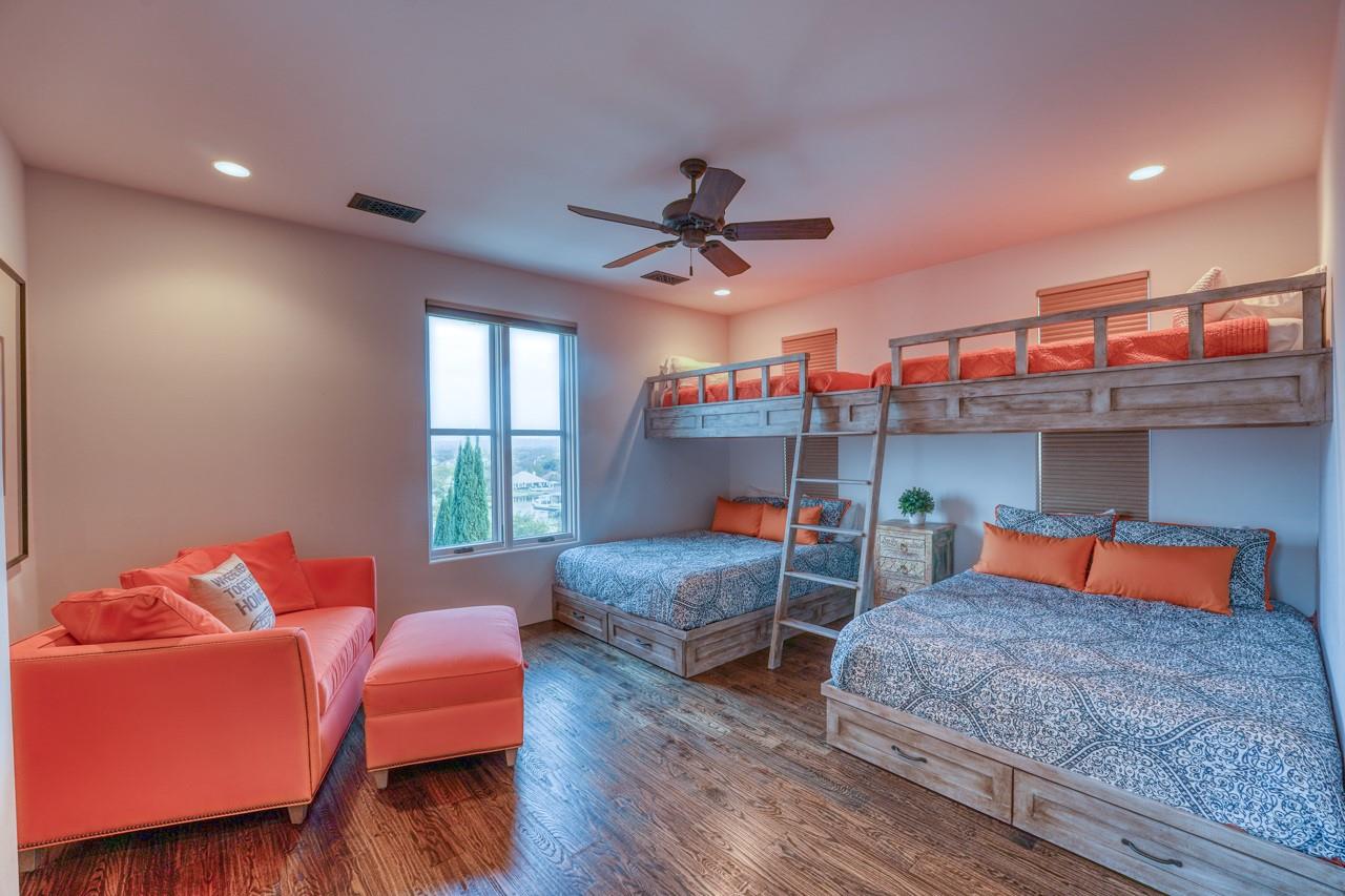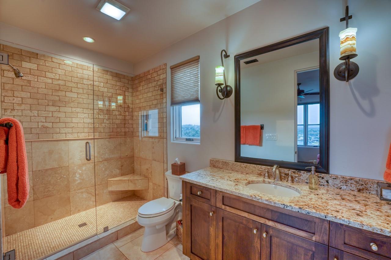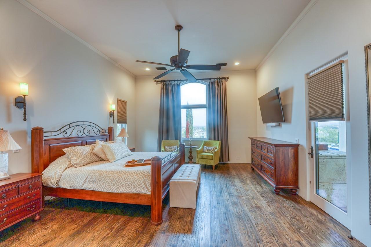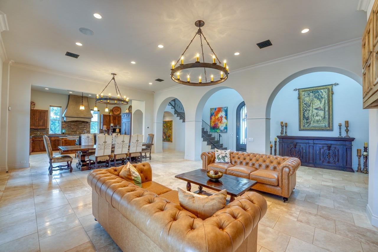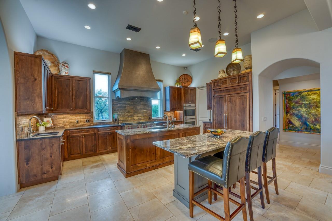 A jewel on the hillside of Lago Escondido overlooking the sparkling waters of Lake LBJ, this majestic 4-bedroom Mediterranean-style home blends modern luxury with natural beauty. An entertainer's dream, this stunning retreat offers a heated infinity pool with a cascading waterfall, sweeping views from the veranda and balcony, an elegant primary suite with spa bathroom, and 3 additional bedrooms (including a bunk room that sleeps six) to host family and friends galore in an exclusive golf & lake-club community! Additionally, comes fully furnished with few exceptions. An open, airy floor plan invites you to enjoy the best of luxury-lake life with soaring ceilings, welcoming fireplaces, and natural sunlight, making it the perfect place to unwind after a day spent golfing or boating. The gourmet kitchen is a chef's dream, with top-of-the-line appliances, granite countertops, a wine refrigerator, and ample storage space, while the dining area and breakfast nook boast panoramic lake views. A detached boat house offers direct access to the water just 500 yards from your front door, making it easy to store and launch your watercraft, or simply fish from the dock. Whether you're looking for a peaceful escape from the hustle and bustle of everyday life or an action-packed adventure, this lakeside gem offers everything to make unforgettable memories. Membership into the private club, Escondido, is required for all Lago Escondido homeowners. SELLER will pay transfer fee.