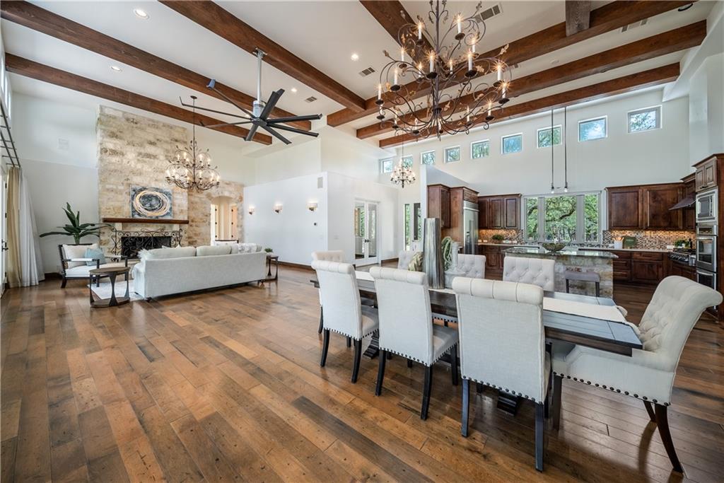 | Interior Features | Bookcases, Breakfast Bar, Built-in Features, Cedar Closet(s), Ceiling Fan(s), Beamed Ceilings, High Ceilings, Vaulted Ceiling(s), Central Vacuum, Chandelier, Granite Counters, Double Vanity, Entrance Foyer, French Doors, High Speed Internet, Interior Steps, Kitchen Island, Multiple Living Areas, Open Floorplan, Pantry, Primary Bedroom on Main, Recessed Lighting, Soaking Tub, Storage, Track Lighting, Two Primary Closets, Walk-In Closet(s) | |