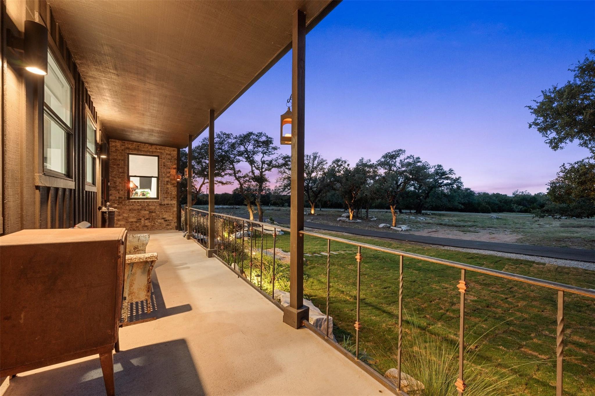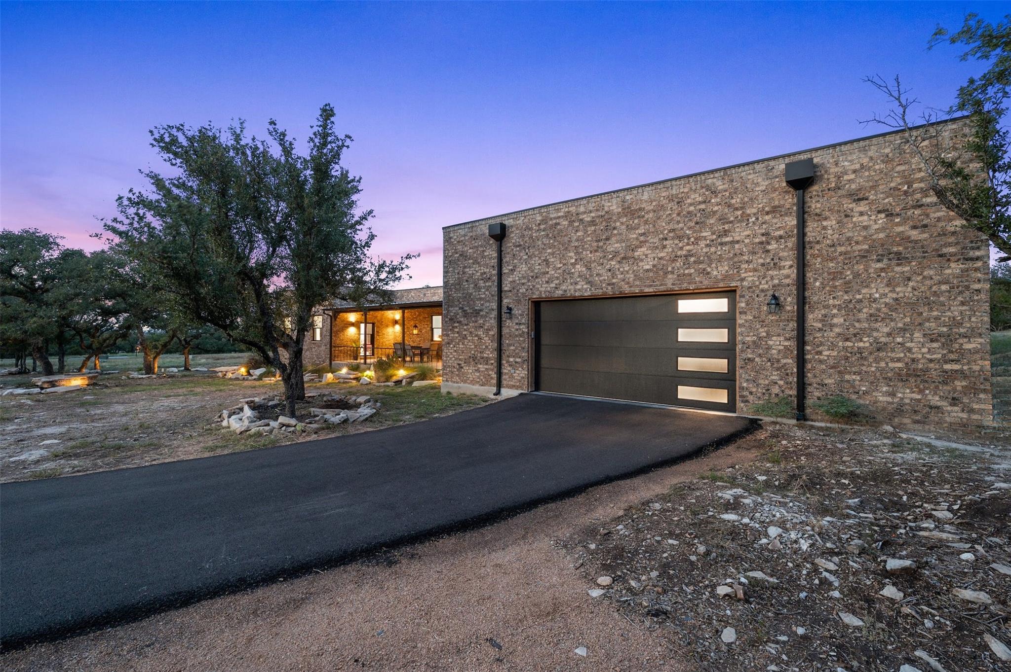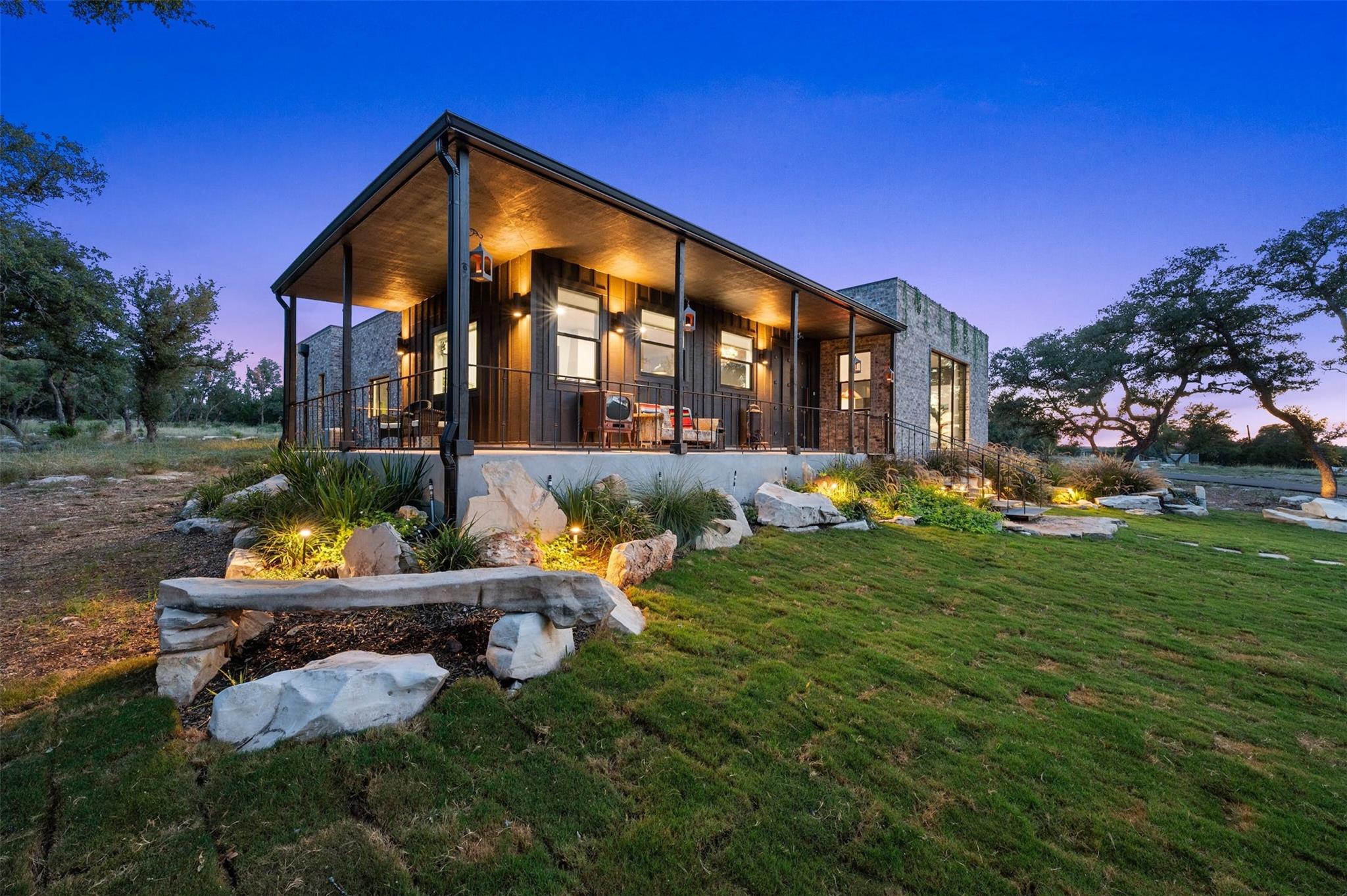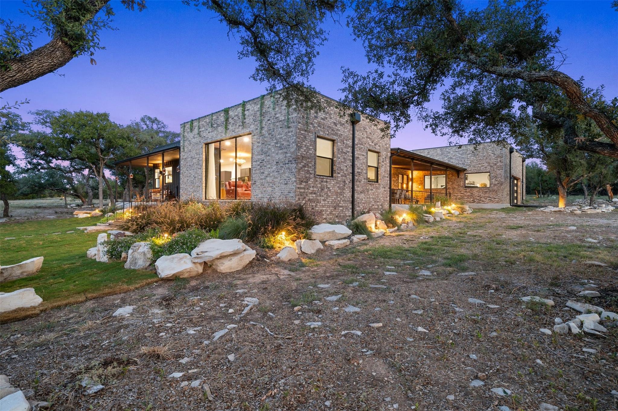 Custom-built dream home nestled on 5.57 breathtaking acres within the coveted Double Horn gated community! Built in 2023 with meticulous attention to detail, this residence embodies the essence of quality craftsmanship & modern design. From the moment you arrive, you'll be captivated by the home's stunning mid-century modern exterior, framed entirely with brick & adorned with enchanting LED landscape lighting & a welcoming covered front porch with Cantera iron doors. The lightly-lived-in interior boasts 3 spacious bedrooms, 2 bathrooms, & a generously sized great room that seamlessly connects the living room with the kitchen, featuring exquisite white oak wood flooring. The gourmet kitchen is a culinary masterpiece, featuring a massive solid walnut kitchen island with a convenient breakfast bar, an abundance of shaker cabinetry enhanced with sleek quartz countertops, & top-of-the line appliances, including an electric cooktop with a stylish wood vent hood. Retreat to the primary suite, a haven of relaxation with recent high-end carpeting, expansive windows that bathe the room in natural light, a walk-in closet, & an opulent en-suite bathroom. The primary bathroom is a spa-like retreat, featuring a modern dual vanity, a deep soaking tub adorned with a quartz surround, & an open walk-in shower that invites you to unwind & rejuvenate. Whether you choose to explore the vast 5.57-acre property or simply relax on the front porch or covered back patio, this home offers a wealth of opportunities to savor the outdoors. 3-car garage with 2 garage doors, a storage closet, & epoxy floors. The TPO roof, double-pane argon gas windows, & spring insulation throughout the home provide substantial energy savings. Exceptional amenities including a pool, playground, sports courts, pond, scenic trails, & an open-air pavilion. Convenient access to nearby Marble Falls, just 15 minutes away, or Bee Cave & Lakeway, a mere 30-minute drive. Schedule a showing today!