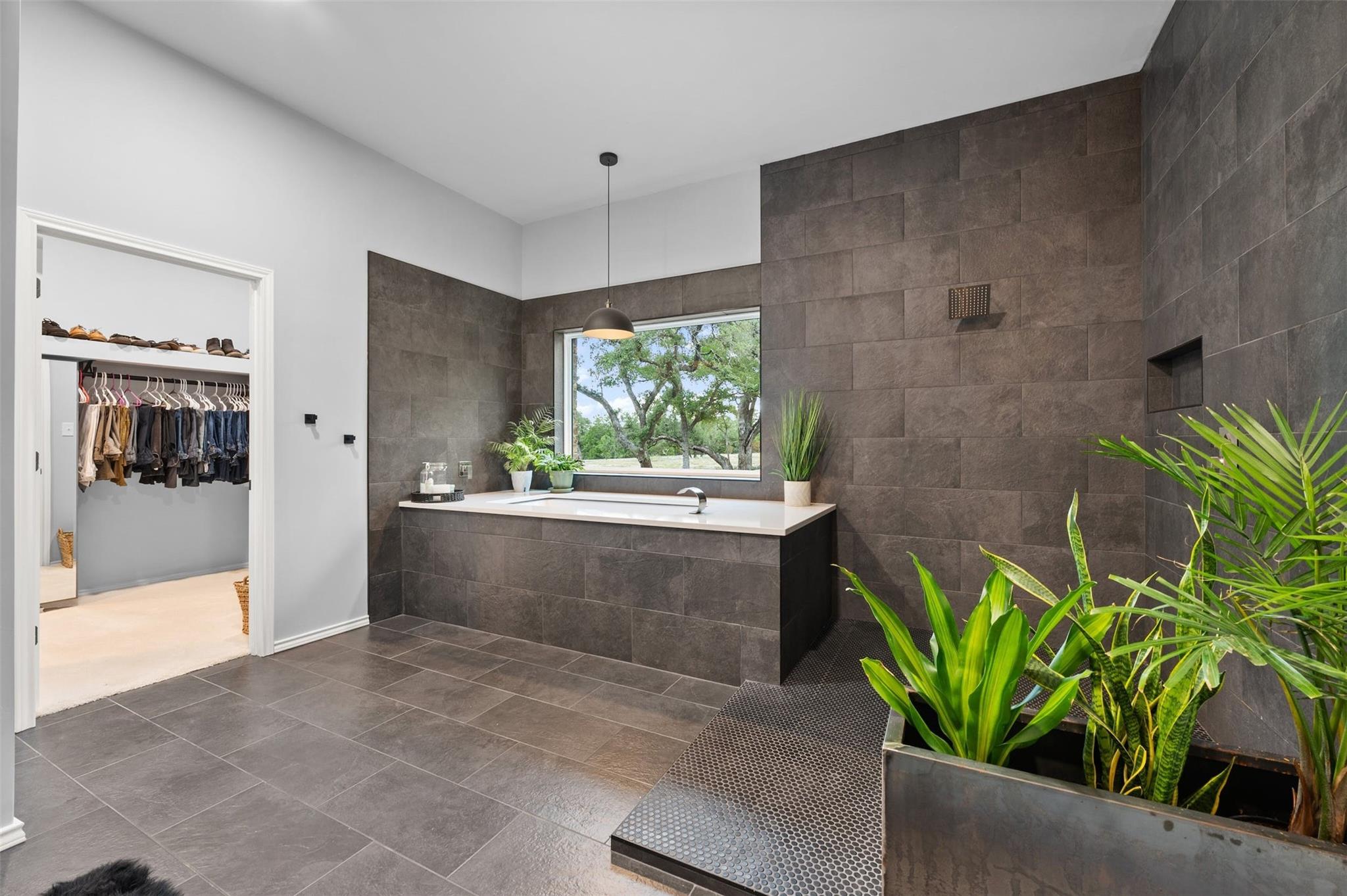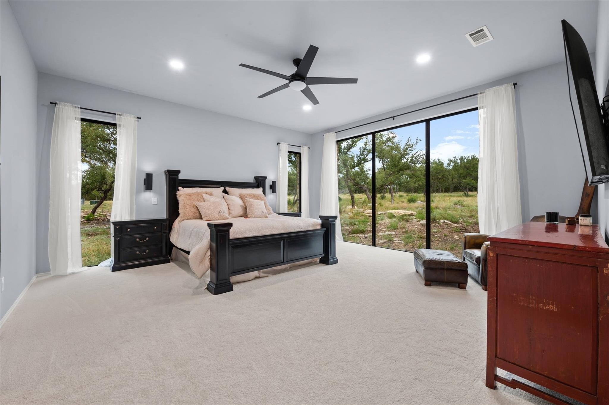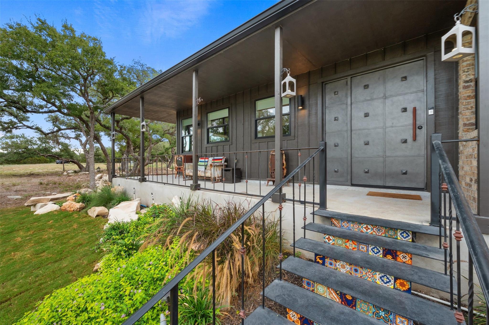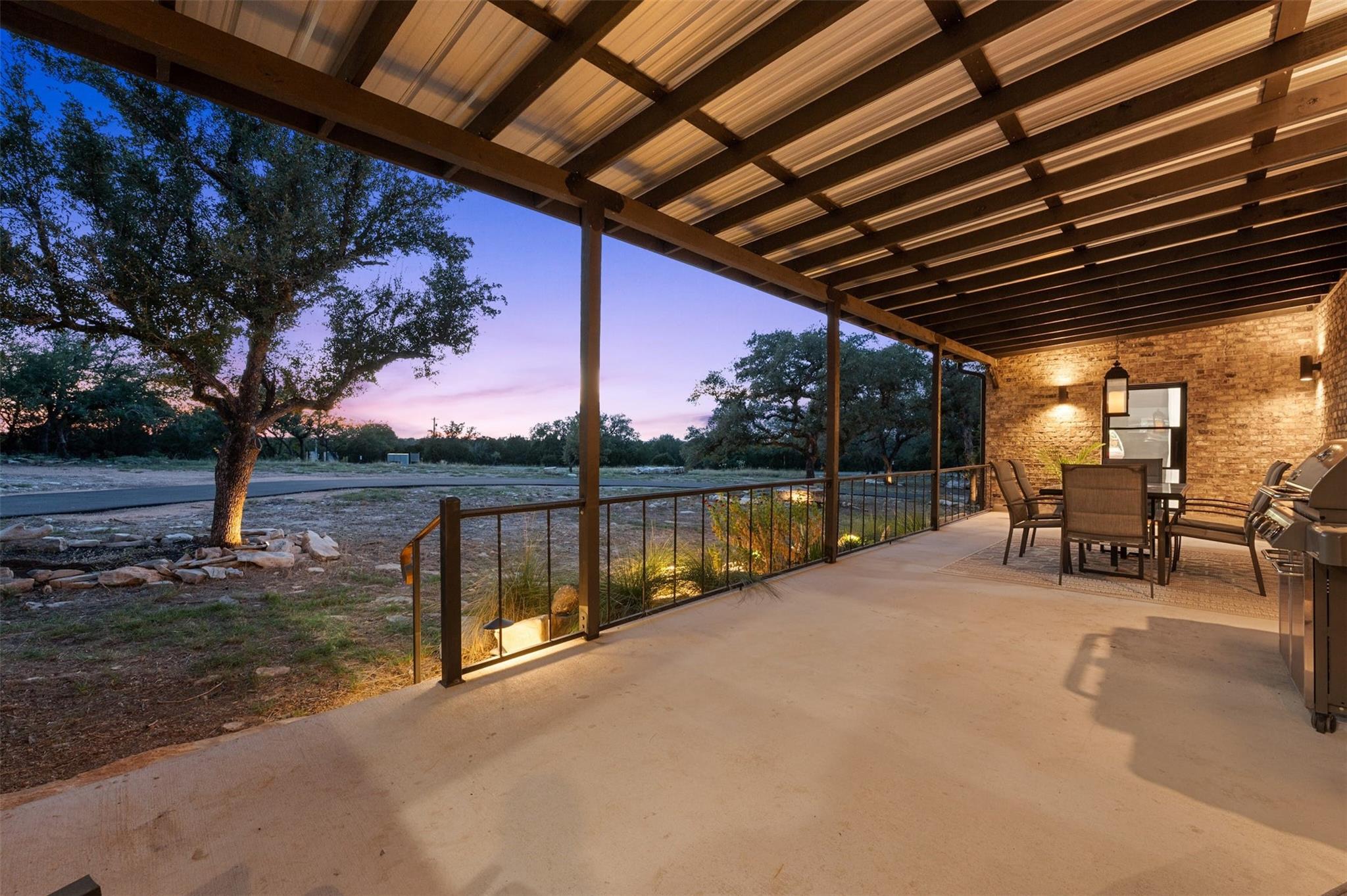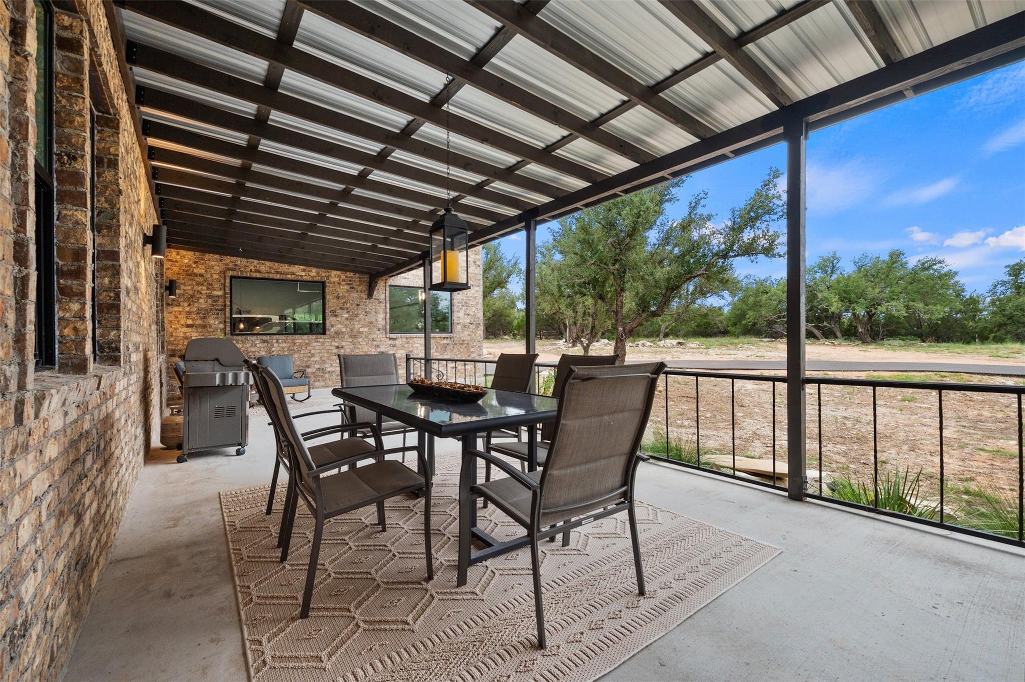 Custom-built dream home nestled on 5.57 breathtaking acres within the coveted Double Horn gated community! Built in 2023 with meticulous attention to detail, this residence embodies the essence of quality craftsmanship & modern design. From the moment you arrive, you'll be captivated by the home's stunning mid-century modern exterior, framed entirely with brick & adorned with enchanting LED landscape lighting & a welcoming covered front porch with Cantera iron doors. The lightly-lived-in interior boasts 3 spacious bedrooms, 2 bathrooms, & a generously sized great room that seamlessly connects the living room with the kitchen, featuring exquisite white oak wood flooring. The gourmet kitchen is a culinary masterpiece, featuring a massive solid walnut kitchen island with a convenient breakfast bar, an abundance of shaker cabinetry enhanced with sleek quartz countertops, & top-of-the line appliances, including an electric cooktop with a stylish wood vent hood. Retreat to the primary suite, a haven of relaxation with recent high-end carpeting, expansive windows that bathe the room in natural light, a walk-in closet, & an opulent en-suite bathroom. The primary bathroom is a spa-like retreat, featuring a modern dual vanity, a deep soaking tub adorned with a quartz surround, & an open walk-in shower that invites you to unwind & rejuvenate. Whether you choose to explore the vast 5.57-acre property or simply relax on the front porch or covered back patio, this home offers a wealth of opportunities to savor the outdoors. 3-car garage with 2 garage doors, a storage closet, & epoxy floors. The TPO roof, double-pane argon gas windows, & spring insulation throughout the home provide substantial energy savings. Exceptional amenities including a pool, playground, sports courts, pond, scenic trails, & an open-air pavilion. Convenient access to nearby Marble Falls, just 15 minutes away, or Bee Cave & Lakeway, a mere 30-minute drive. Schedule a showing today!