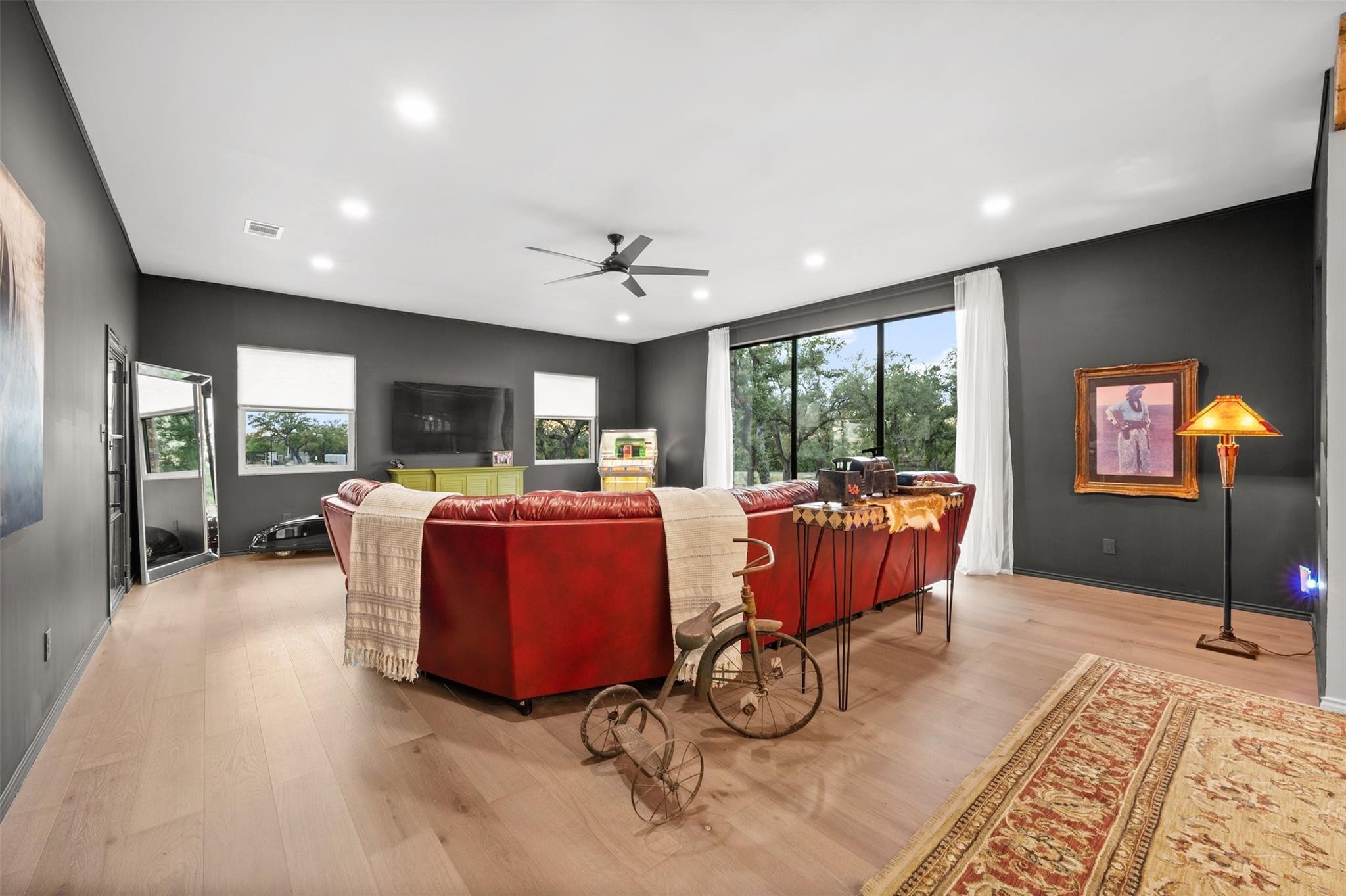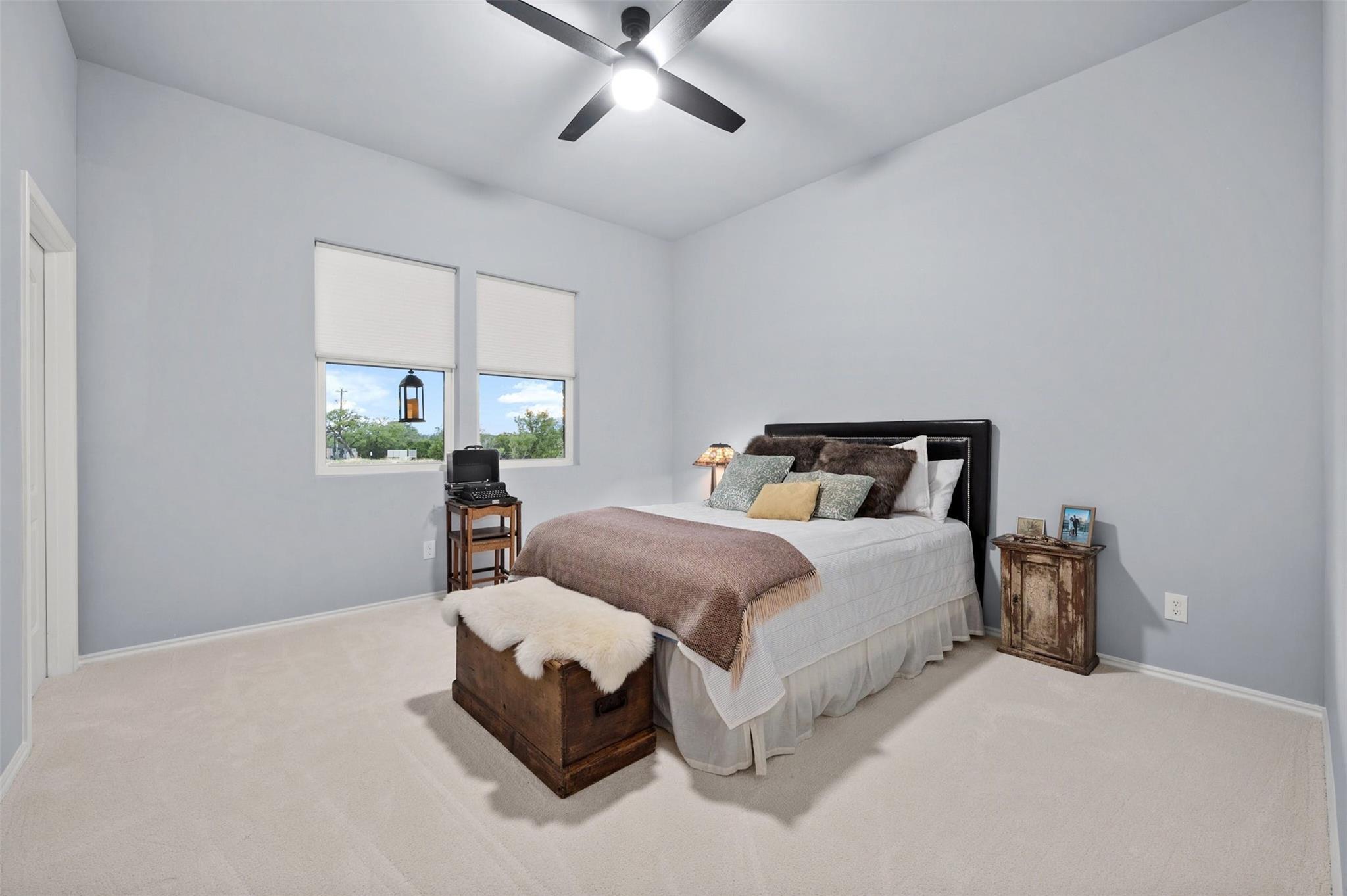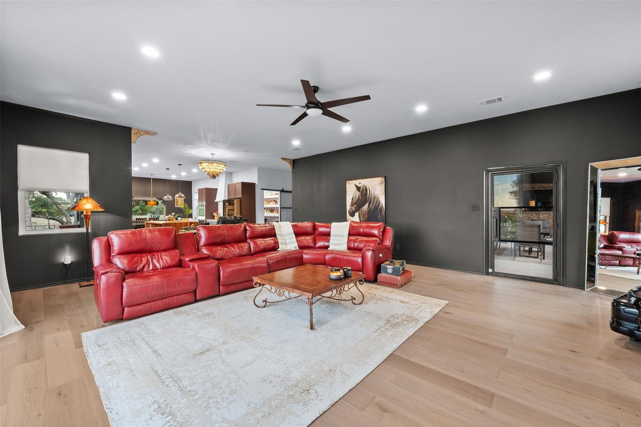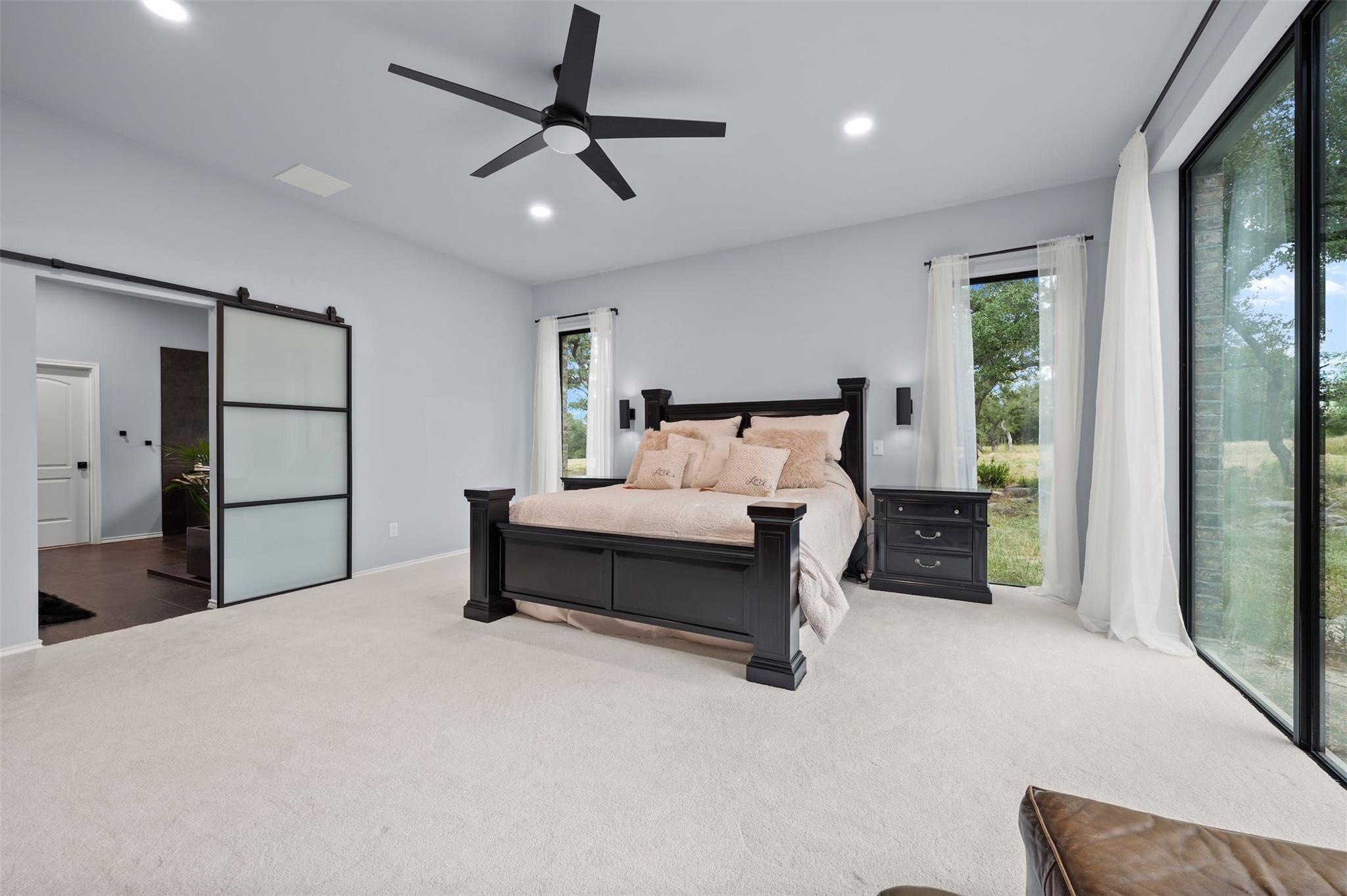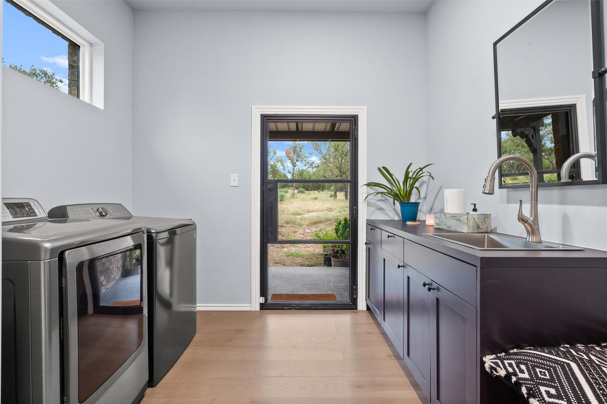 Custom-built dream home nestled on 5.57 breathtaking acres within the coveted Double Horn gated community! Built in 2023 with meticulous attention to detail, this residence embodies the essence of quality craftsmanship & modern design. From the moment you arrive, you'll be captivated by the home's stunning mid-century modern exterior, framed entirely with brick & adorned with enchanting LED landscape lighting & a welcoming covered front porch with Cantera iron doors. The lightly-lived-in interior boasts 3 spacious bedrooms, 2 bathrooms, & a generously sized great room that seamlessly connects the living room with the kitchen, featuring exquisite white oak wood flooring. The gourmet kitchen is a culinary masterpiece, featuring a massive solid walnut kitchen island with a convenient breakfast bar, an abundance of shaker cabinetry enhanced with sleek quartz countertops, & top-of-the line appliances, including an electric cooktop with a stylish wood vent hood. Retreat to the primary suite, a haven of relaxation with recent high-end carpeting, expansive windows that bathe the room in natural light, a walk-in closet, & an opulent en-suite bathroom. The primary bathroom is a spa-like retreat, featuring a modern dual vanity, a deep soaking tub adorned with a quartz surround, & an open walk-in shower that invites you to unwind & rejuvenate. Whether you choose to explore the vast 5.57-acre property or simply relax on the front porch or covered back patio, this home offers a wealth of opportunities to savor the outdoors. 3-car garage with 2 garage doors, a storage closet, & epoxy floors. The TPO roof, double-pane argon gas windows, & spring insulation throughout the home provide substantial energy savings. Exceptional amenities including a pool, playground, sports courts, pond, scenic trails, & an open-air pavilion. Convenient access to nearby Marble Falls, just 15 minutes away, or Bee Cave & Lakeway, a mere 30-minute drive. Schedule a showing today!