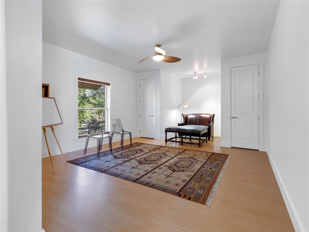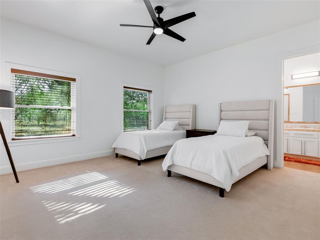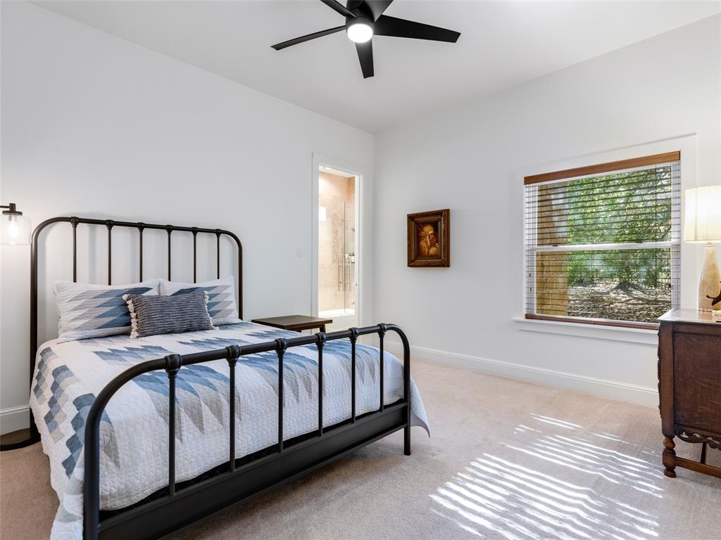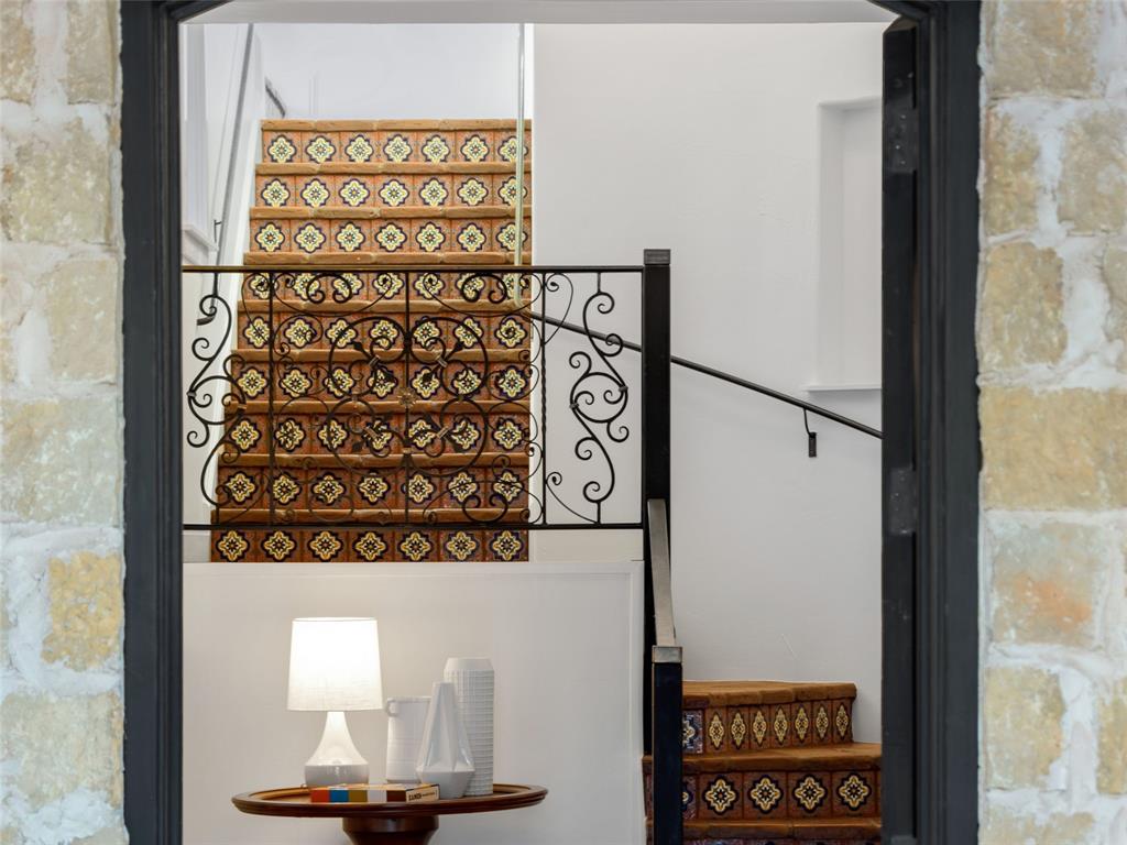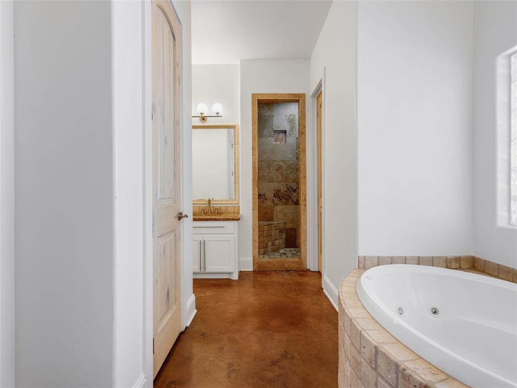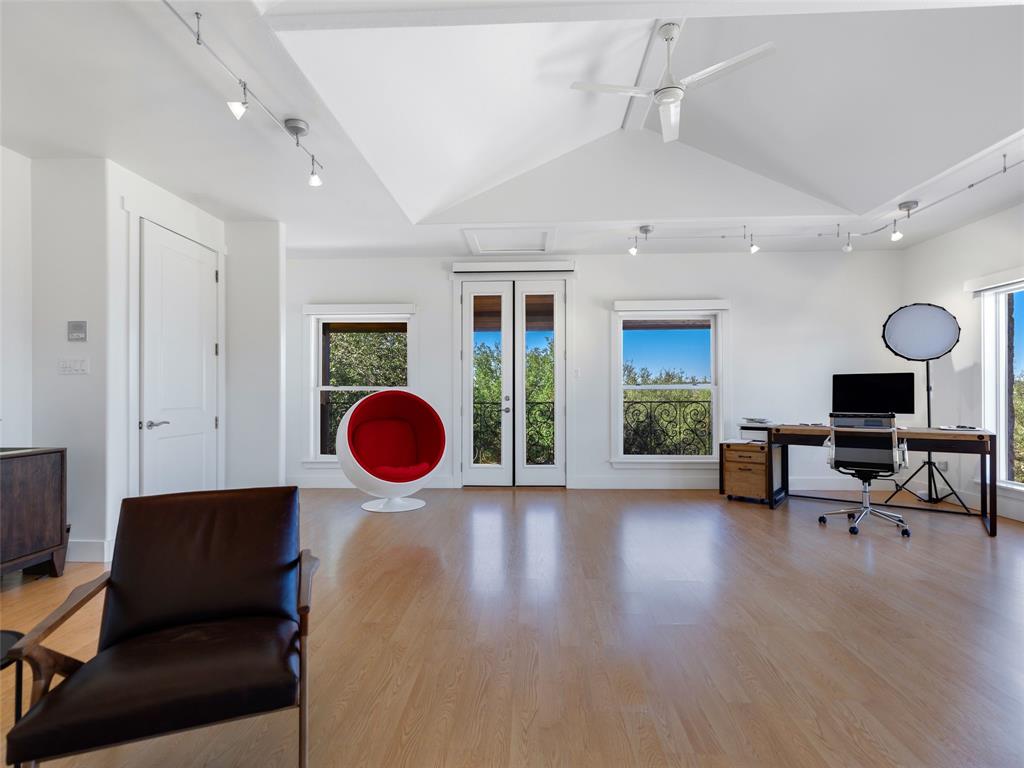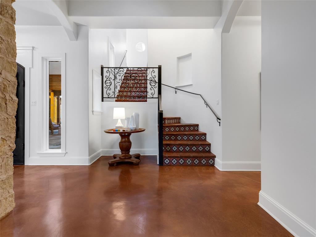Situated in the heart of the Texas Hill Country on over 7 acres, this home is what Texas dreams are made of. An idyllic setting that immerses you into the nature that surrounds the property, enjoy native wildflower fields in the spring, towering oak trees, a private lookout over the Pedernales, an abundance of wildlife, & the most magical Texas sunsets & starry skies. Located in an exclusive gated community with property gate for extra privacy. Down the winding driveway is canopy of oak trees & a sprawling contemporary estate adorned with beautiful Texas stone. The perfect home to live & entertain graciously in. Upon entry, you are greeted by a gorgeous hand painted tile staircase & a beautiful, light-filled dining area. Across the way, a chic sitting area with reclaimed wood walls & metal tile ceiling. A chef's dream of a kitchen, with a La Cornue French range, large center island all open up to the spacious living space with a stone fireplace at the center, & large windows all around. The privately situated primary suite has its own outdoor seating area overlooking the pool, a serene bathroom, & large dressing room. The home also features a media room, full wet bar & kitchenette. Three additional bedrooms & office, each with their own full bathroom complete the home. Upstairs, a flex space that could be converted into a garage apartment (fully plumbed to add a kitchen), with a huge living space, private patio, bedroom & full bath. Flow seamlessly to the outdoors, through the courtyard adorned with hand-painted clay tiles & water feature overlooking the negative edge pool with rock waterfall feature below & bronze eagle statue. Beyond the pool is the lush green area & never-ending views of the Hill Country. Equipped with a 46,000 gallon rainwater collection tank that provides water for the home & high producing well to service the sprinklers & pool. Close to enough to the city but far enough to enjoy the true magic of the Texas Hill Country.