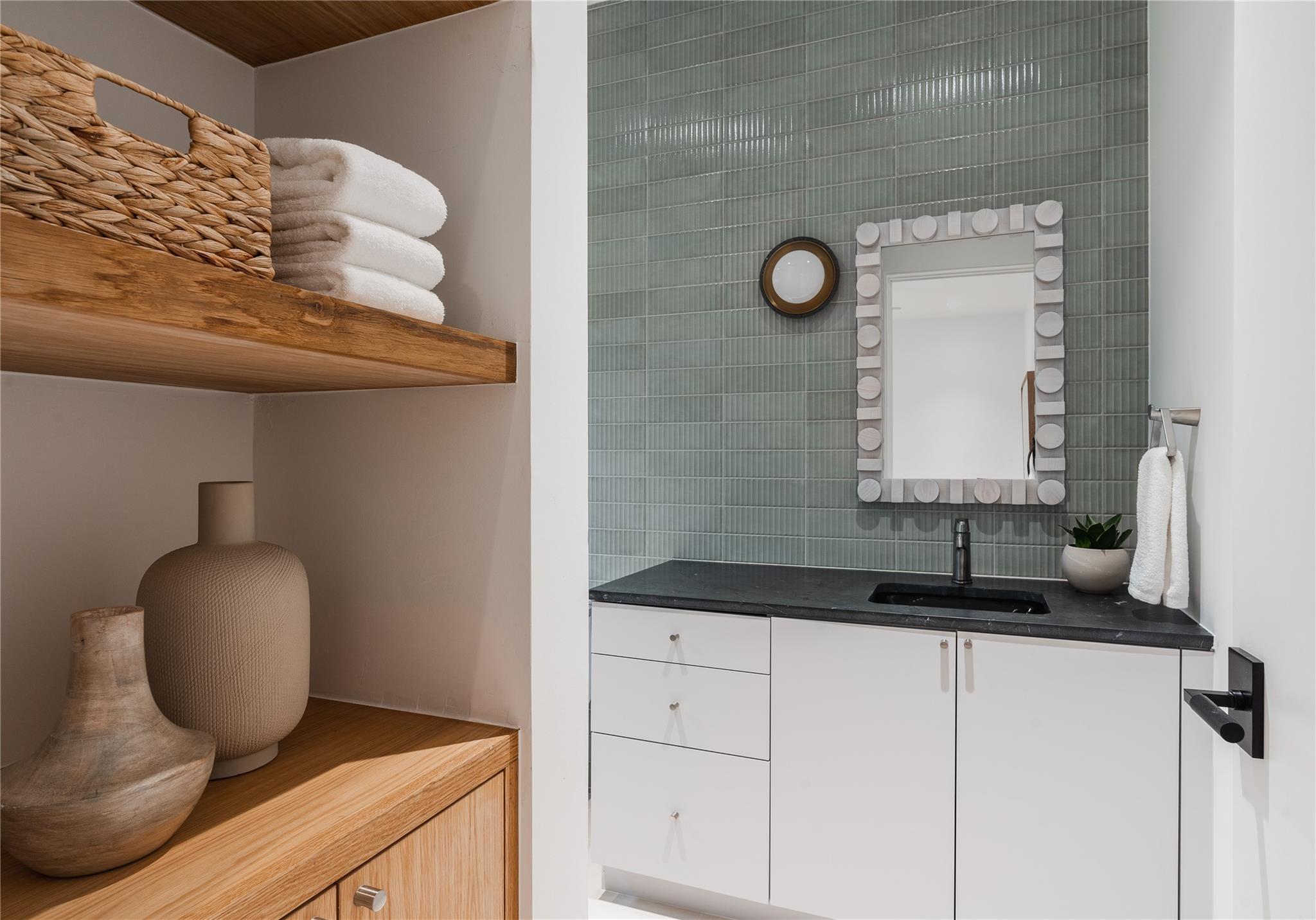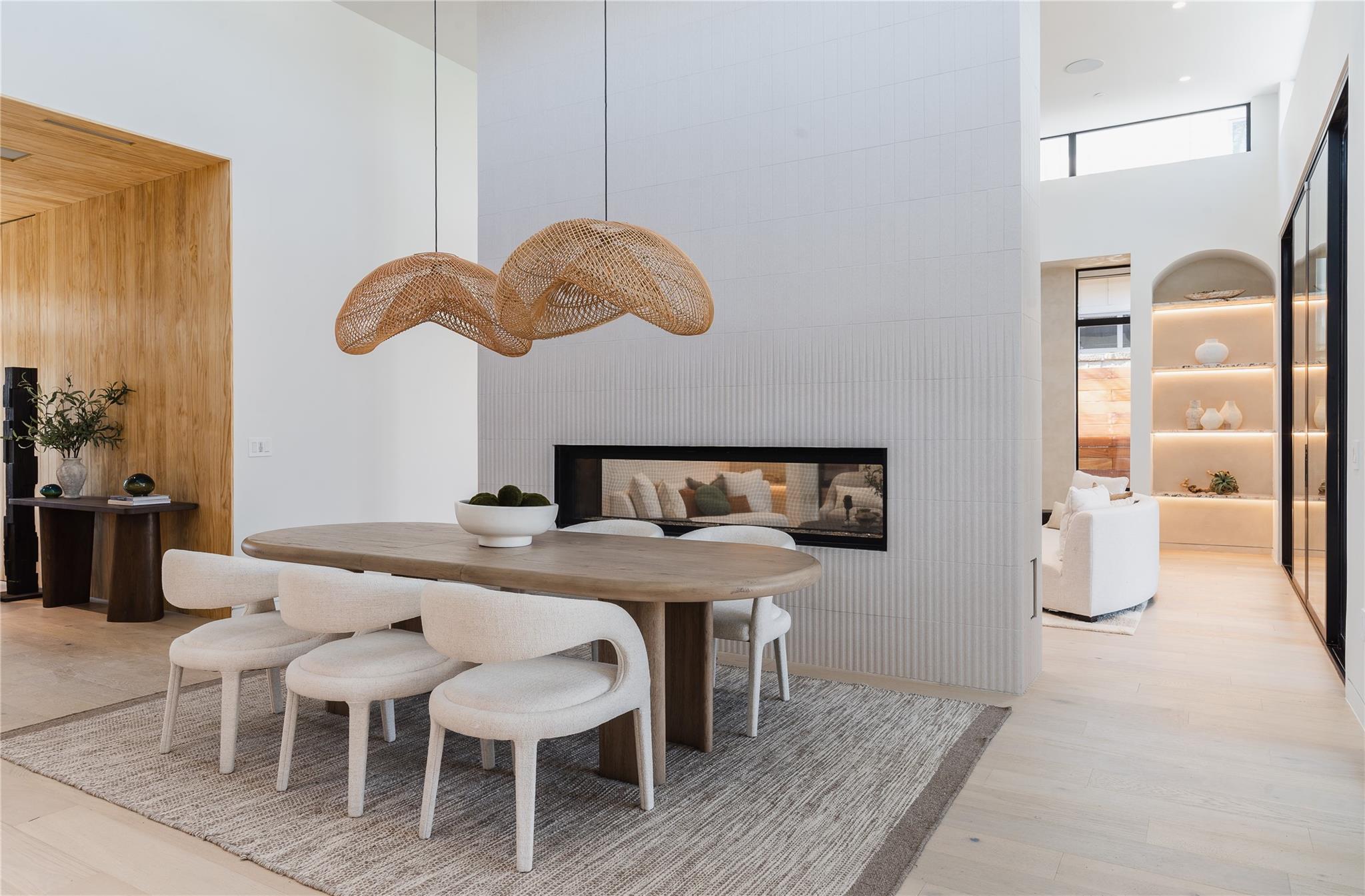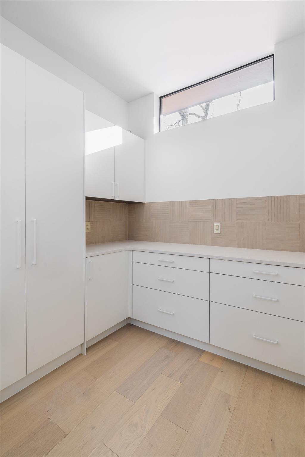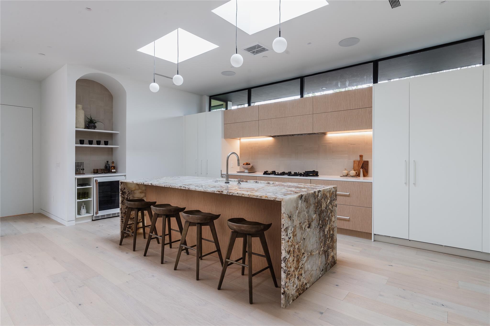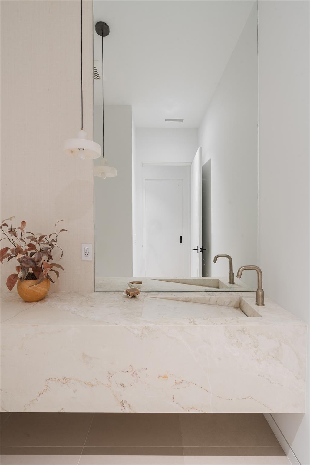 Welcome to 3214 Windsor Road, an architectural masterpiece nestled in Austin's prestigious Tarrytown neighborhood. Crafted by visionary architect Davey McEathron, and brought to life by the reputable LBF Homes, this Mediterranean-inspired gem harmoniously combines elegance and modern comfort. Spread over a generous 0.25-acre lot, this 5-bedroom, 4.5-bathroom residence spans 3,996 sqft of meticulously designed living space. The journey begins at the custom steel and glass single pivot front door, an impressive 10 ft tall, leading you into a world of refinement. Inside, level 5 drywall meets striking Accoya wood accents throughout, creating an atmosphere that exudes luxury and sophistication. The chef's kitchen, equipped with a top-notch Miele appliance package and a 10 ft Brazilian quartzite waterfall island, seamlessly flows into the open-concept layout, enhanced by flush-mounted doors and can lights. Skylights above the kitchen island allow natural light to beam in as you entertain from the kitchen. A double-sided tile wrapped gas fireplace, floor to ceiling, splits the living and dining rooms, offering a warm focal point that ties the spaces together. Ascending the floating staircase with glass railing and white oak treads, you'll find an upper level drenched in natural light as well as an indoor garden below the stairs. The interior design by Begonia Barbancho Design reflects meticulous attention to detail, with hand-selected tile and lighting fixtures that add character. Step outside to the sprawling landscape, featuring a Garapa wood covered deck, perimeter fencing, and a built-in outdoor kitchen and fireplace. Luxuriate in the heated pool and jacuzzi, and enjoy the added convenience of the outdoor shower and bathroom. The exterior's harmonious blend of stucco, brick, metal, and Garapa wood accents completes the Mediterranean allure.